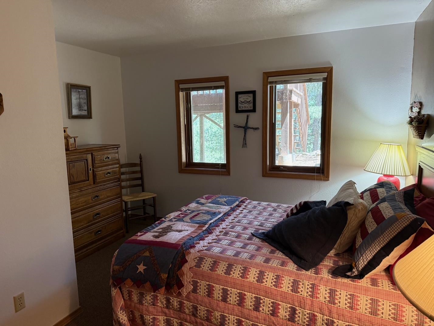 RUSTIC CHARM, SPACIOUS LIVING AREAS, MODERN UPGRADES, FIRE PIT, LOTS OF STORAGE Spacious, cozy and comfortable describes this 3 bedroom, 2 ½ bath home in Angel Fire just minutes from all the AF resort amenities. This conveniently located but feels secluded home comes with 2 large living areas and open layout with plenty of room AND storage for family and friends for a great mountain get away. Whether you use it as your personal vacation home or opt to use as a resort rental; this home conveniently sleeps 12. Main floor includes an open concept living room with a cozy wood burning fireplace and family dining area. The floor to ceiling windows overlooks the spacious outdoor living decks for soaking the rays, entertaining and outdoor grilling. Also included on the main floor is a spacious kitchen with a separate breakfast nook/coffee bar. The large master bedroom and bathroom which includes a whirlpool tub, separate shower and 2 separate sinks. The main floor also includes the half bathroom. Downstairs, with all new flooring, you’ll find 2 more bedrooms, a full bathroom, separate laundry room and spacious 2nd living area or grand-kids room that have 2 sets of bunkbeds, murphy bed, with gas fireplace. Downstairs access to a 2-car garage with storage for all those outdoor equipment and toys. Just off the back deck you will find a large rock firepit for those evening s’mores or just star-gazing nights. Two lots combined for .9 acre and 1 resort fee but best of all, this home is priced below current appraisal value! Angel Fire amenities includes PGA rated golf course, country club dining, fishing, biking, skiing and tennis/pickleball park.
