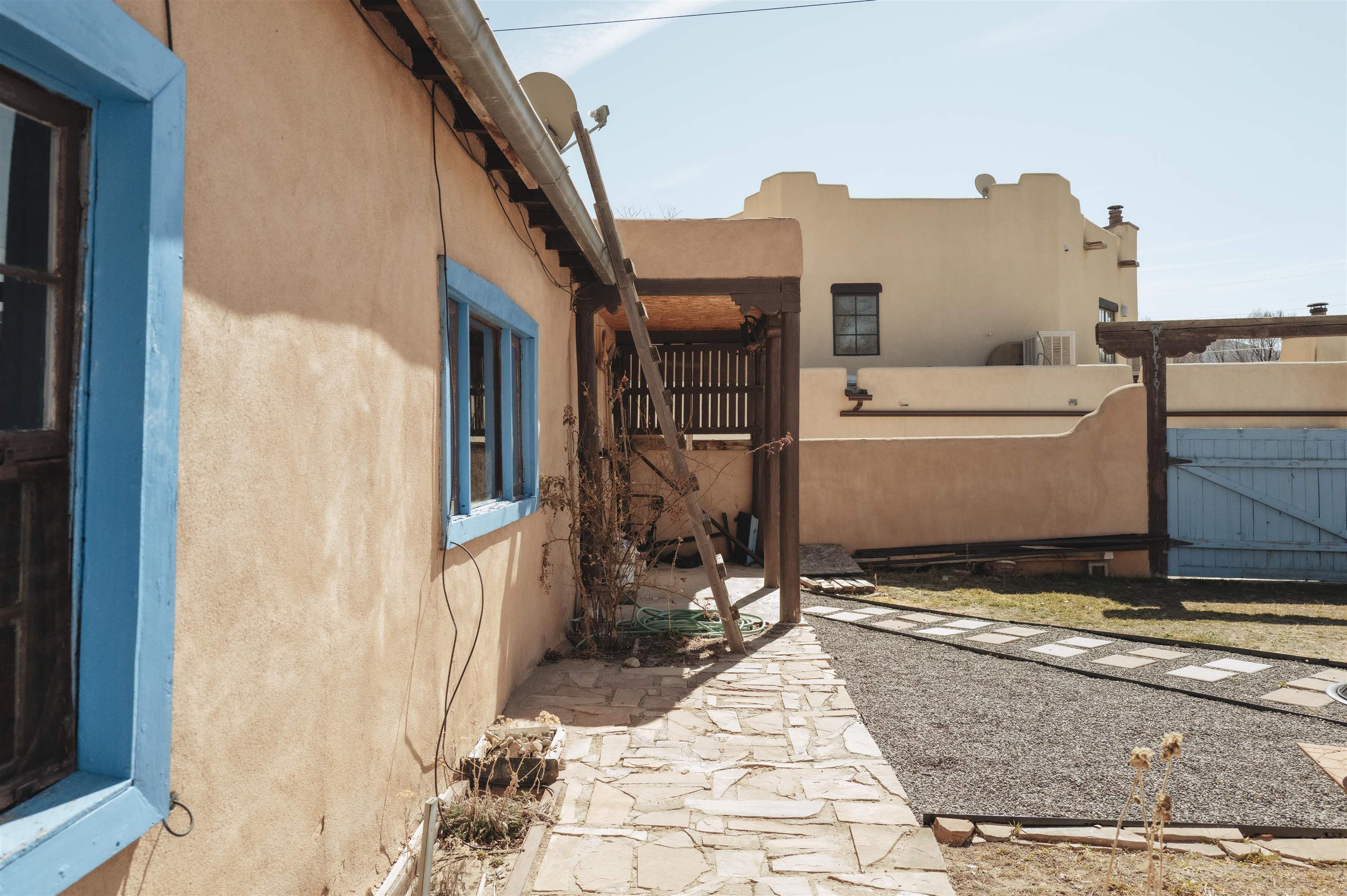 Step into history to see this quintessential adobe home, nestled in the heart of La Loma Plaza in Taos. With roots tracing back to the late 1700s, this classic adobe hacienda offers a tapestry of special touches and timeless Taos charm. The property features two enchanting private enclosed courtyards: a welcoming front courtyard overlooking the plaza and a back courtyard with a shaded pergola, baking Horno, and ample space for entertaining. Both areas create the perfect setting to savor those magical Taos evenings. Inside this authentic 2150 sf adobe home, discover a thoughtfully designed layout. The first floor offers a warm and inviting living room, two convenient bedrooms and separate bath, a cozy kitchen, dining area, den room and an enclosed flagstone room ready to host an intimate dinner or another option for a living room. The upstairs, a later addition, provides two comfortable bedrooms with a shared bathroom, offering private space within this historic gem. Imagine the possibilities of adding your personal touches to create an exceptional home. Located in the heart of Taos, with only a few minutes walk to Taos Plaza, vibrant cafes and shops. Call us for a private tour today!