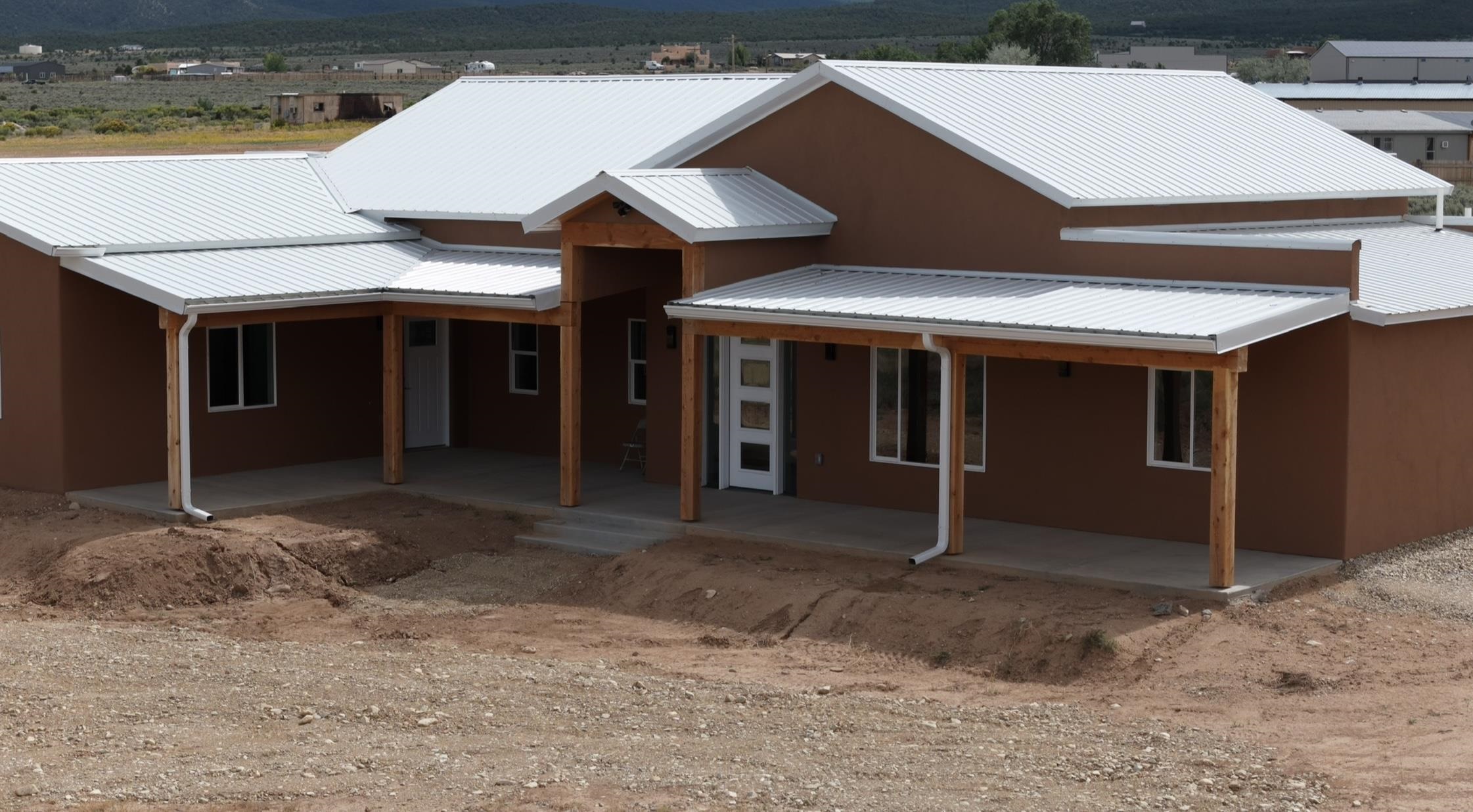 Under Construction, soon to be completed. This stunning, meticulously crafted home is a true masterpiece, offering a perfect blend of spaciousness and coziness. With high ceilings and a modern finish, the home presents elegance and comfort, ready for immediate enjoyment. The thoughtful design ensures no detail has been overlooked, showcasing exceptional craftsmanship throughout. Located near premier amenities such as golfing, biking, and walking trails, the property also provides convenient access to the charming town of Taos and is just a short drive from Santa Fe. The expansive porches are ideal for hosting family gatherings or relaxing with a book while taking in breathtaking vistas. This property is currently 2 bed 3.5 baths however can very easily be converted to a 3 bedroom home as the Garage has radiant heat and has big windows as well its own full bath. Inside, the home features two generously sized bedrooms and 3.5 bathrooms. The oversized garage offers plenty of natural light through large windows as well as the rest of the home. The Garage offers versatility as a potential studio space. This property is an extraordinary opportunity to embrace luxurious living amidst the beauty of northern New Mexico.