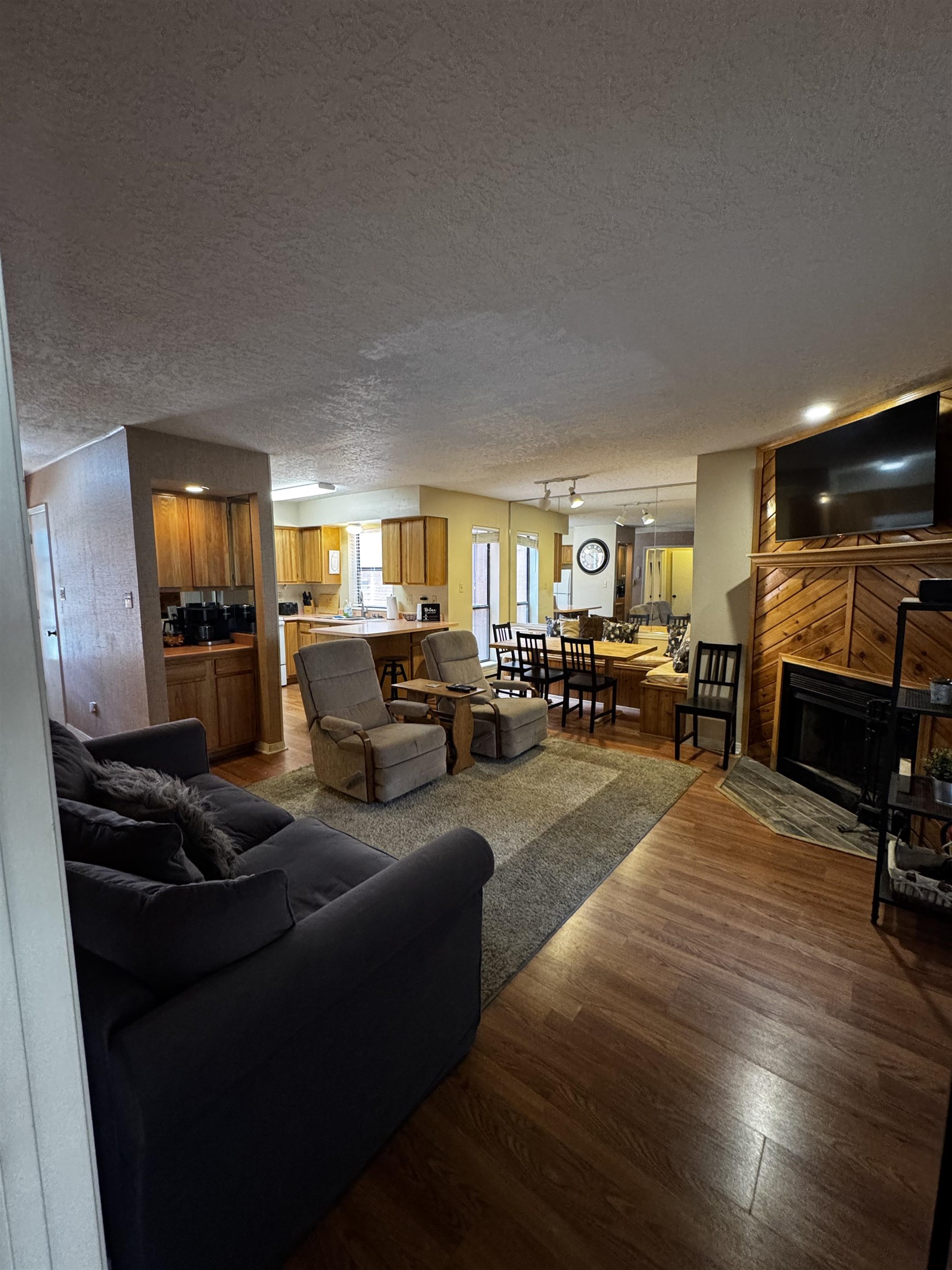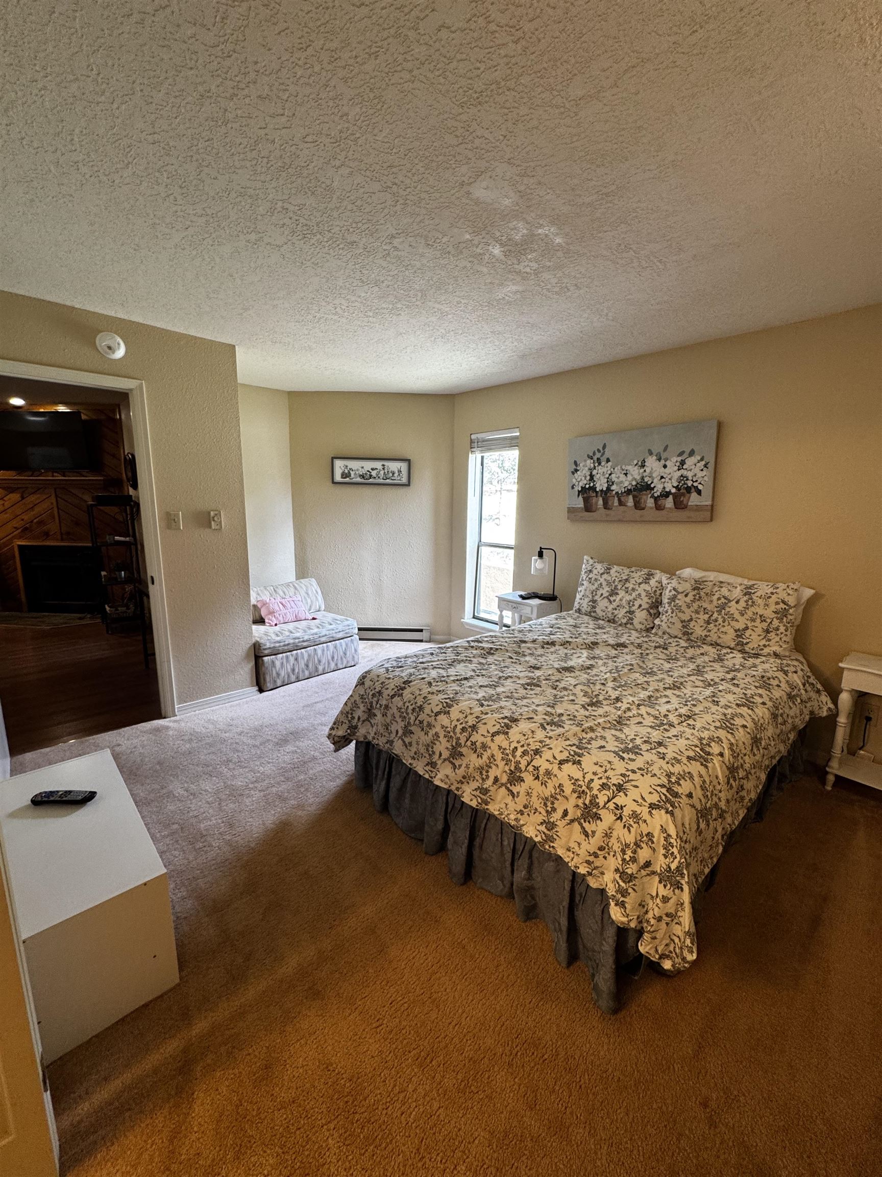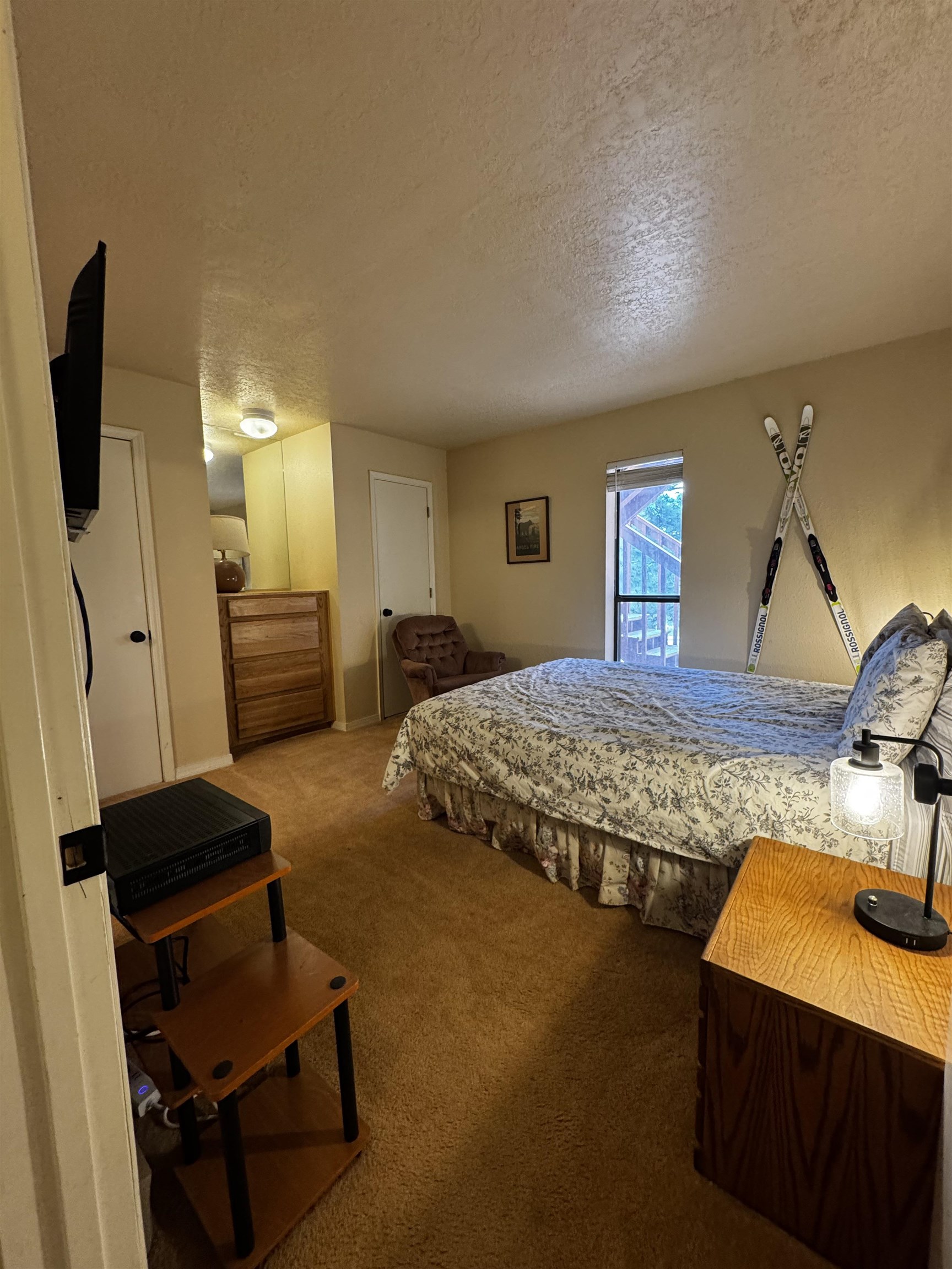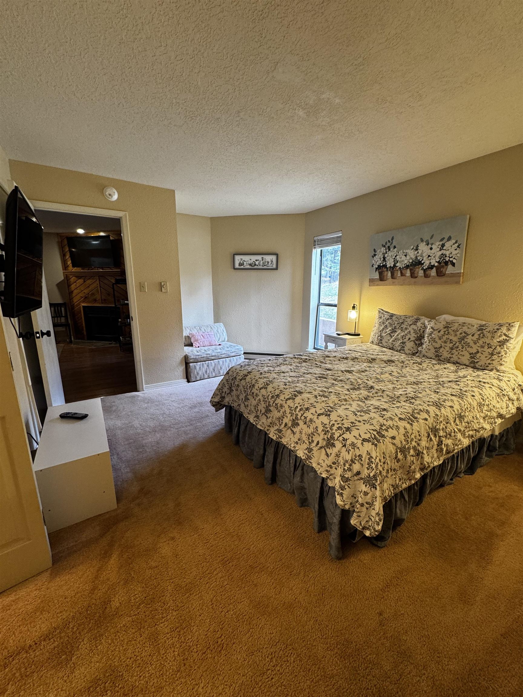 This well appointed first floor unit offers 2 spacious bedrooms, 2 full bathrooms, and a versatile bonus room featuring bunk beds. Which are perfect for guests or extra sleeping space. Enjoy your morning coffee or evening unwind on the front porch, taking in the fresh mountain air and beautiful views. Inside, the condo features updated kitchen appliances and new TVs. The unit also includes an outdoor storage closet for your gear. Ideal for mountain biking, skiing, or hiking adventures. Just a short walk to the base area of the Angel Fire Resort, you’ll have year-round access to outdoor activities, as well as nearby dining and village conveniences.