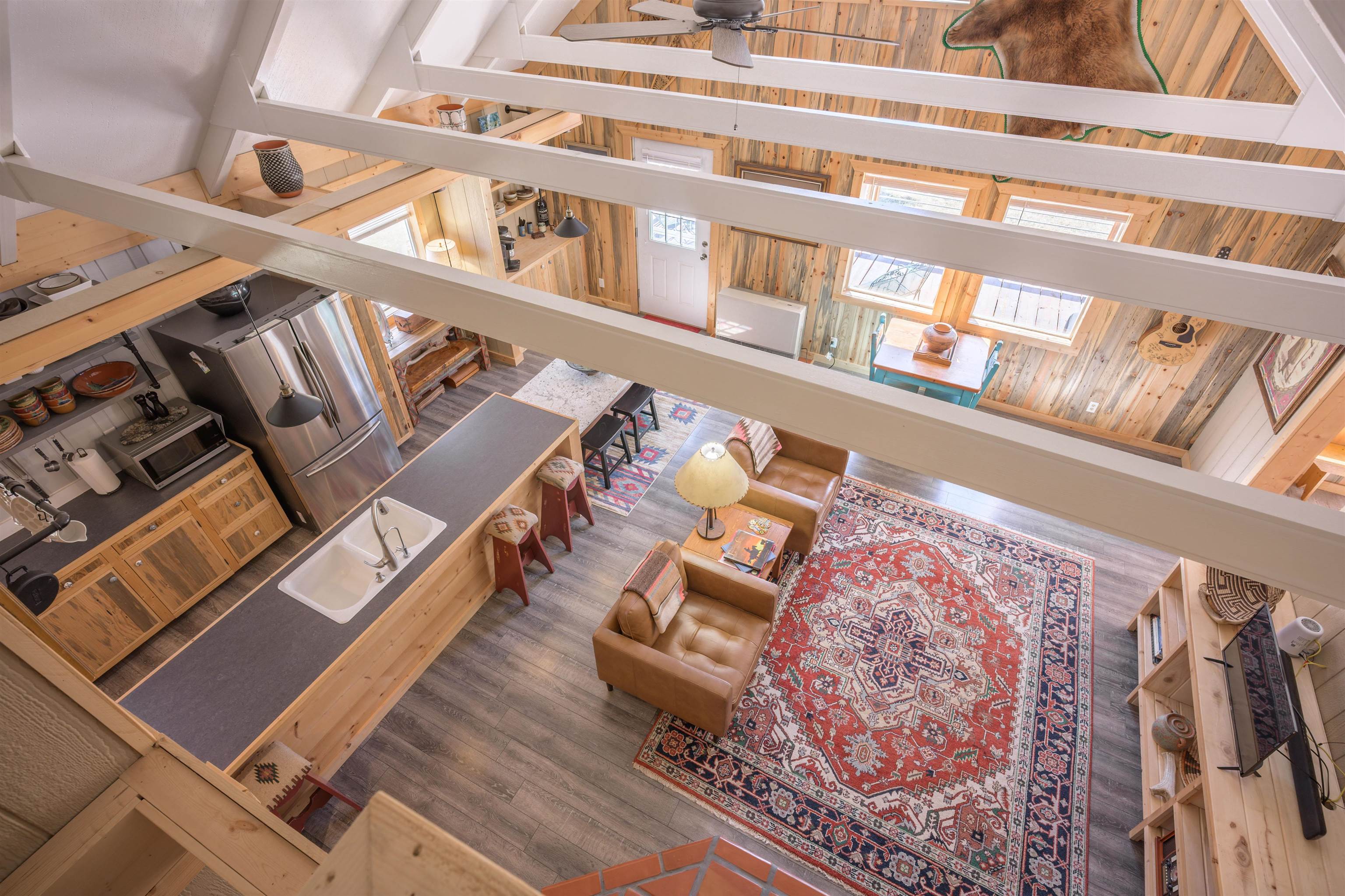 Settle into this charming mountain home overlooking the 11th fairway of Angel Fire's premier 18-hole golf course! Upon entry into the mudroom, you'll find that the seamless flow between the living room, dining area, and kitchen creates an inviting and functional layout. The hallway connects the kitchen to the primary bedroom with an ensuite bath, a guest bathroom, and a guest bedroom. An upstairs loft can serve as a 3rd bedroom when extra sleeping space is needed, or cross-utilized as an office and/or exercise space. This home welcomes you with warmth and brightness from its many windows framing the seasonally colorful foliage and views of the mountains, too! Conveniently located to the Angel Fire Country Club, Tennis & Pickleball courts, ski area & downhill mountain bike park! During the winter months, the golf course transforms into a network of cross-country skiing trails, so one simply has to gear up, step outside & take a spin! Easy access makes this home available for year-round use, so don't miss out on 65 Saint Andrews Way!