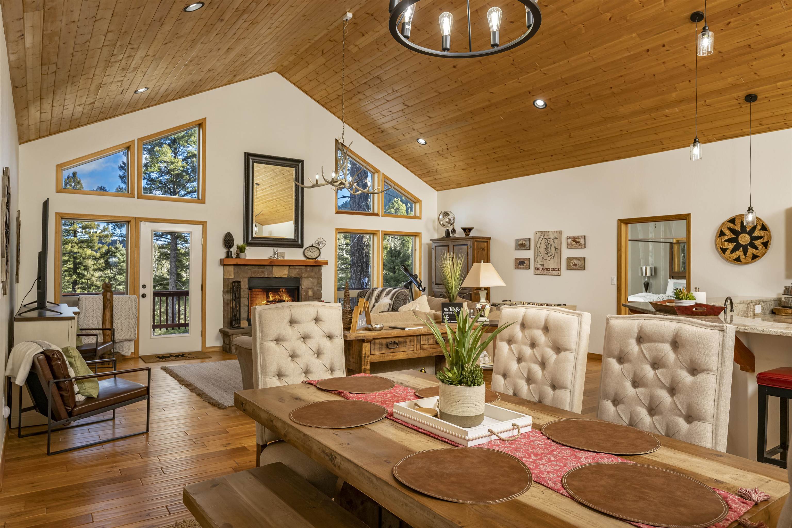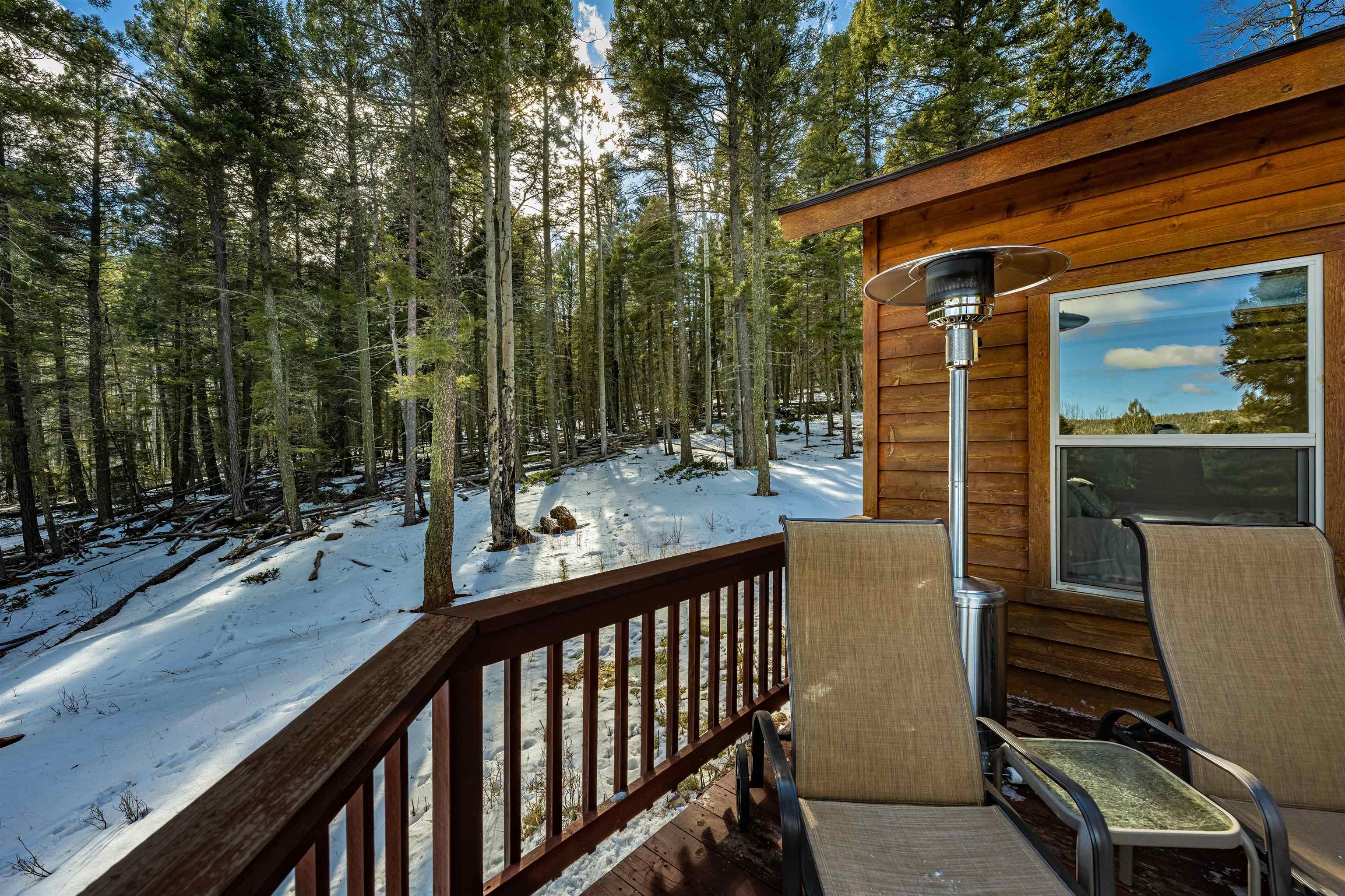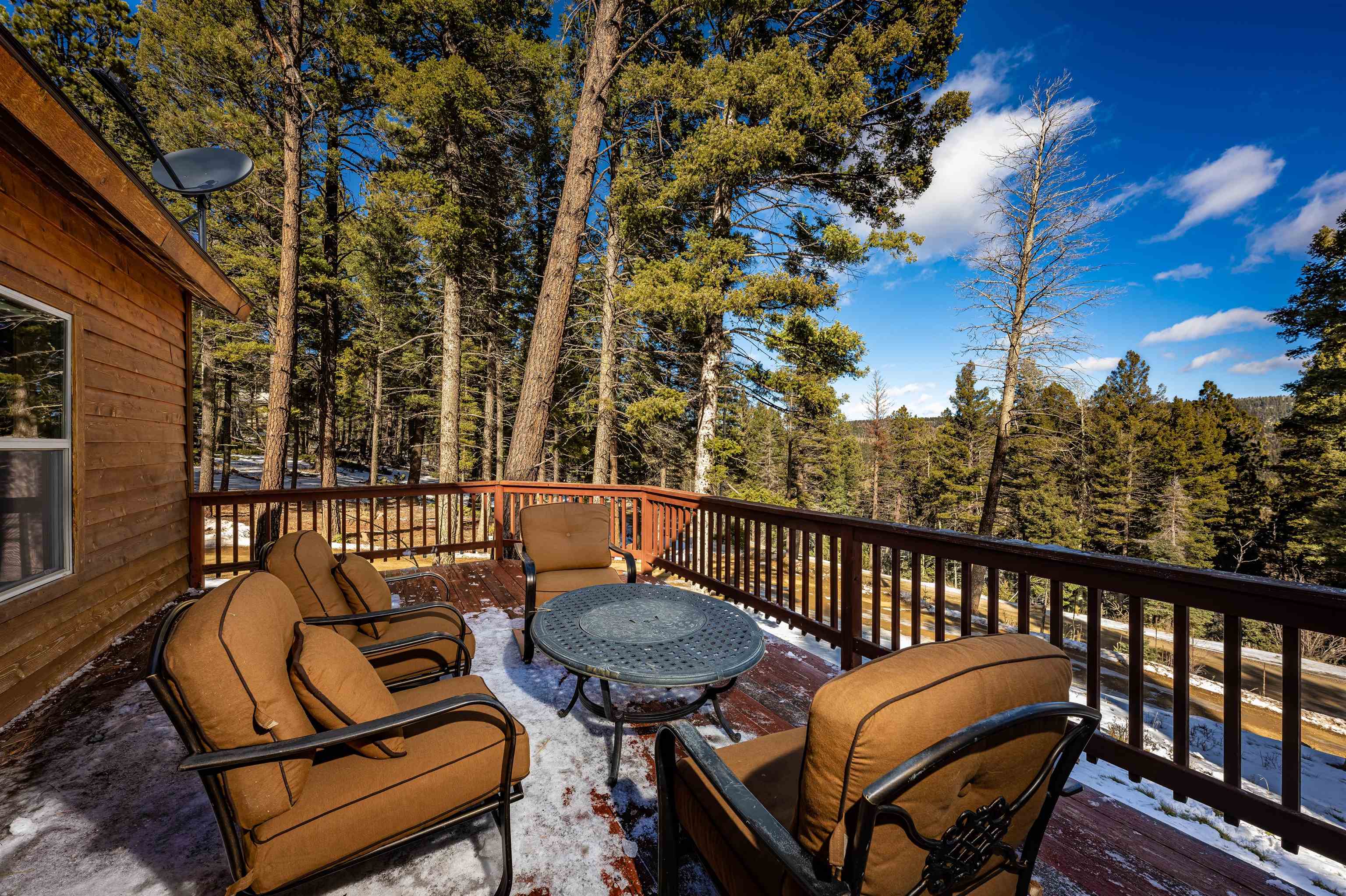 You'll love the updated rustic design of this 3-bedroom, 2-bathroom home. The open kitchen, dining, and living areas create the perfect spot to cook, gather, and relax. The primary suite, tucked away on one side of the home for privacy, offers a soaking tub, separate shower, and substantial walk-in closet. On the North side, two comfortable bedrooms share a full bathroom with a tiled tub and forest views. Step outside to the hot tub or take in the fresh mountain air on the large deck. Just four miles from the base of the mountain and minutes to hiking, biking, fishing, golfing, and all the amenities Angel Fire has to offer!