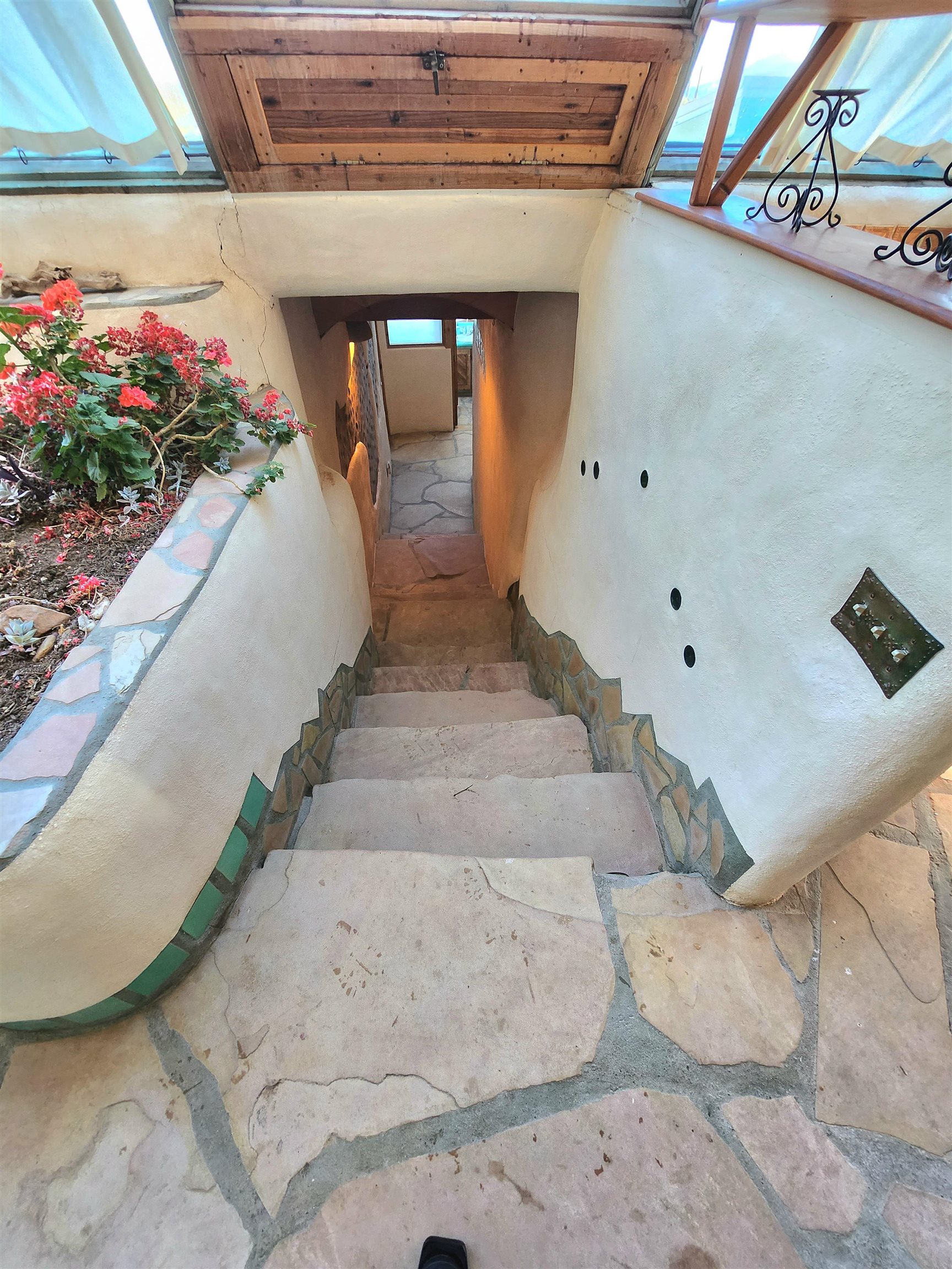 Experience a rare opportunity to own a one-of-a-kind Earthship residence, masterfully designed by world-renowned architect Mike Reynolds, the visionary behind this globally recognized style of sustainable architecture. Nestled within the exclusive Greater World Subdivision—protected by covenants ensuring the integrity of its unique community—this home represents the pinnacle of off-grid living with elegance and innovation. Constructed from recycled materials and designed for complete self-sufficiency, the residence features integrated indoor planters nourished by a sophisticated gray-water system, which cycles water from sinks and showers back into the landscape. Power is provided entirely by solar and wind energy, eliminating utility costs while offering true independence. The property also includes a detached ~150 sq. ft. studio, ideal for a private office, creative space, or guest retreat. Situated on 1.28 acres, there is ample room to create gardens or outdoor living spaces to complement the striking natural surroundings. This extraordinary property is more than a home—it’s a statement of design, sustainability, and lifestyle, offering a rare blend of architectural significance and modern comfort.