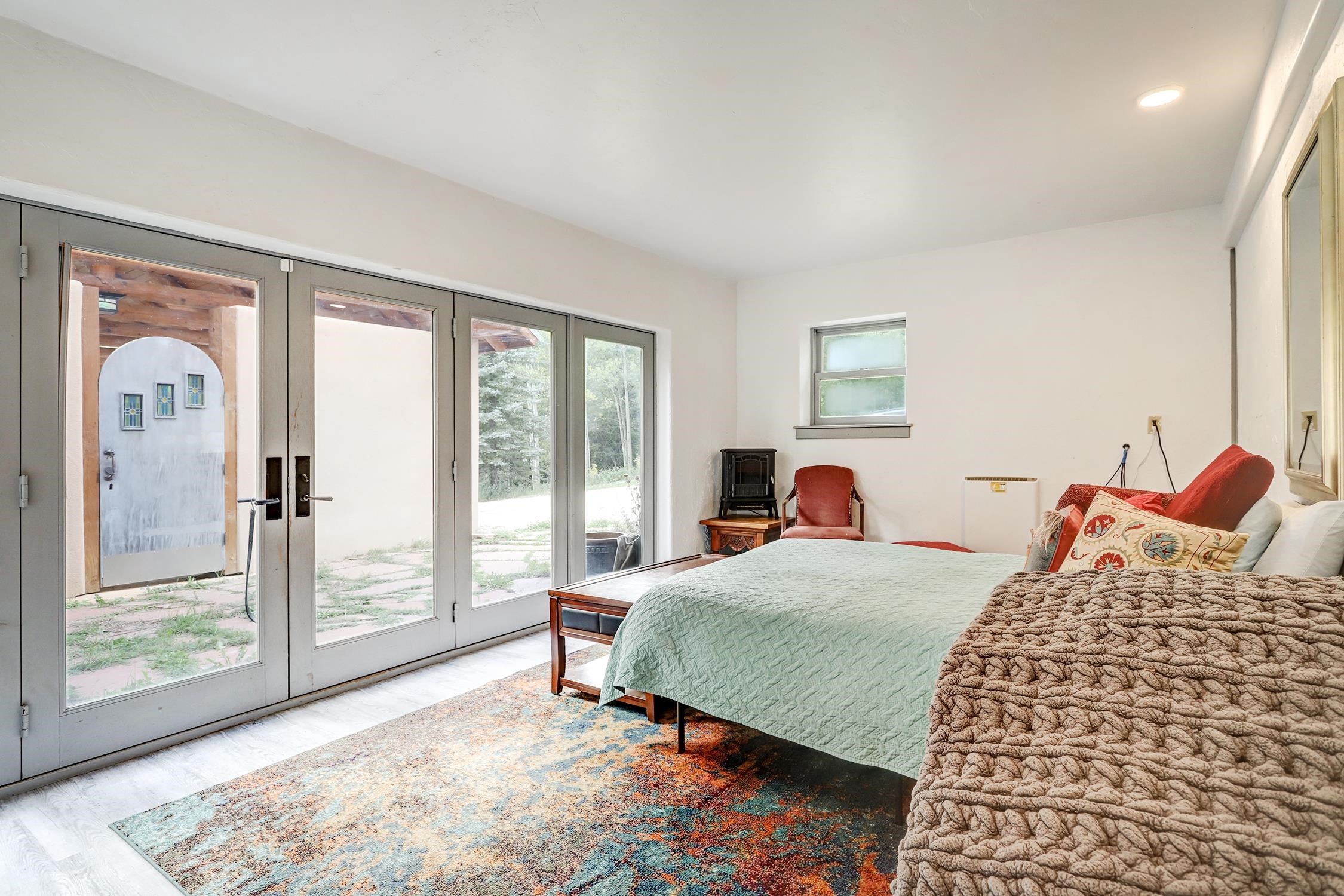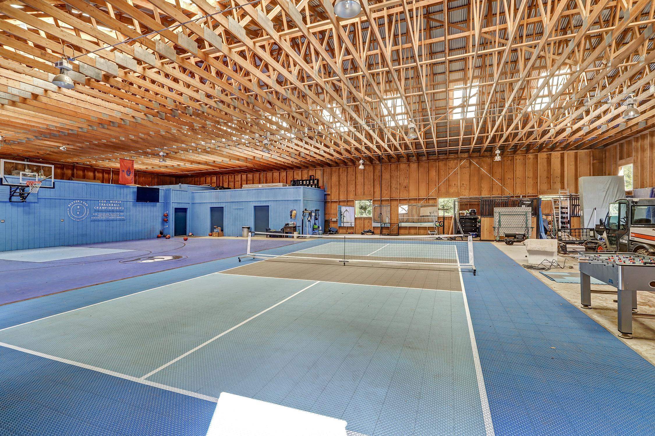 Private Mountain Estate on 14.7 Acres – Black Lake, NM Bordering the Carson National Forest, this rare 15-acre gated estate offers a 4,600 sq ft main residence, 1,457 sq ft guest house, and a barn with its own pickleball and basketball courts. The property features a pond, running stream, and groves of aspen trees, creating a true mountain sanctuary. Inside, vaulted ceilings and picture windows frame dramatic mountain views. A Tulikivi soapstone fireplace with bakeoven anchors the living space, while the chef’s kitchen boasts a breakfast nook fireplace, oversized walk-through pantry with sink and dishwasher, and a glass-enclosed porch. The loft-level primary suite includes a two-sided fireplace, spa bath, and office landing with views. Additional bedrooms, a game room, and guest quarters provide abundant space for family and friends. The guest house, just steps away, offers a full kitchen, living room, and loft bedroom. Located minutes from Angel Fire Resort and a scenic drive to Taos, this estate delivers unmatched privacy, recreation, and mountain living.