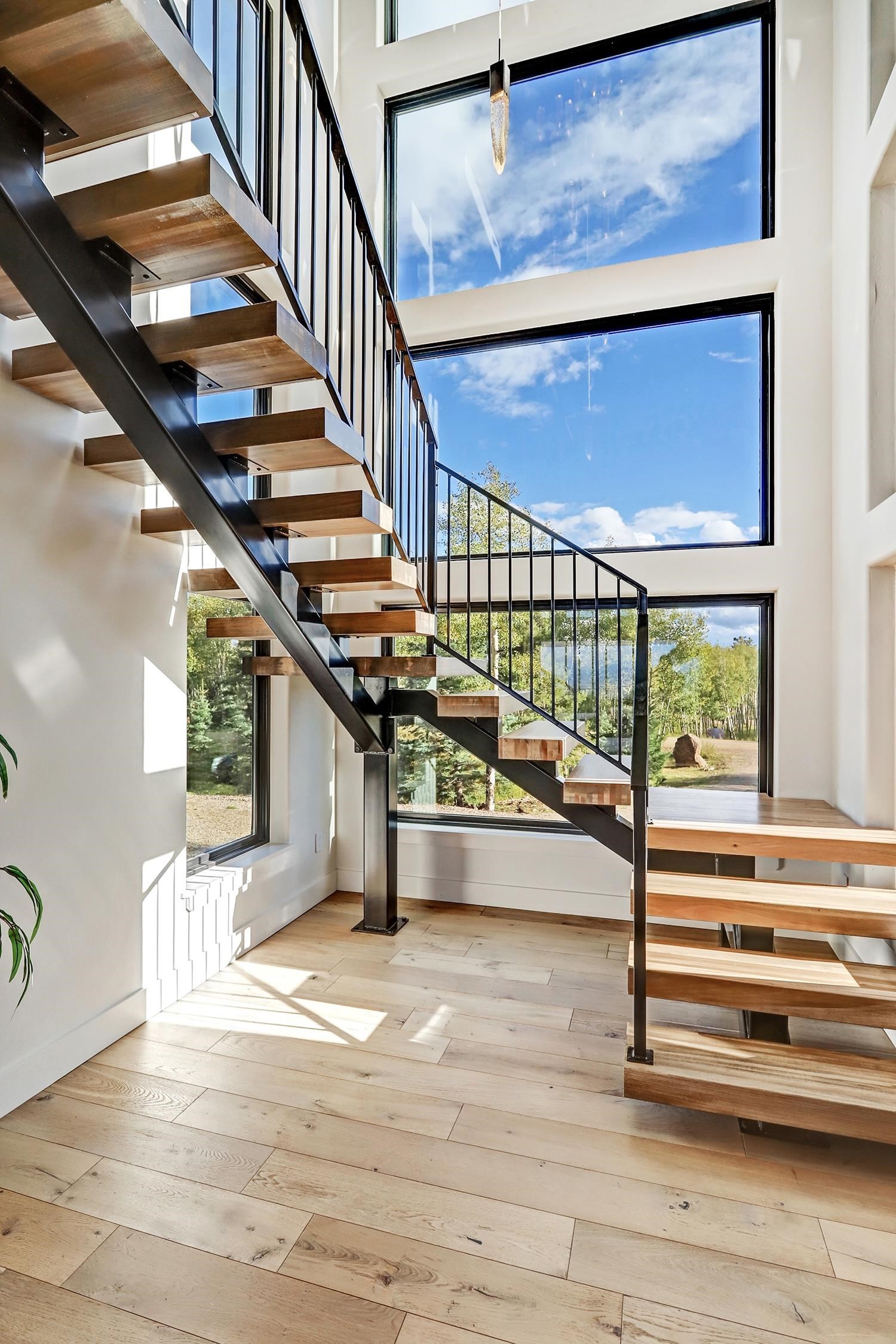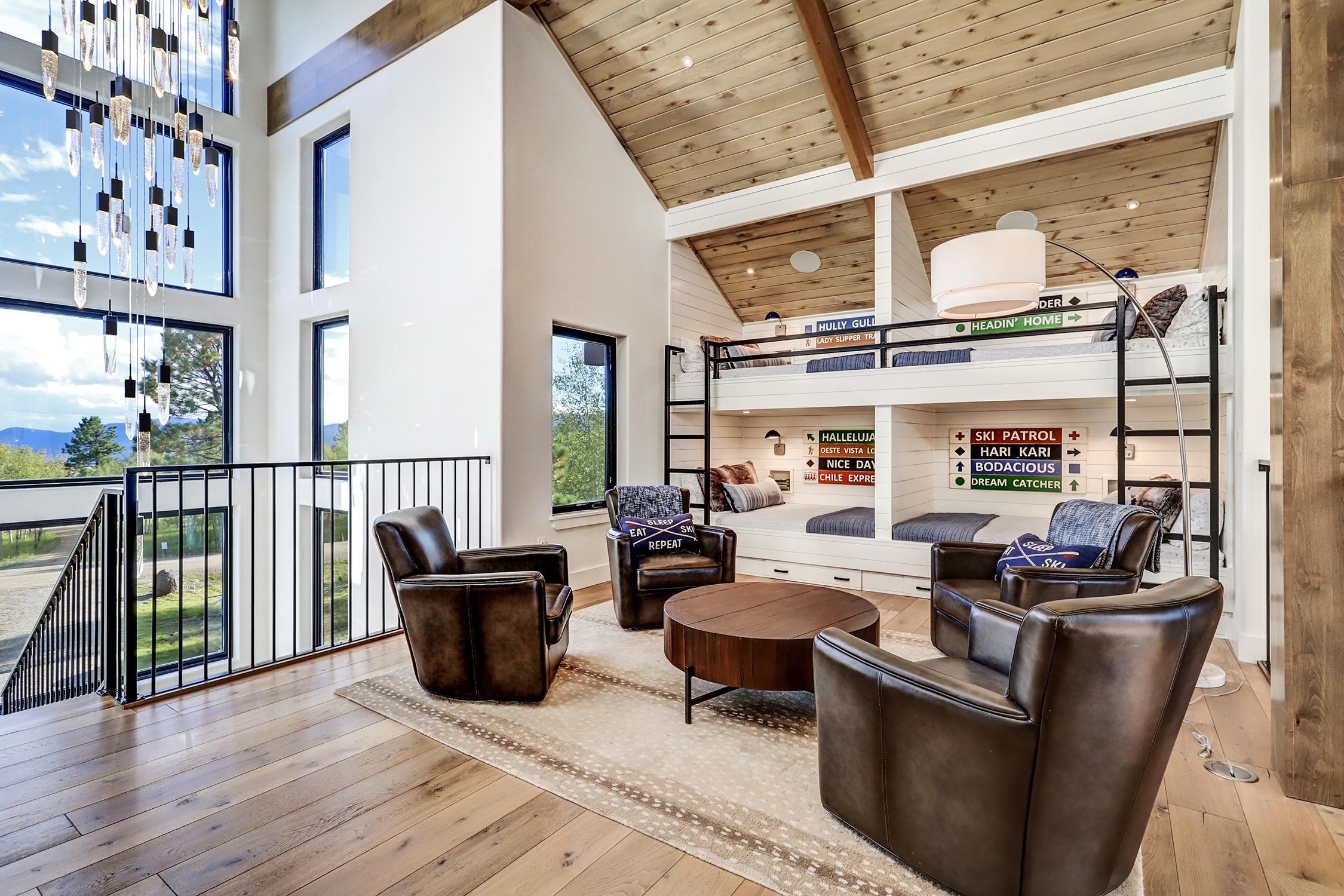 30 Beaver Loop | Modern Mountain Luxury Welcome to 30 Beaver Loop, a modern mountain retreat designed with both sophistication and comfort in mind. This 4-bedroom, 3.5-bathroom home offers over-the-top features and thoughtful details for effortless mountain living. Step inside and you’re greeted by a floating staircase crowned with a dramatic chandelier, setting the tone for the home’s sleek and stylish design. A state-of-the-art smart system seamlessly controls audio/video, lighting, shades, and security throughout the house—luxury living at your fingertips. The heart of the home is the open living area with a stacking glass door system that disappears into one panel, extending your living space to the expansive deck. Here, you’ll find unparalleled views, perfect for both relaxing evenings and entertaining. The primary suite shares this breathtaking vista and includes direct deck access to the hot tub for starlit soaks. The gourmet wet bar—complete with wine fridge, ice maker, and sink—makes entertaining effortless, while custom-built bunk beds and a fun loft space ensure kids and guests feel right at home. Every detail has been considered for convenience: two laundry centers (one tucked into the primary closet and another near guest rooms upstairs), a mudroom with lockers, and even a doggie shower for four-legged family members. A backup generator ensures peace of mind in every season. And with a spacious 3-car garage, there’s plenty of room for vehicles, gear, and mountain toys. Whether gathering with friends, hosting family, or simply unwinding after a day on the slopes, 30 Beaver Loop offers the perfect blend of cutting-edge technology, modern design, and mountain comfort.