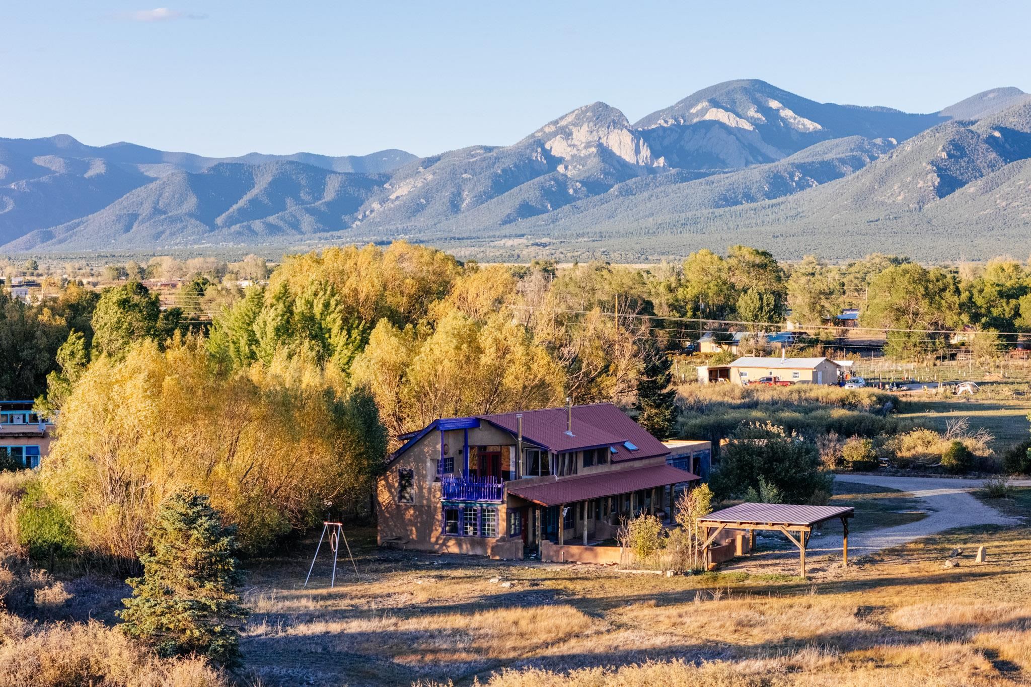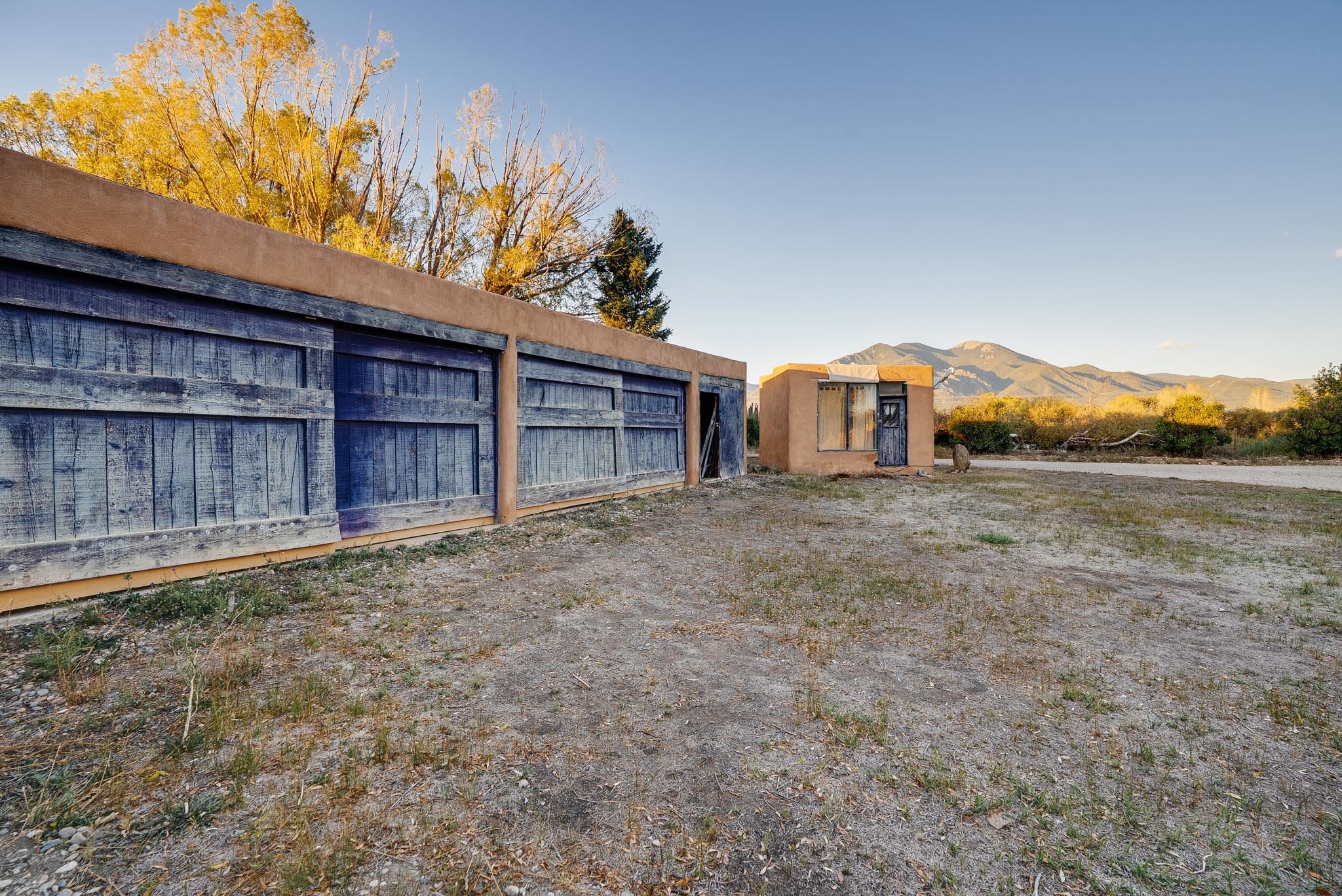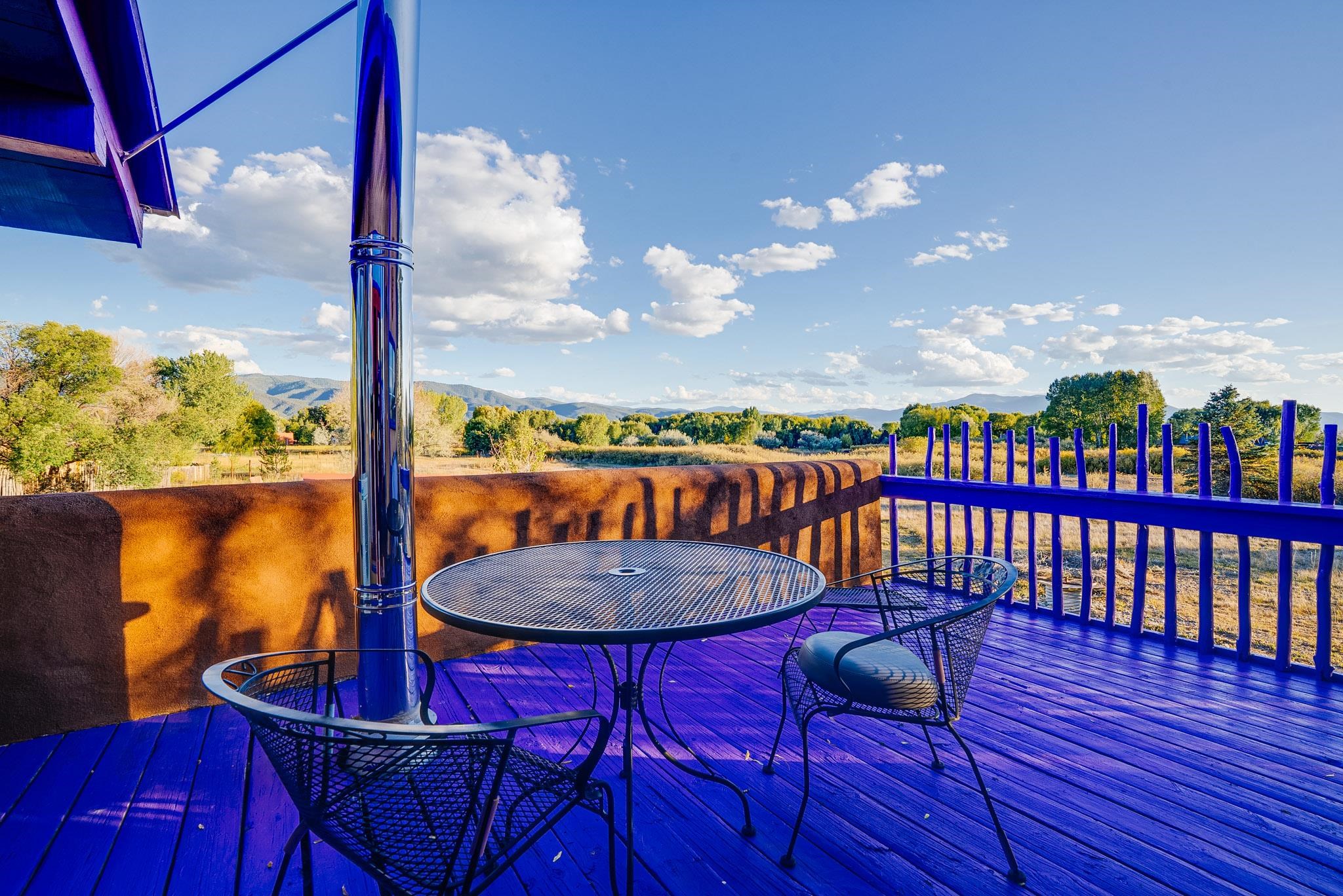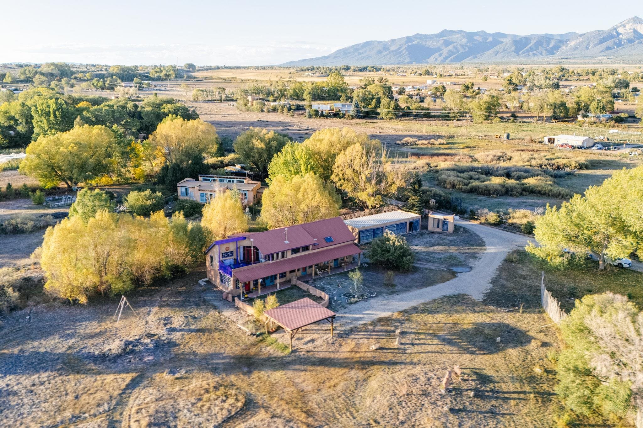 Drenched in vibrant color and situated on two acres of irrigated land in an enormously desirable location, this property, with wonderful views of both Taos Mountain and the Sangre de Cristos, invites you to bring along your imagination because 1016 La Cienega has a lot to offer its next owner. Four bedrooms/3 baths, a 4 car garage/studio space, rental property, storage, mini split, carport and more! La Cienega is one of those roads that is close to town and yet feels like it's a world away. This is a neighborhood in the true sense of the word. People watch out for one another here and yet it is quiet, private and rural with Pueblo Land on two sides. The main house is a celebration of festive color that echos the artistic spirit of Taos. An open living room and kitchen feature vividly colored tile and very high ceilings- feeling warm and alive. In the main house there are two bedrooms and one full bath and there is also a double door that connects to an additional bedroom and bathroom on the ground level. This design offers perfect flow for entertaining- leading out to a fabulous deck to watch sunset. Then, there is the adorable one bedroom/one bath income generating casita/apt. With convenient exterior doors, there are many opportunities for flex use for these spaces. Another door leads to a laundry room that could also be an office/studio/gym/yoga. In addition to all these interesting living spaces, there is a 4 car garage with electricity, additional storage area and a shed. Bring your vision, artistry and originality to this wonderful property. Call today for your private showing.