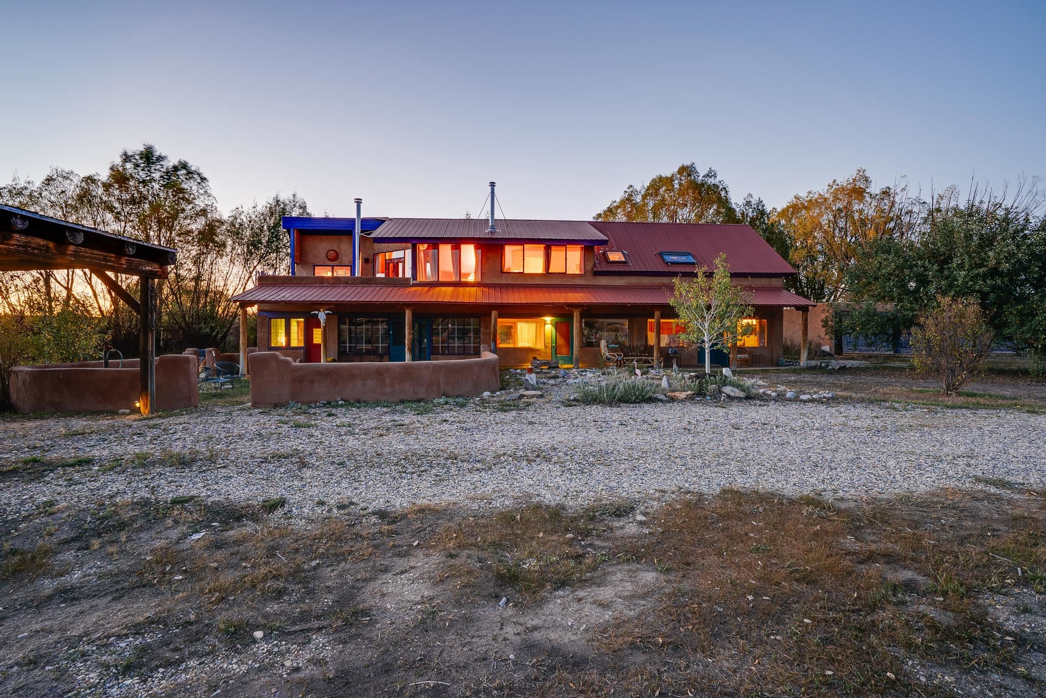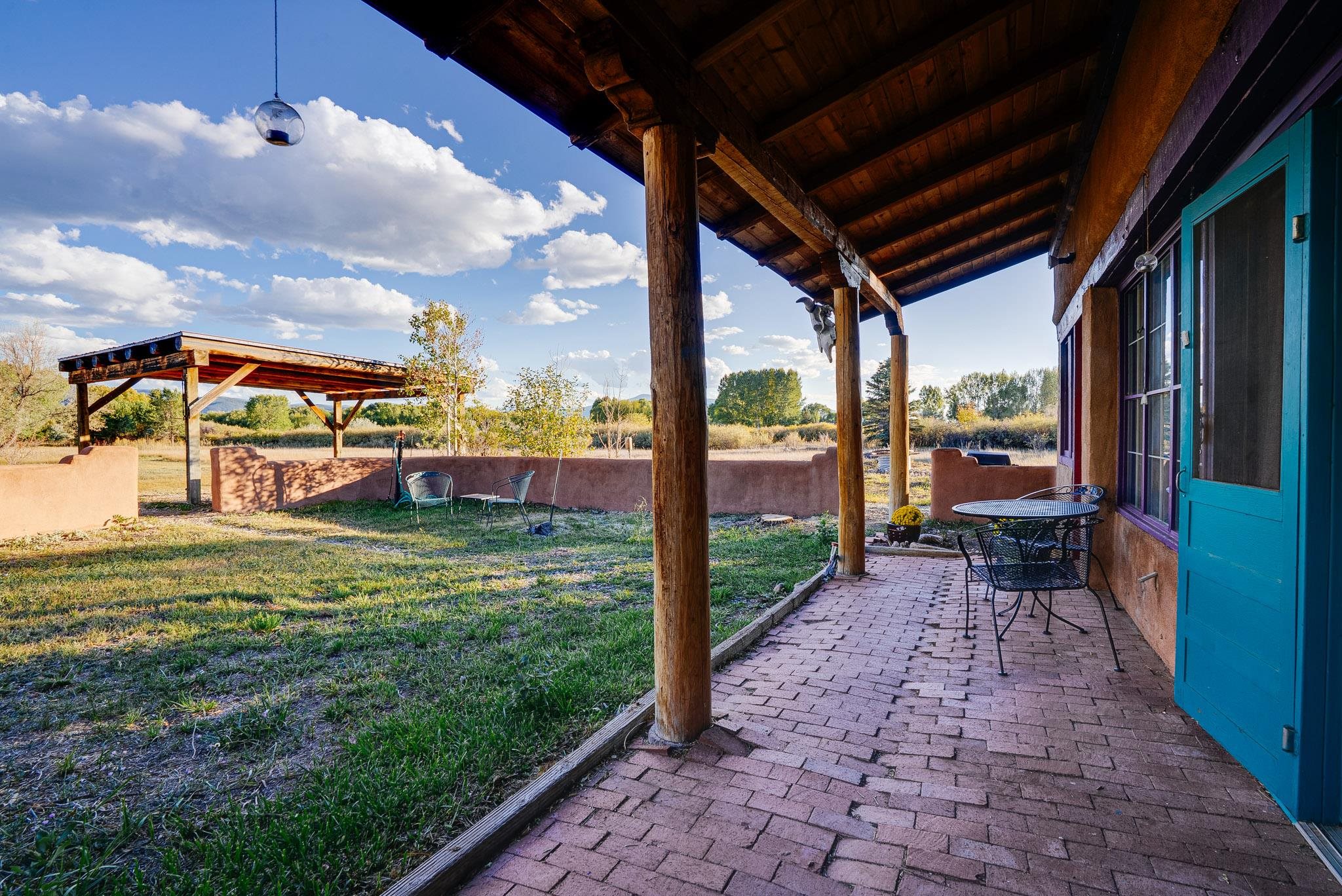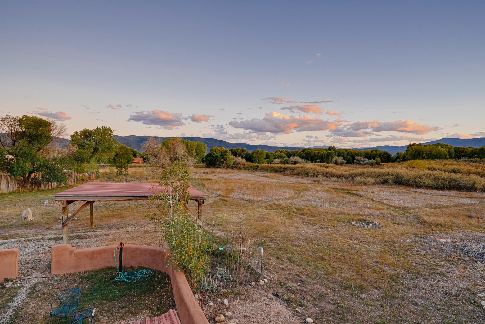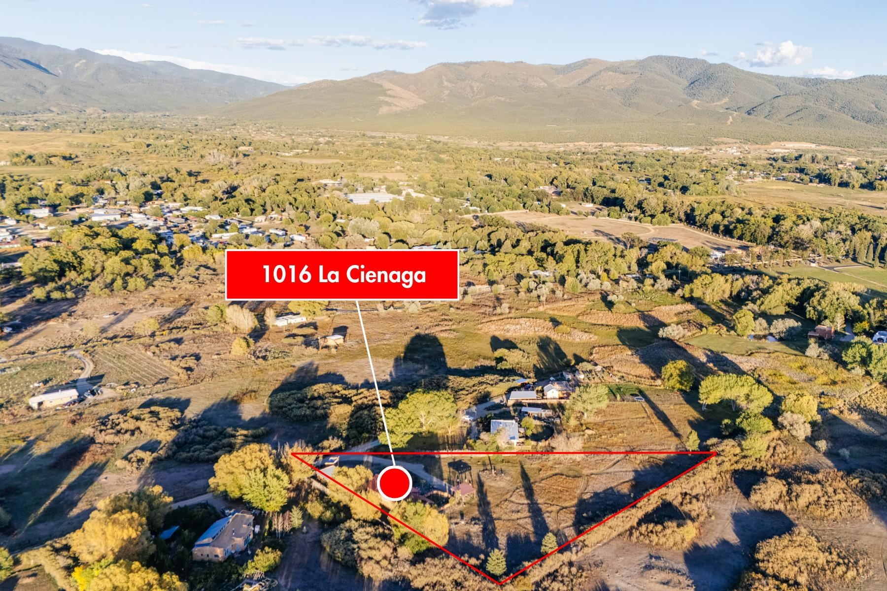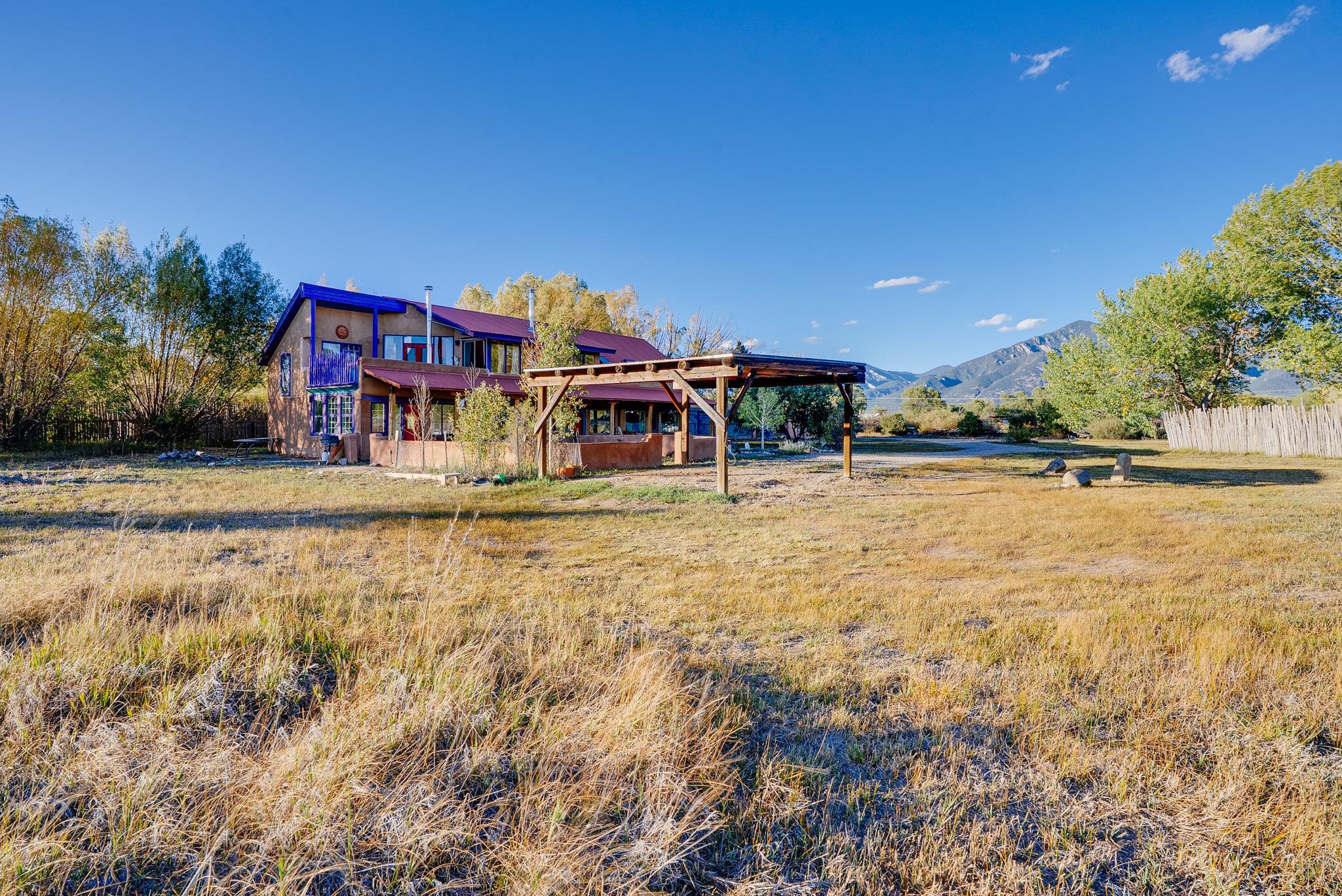 Drenched in vibrant color and situated on two acres of irrigated land in an enormously desirable location, this property, with wonderful views of both Taos Mountain and the Sangre de Cristos, invites you to bring along your imagination because 1016 La Cienega has a lot to offer its next owner. Four bedrooms/3 baths, a 4 car garage/studio space, rental property, storage, mini split, carport and more! La Cienega is one of those roads that is close to town and yet feels like it's a world away. This is a neighborhood in the true sense of the word. People watch out for one another here and yet it is quiet, private and rural with Pueblo Land on two sides. The main house is a celebration of festive color that echos the artistic spirit of Taos. An open living room and kitchen feature vividly colored tile and very high ceilings- feeling warm and alive. In the main house there are two bedrooms and one full bath and there is also a double door that connects to an additional bedroom and bathroom on the ground level. This design offers perfect flow for entertaining- leading out to a fabulous deck to watch sunset. Then, there is the adorable one bedroom/one bath income generating casita/apt. With convenient exterior doors, there are many opportunities for flex use for these spaces. Another door leads to a laundry room that could also be an office/studio/gym/yoga. In addition to all these interesting living spaces, there is a 4 car garage with electricity, additional storage area and a shed. Bring your vision, artistry and originality to this wonderful property. Call today for your private showing.
