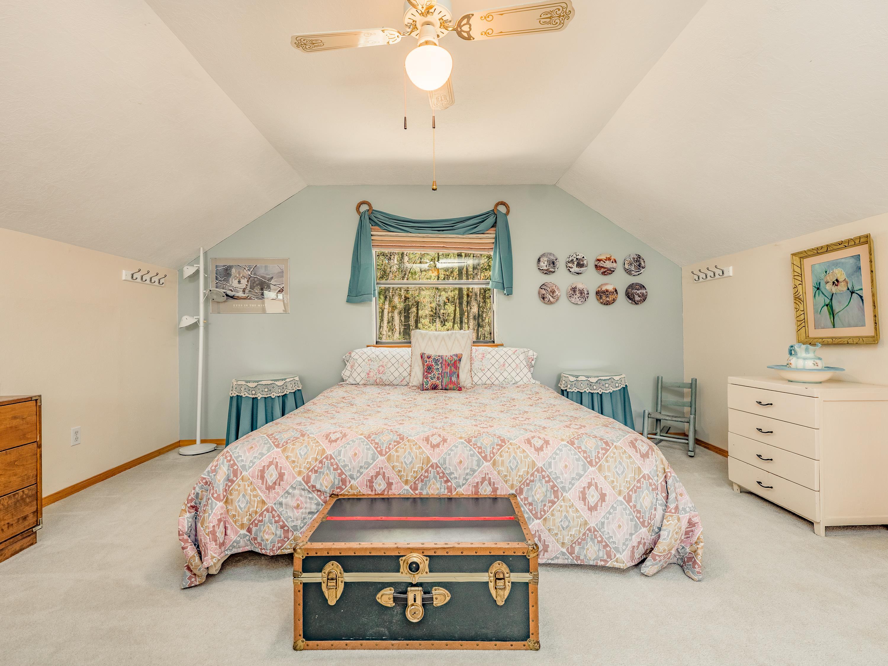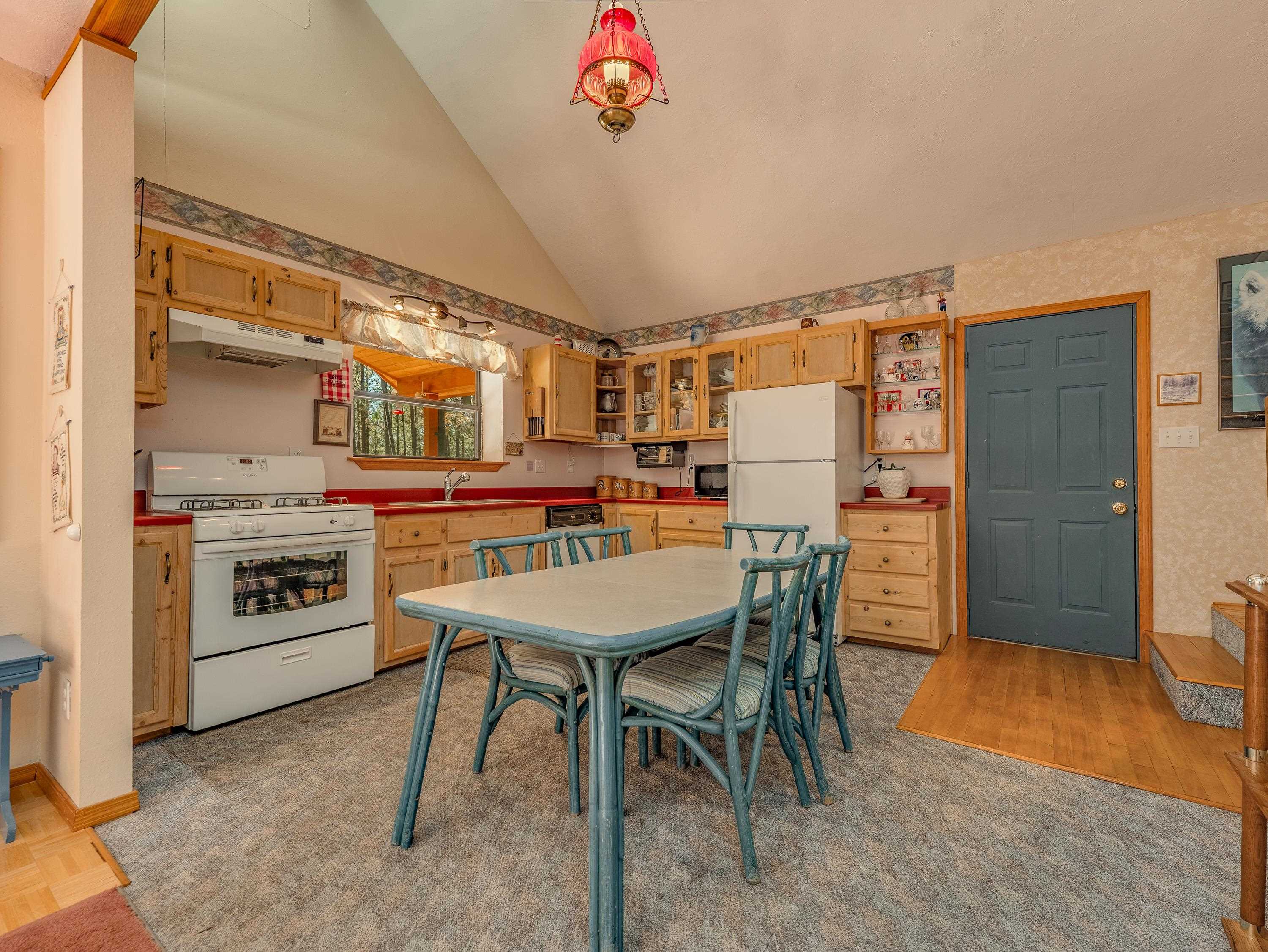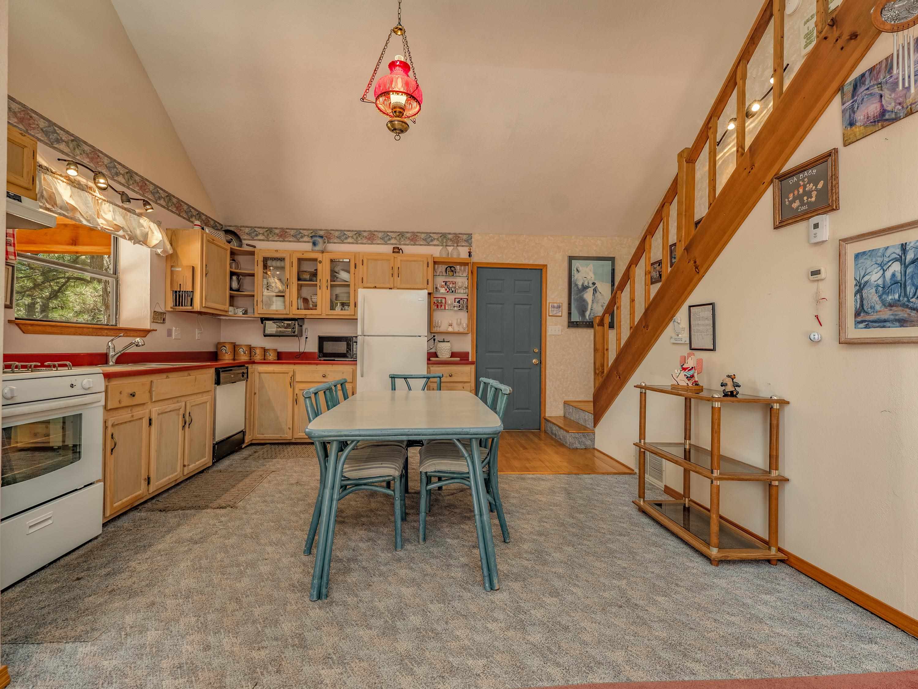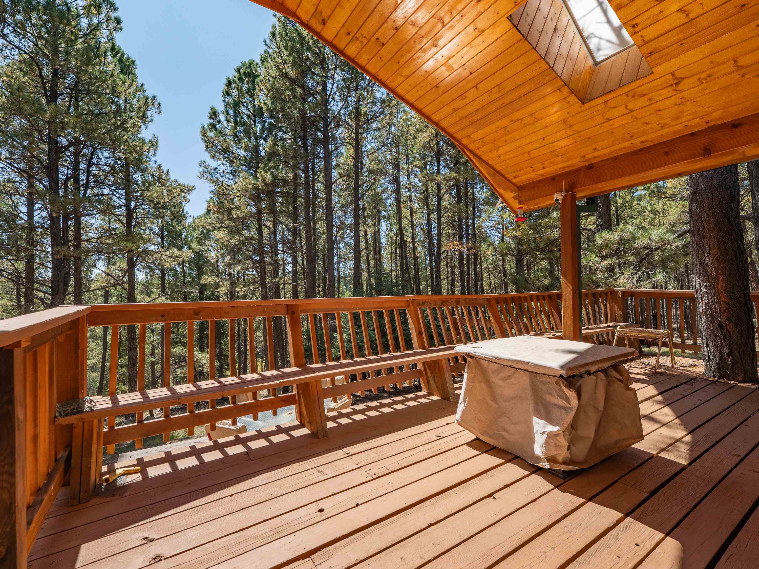 Immerse yourself in the heartwarming charm of 65 Conchas Drive, where grandmacore comfort meets timeless mountain living. Like a warm hug, the home welcomes you into its cozy living area, where a south-facing window wall spills natural light across the space. The kitchen is a nostalgic delight, blending warm-toned cabinets with cheerful retro red countertops—perfect for recreating Grandma’s recipes or gathering for late-night cocoa. The primary suite offers sweet dreams with its own ensuite featuring a walk-in shower, while a cozy guest room invites just one more bedtime story. Upstairs, a versatile space awaits—perfect for stacking Lincoln logs with kids or hosting extra guests. Step outside onto the sunlit deck and take in the scent of pine carried on the mountain breeze, with greenbelt trails bordering two sides of the extra-large property (three combined lots for only one membership!)—for hiking and biking right out your door. This well-loved home is ready to continue its tradition as a place where memories are made, all within minutes of Angel Fire Resort amenities and the conveniences of the village.