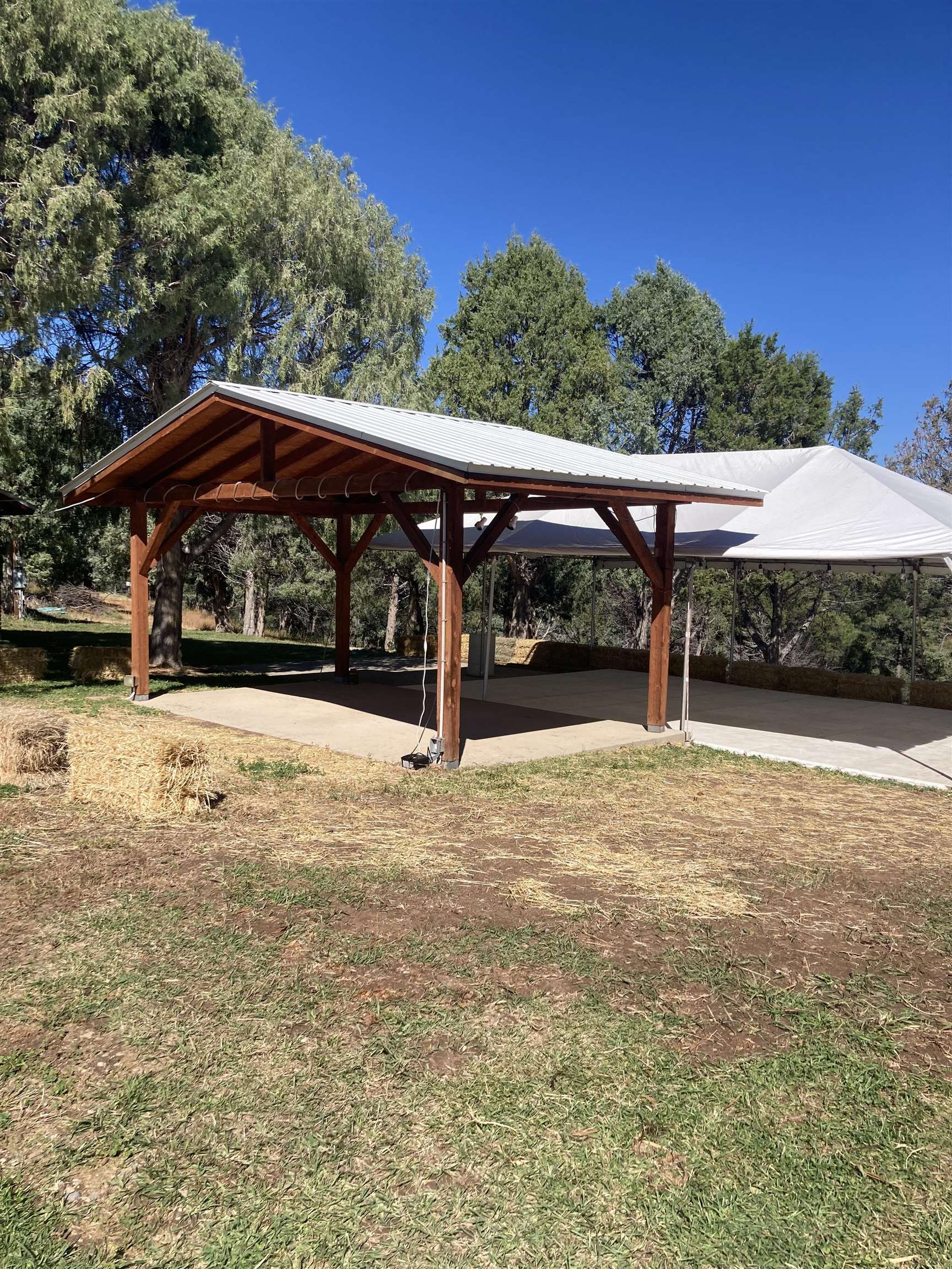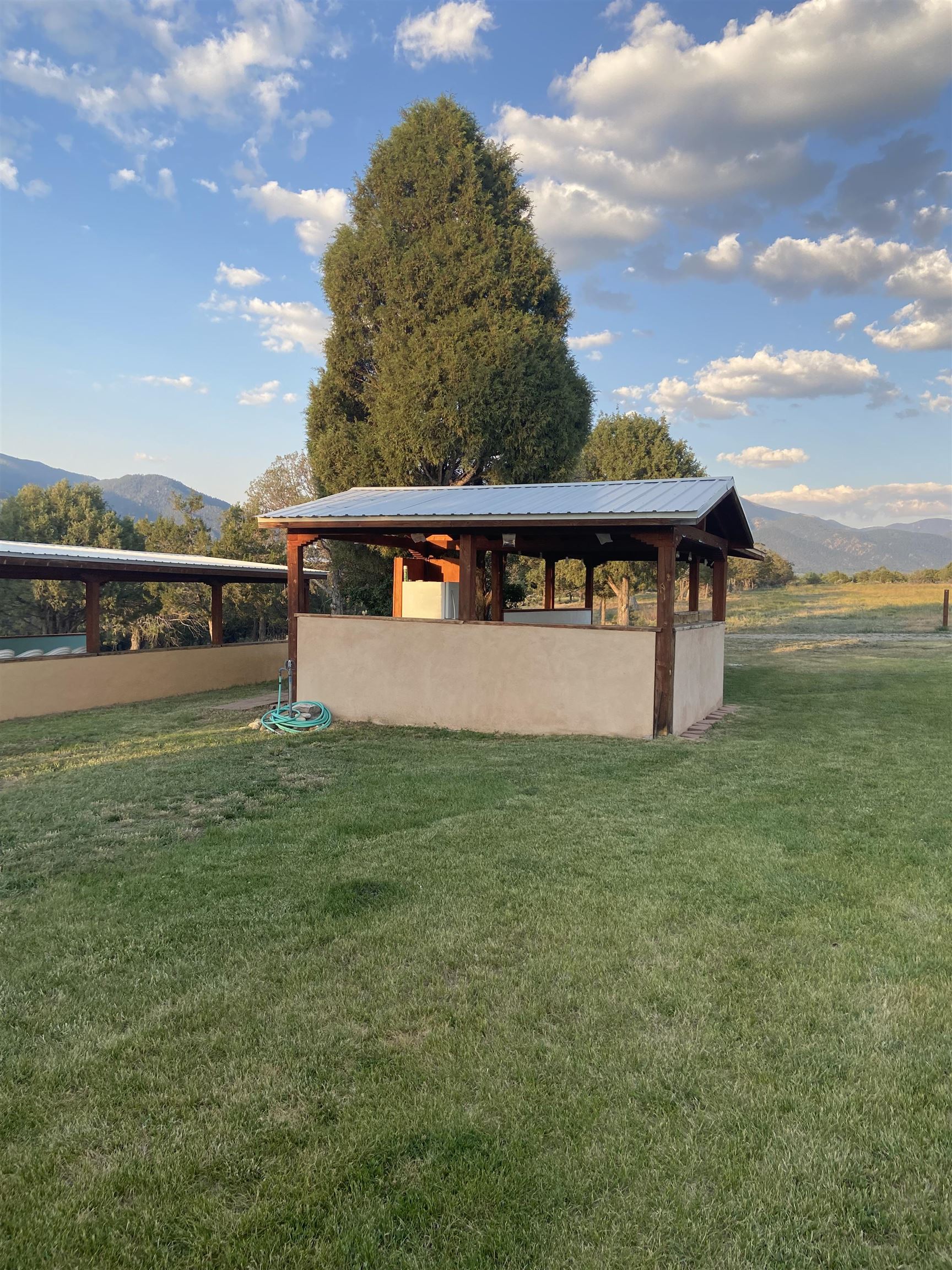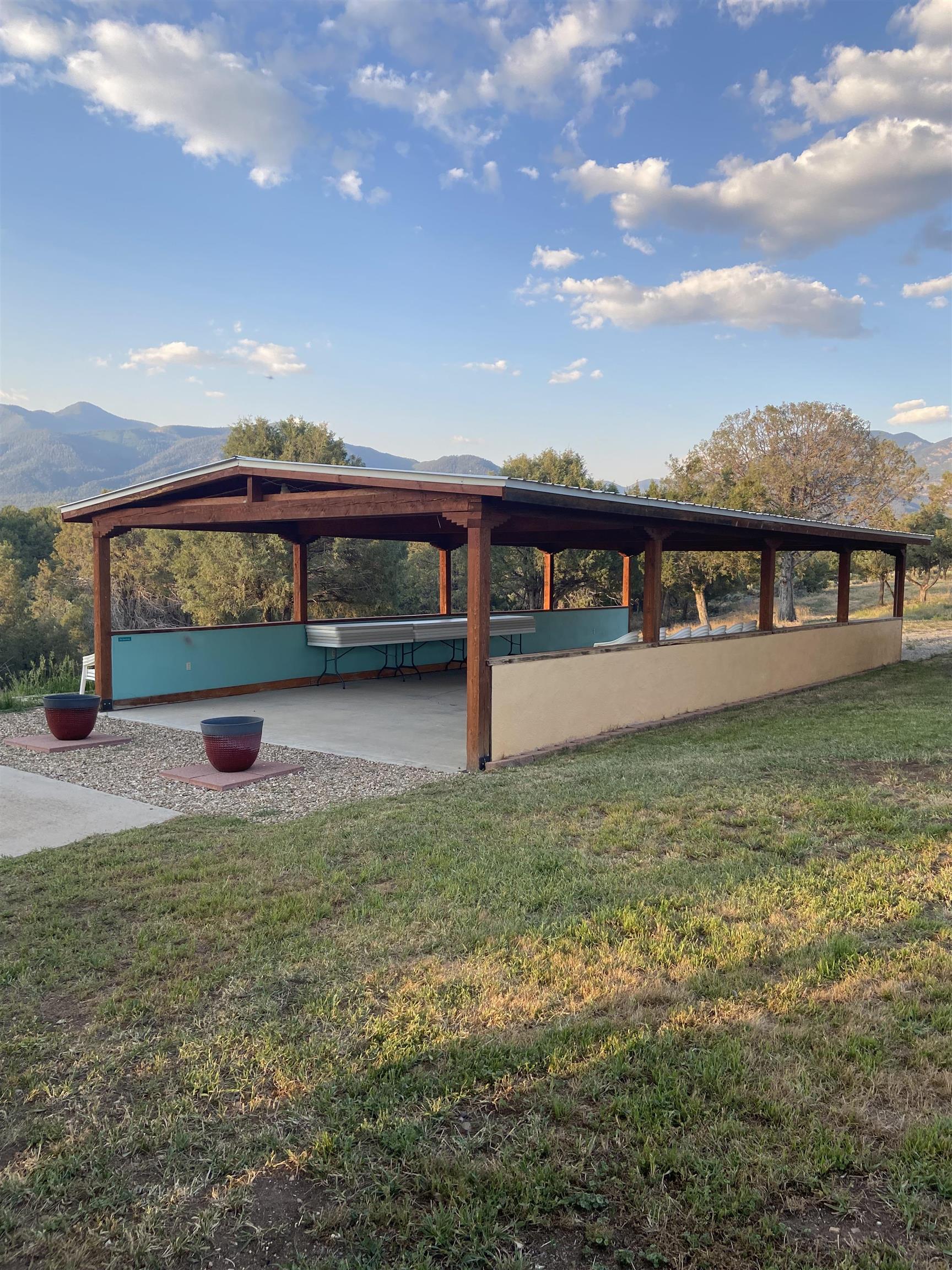 Magic Exists at Los Pino’s Park in Northern New Mexico ~ If you're from Northern New Mexico, you likely know ALL about this truly one-of-a-kind property. If you don't know about the magic of Los Pino's, you will when you lay first eyes or first step foot on the Land. Nestled in the shadow of Taos Mountains in Northern New Mexico near Taos Ski Valley, minutes from iconic Downtown Taos, near the Rio Grande river, and close to Taos Ski Valley, you will discover this lush and primarily flat 4.33 acre parcel with a Water Well and Acequia Surface Water Rights with an impeccable outdoor event space infrastructure. Comes with it, an astounding reputation, and plenty of potential. Los Pino’s Park is special, and for decades has served as a lively, and vibrant event space, in Nature, for guests to celebrate all of life's important moments under bright stars and well lit gazebos, around the custom bar, that sit atop solid concrete pads all powered by buried electric and water lines surrounded by five (5) hydrants. All of this may be left as is while continuing to host Special Events, such as, weddings, family reunions, anniversaries, graduations, birthdays, and so on... Perhaps you take it up a notch to entertain clients and host corporate functions with plenty of space for parking, or building multiple units for retreats. Better yet, you make this your own private sanctuary in the NM High desert, design your dream home to incorporate the already developed infrastructure in place, with a giant yard for pet’s to roam freely, and the children to play on nearly four and a half acres. It doesn't get much better than this, don't miss the opportunity!