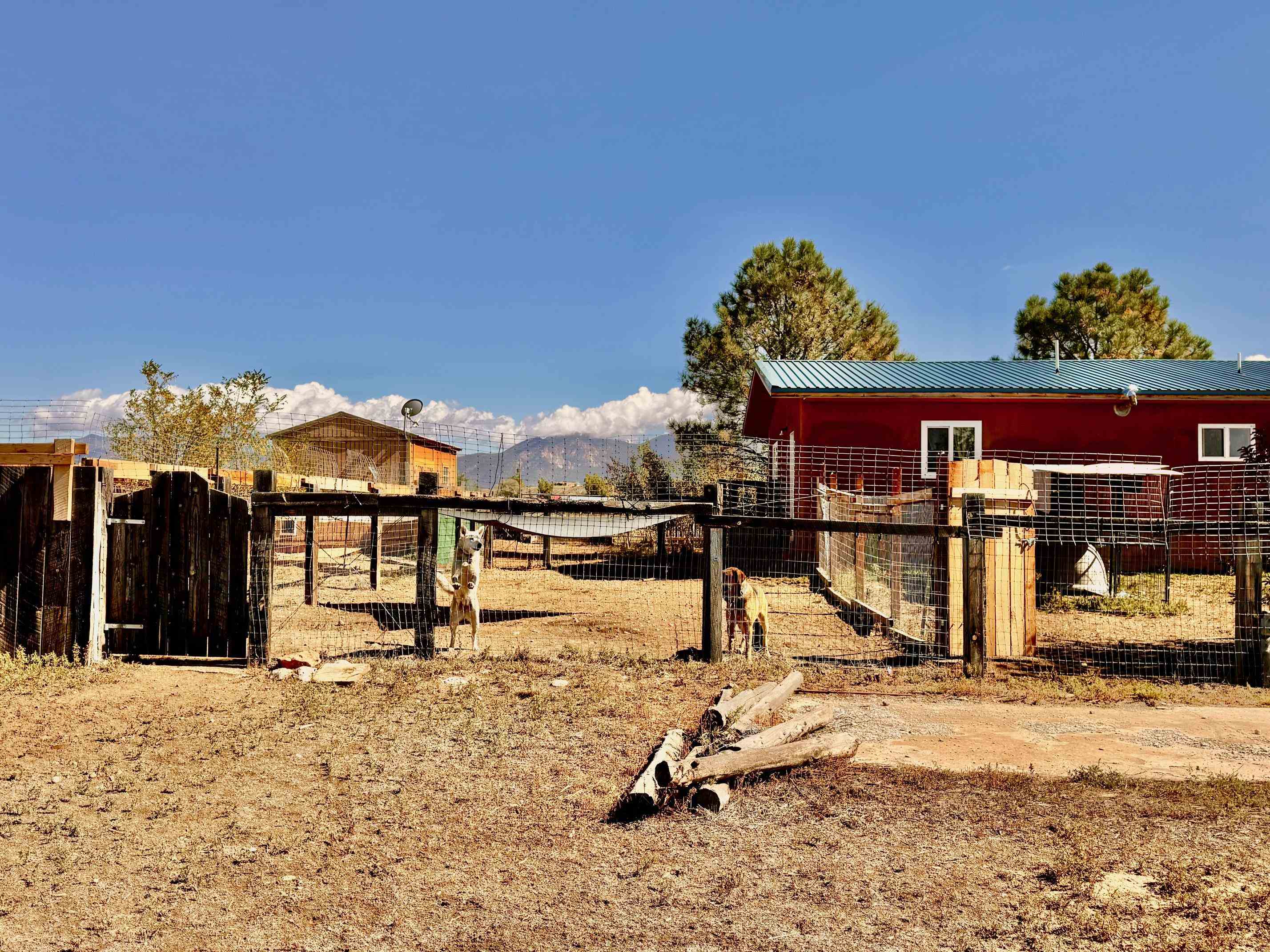 Discover this delightful 2 bedroom, 1 bath house featuring an attached 2 car garage ,Nestled on a private one acre lot. It's perfect for horse lovers and pet owners alike - with fenced areas for horses and dedicated runs for dogs. Enjoy breathtaking views from your doorstep.. Additional highlights include a versatile shed that can serve as a studio or storage space or workshop. Don't miss the opportunity to own this peaceful retreat with plenty of outdoor space and great vistas. Approximately 5 minutes to town of Taos