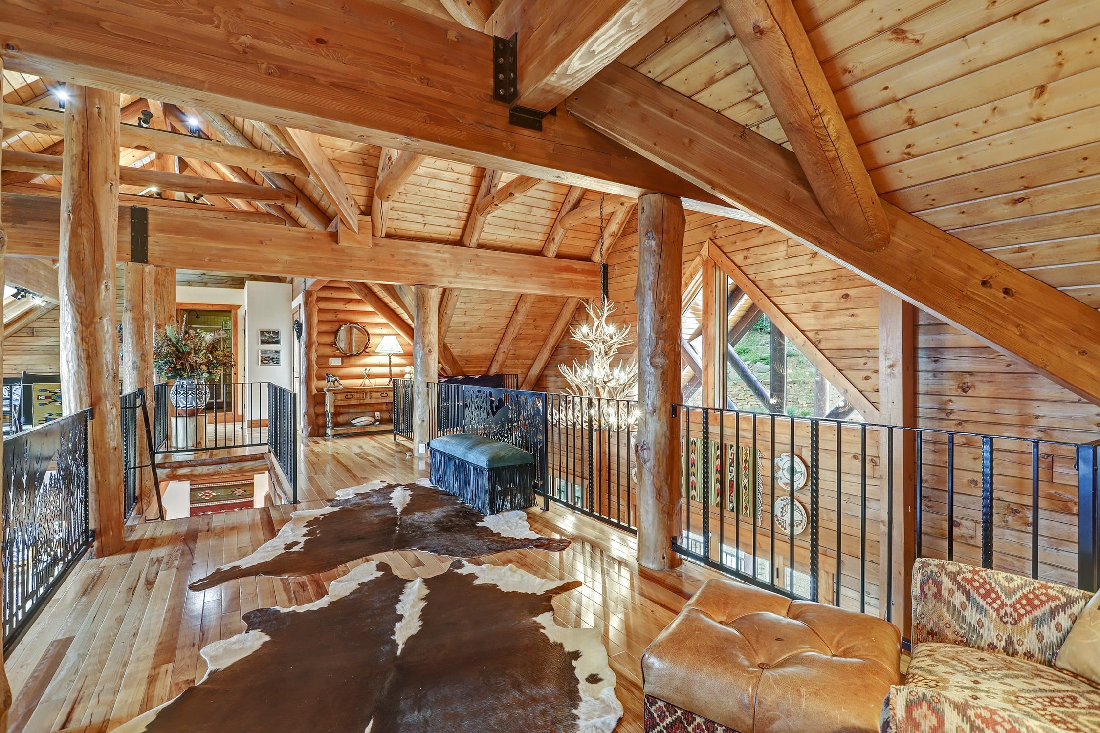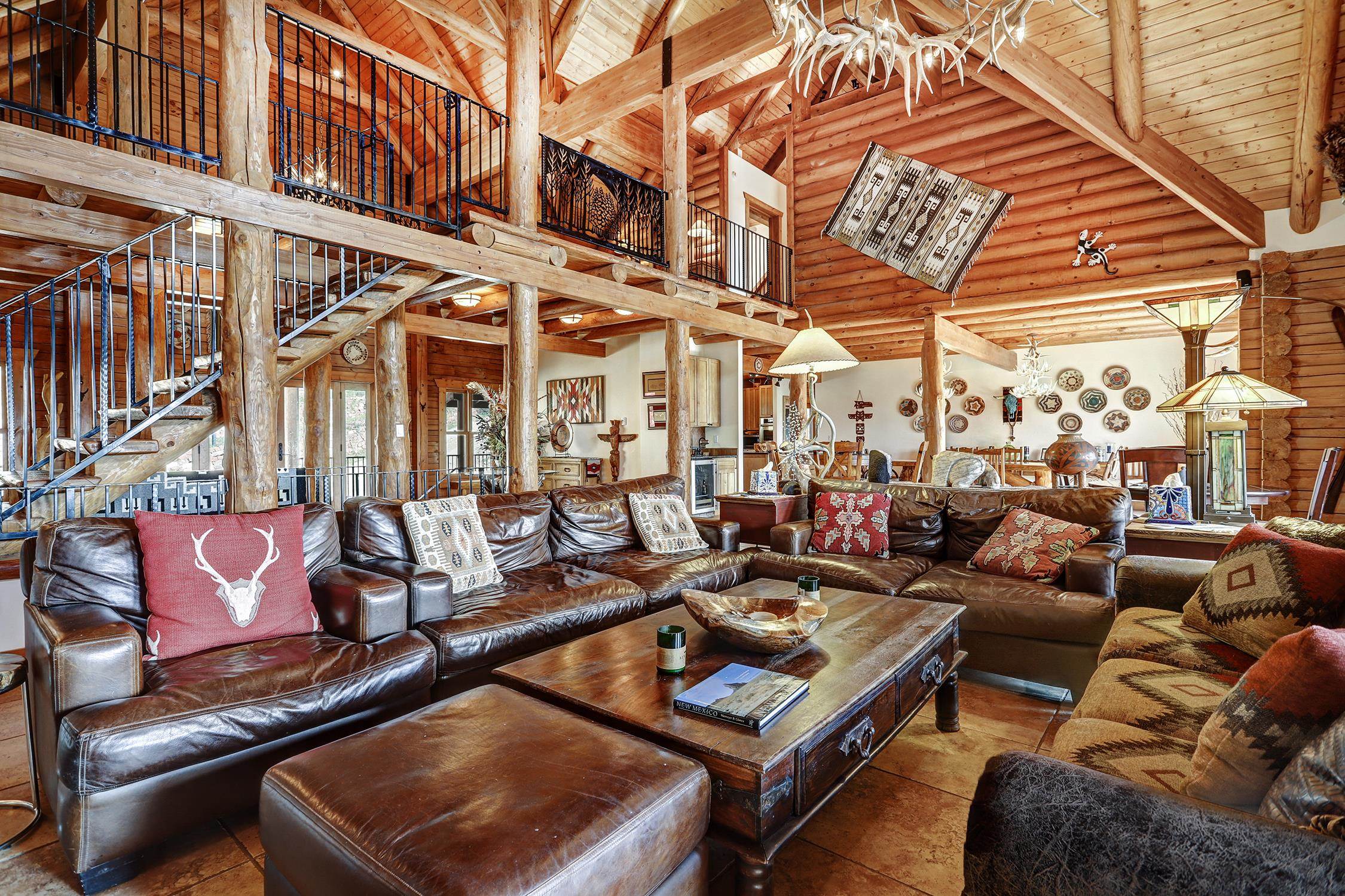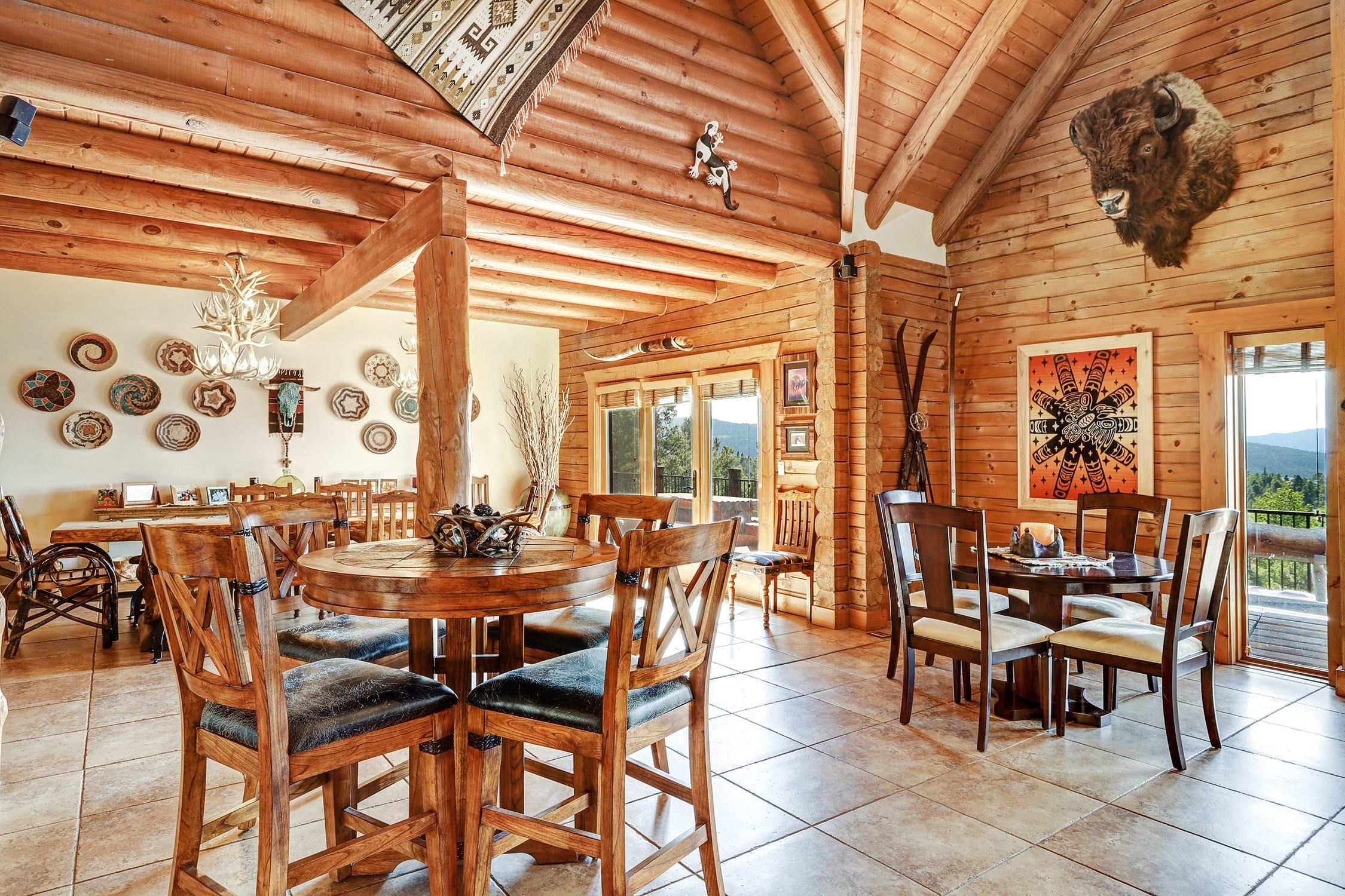 From the moment you step into the entry you know you are in a luxurious mountain log home. It's a large home with a warm and cozy feel. Picture yourself watching the sunset from the expansive deck, or maybe the hot tub. There are incredible views of Wheeler Peak from every window. Entertain your family and friends with 5 bedrooms, 4.5 bathrooms, an office, a large bunk room, two game areas, 6 garage spaces (2) of which are heated. Beautiful finishes throughout the home, with granite counters, D-Log walls (requires no chinking), tile and hickory wood floors, custom iron handrails, a huge rock fireplace in the great room, spacious dining room and kitchen with upgraded appliances. Large utility room with washer & dryer. Heating is a combination of in-floor radiant, hot water baseboard and three fireplaces. The home is on 2.66 acres and the adjacent lot is included in the sale.