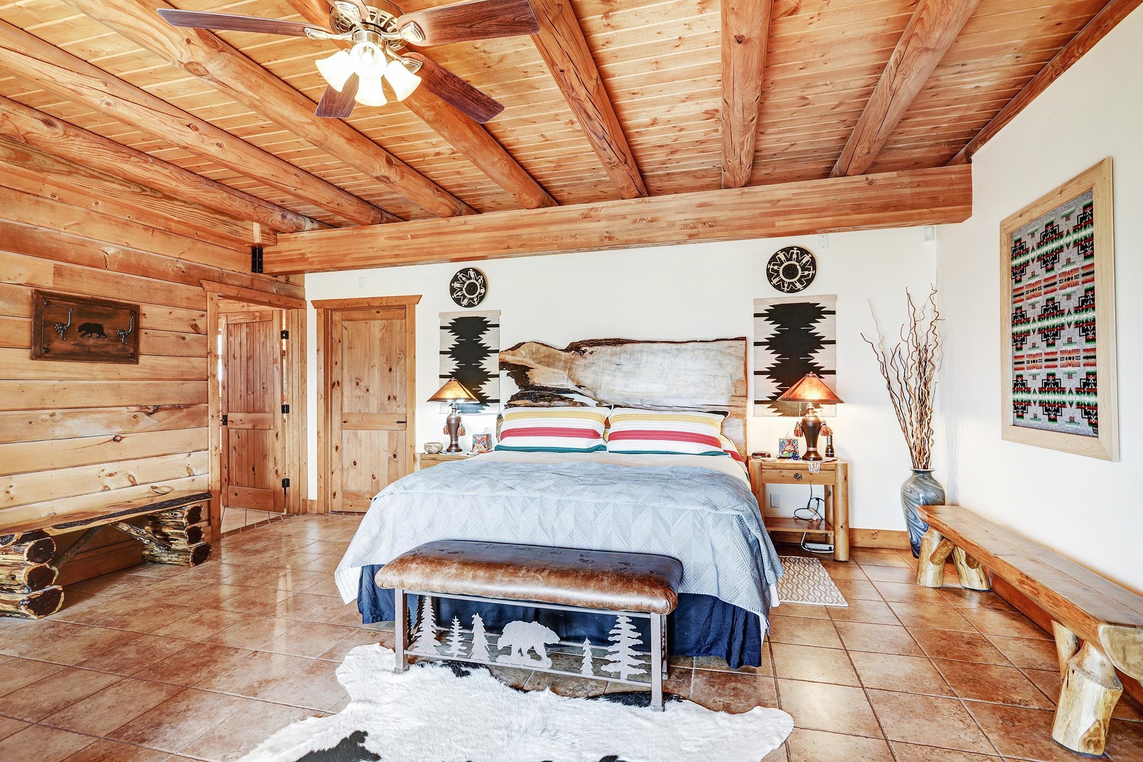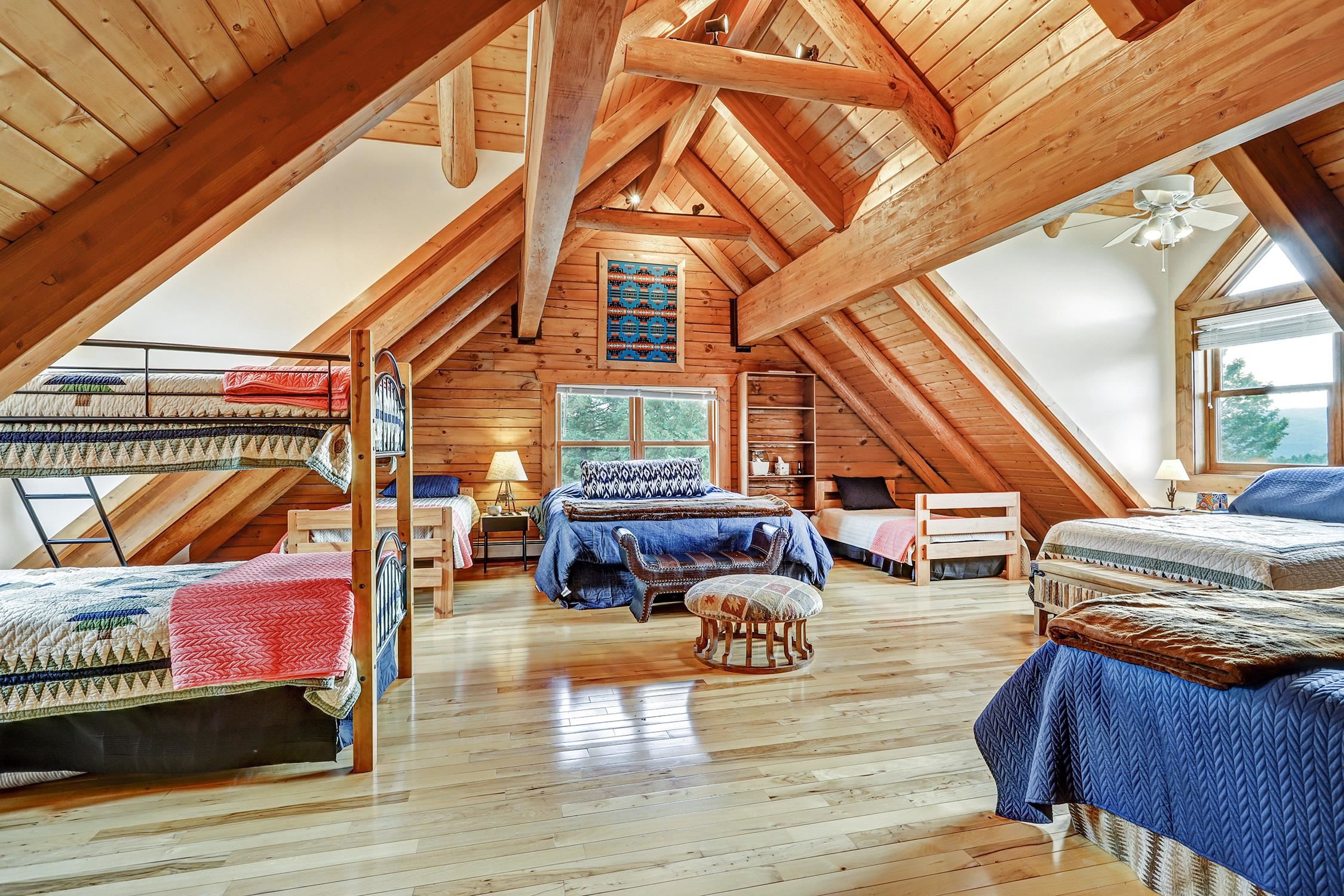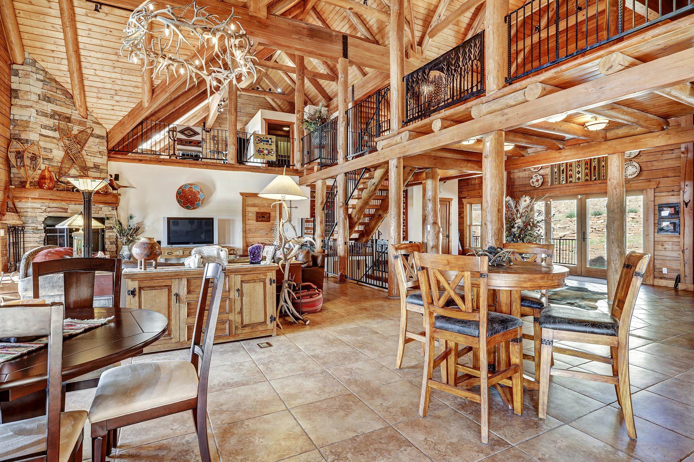From the moment you step into the entry you know you are in a luxurious mountain log home. It's a large home with a warm and cozy feel. Picture yourself watching the sunset from the expansive deck, or maybe the hot tub. There are incredible views of Wheeler Peak from every window. Entertain your family and friends with 5 bedrooms, 4.5 bathrooms, an office, a large bunk room, two game areas, 6 garage spaces (2) of which are heated. Beautiful finishes throughout the home, with granite counters, D-Log walls (requires no chinking), tile and hickory wood floors, custom iron handrails, a huge rock fireplace in the great room, spacious dining room and kitchen with upgraded appliances. Large utility room with washer & dryer. Heating is a combination of in-floor radiant, hot water baseboard and three fireplaces. The home is on 2.66 acres and the adjacent lot is included in the sale.