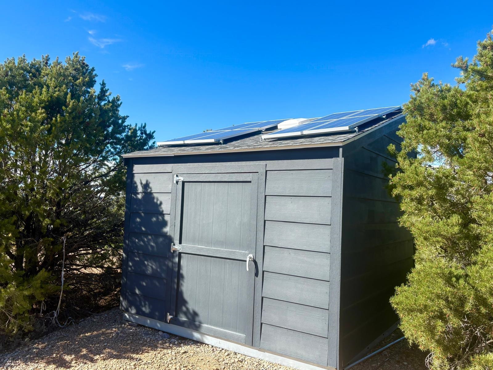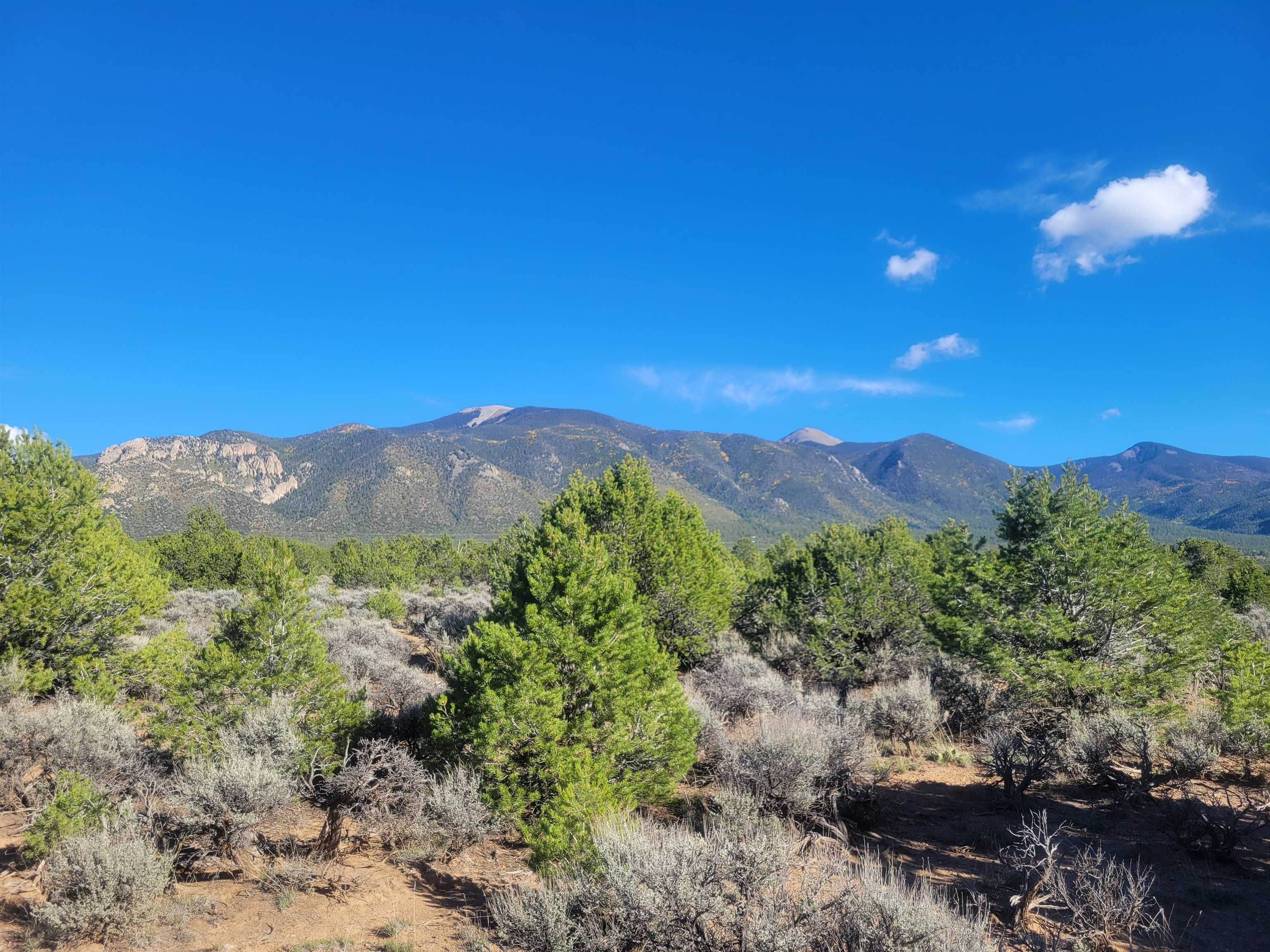 This is a place which needs to be seen in person as pictures won't do it justice. Nestled in between the pinon and juniper trees at the base of the Latirs, this peaceful and serene 5-acre improved lot has so much to offer. Three separate structures are already present. Each one is plumbed. Two of them can be turned into whatever your imagination brings. The current owner was going to house artists. The third structure houses the well, which is powered by solar cells. Electric is right by the lot however, should you want to tap into the grid. The lot has been cleared, and gravel driveways are already there. This is a must see for anyone looking for a special place.