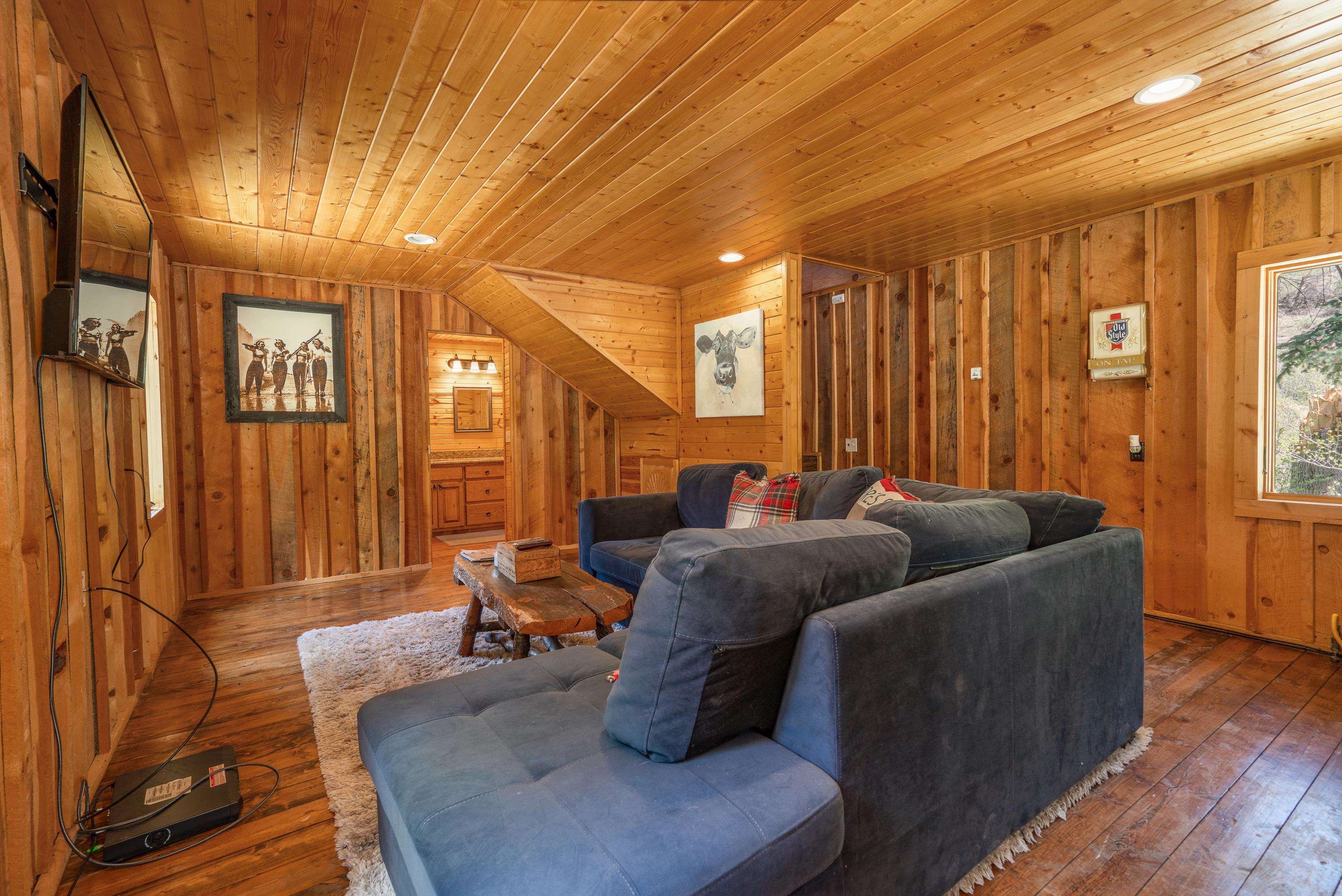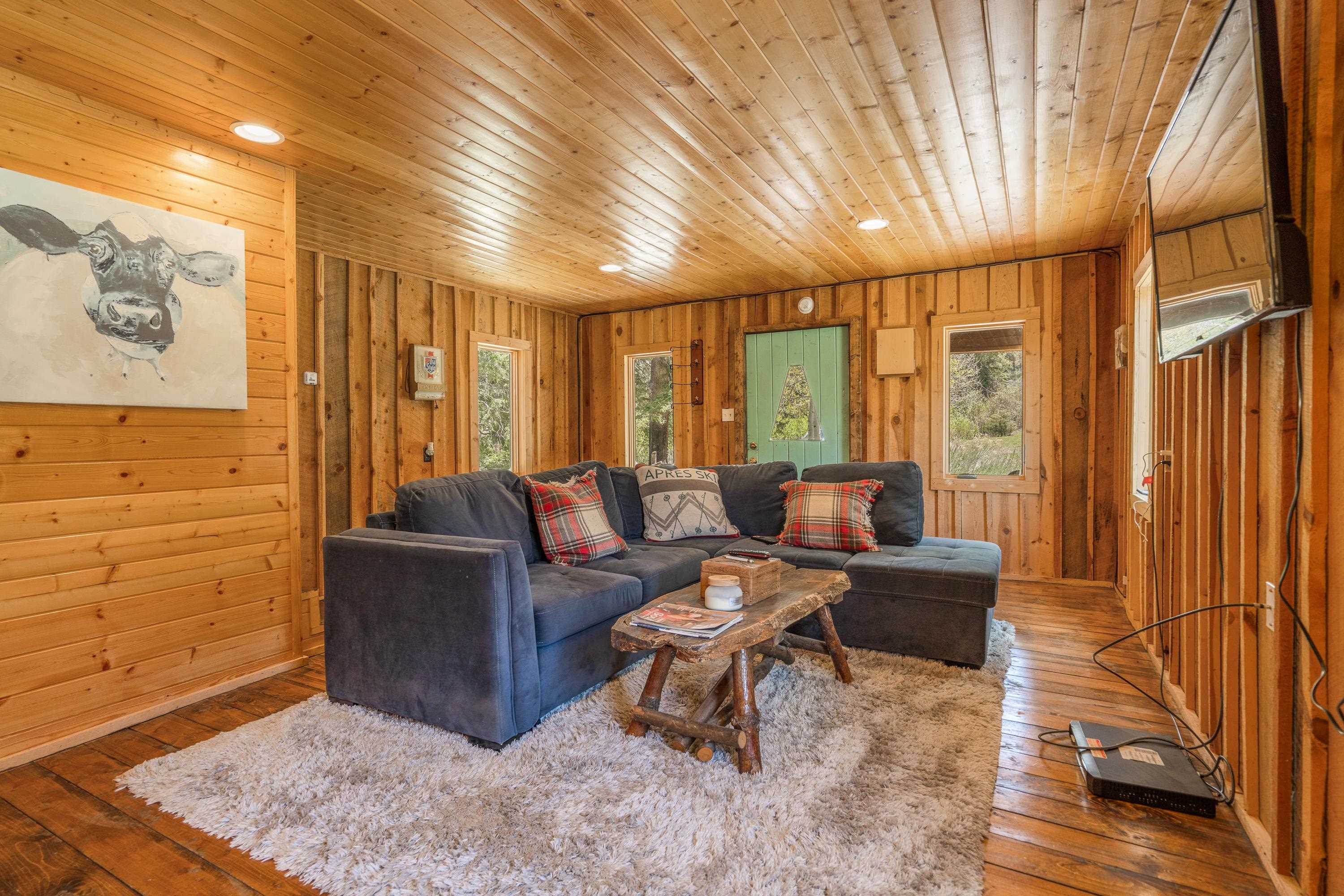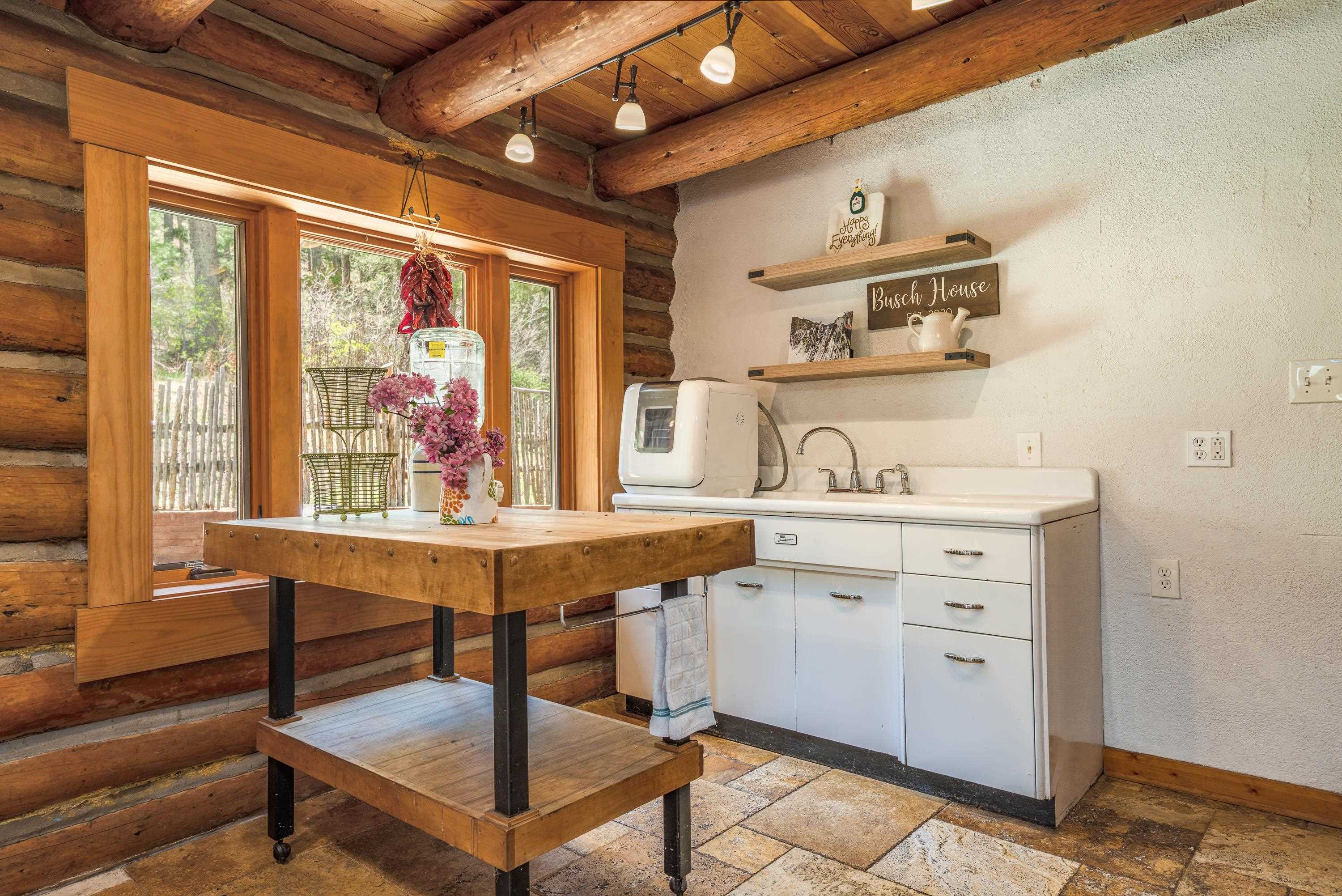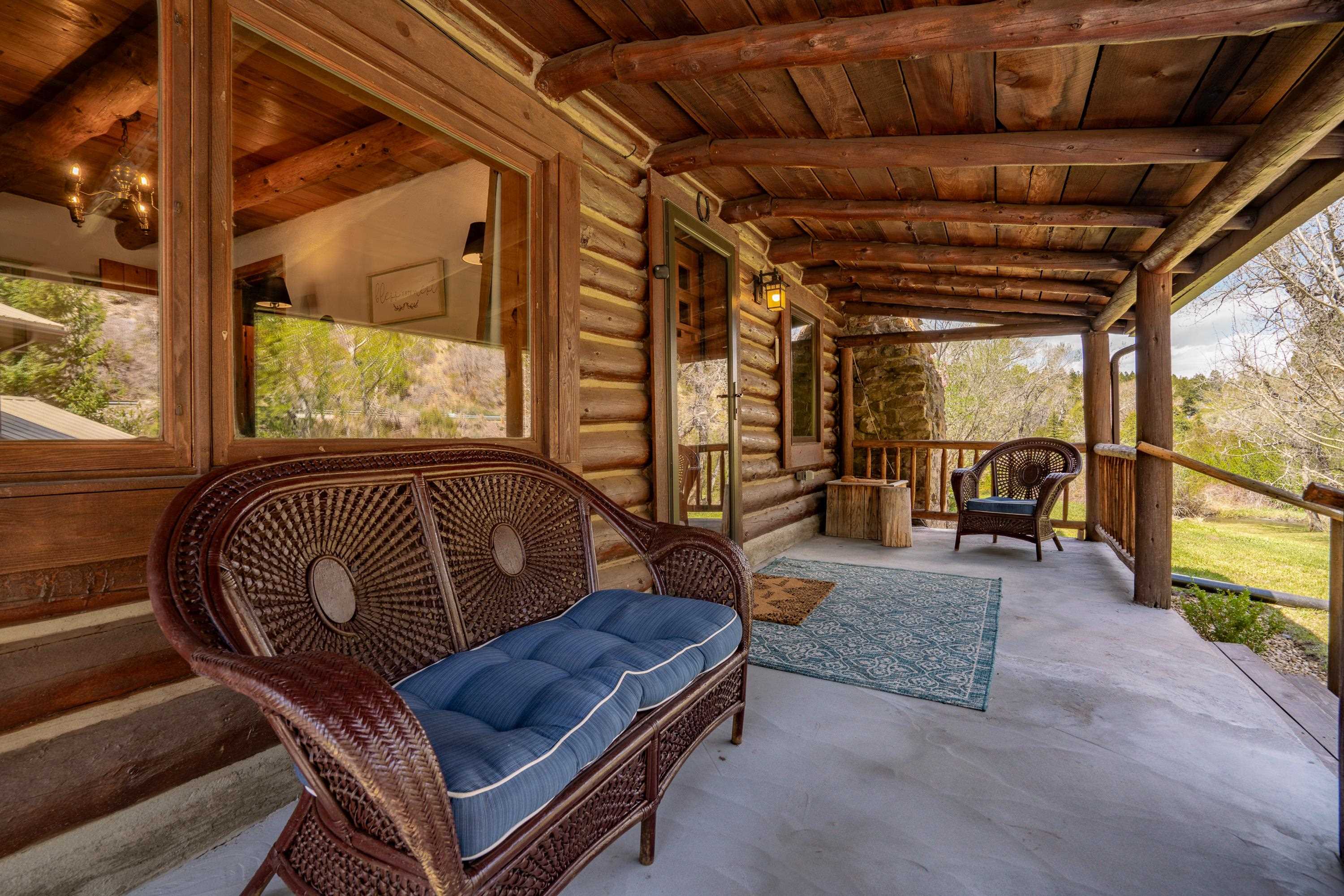 This 7.57-acre property includes a main house and a guest house, with the Rio Fernando running along the entire front portion and the Carson National Forest bordering the back portion. The main house is 1,780 sq ft with 2 bedrooms and 2 bathrooms—one with a shower, the other with a bathtub. It includes a large living room with a grand stone fireplace, a sunroom, and a fenced backyard perfect for pets, and a hot tub easily accessed off the master. The kitchen has travertine floors, a large enamel farm sink, new double door fridge, large pantry, and a light filled breakfast area with views of the surrounding forest. There’s a dedicated laundry room with additional cabinet storage. The home’s flooring includes oak in the living room and aged pine in the bedrooms; soft on the toes and warm in the winter! The master suite features a wood-burning kiva fireplace, a large walk-in closet, and an en suite bathroom. A stone patio with a built-in wood-fired grill sits off the kitchen and the front porch is covered and has a inviting view; two of many places around the property to enjoy the outdoors. A lawn gently slopes away from the main house leading to the river where you can find several good spots for sitting near the water. Stacked stone walls add borders where needed. The guest house is 1,168 sq ft with 1 bedroom and 1 bathroom. It has multiple closets for storage, and a large downstairs area suitable for use as a game room, living space, art studio, or anything else you may desire. The covered porch off the guest house keeps you dry when he thunderstorms roll in and would be a great place to put a chat set. A storage shed provides extra space; great for wood storage or all the gear you don’t want in the house! If the home and guest house were not enough, there are multiple building spots around the property, a couple with great views down the canyon. The acreage is comprised of two separate lots; affording you the ability to sell one or keep both! The property is accessed via a bridge over the Rio Fernando, making it an easy property to secure if you are away for long periods of time. You won’t be disconnected from the world as there is a high speed internet connection! The main house has forced air heating while the guest house has two gas heaters, both run off propane. A private well supplies all domestic water. This is the property dreams are made of; you’ll want to stay if you come visit so be prepared when booking a showing!
