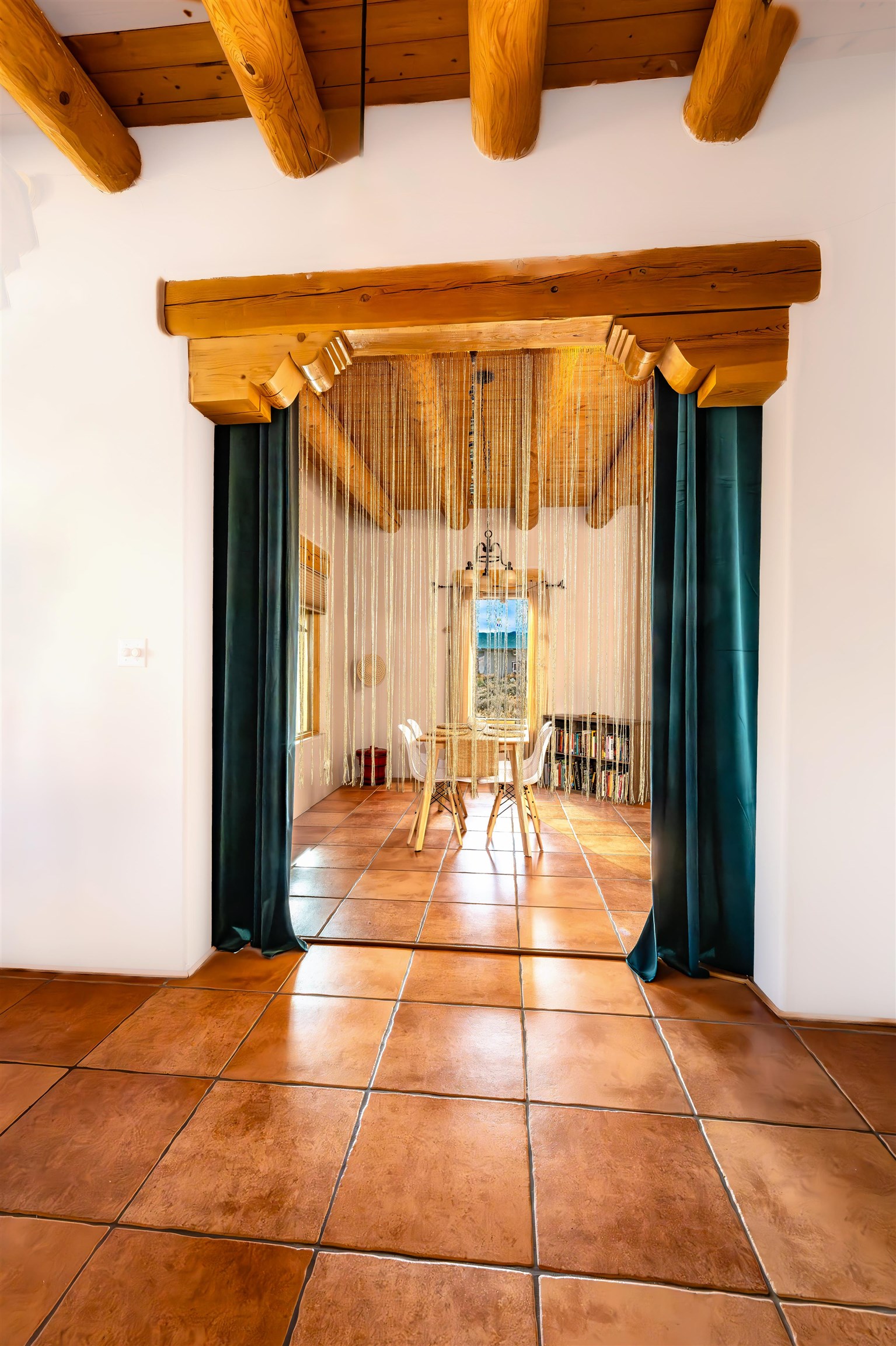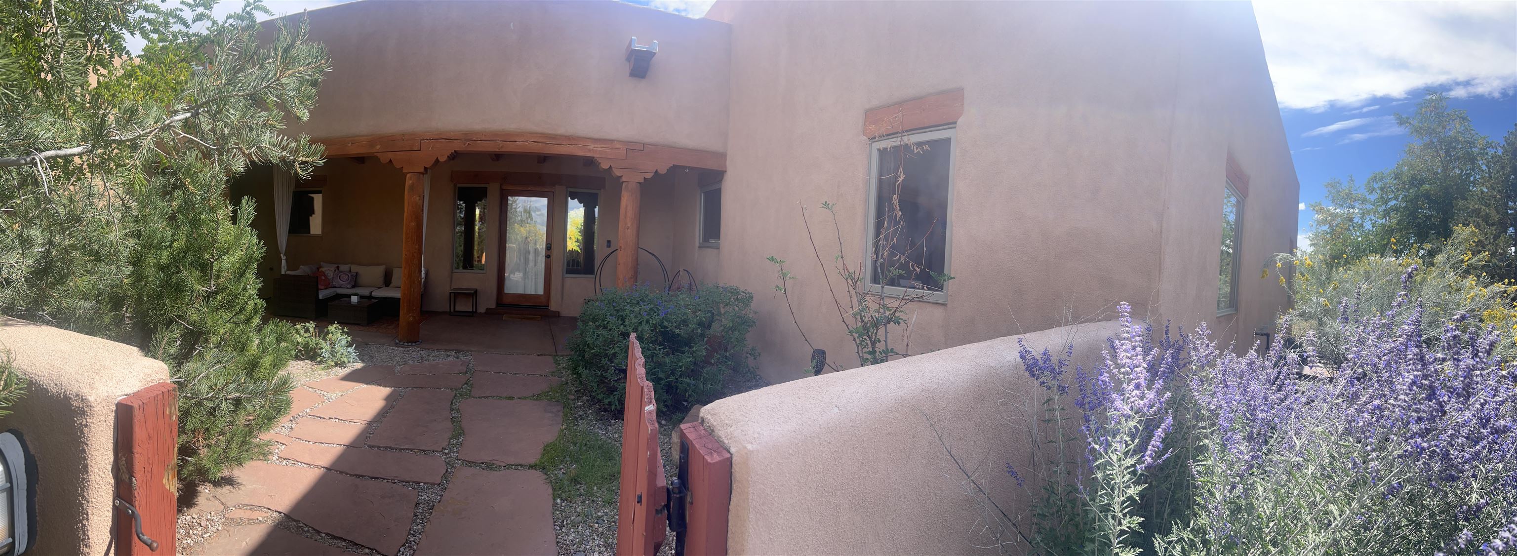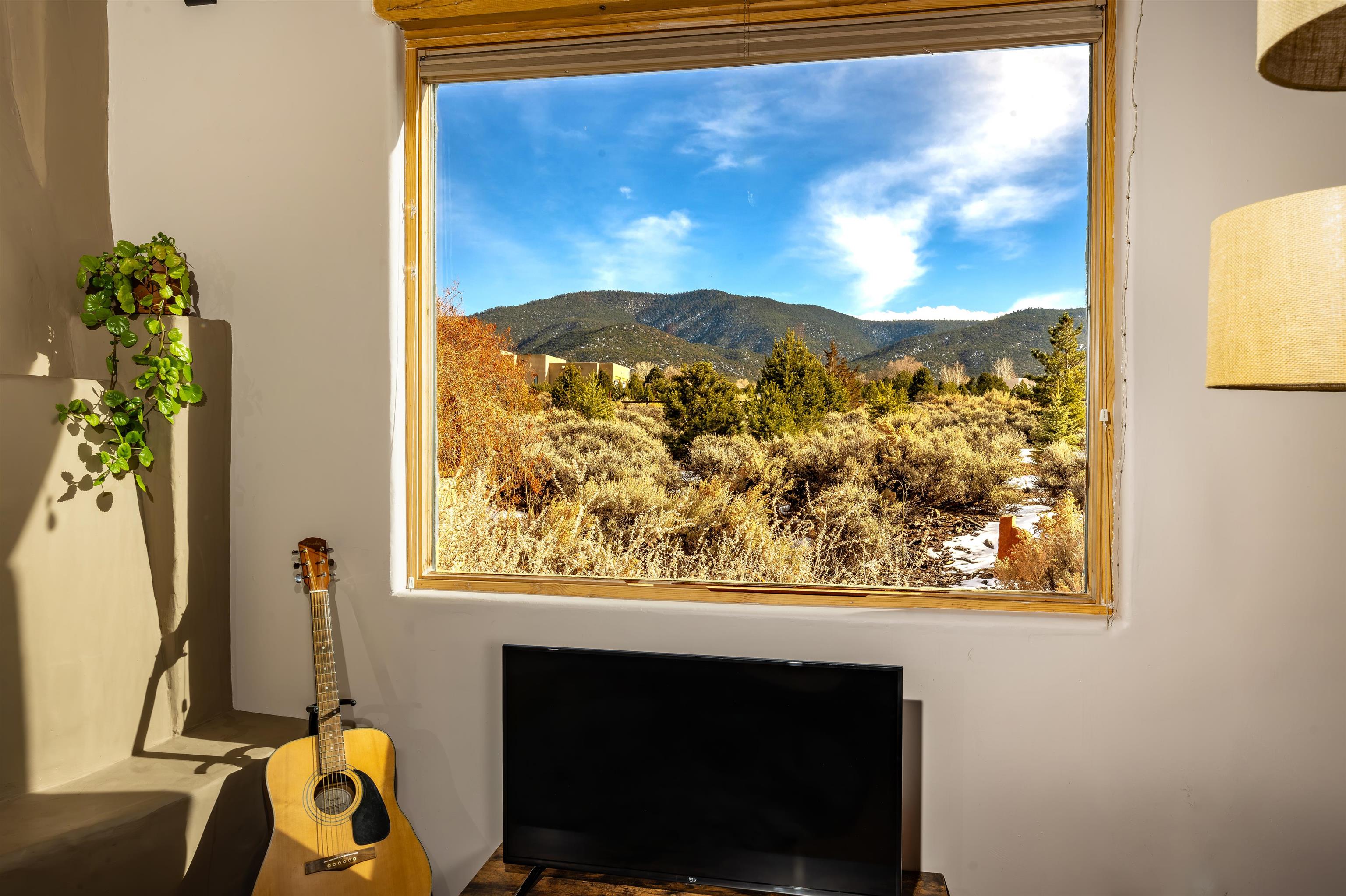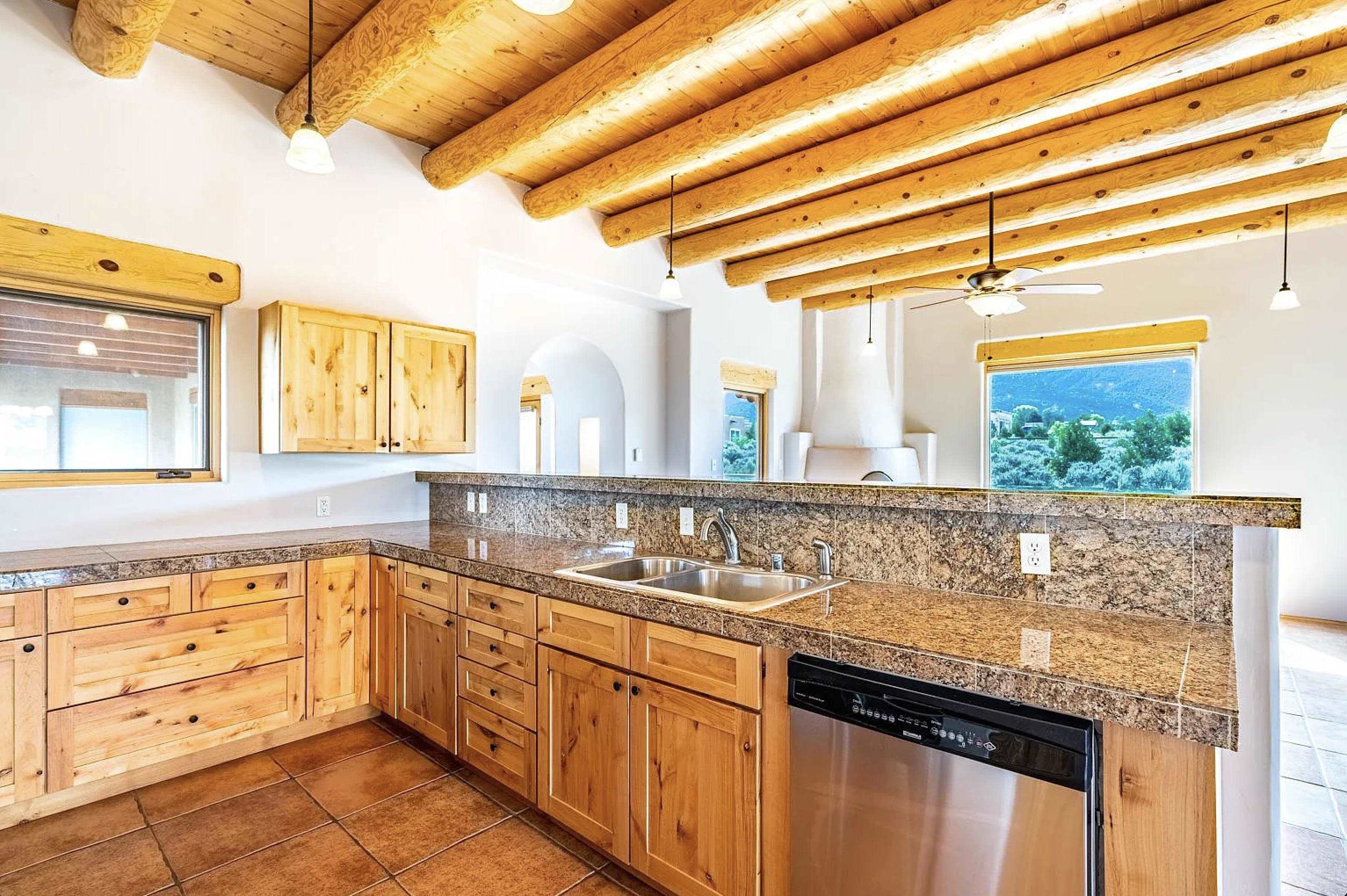 Beautiful, bright, turnkey single-level Pueblo-style home in the desirable Dos Arroyos neighborhood with breathtaking mountain views. Featuring 3 bedrooms, 2 baths, and 1,793 sq ft, this property combines traditional Taos charm with modern comfort. Spacious interiors showcase extra tall ceilings with exposed vigas and detailed woodwork throughout, complemented by two kiva fireplaces, and additional 255 sq ft sunny studio. Offers natural gas radiant floor heat throughout, a heated double garage, and custom kitchen cabinetry. Boasts a spa-like setting with cedar barrel sauna, outdoor shower, and salt water hot tub! Option for furnishings to convey via bill of sale upon buyers request. Fast fiberoptic internet. The home sits on a 0.25-acre lot with mountain views and easy access to hiking trails, Holy Cross Hospital, and Taos Plaza. Key Features: - 3 Bedrooms / 2 Bathrooms - 1,793 sq ft (approx.) - Lot: 0.25 acres / 10,802 sq ft - Year Built: 2007 - Natural Gas radiant floor heat - Attached 2-car radiant floor heated garage - Pueblo/Southwestern, single level - Hot Tub - Cedar Sauna - Xeriscape Landscaping with drip irrigation. Interior Highlights: - Soaring ceilings with exposed vigas & woodwork detail - Open floor plan with abundant natural light - Two kiva fireplaces (living room & master) - Tile flooring - Custom cabinetry & built-ins - Sunroom + covered portals for indoor/outdoor living - Fast fiberoptic internet - Stainless kitchen appliances Community: - Subdivision: Dos Arroyos - Low HOA Fee: Only $513/year (approx. $43/month) - Near Holy Cross Hospital & Dos Arroyos Trail system - 5 minutes to Taos Plaza
