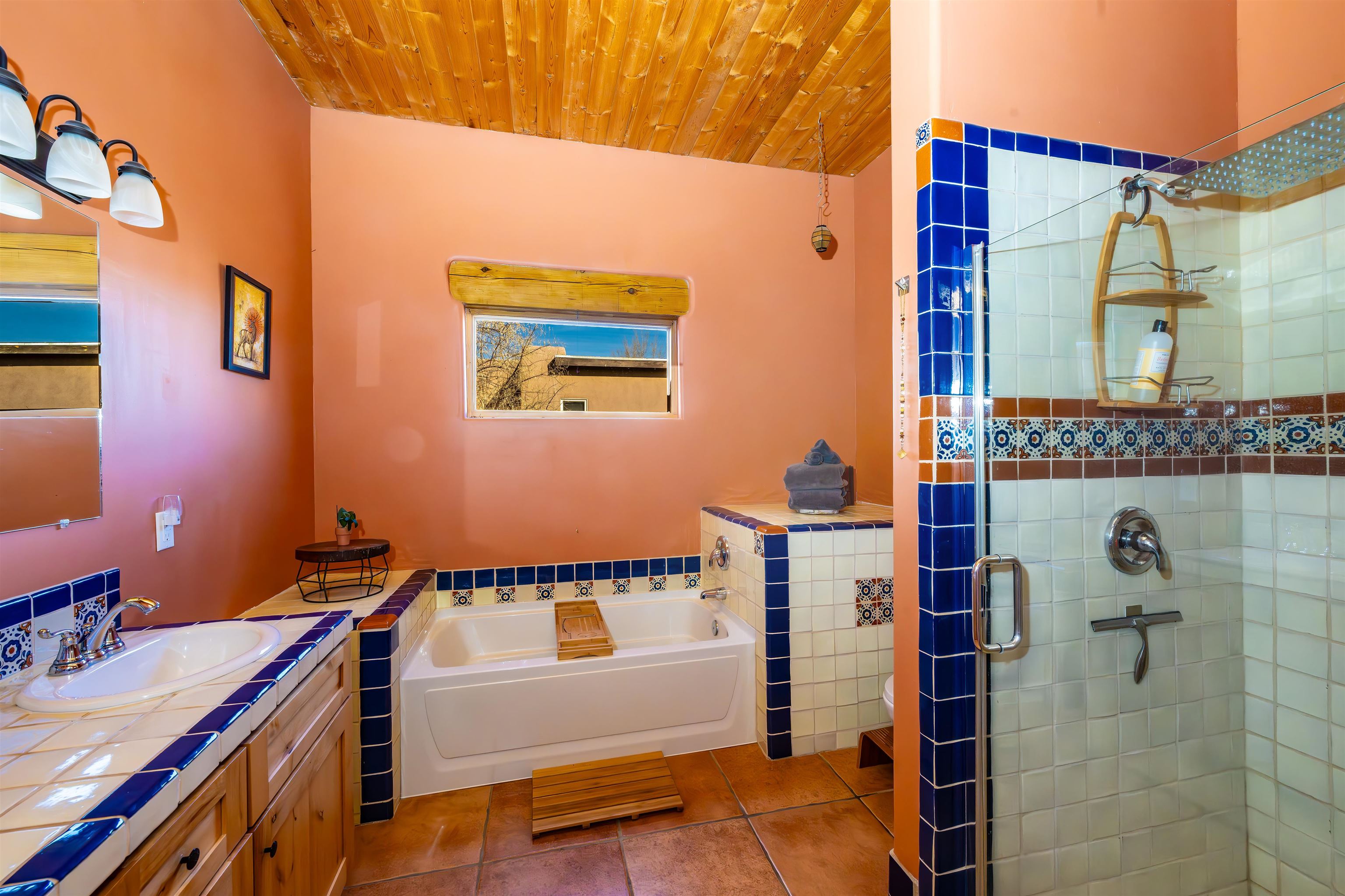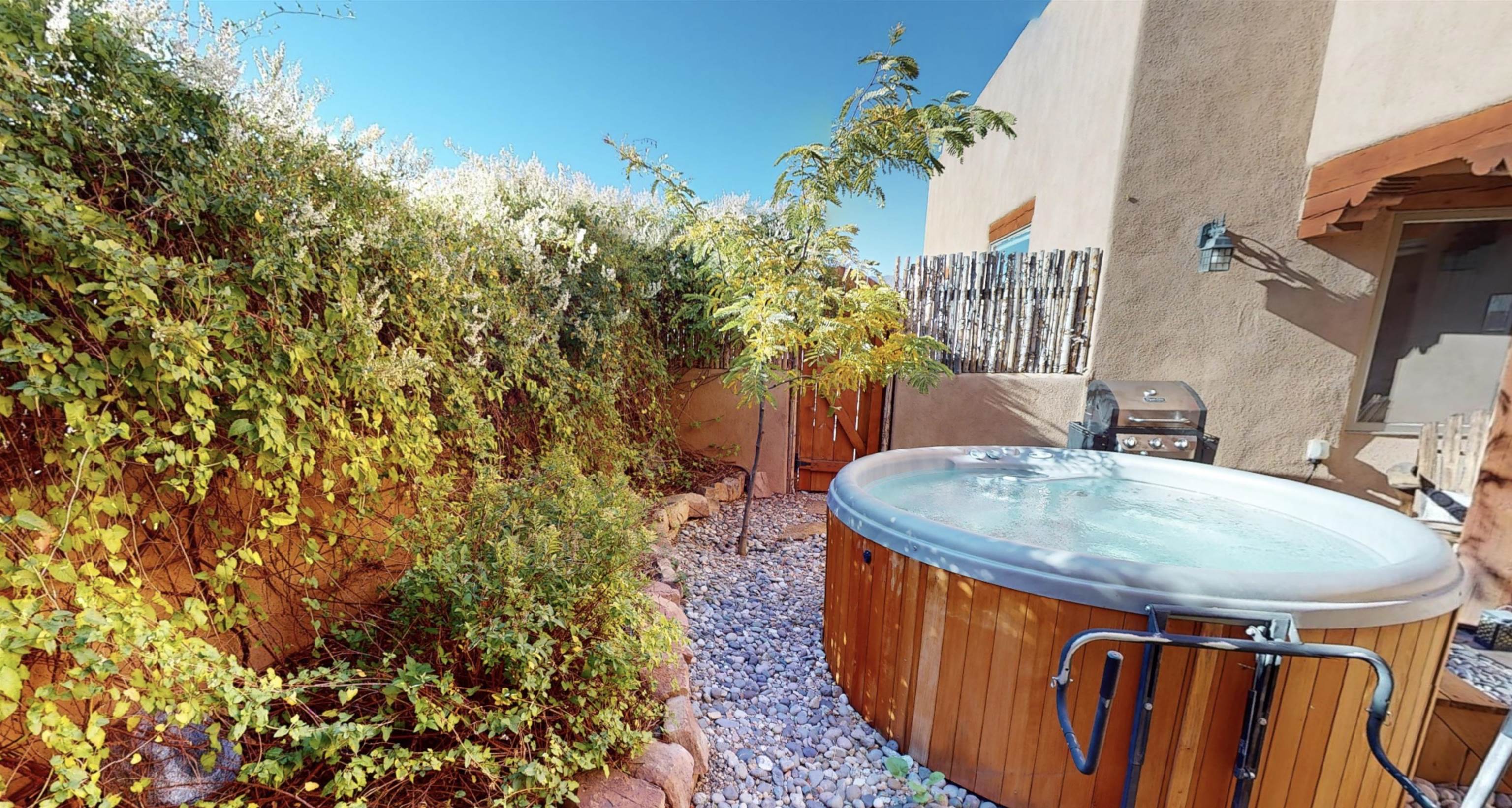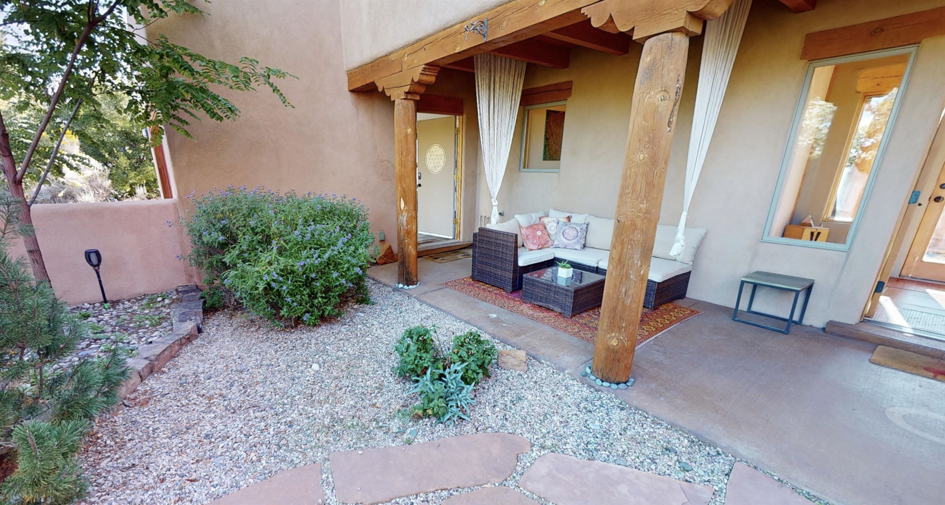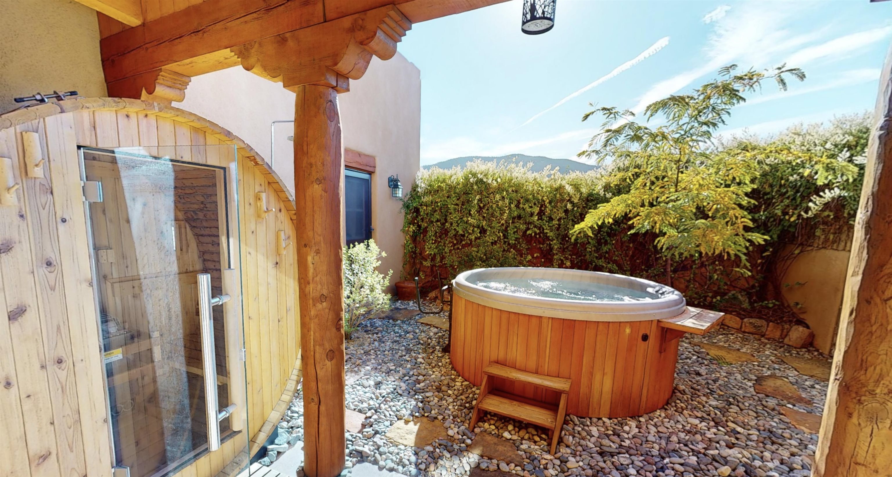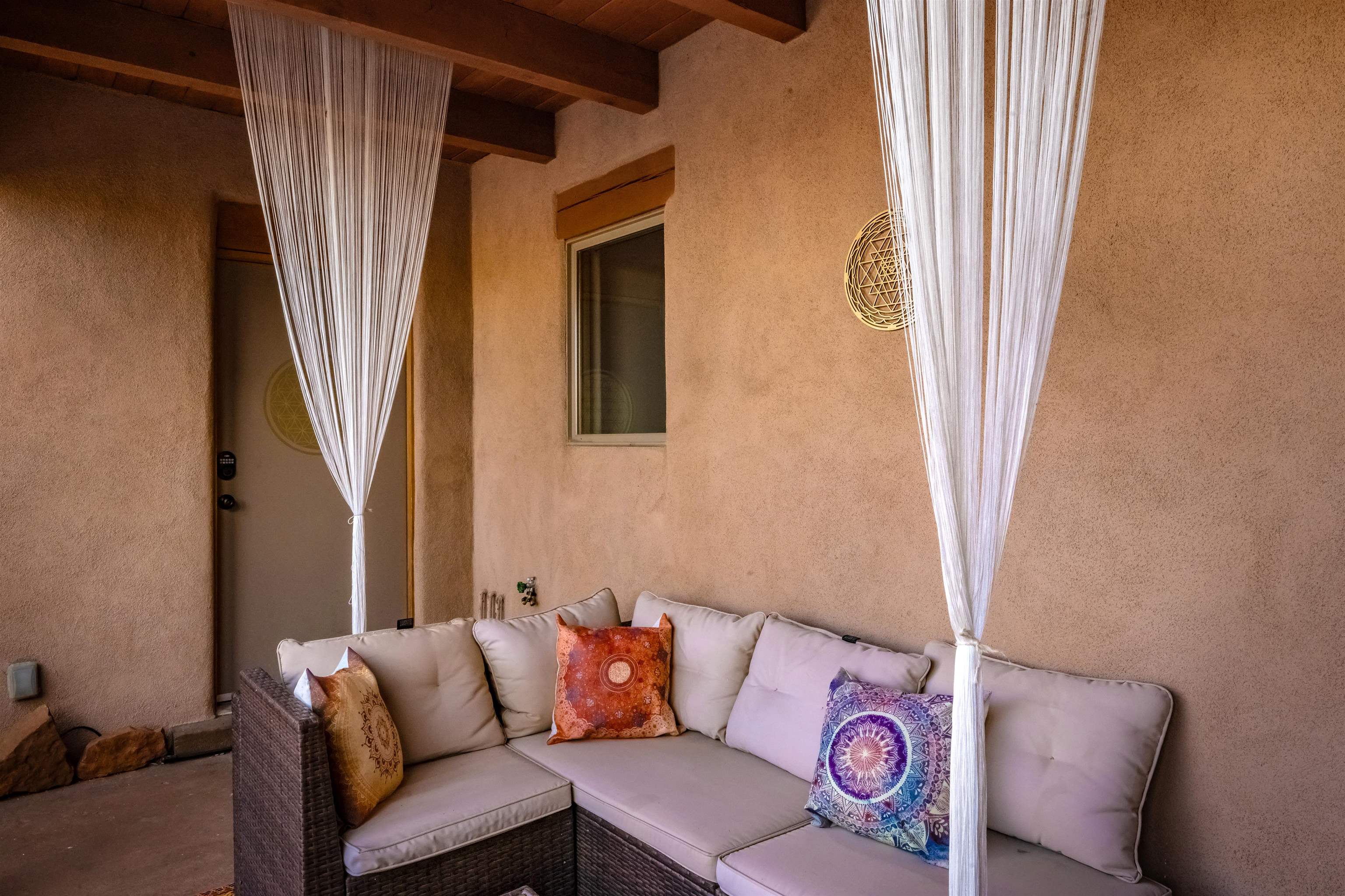 Beautiful, bright, turnkey single-level Pueblo-style home in the desirable Dos Arroyos neighborhood with breathtaking mountain views. Featuring 3 bedrooms, 2 baths, and 1,793 sq ft, this property combines traditional Taos charm with modern comfort. Spacious interiors showcase extra tall ceilings with exposed vigas and detailed woodwork throughout, complemented by two kiva fireplaces, and additional 255 sq ft sunny studio. Offers natural gas radiant floor heat throughout, a heated double garage, and custom kitchen cabinetry. Boasts a spa-like setting with cedar barrel sauna, outdoor shower, and salt water hot tub! Option for furnishings to convey via bill of sale upon buyers request. Fast fiberoptic internet. The home sits on a 0.25-acre lot with mountain views and easy access to hiking trails, Holy Cross Hospital, and Taos Plaza. Key Features: - 3 Bedrooms / 2 Bathrooms - 1,793 sq ft (approx.) - Lot: 0.25 acres / 10,802 sq ft - Year Built: 2007 - Natural Gas radiant floor heat - Attached 2-car radiant floor heated garage - Pueblo/Southwestern, single level - Hot Tub - Cedar Sauna - Xeriscape Landscaping with drip irrigation. Interior Highlights: - Soaring ceilings with exposed vigas & woodwork detail - Open floor plan with abundant natural light - Two kiva fireplaces (living room & master) - Tile flooring - Custom cabinetry & built-ins - Sunroom + covered portals for indoor/outdoor living - Fast fiberoptic internet - Stainless kitchen appliances Community: - Subdivision: Dos Arroyos - Low HOA Fee: Only $513/year (approx. $43/month) - Near Holy Cross Hospital & Dos Arroyos Trail system - 5 minutes to Taos Plaza