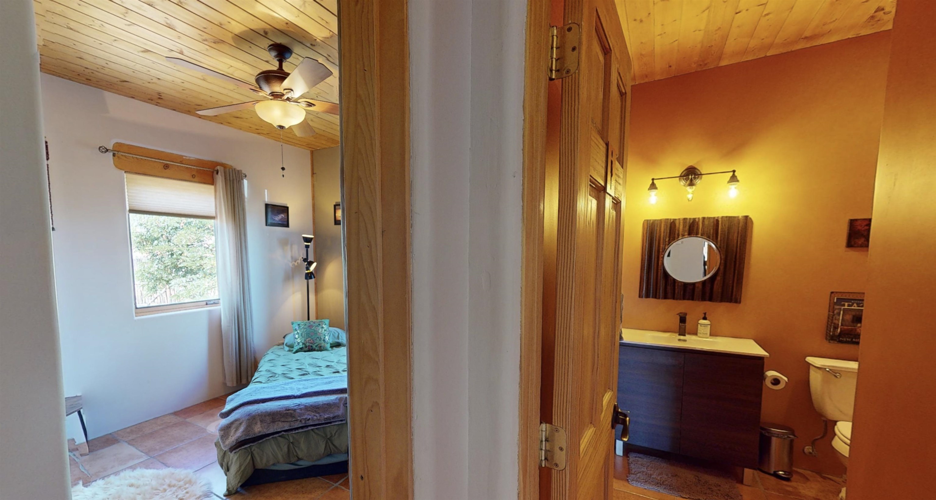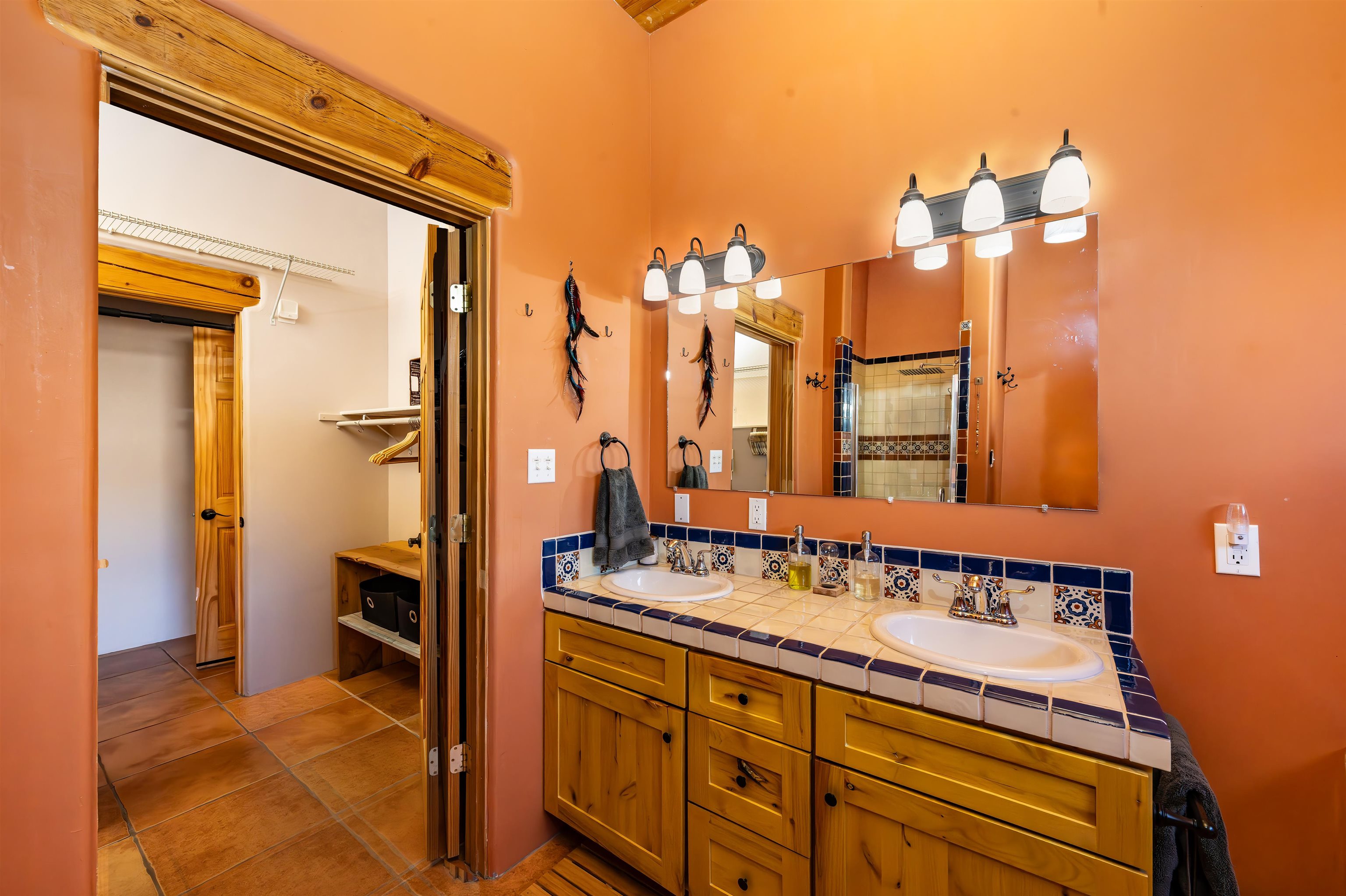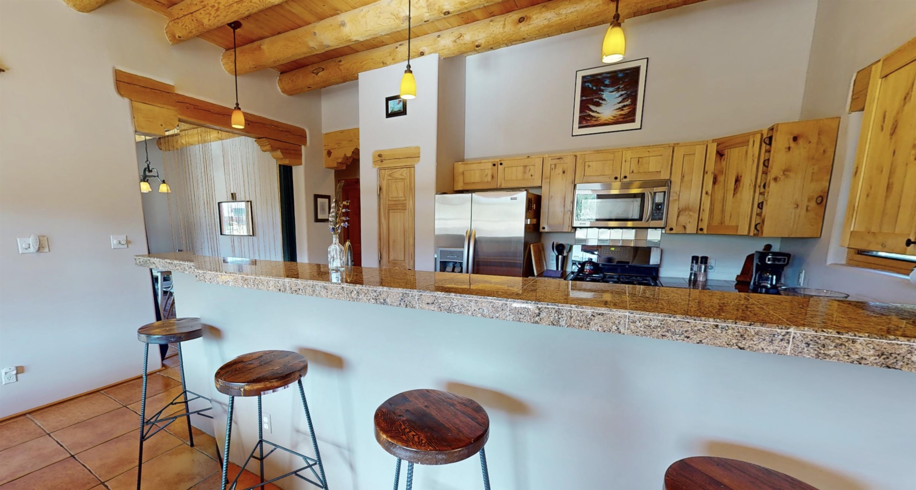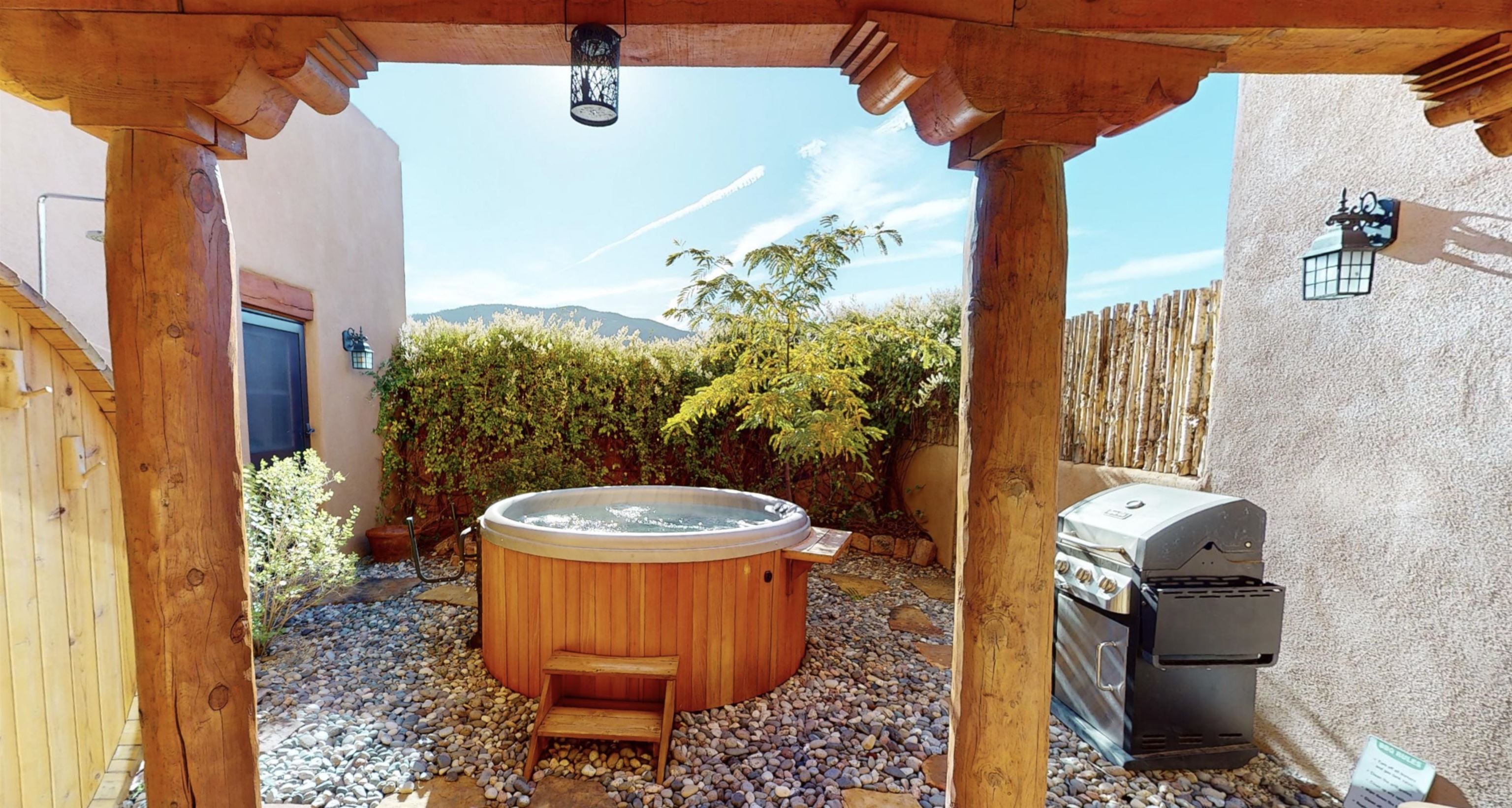 Beautiful, bright, turnkey single-level Pueblo-style home in the desirable Dos Arroyos neighborhood with breathtaking mountain views. Featuring 3 bedrooms, 2 baths, and 1,793 sq ft, this property combines traditional Taos charm with modern comfort. Spacious interiors showcase extra tall ceilings with exposed vigas and detailed woodwork throughout, complemented by two kiva fireplaces, and additional 255 sq ft sunny studio. Offers natural gas radiant floor heat throughout, a heated double garage, and custom kitchen cabinetry. Boasts a spa-like setting with cedar barrel sauna, outdoor shower, and salt water hot tub! Option for furnishings to convey via bill of sale upon buyers request. Fast fiberoptic internet. The home sits on a 0.25-acre lot with mountain views and easy access to hiking trails, Holy Cross Hospital, and Taos Plaza. Key Features: - 3 Bedrooms / 2 Bathrooms - 1,793 sq ft (approx.) - Lot: 0.25 acres / 10,802 sq ft - Year Built: 2007 - Natural Gas radiant floor heat - Attached 2-car radiant floor heated garage - Pueblo/Southwestern, single level - Hot Tub - Cedar Sauna - Xeriscape Landscaping with drip irrigation. Interior Highlights: - Soaring ceilings with exposed vigas & woodwork detail - Open floor plan with abundant natural light - Two kiva fireplaces (living room & master) - Tile flooring - Custom cabinetry & built-ins - Sunroom + covered portals for indoor/outdoor living - Fast fiberoptic internet - Stainless kitchen appliances Community: - Subdivision: Dos Arroyos - Low HOA Fee: Only $513/year (approx. $43/month) - Near Holy Cross Hospital & Dos Arroyos Trail system - 5 minutes to Taos Plaza