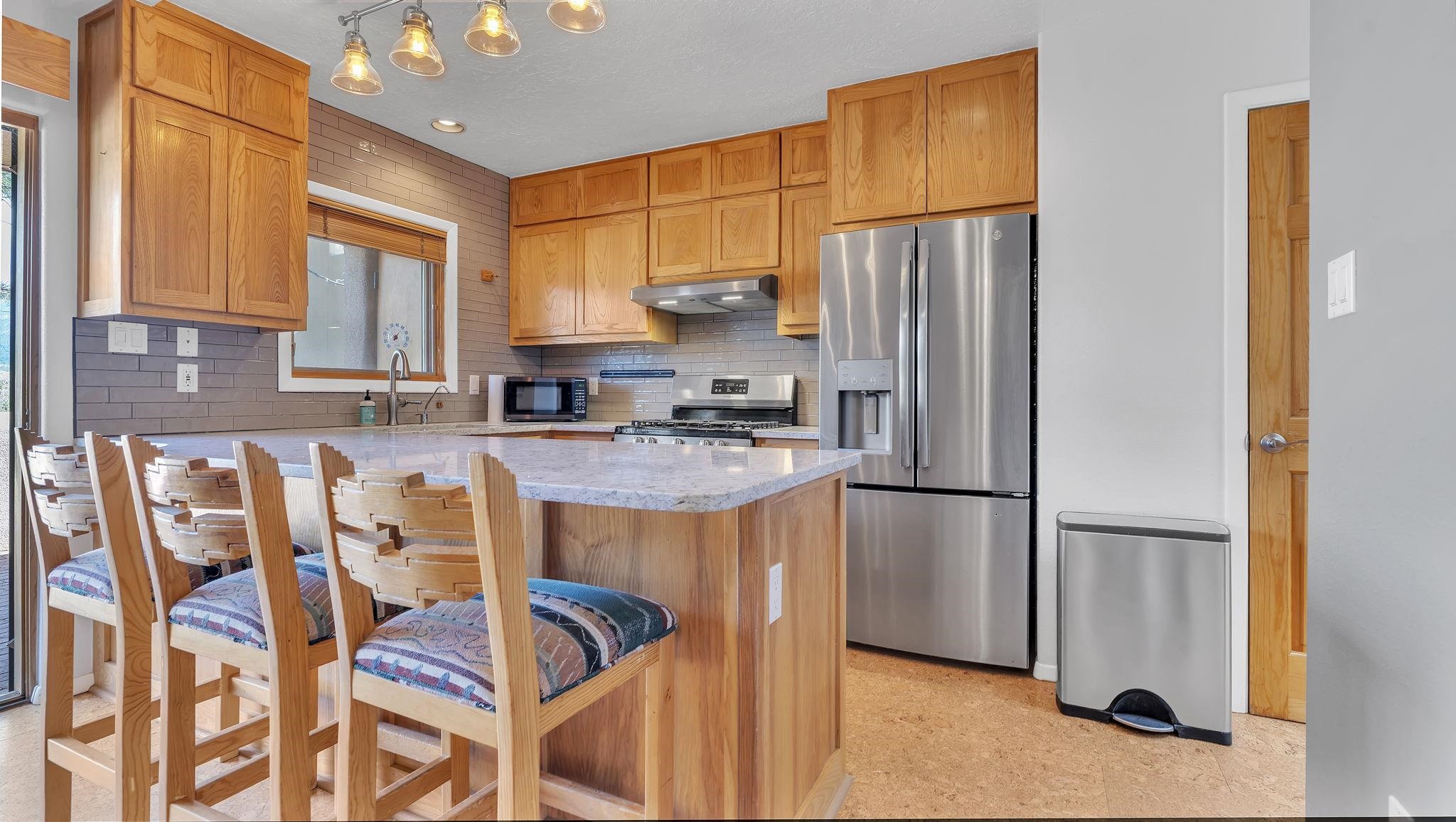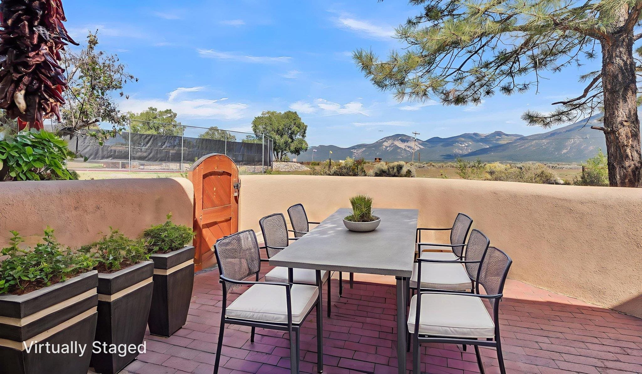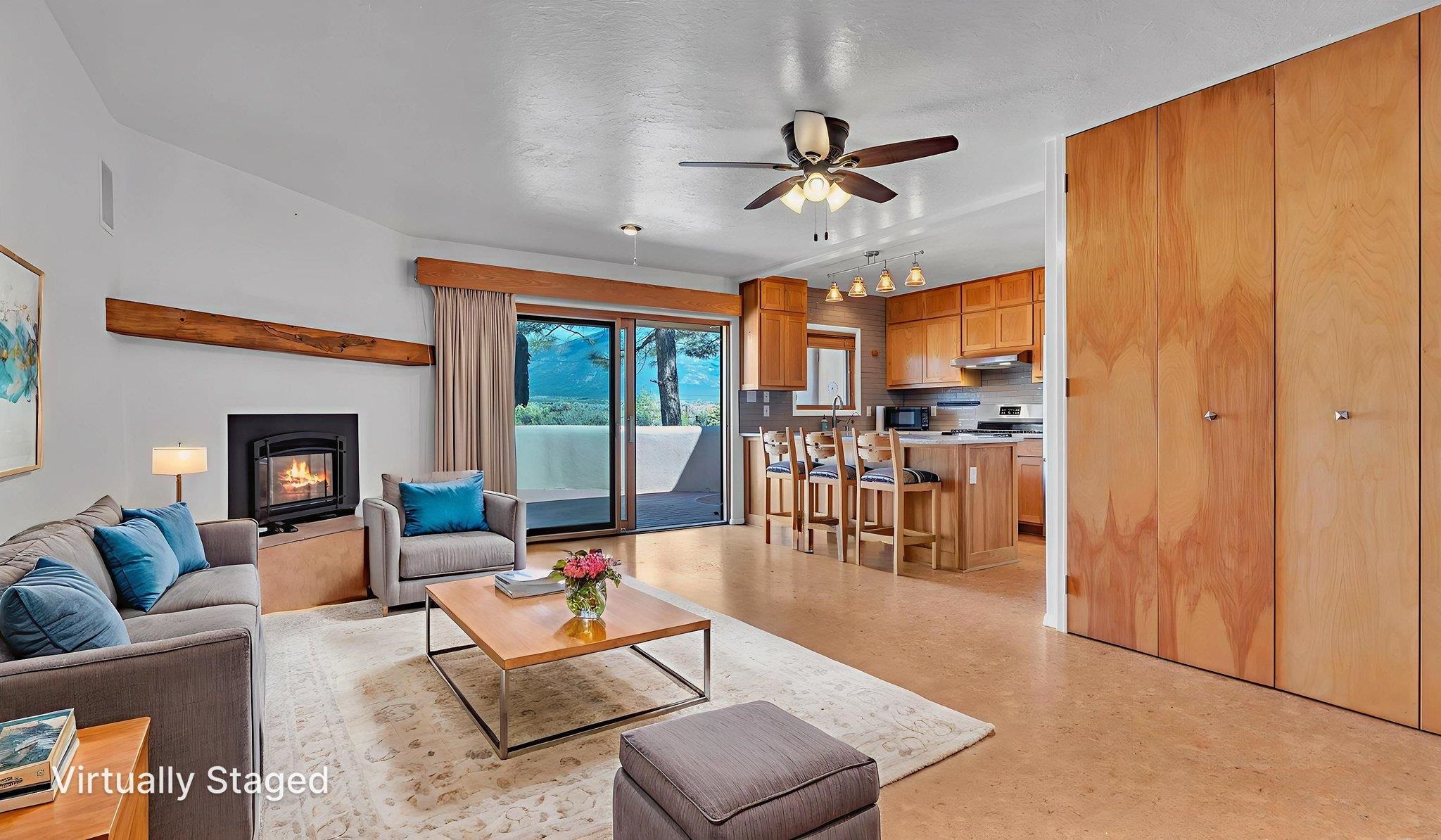 Modern Comfort and Mountain Views in El Prado, NM ~ This beautifully renovated and spacious 2-bedroom, 3-bath condo at the well-located Quail Ridge Resort is perfect for full time, or part time resort-style living. The open living and dining areas flow seamlessly into a classy updated kitchen and bathrooms, all thoughtfully redesigned with modern materials for a fresh, welcoming feel. Three Southwest style fireplaces are ideal for creating a cozy environment, and relaxing around after a long day on the slopes. The unit also possesses very special hand carved wood accents which only ad to the charm of the home. Step out onto the large patio overlooking the tennis courts, with direct unobstructed views of Taos Mountain and Wheeler Peak. This versatile unit is perfect for long-term enjoyment or as a lucrative long term rental, complete with several convenient storage closets for all your gear. These units are versatile and can easily be used as an income producing property with one, or two lock-off units. A washer and dryer are included, adding to the turn-key appeal. Enjoy Quail Condo's amenities including tennis, pickleball, swimming, and a hot tub. The onsite restaurant is a local favorite, known for the best breakfast burritos in Taos! With easy access to the Town of Taos, Taos Ski Valley, and the Rio Grande River, this condo offers an unbeatable blend of location, style, and comfort for glorious Taos living.