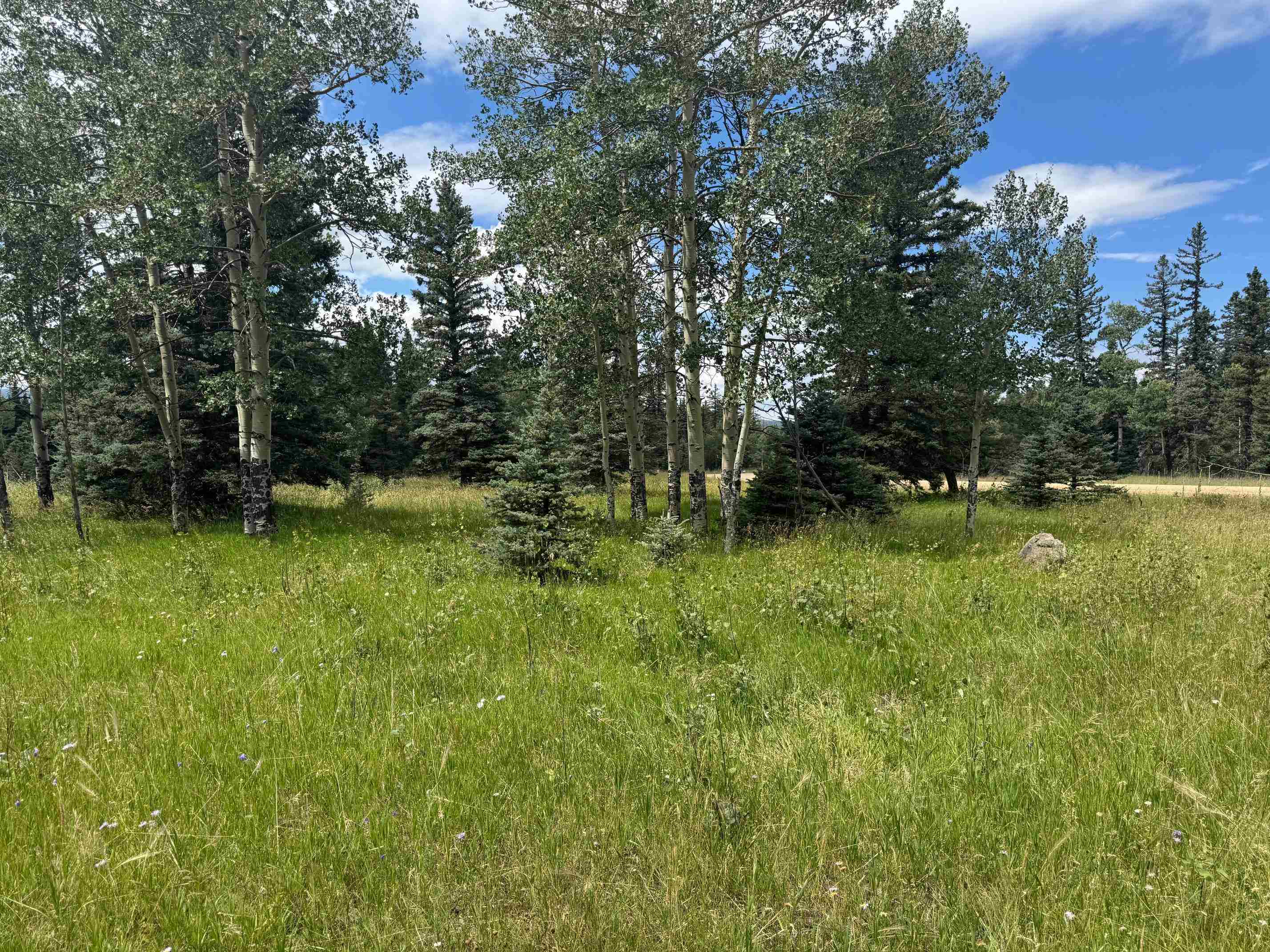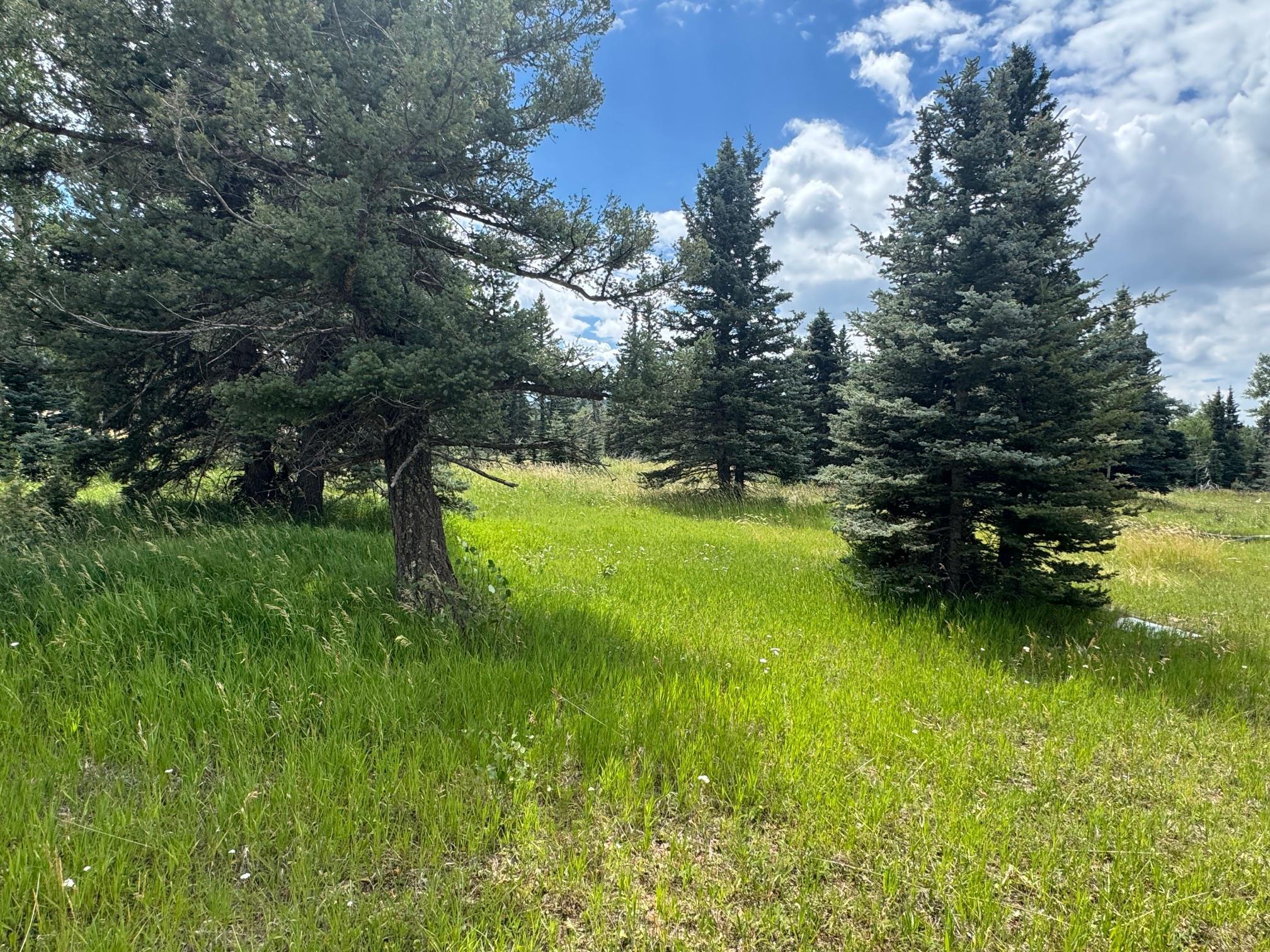 Stunning lot with easy access. This 2+ acre corner lot is a perfect location to build your dream home. Having a corner lot allows you to install your drive on either road for convenience. The pine and aspen trees provide seclusion from the road in which to nestle your home. Just imagine sitting on your back porch watching the deer and elk meander by as the wind blows the wildflowers. With views all around, this flat lot is magical.
