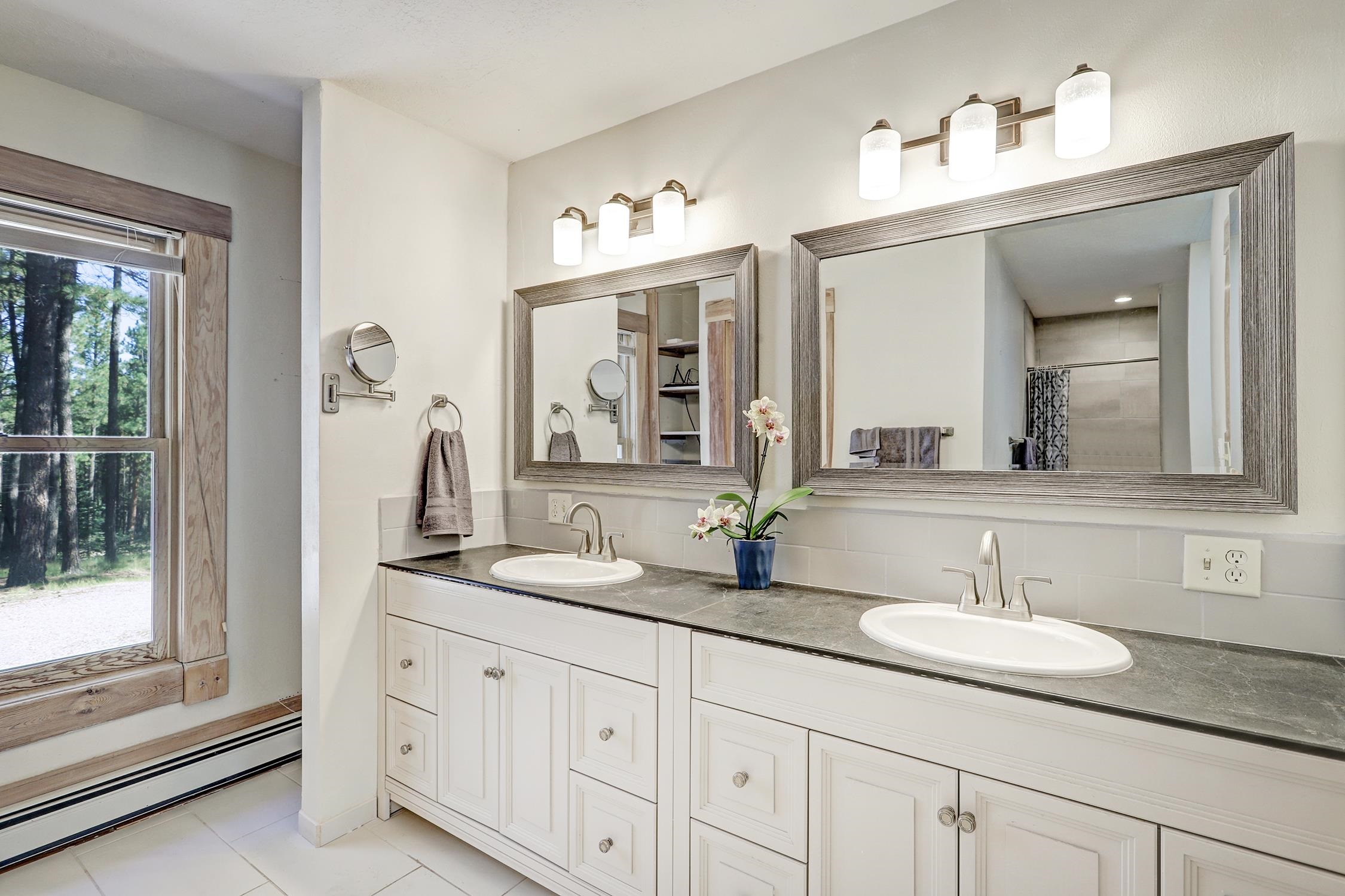 Welcome to your ultimate Angel Fire escape—where comfort, space, and style come together for unforgettable family vacations. This beautifully maintained home features three inviting living areas, a game room, and a private theater, offering endless entertainment for guests of all ages. Enjoy the ease of year-round access—just minutes from Angel Fire Resort and local conveniences. The main-level primary suite provides quiet luxury, while the open-concept kitchen impresses with granite countertops, stainless appliances, a breakfast nook, and a formal dining area. Step outside to a covered deck overlooking a tranquil greenbelt—ideal for morning coffee or evening wine. Downstairs, find even more space with a second kitchen, wet bar, wood-burning stove, and plenty of room for fun and relaxation. Extras like a second garage, greenhouse, and generous sleeping accommodations make this home as practical as it is stunning. Offered mostly furnished and rental-ready, this is the turnkey mountain retreat your guests will want to return to year after year.