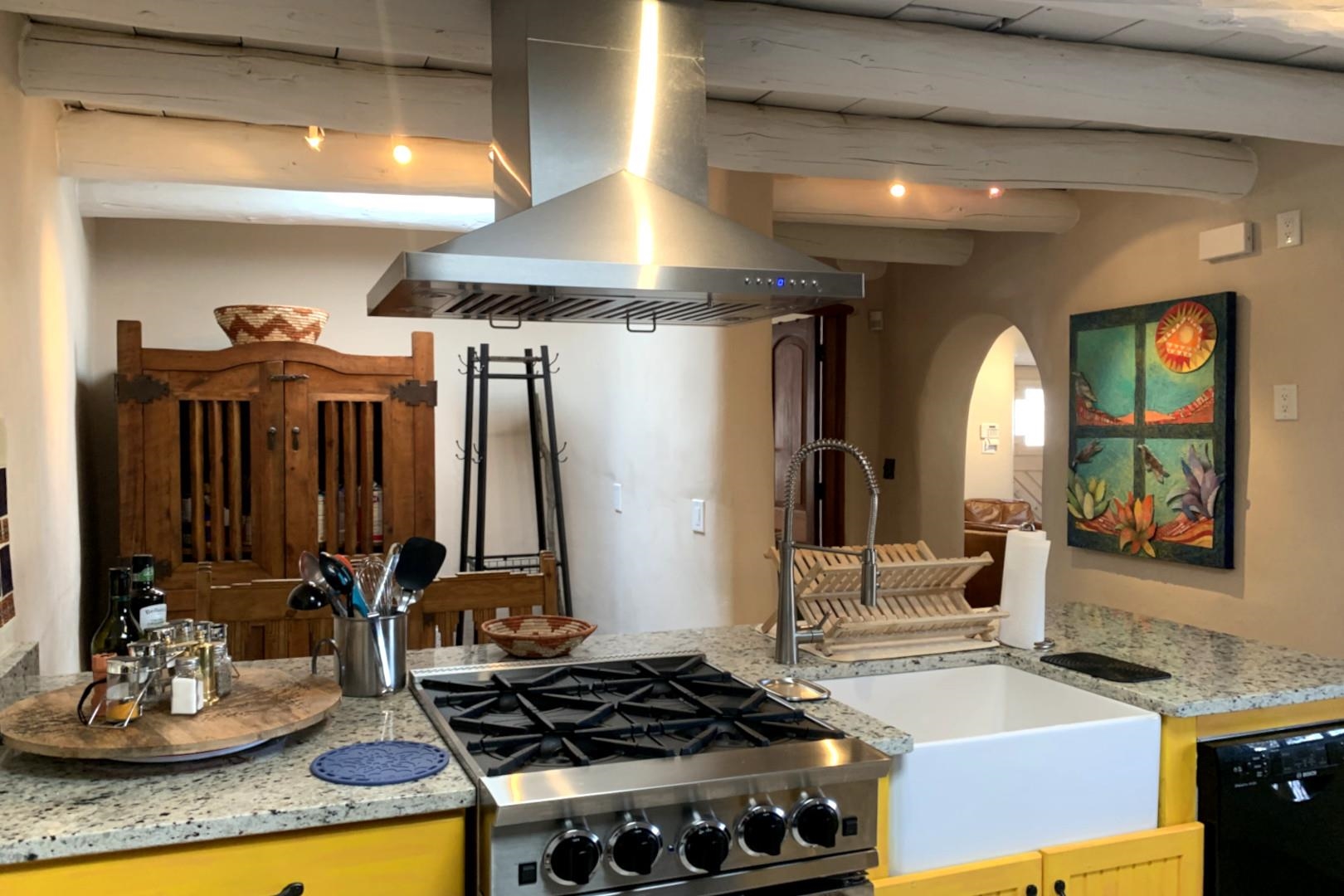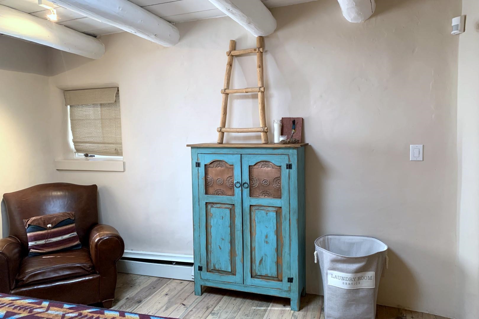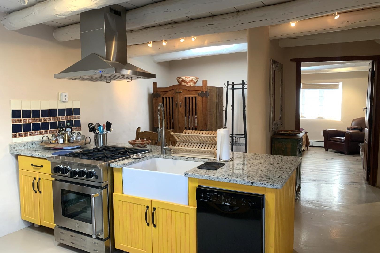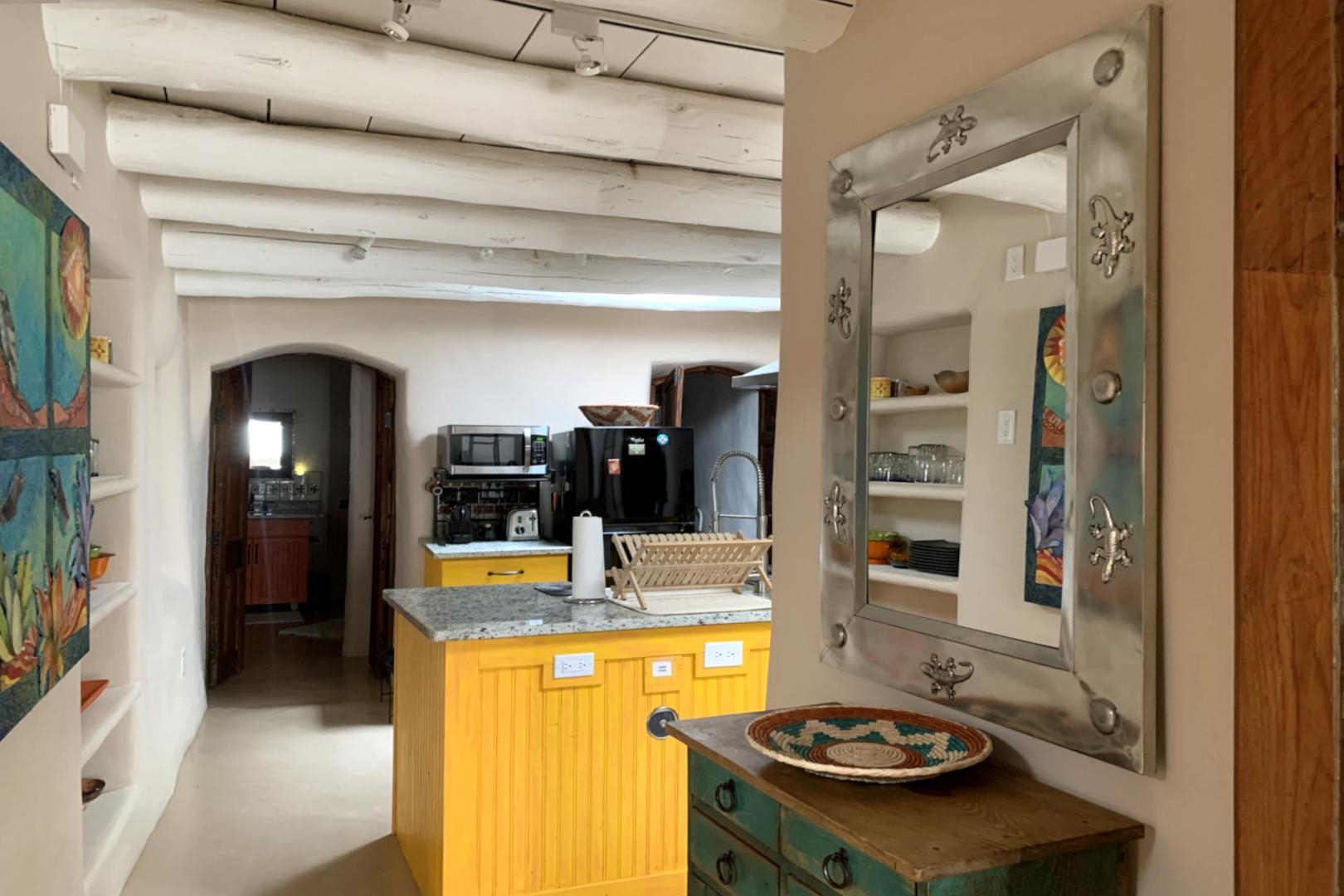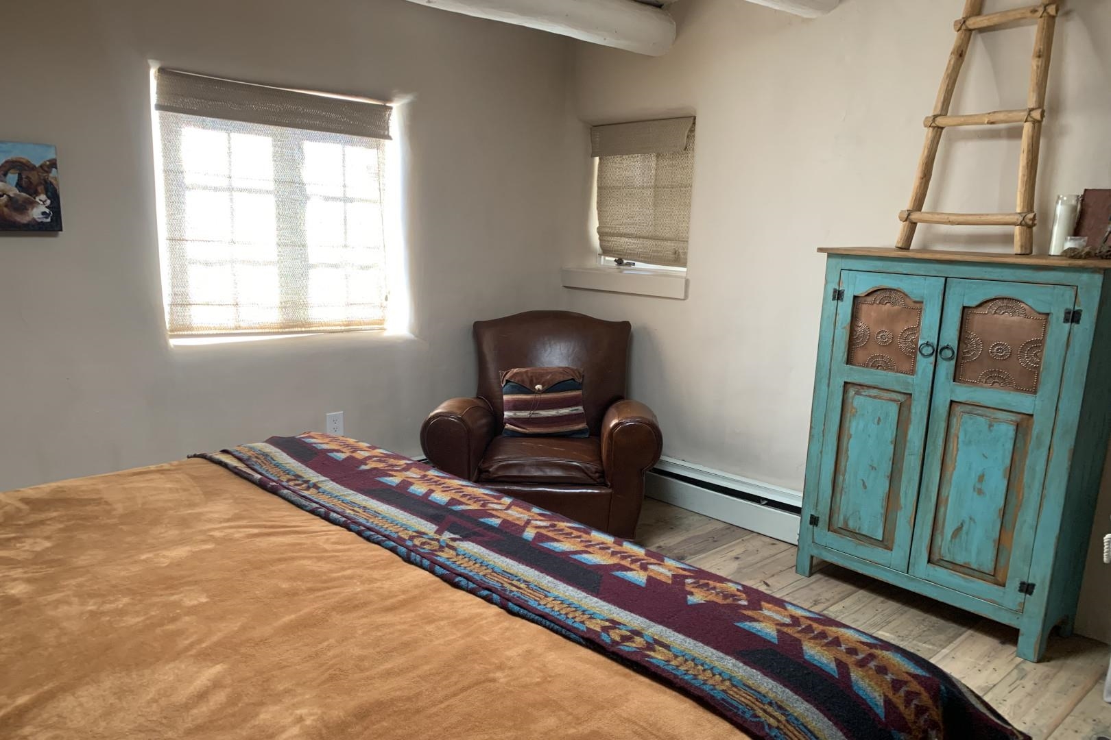 Quintessential Taos! Beautifully renovated historic 1800's adobe in the heart of town. This charming Bent Street home is on the National Register of Historic Places and is just steps away from Taos Plaza, Kit Carson Park, and Taos Inn as well as fine dining, galleries, shops, culture, and entertainment. Feel the warmth and history of this spacious 2 bedroom/1 bath property from the comfort of the ample living/dining room area, where family and friends can gather after dinner around one of two wood-burning Kiva fireplaces. The kitchen offers a gas range/oven and a dining counter, perfect for a quick breakfast before heading out to Taos Valley for a day on the slopes. If working from home is a must, this property offers two additional spacious rooms, which could serve as office space, a den, or even an extra bedroom. Fiber optic internet and alarm system, off street parking, and town utilities are included. Watch the sunset from the comfort of your covered porch or patio. If you really want to immerse yourself in the full Taos experience, then don't wait, because this beautiful home with its classic Southwest accents and ambiance will not last!