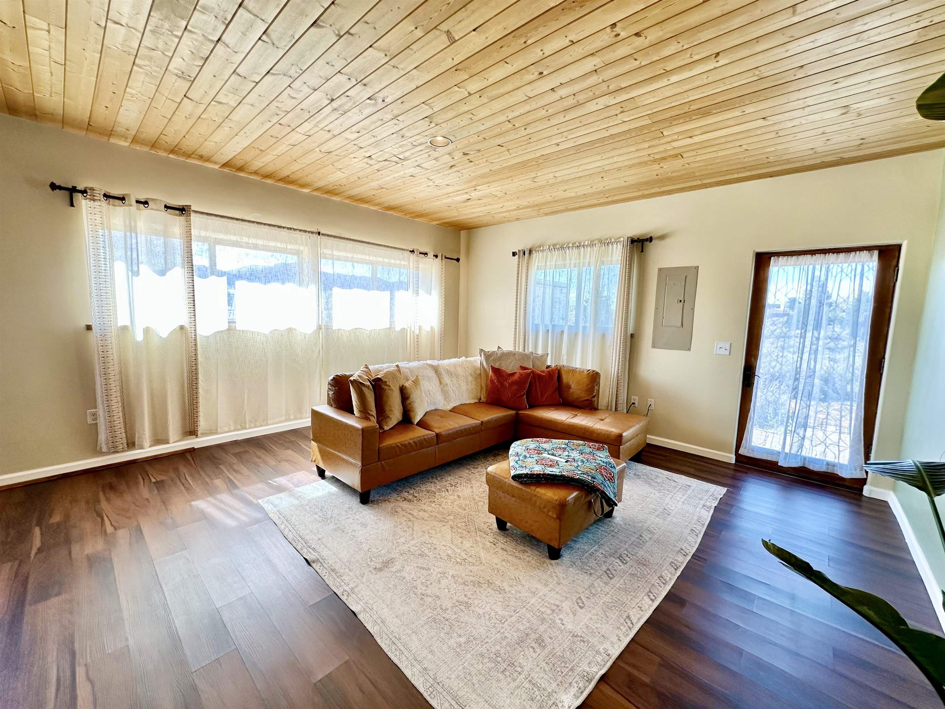 Set on 2.4 acres at the end of a quiet road, this charming 2-bedroom, 1-bathroom home is located just 15 minutes from the Taos Plaza and 40 minutes from Taos Ski Valley. Recent updates include repaired stucco, brand new appliances, and luxury vinyl plank flooring throughout. The open layout creates a comfortable flow from the living area to the kitchen, while large windows frame sweeping views of the Sangre de Cristo Mountains and the vast Taos landscape. You'll enjoy proximity to UNM-Taos, the Country Club and golf course, the Slide Trailhead, and the Rio Grande. When you’re craving a change of pace, Santa Fe’s vibrant city life is only about an hour and fifteen minutes away. Whether you’re seeking a full-time residence, a peaceful getaway, or an investment opportunity in a prime location, this Ranchos de Taos property combines comfort, updates, and unmatched views in one inviting package.