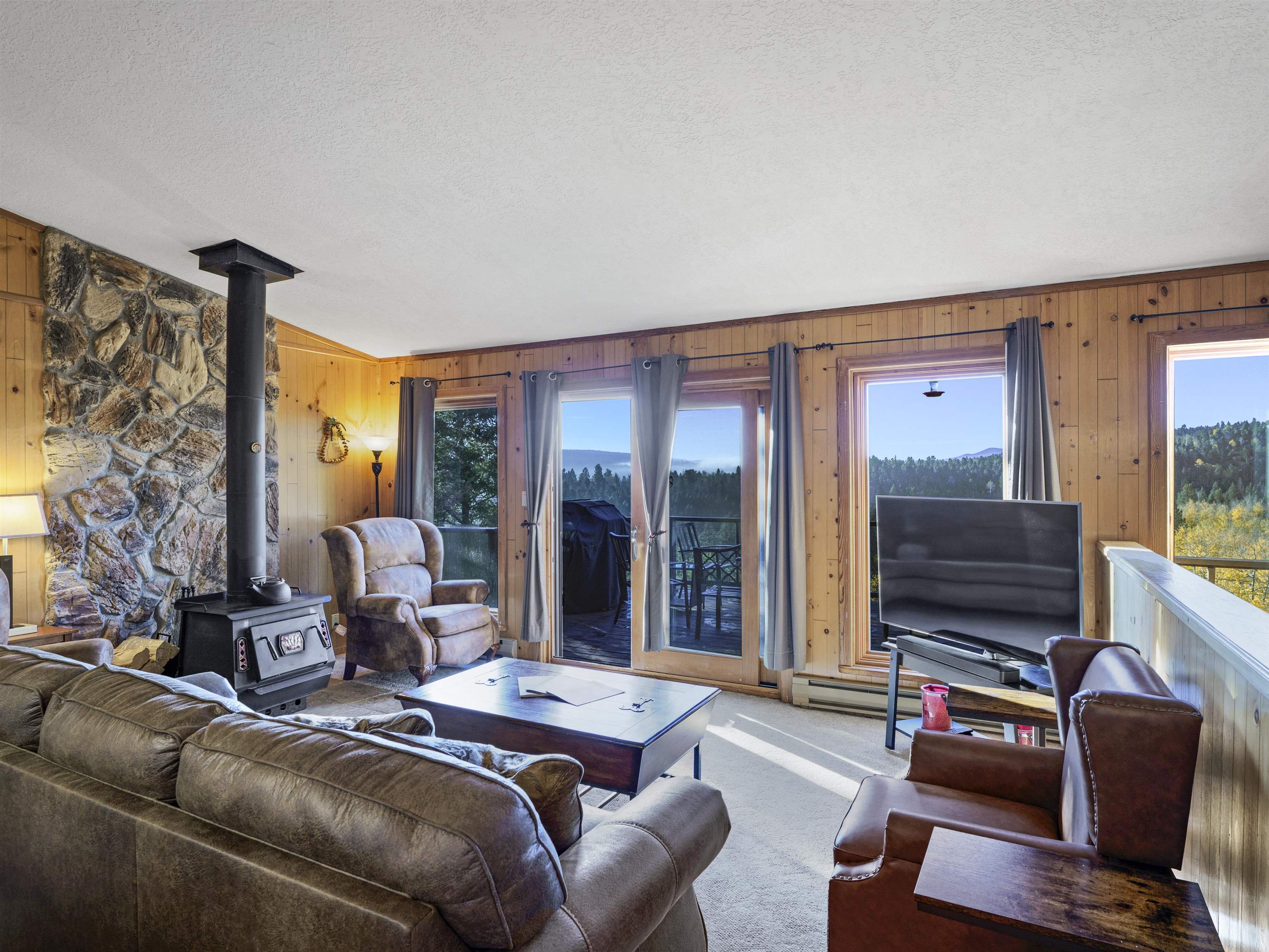 Million-dollar breathtaking views without the million-dollar price tag. Easy access to the Angel Fire Resort golf course, ski mountain and Monte Verde Lake. If you are looking for views and easy year-round access, you must see this house. This hi-efficiency passive solar home, complete with Trombe wall sits on 1.21 acres of stunning nature. This 3-bedroom, 3 full bath home has recently been updated with new waterproof vinyl flooring, stainless-steel appliances, a built in Ice-O-Matic nugget ice machine and new furniture. It is already setup to be a short-term rental if you are looking to help offset your cost of ownership. You can drive your golf cart down the street to the golf course. You are also very close to many green belt trails and hiking if you want to get out and enjoy nature on foot. The ski slopes are a short drive as well. You also get a paved driveway leading to your two-car attached garage to keep your vehicle and golf cart out of the weather. This home has everything you need to enjoy the mountain lifestyle part-time or full-time. Don't miss this one, come see it today!