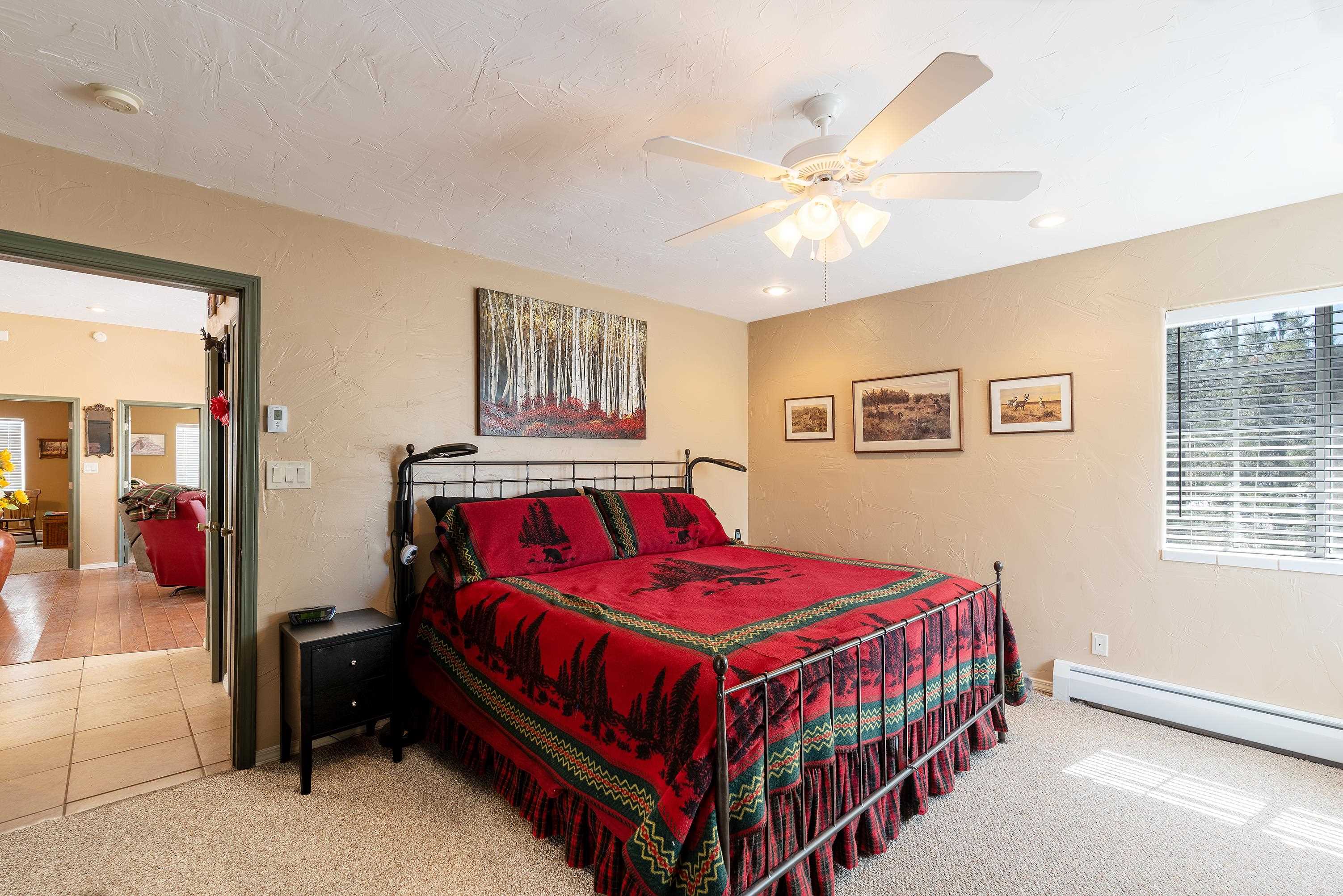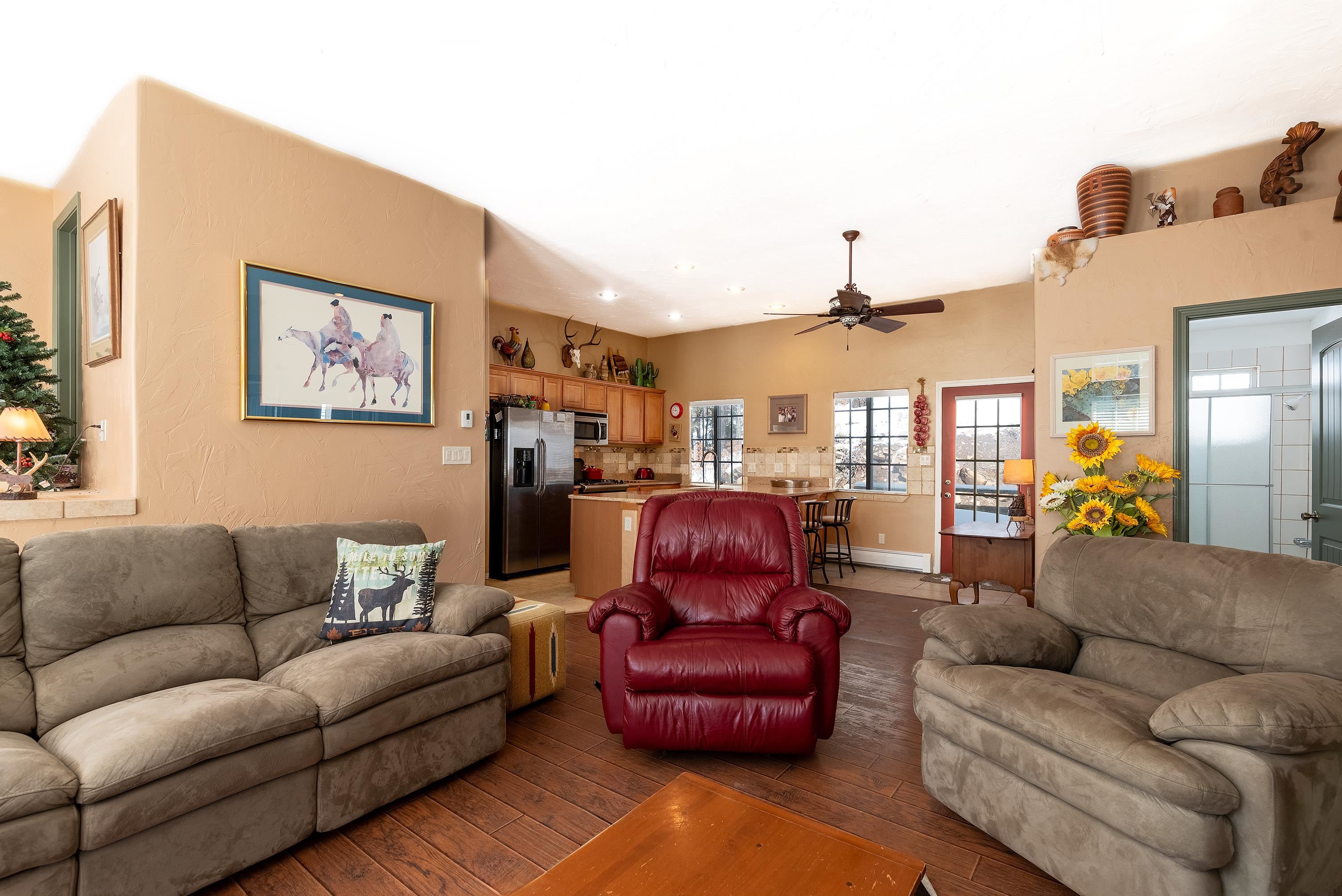 Welcome to your mountain retreat at 23 Cielo Vista Trail in Valle Escondido, Taos, New Mexico! Situated conveniently between Taos and Angel Fire, this serene getaway offers endless opportunities for relaxation and adventure. Valle Escondido boasts a nine-hole golf course spanning 40 acres of pristine greens, a Clubhouse with a deli/restaurant and bar, a heated swimming pool, and two trout ponds perfect for picnics and enjoying stunning sunsets. With easy access to forest roads, activities like hiking, four-wheeling, hunting, backcountry skiing, horseback riding, and mountain biking are right at your fingertips. Nestled on 1 acre at the end of Cielo Vista Trail, this spacious 1,544 square foot home provides privacy and breathtaking views of the forest and rolling hills. Enjoy the scenery from your large deck or relax indoors in the bright and airy living room featuring high ceilings and ample natural light. The home boasts 3 bedrooms, 2.5 bathrooms, and a 2-car garage with a laundry room and plenty of storage space. Gather around the large kitchen island for quality time with loved ones, and retreat to the primary bedroom with its beautiful views, large closet, and luxurious soaking tub. Offered fully furnished, this spectacular home is ready for you to move in and start enjoying your mountainside paradise. The home also features a brand new energy efficient heating system. Don’t miss out on this incredible opportunity to make lasting memories in Valle Escondido!
