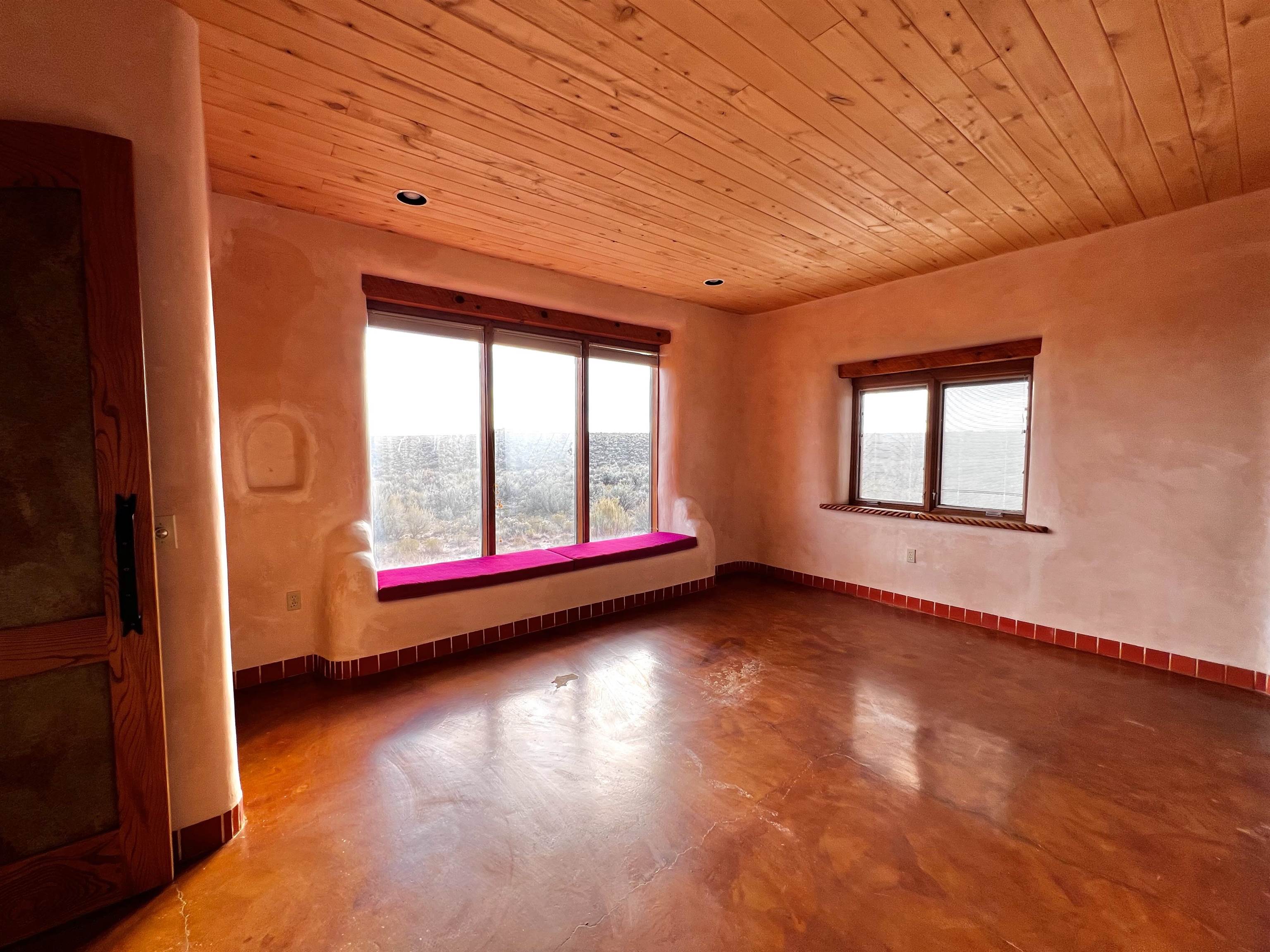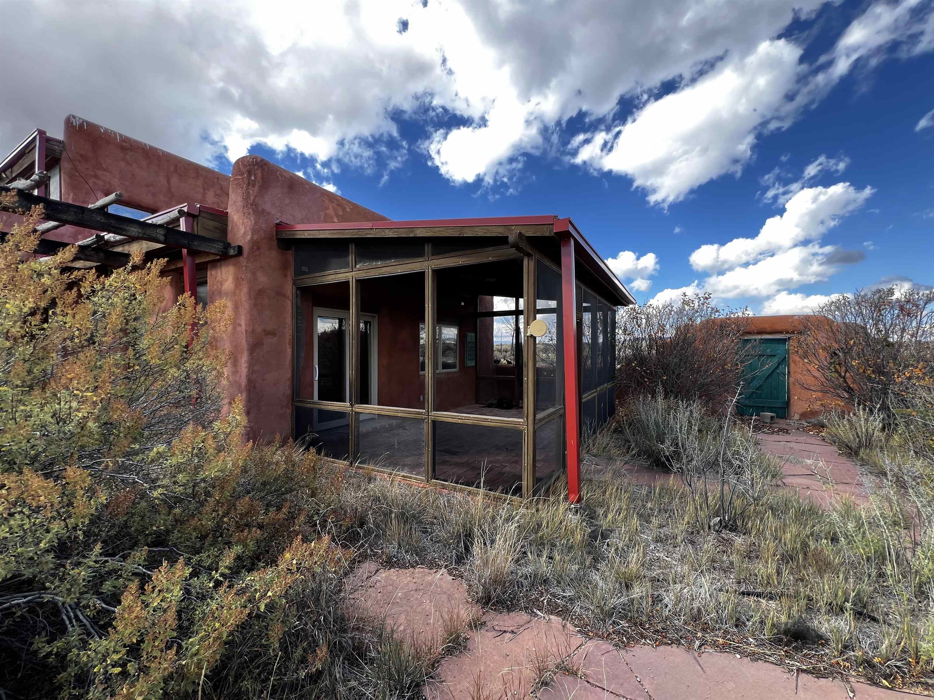 There's no place like THIS home! Call this absolute stunner of a 2002 Charlie McGarity Post and Beam Strawbale home yours! 170 Two Hawks Trail is situated on a generous 20 acre parcel in the Cielito Lindo HOA protected off-grid subdivision just 30 easy minutes to the Town of Taos. Trade traffic jams for big views and organic architectural details. Decorative nichos are set throughout the residence in the natural plastered walls and large south facing picture windows warm the home with its passive solar design. Decorative railings by local artisan frame the second story loft while the bridge spanning the first floor leads to a deck with some of the biggest views in the valley. Water is provided via community well in addition to generous catchment system. Propane range in chefs kitchen. In floor propane powered radiant heat. It really does not get better. Priced to sell as is after sitting unattended and unmaintained for several years. Requires solar system replacement and other deferred maintenance work on the exterior.