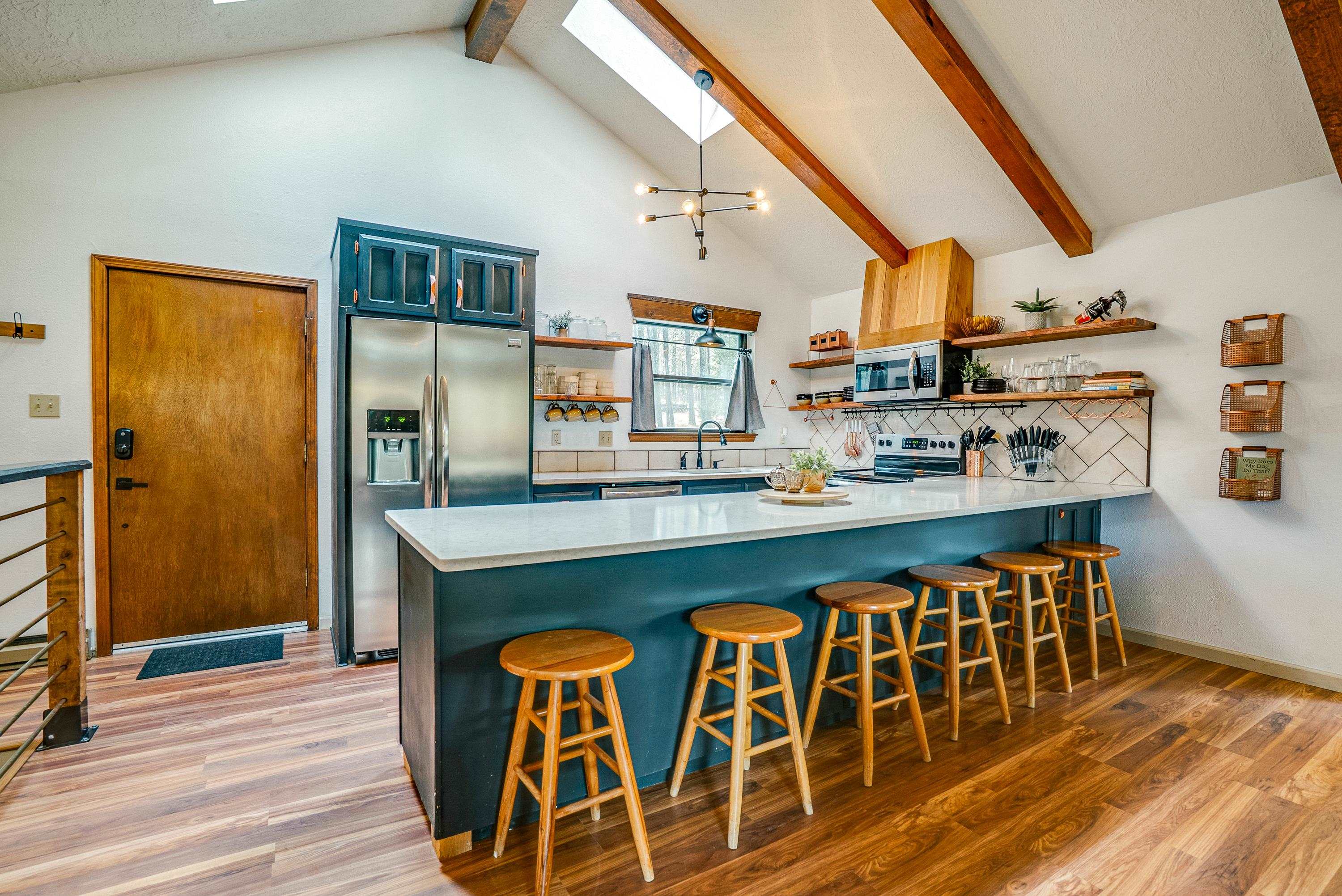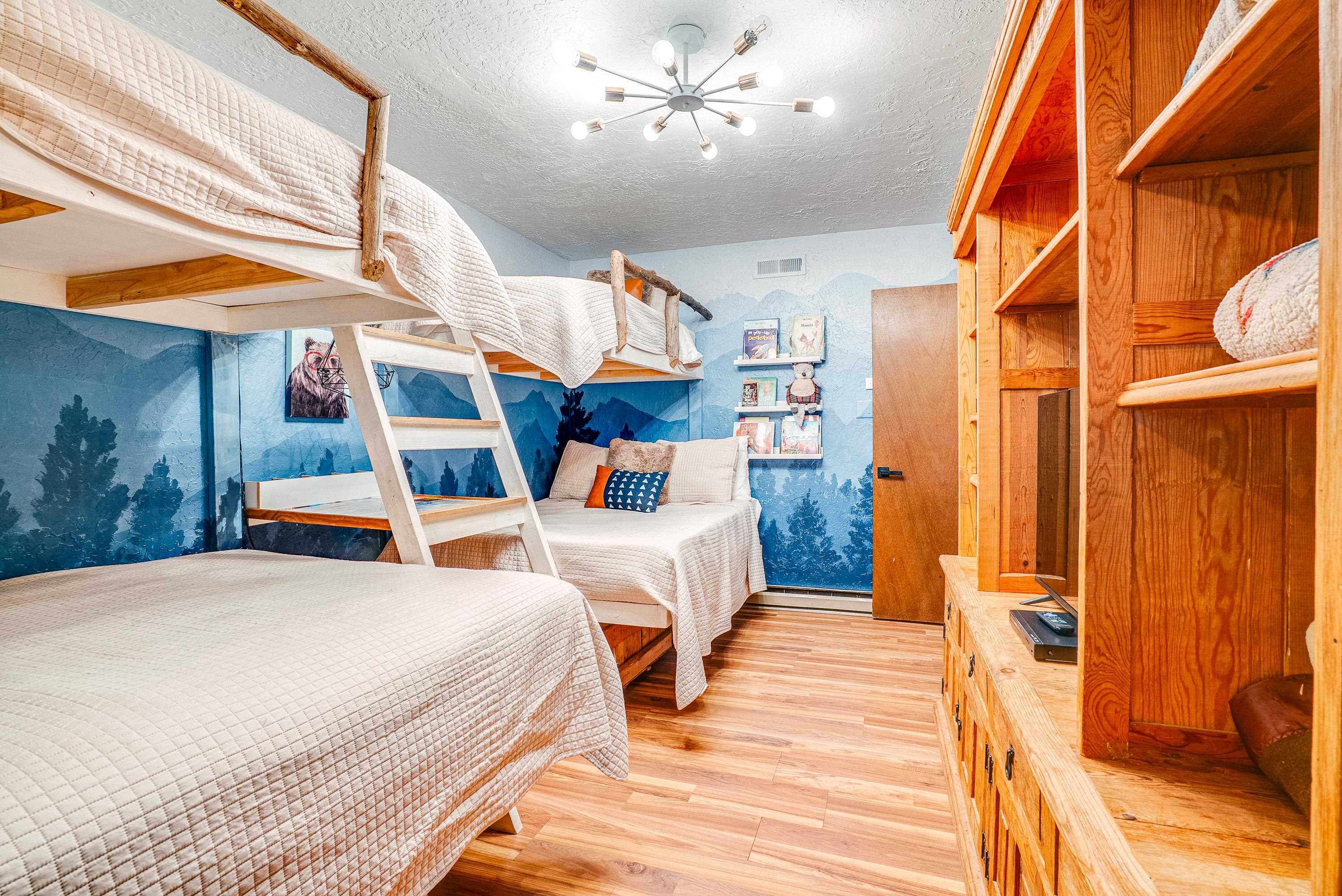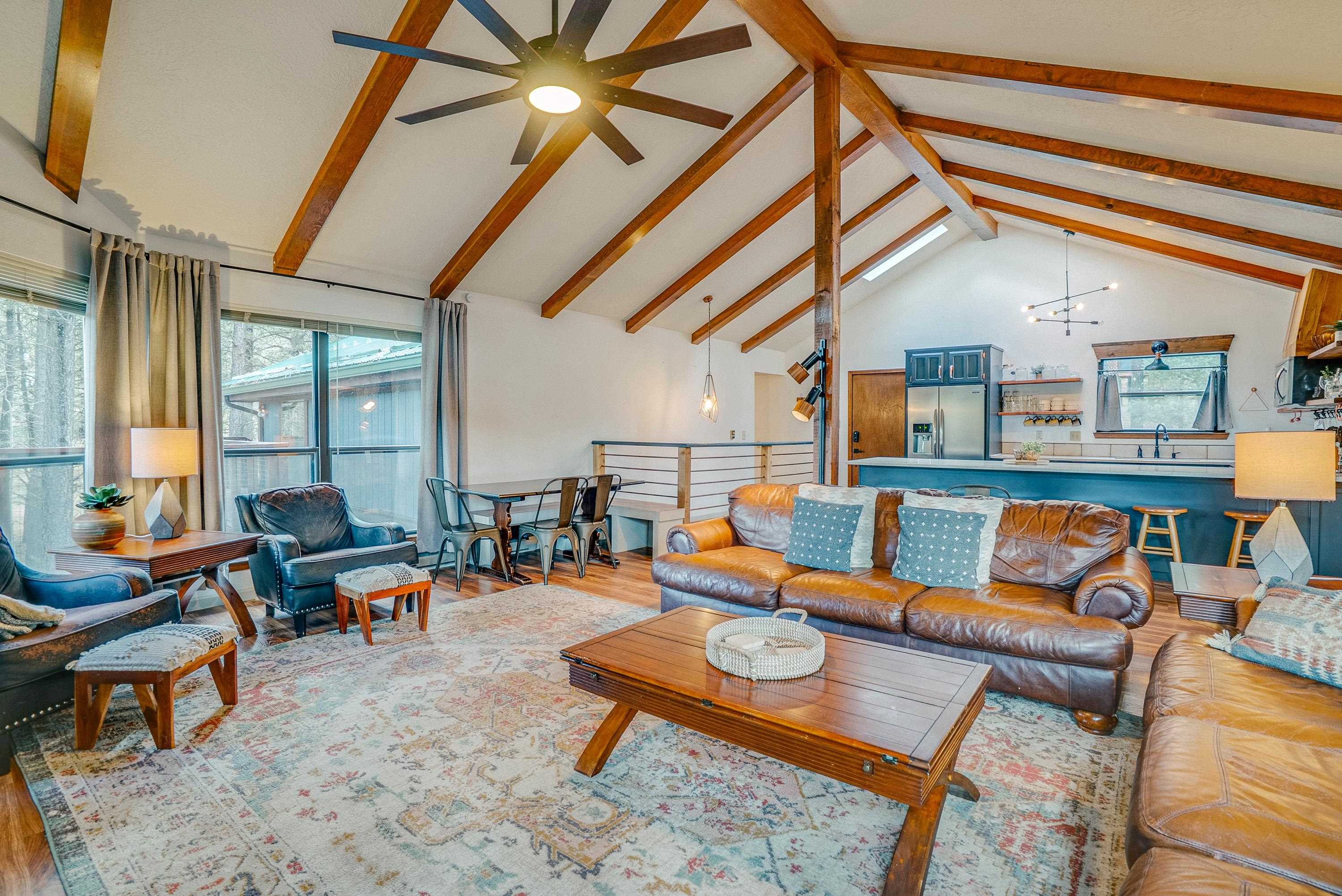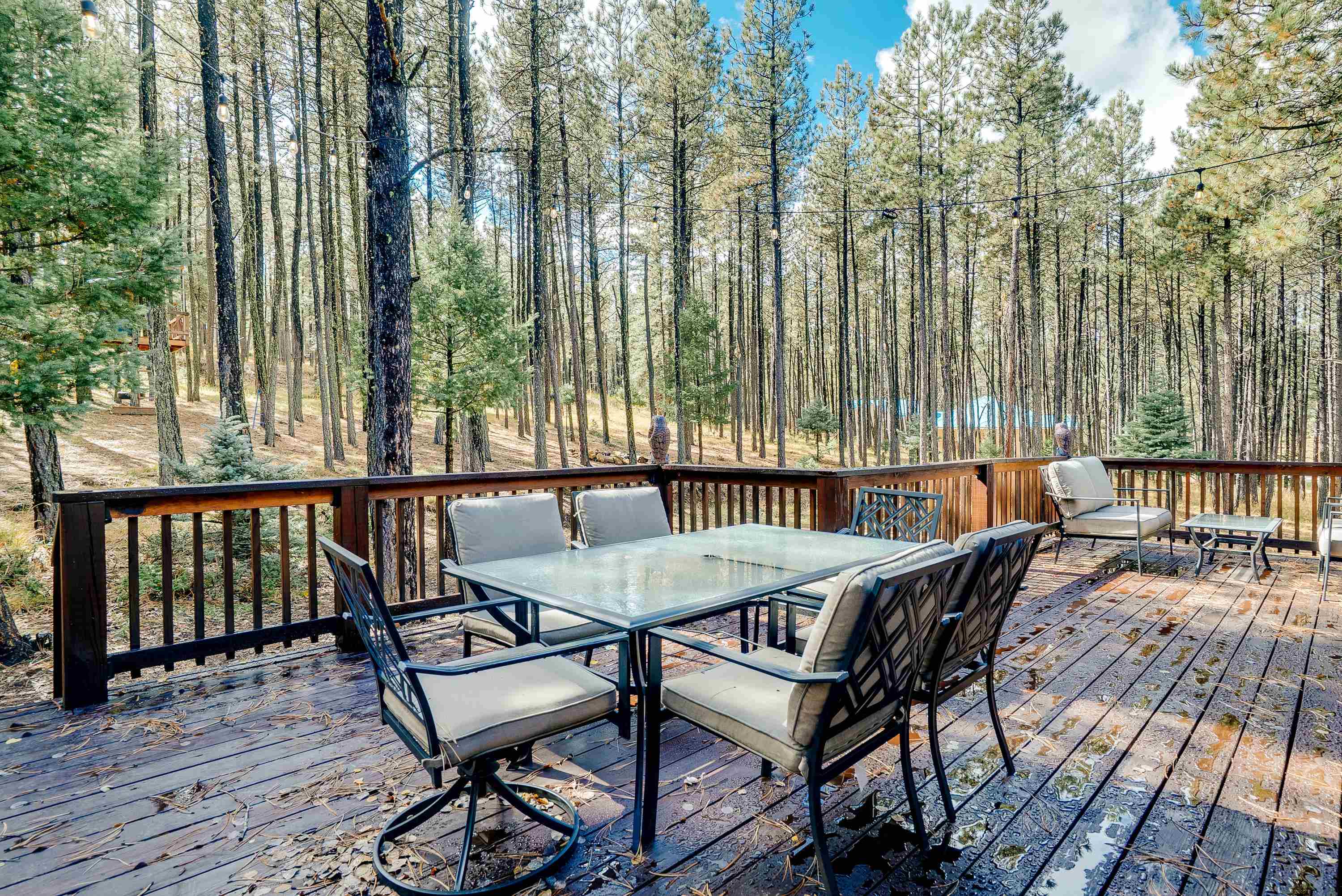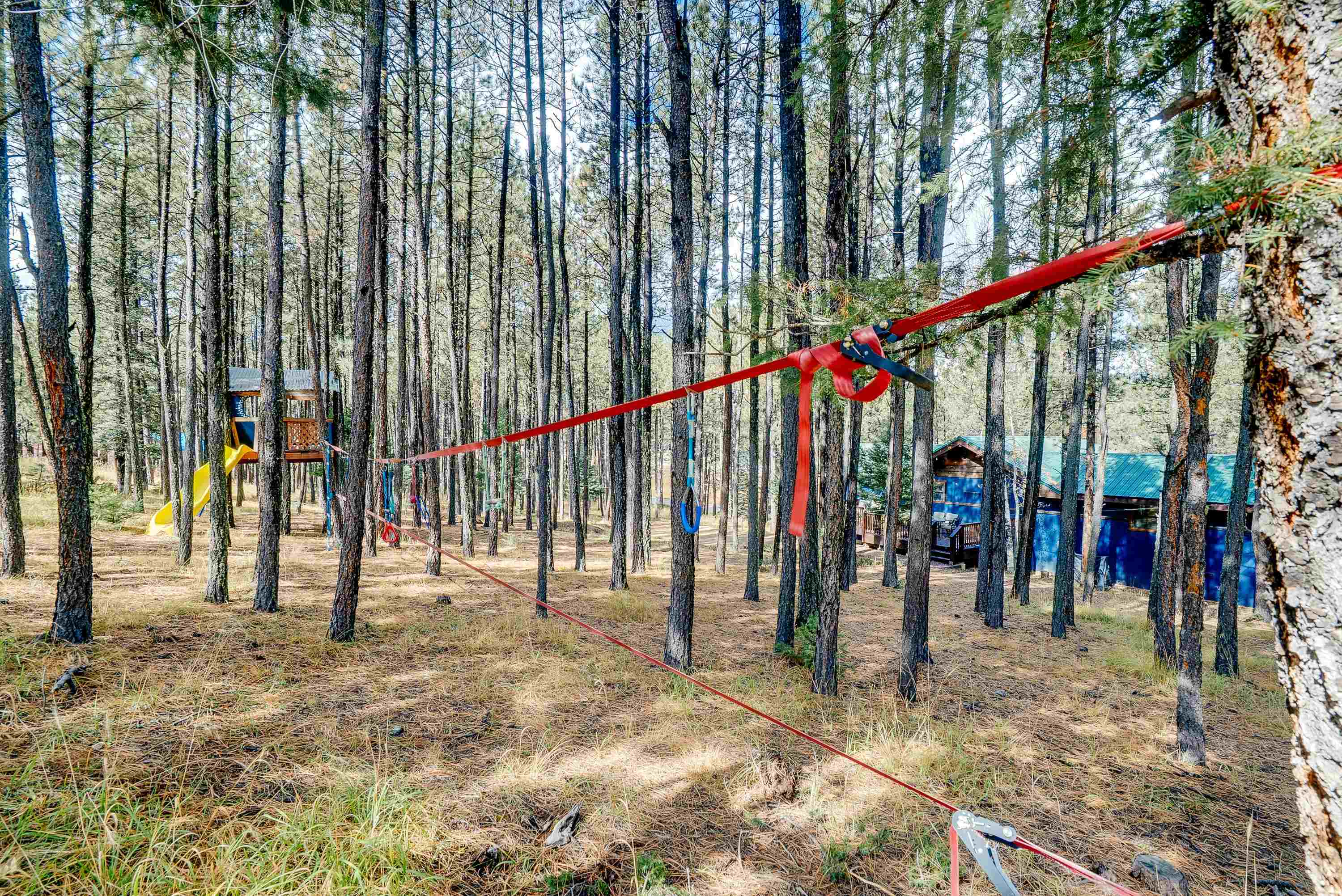 Tucked low in the Moreno Valley for easy, year-round access, this peaceful mountain retreat captures the best of Angel Fire living. Surrounded by towering pines on more than an acre of forested privacy, with a greenbelt across the street and no neighbors in sight, it’s a place where the only sounds you’ll hear are birdsong and the wind moving through the trees. Here, the days move at the pace of mountain life. Hop on your UTV or golf cart and ride to the Country Club, tee off at the golf course, or wander nearby hiking trails under clear summer skies. Just minutes away, Monte Verde Lake invites you to cast a line for trout, paddleboard or canoe across calm mountain waters, or stroll around its scenic shoreline. And when winter arrives, you’re only a short drive from the ski mountain, Nordic Center, and sledding hill, then back home to a cozy wood-burning fire and the hush of the forest. Inside, rustic charm meets modern comfort. Quartz and marble countertops, LVP flooring, and a wood-burning fireplace create a warm, welcoming vibe. With four bedrooms and three full baths, there’s space for everyone to gather. Outside, the zip-line, fort, and slack-line turn the backyard into a forest playground for kids and adults alike. Thoughtfully furnished and beautifully styled, this home is offered fully furnished and turn-key, right down to the details, so you can start enjoying it from day one. Whether you’re looking for a personal retreat, a family getaway, or a ready-to-go short-term rental with sleeping for eight, 57 Sarazen Terrace delivers the freedom, connection, and serenity you’ve been searching for. Bring your suitcase and toothbrush, and step straight into Angel Fire living. To see everything included in the sale, contact your favorite REALTOR® for details and a private showing. AAFPO Membership is $1,695 paid annually (valid May 2025-April 2026)