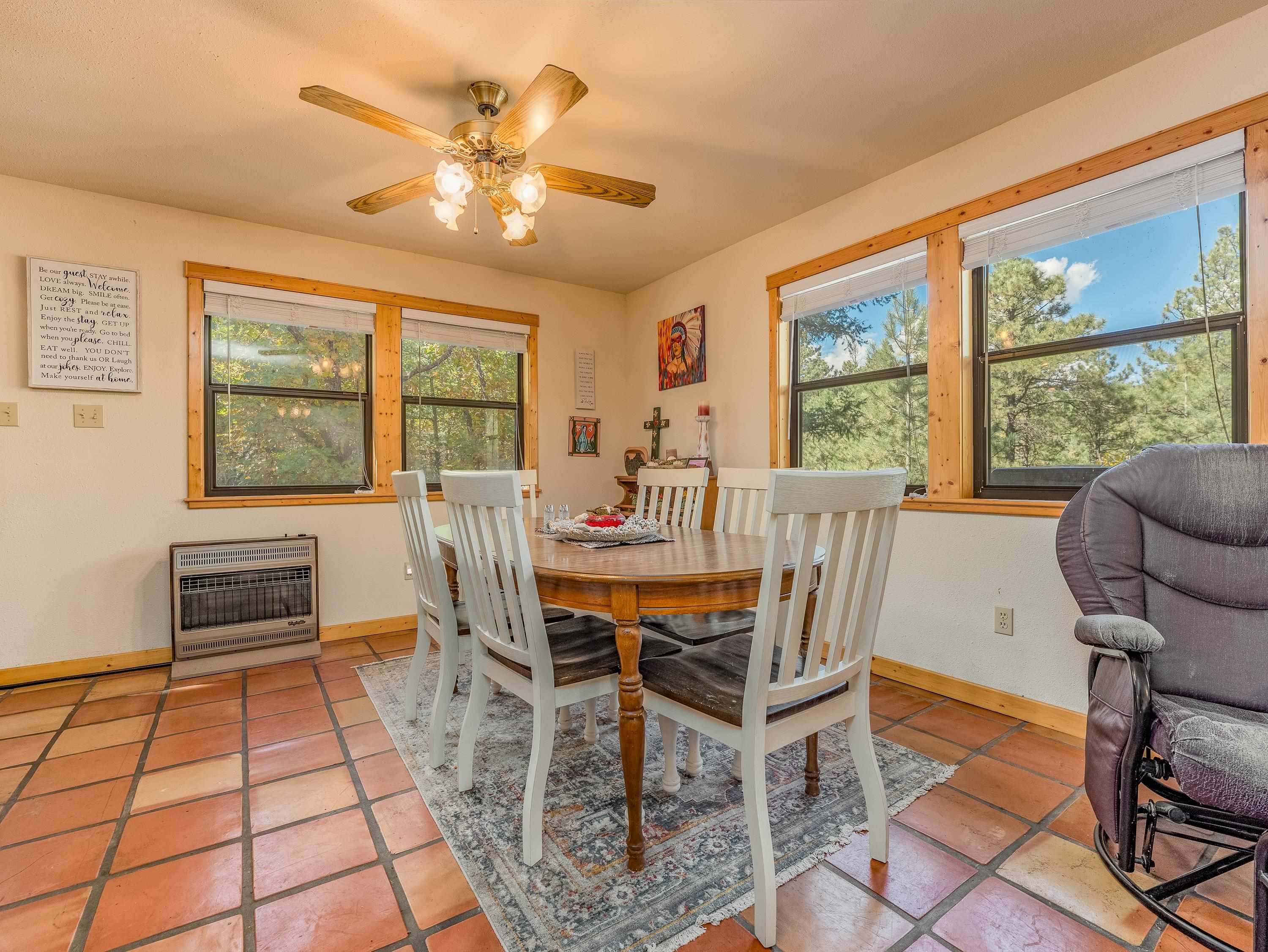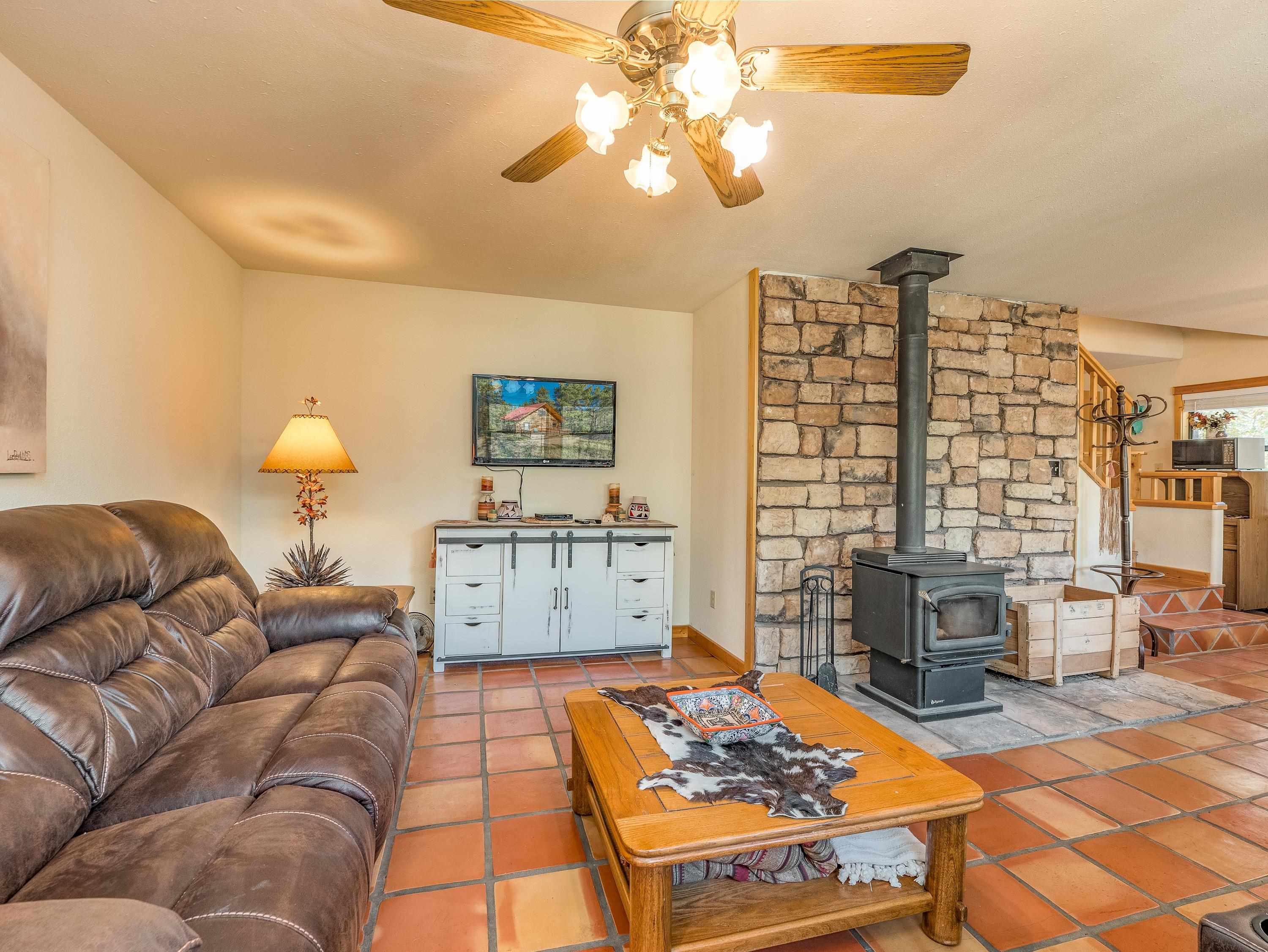 Are you looking for an adorable, unpretentious mountain getaway? Look no further than 75 CR A044! Located amid the mountainside on just over two acres surrounded by forest in the Sierra Bonita area, this charming cabin is just the ticket for a quick getaway spot! You’ll be just minutes from Coyote Creek State Park, hiking trails, and a scenic drive to the amenities of Angel Fire. The three roomy bedrooms, a cozy living area, a full kitchen, and a full bathroom mean no-fuss living! A propane heater and a wood stove easily keep the evening’s chill at bay after a long day of hiking or fishing for trout in the beloved Coyote Creek State Park. Enjoy your morning coffee on either the front or back outdoor decks while watching birds at the feeder. Less than a 30-minute drive to Angel Fire, Mora and the beautiful views along the High Road to Taos. This home is well furnished, so call for a complete list of included items. Enjoy the simple comforts of mountain living with this inviting cabin at 75 CR A044 in Sierra Bonita!