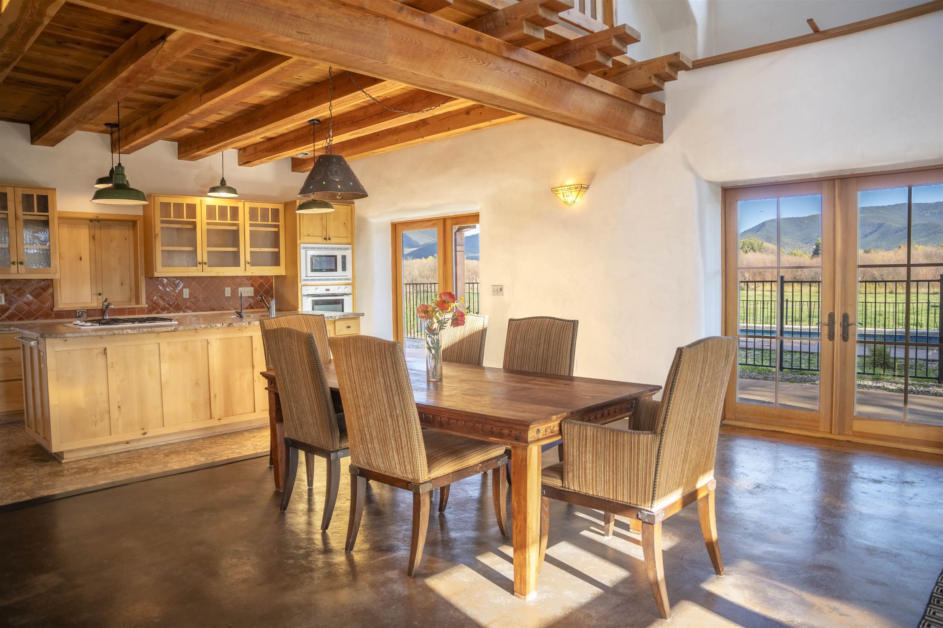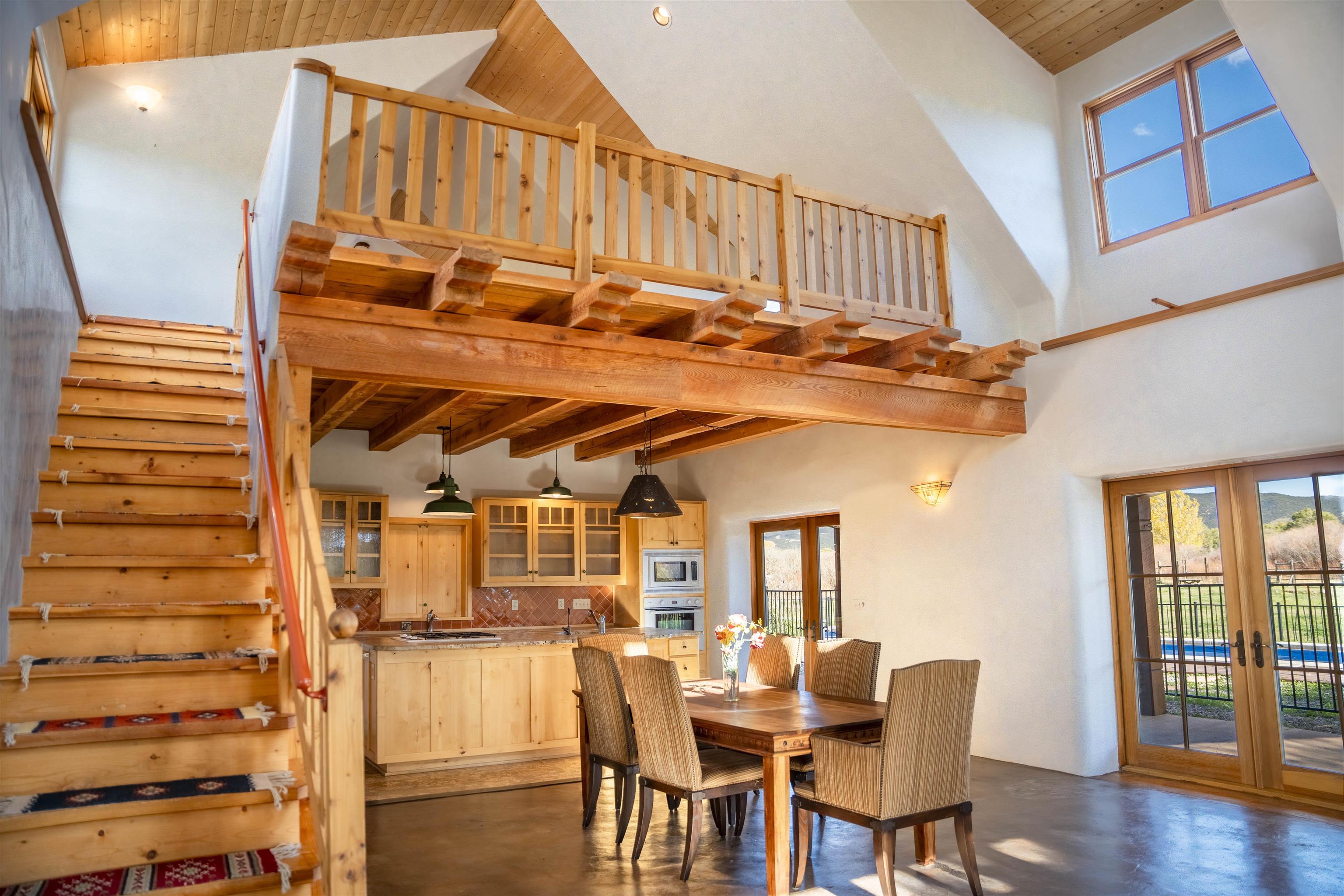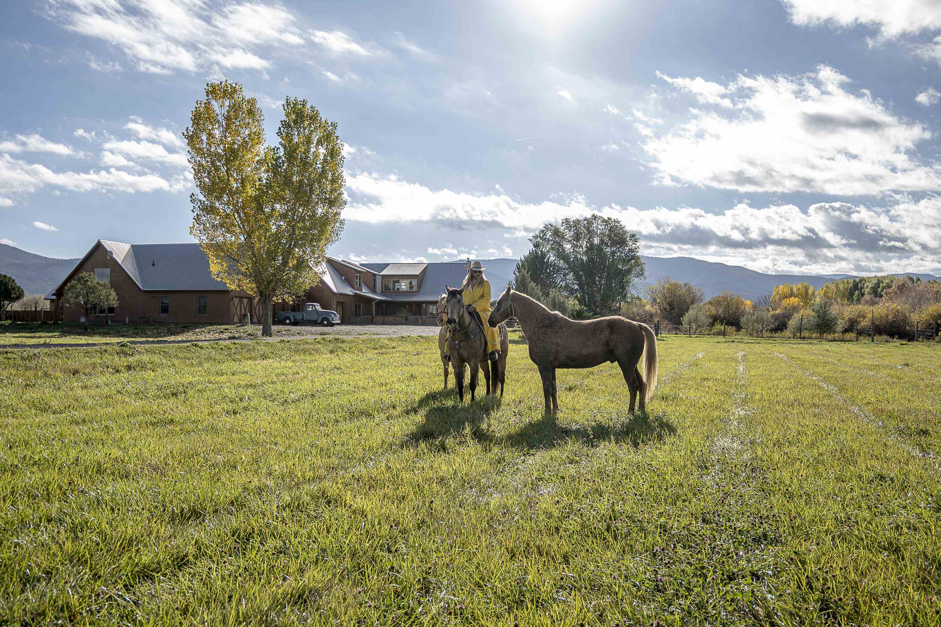 A river runs through it! Just 8 minutes from Taos Plaza, this rare 27+ acre property is both a horse haven and a thriving wildlife sanctuary. The main straw-bale home offers natural comfort year-round, while the guest house provides private space for family or caretakers. The expansive irrigated pastures and wetlands create an unmatched sense of peace and privacy. Equestrian facilities include a 4-horse barn, multiple loafing sheds, and ample grazing areas. When it's time to unwind, swim year-round in the heated lap pool surrounded by nature and mountain views. Protected by a conservation trust in part, this property offers sustainable living, abundant wildlife, and proximity to everything Taos has to offer — a true New Mexico treasure.