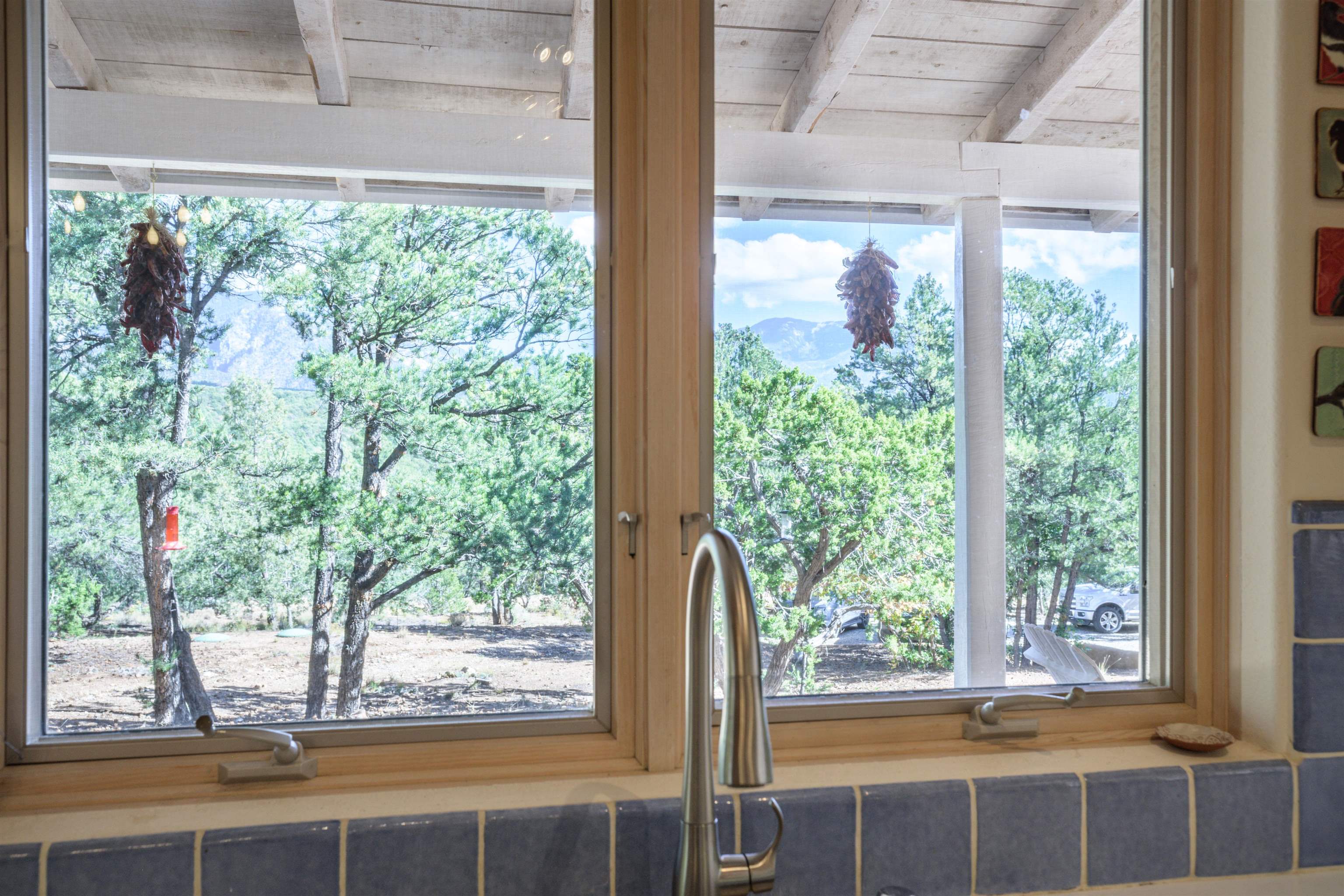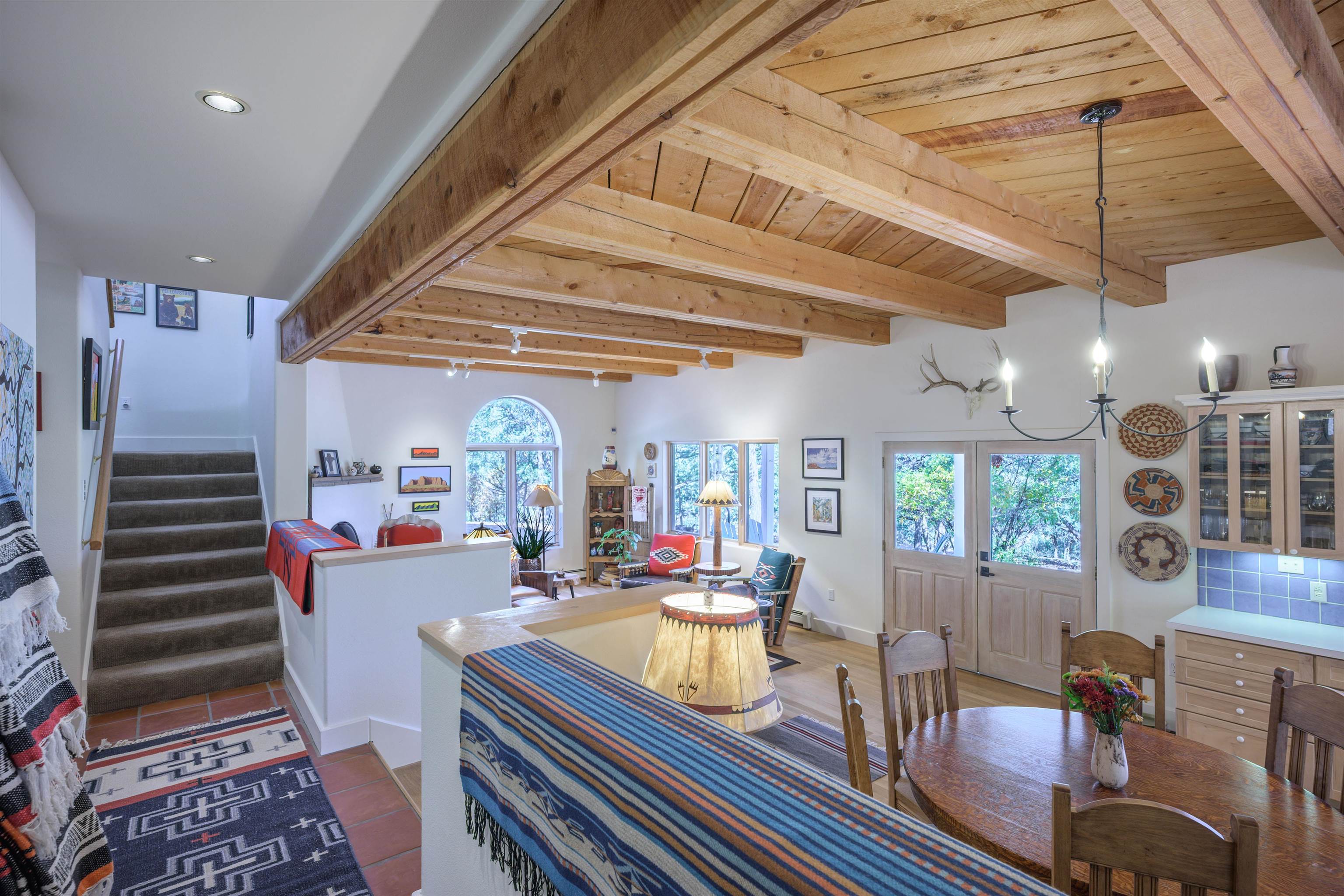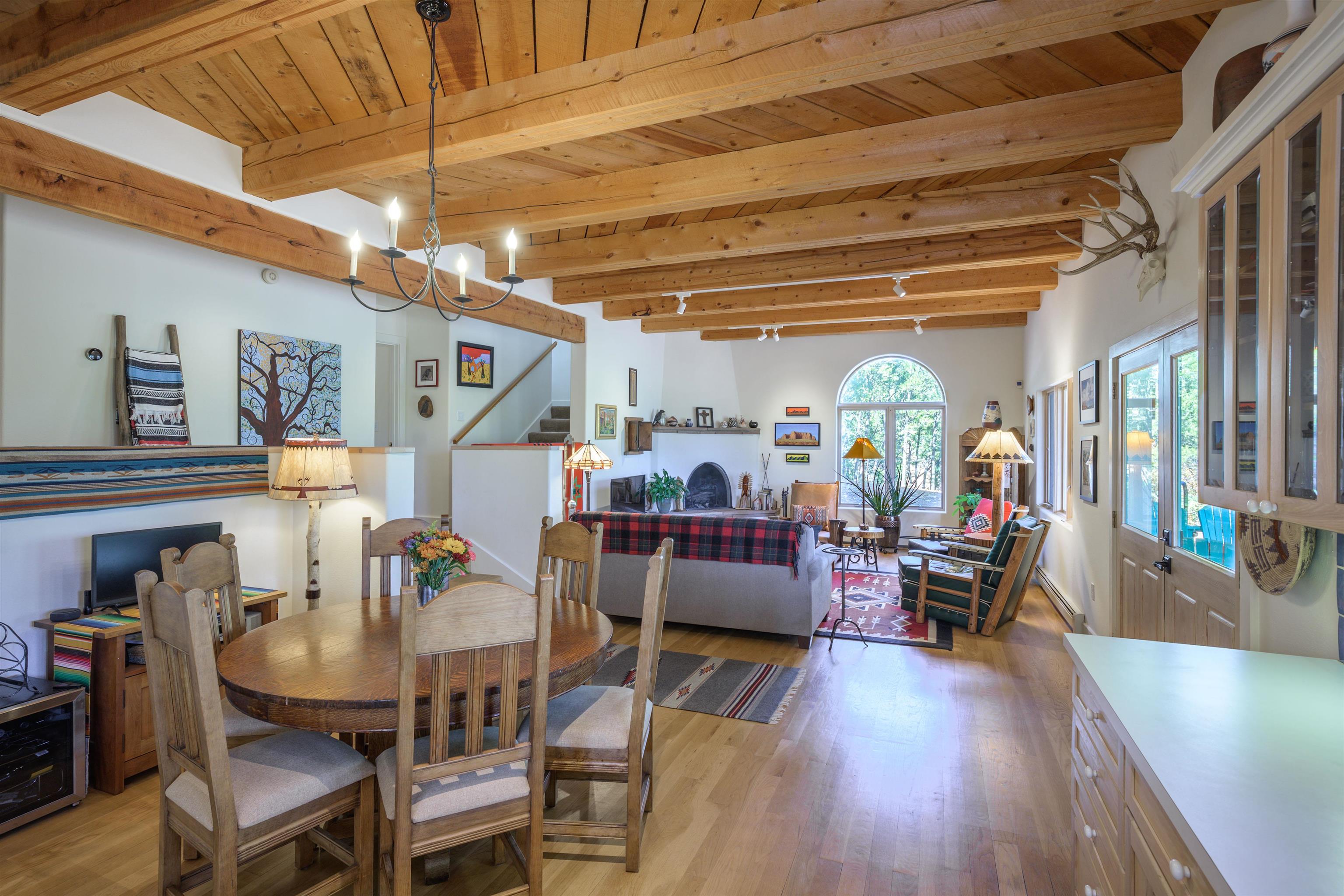 Peaceful mountain living meets timeless New Mexico charm in this beautifully updated territorial-style home on 2.54 wooded acres between Taos Ski Valley and the Town of Taos. Thoughtfully designed for comfort and connection to nature, this 3-bedroom, 2.5-bath home offers 2,064 sq ft of warm, light-filled living space. The main level features a welcoming living room with a southwest-style kiva fireplace, open-beam ceilings, and large windows that frame forest and mountain views. The inviting kitchen blends modern convenience with traditional detail and opens to the dining area for easy entertaining. The private primary suite has an updated ensuite bath, while the upper level provides a spacious multi-purpose room ideal for guests, a studio, or a family retreat. Enjoy expansive outdoor living on two covered decks and a flagstone patio surrounded by low adobe walls—perfect for morning coffee or evenings by the fire pit under starry skies. The detached garage, mature trees, and serene mountain backdrop make this property a rare Taos-area gem—move-in ready and minutes to Arroyo Seco, hiking, and skiing. This home is ready for your arrival to enjoy the Winter Holidays & Ski Season Joy! Please note: The current owners will need to remain in the property until the end of January 2026. They are open to closing early and engaging in a lease-back agreement until their departure. HOA fee is $200/yr for road maintenance.