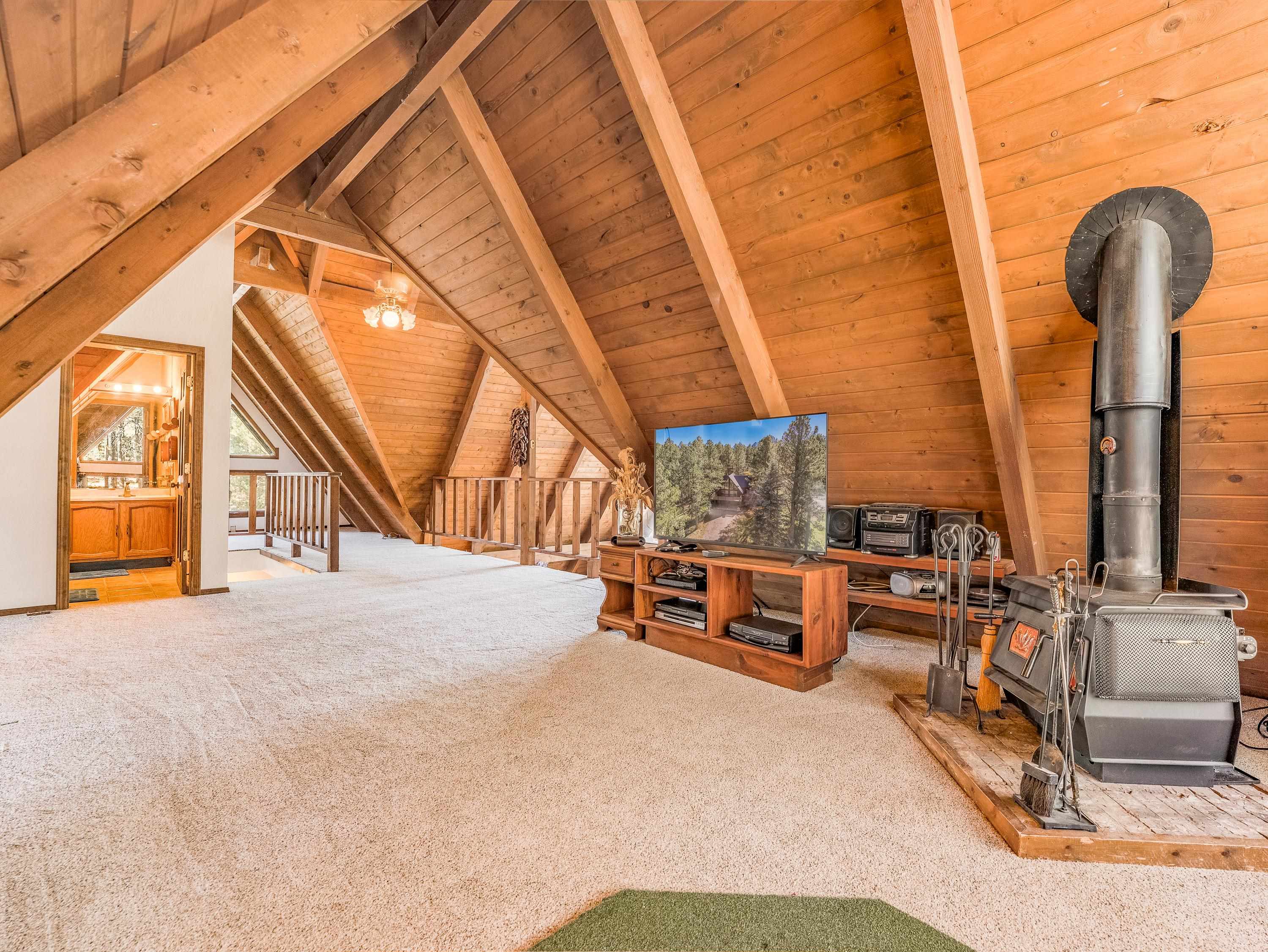 Whether you’re looking for summertime fun, winter excitement, or a little of both, this expansive, multi-level home is ready to be your family’s mountain getaway. Boasting three spacious levels, 42 Pine Valley Drive offers plenty of room for everyone ready for adventure! The window wall in the A-frame great room offers natural light plus views of the surrounding pines, while being a perfect gathering place for the entire family. The well-stocked kitchen has lots of cabinet and pantry space, plus access to the wraparound deck, making al fresco dinner parties a breeze to host. Two cozy guest rooms with a full bathroom in the hall offer quiet places to rest, while the lofted primary bedroom and second living space and full bathroom, complete with a walk-in shower, give you extra privacy from the main level. The lowest level is a blank canvas, ready to become a workshop, second den, or whatever space you can imagine! A laundry room and attached two-stall garage complete the creature comforts of the home. Located just minutes from the Angel Fire Resort Country Club and Olympic Parks' new pickleball facilities, and a short drive to the Angel Fire Resort ski slopes, 42 Pine Valley Drive will be calling you to the mountains over and over again.