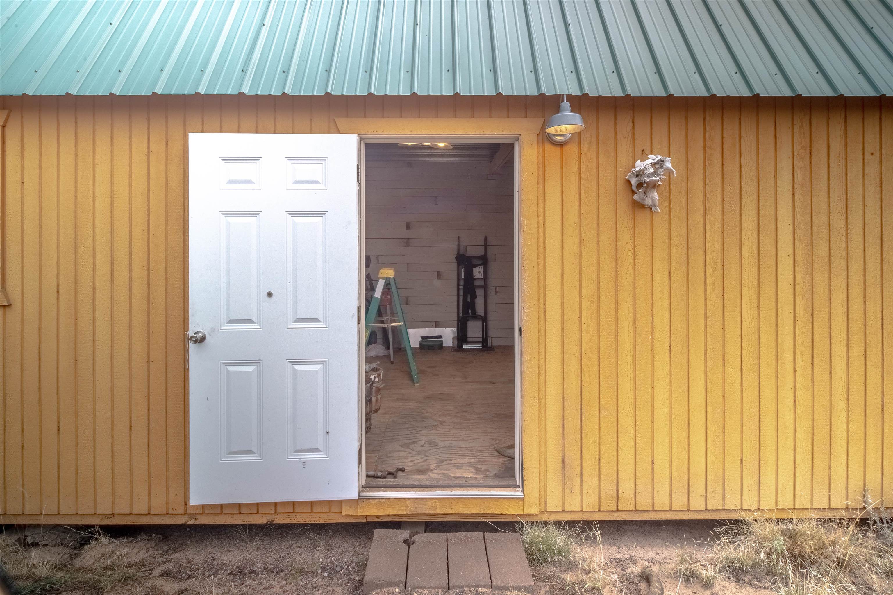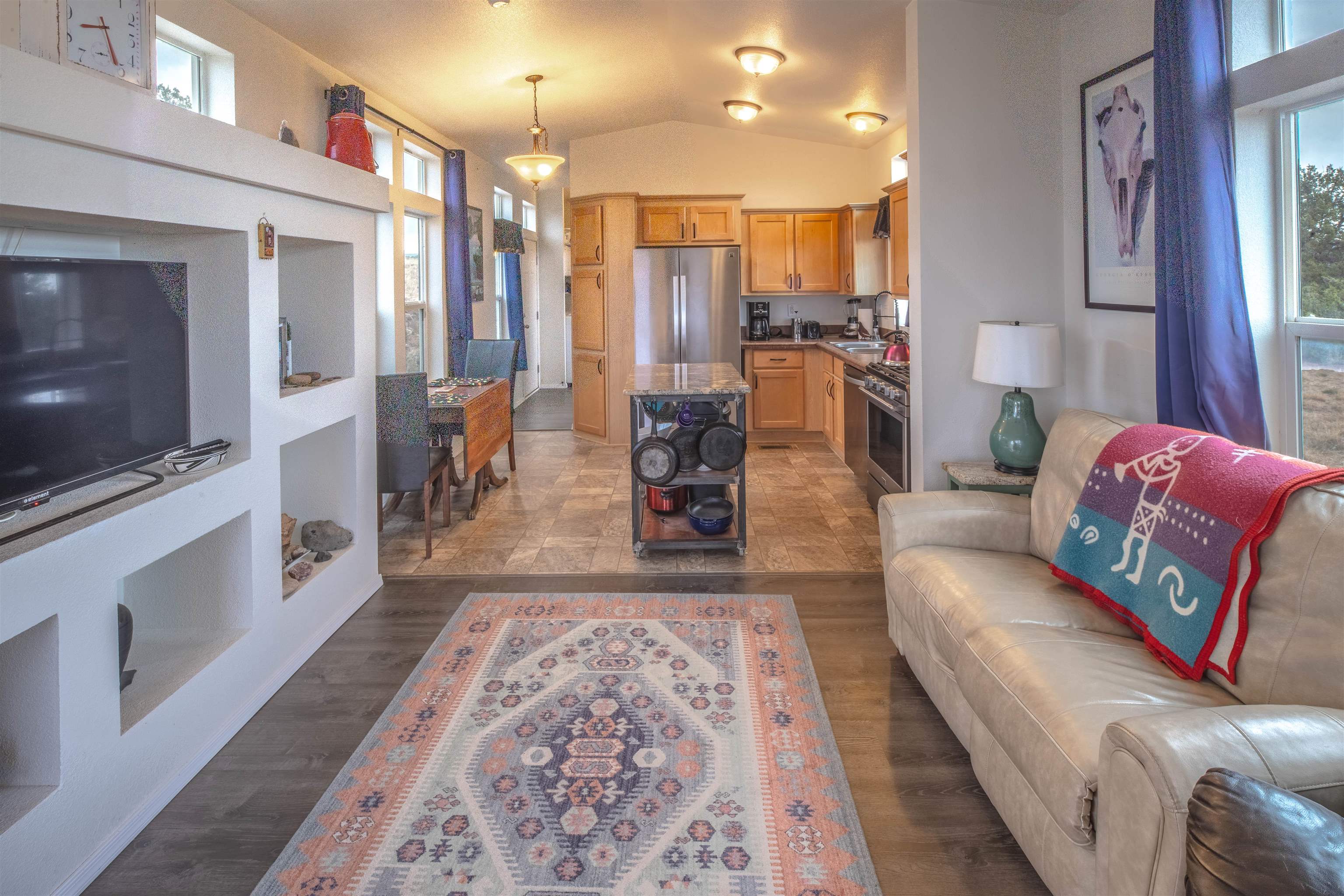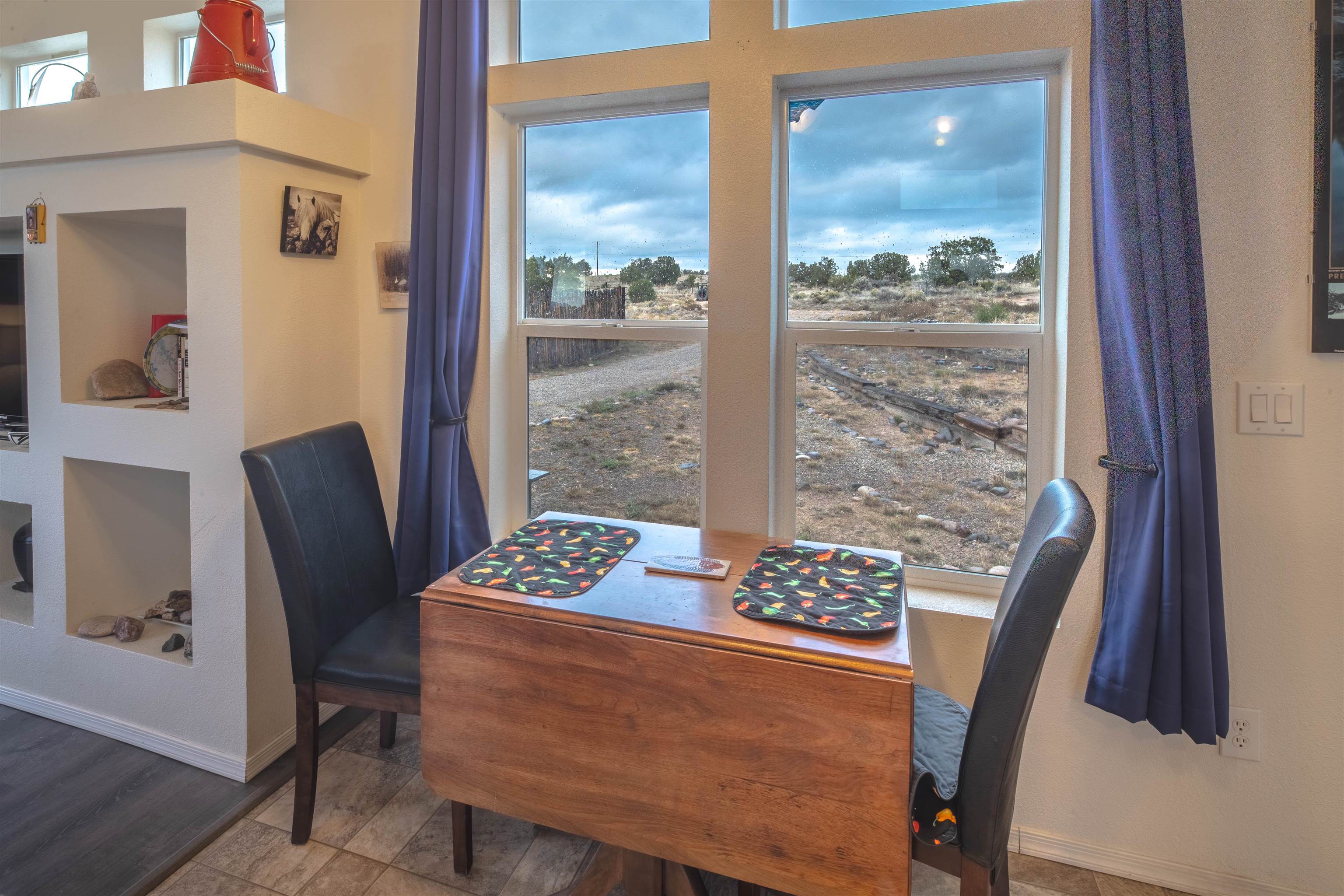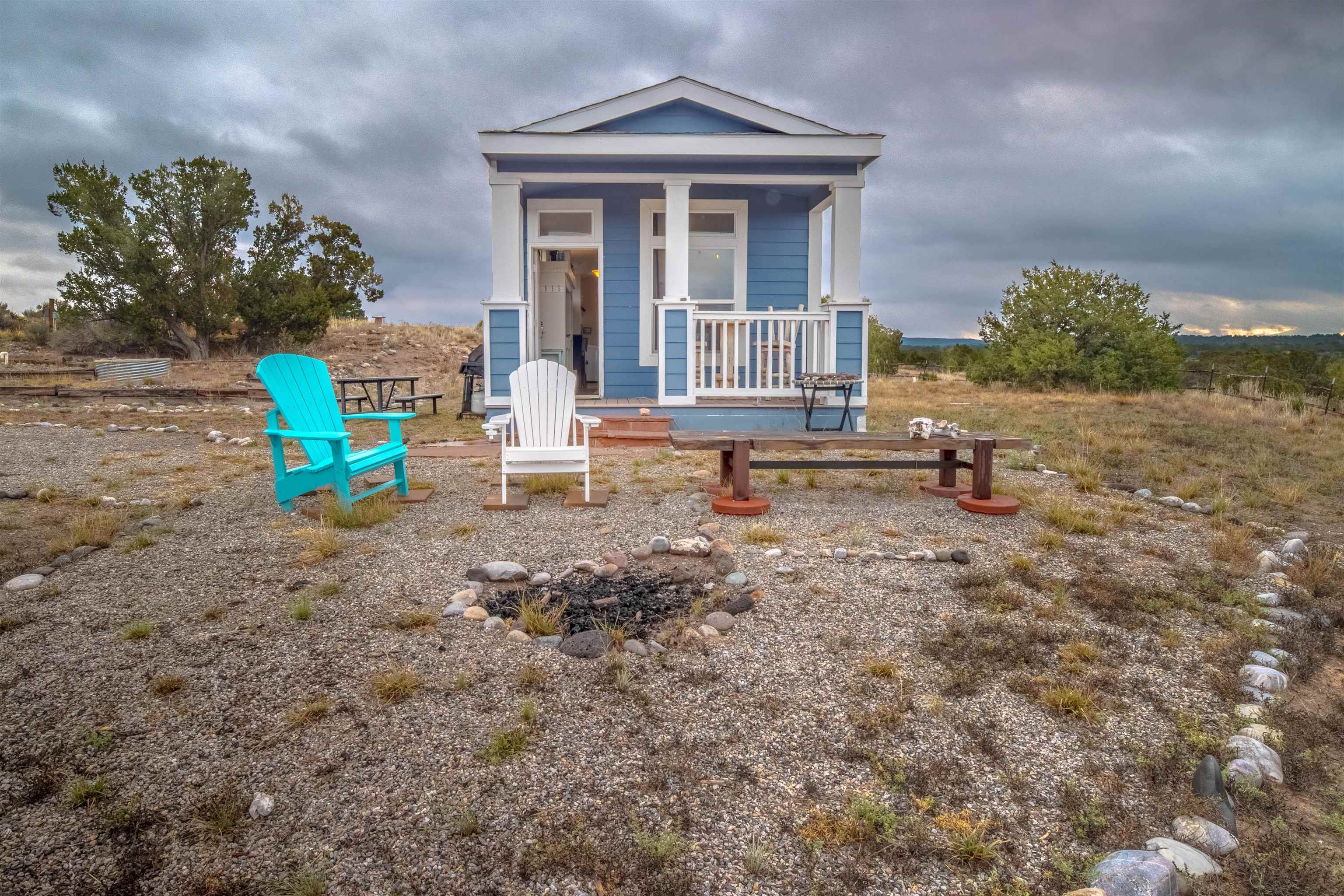 Welcome to this serene 28-acre property—ready for your horses, long walks with your dogs, and quiet mornings with coffee as you gaze at the Mesa Vibora, Cerro Azul, Black Mesa and iconic Pedernales. The property features a charming and cozy home of approximately 720 square feet with a welcoming front deck and thoughtful updates throughout. Interior enhancements include 2x6 construction, added insulation for climate efficiency, new laminate flooring, recently replaced appliances, and a beautiful new center island. With both forced air heat and cooling, you’ll enjoy comfort in every season. The home rests on a permanent foundation with a crawl space for easy access and peace of mind. Affectionately known as The Blue House, this successful Airbnb offers flexibility as a cozy primary residence, income property, or transitional home while you build your dream retreat on the surrounding acreage. The 28 acres have already been surveyed and thoughtfully divided into three plots: Plot 1: Includes the home and a 12x30 workshop with electricity (wired for a welder) and a large roll-up door—perfect for projects, storage, or creative work while taking in expansive mountain views. The workshop has been insulated and professionally wired. Plots 2 & 3: The first is 10 acres and the second consists of 8 acres, with electrical boxes. Check with Kit Carson for final electrical hook-up. Each parcel can accommodate two homes, offering the potential to create a small development, family compound, or multi-home retreat. Modular homes allowed with some protective covenants in place. Additional property features include three RV spaces—two with electricity and one with full hookups including water, sewer and wifi as well as 30 amp electricity—ideal for guests, rental opportunities, or future expansion. Water capacity is plentiful with two 1,600-gallon storage tanks, reducing the need for frequent water deliveries. Stay connected with Kit Carson high-speed fiber optic internet and enjoy reliable comfort year-round with a large propane tank serving the home. An established, recorded recreational easement ( hiking and horseback—no vehicles) through the adjacent 40-acre tract leads directly into the Carson National Forest, where you’ll find scenic trails perfect for horseback riding, hiking, and peaceful walks with your dogs. The setting is private yet ideally located—just minutes from Ojo Caliente Mineral Springs Resort & Spa for soaking, massages, and fine dining. Private electric gate makes access easy and split rail fenced to keep cows from the house, the property also has six acres fenced for a horse pasture and panels for easy penning. You’re also within easy reach of historic Taos, where you can explore the Taos Pueblo, Taos Plaza, and enjoy the area’s grocery stores, shops, and medical services—not to mention exceptional dining options for every taste and occasion. The backroad to El Rito and Abiquiu offers great views and recreational opportunities plus dining variety in El Rito and Abiquiu. Only one hour to board the historic Cumbres and Toltec train!