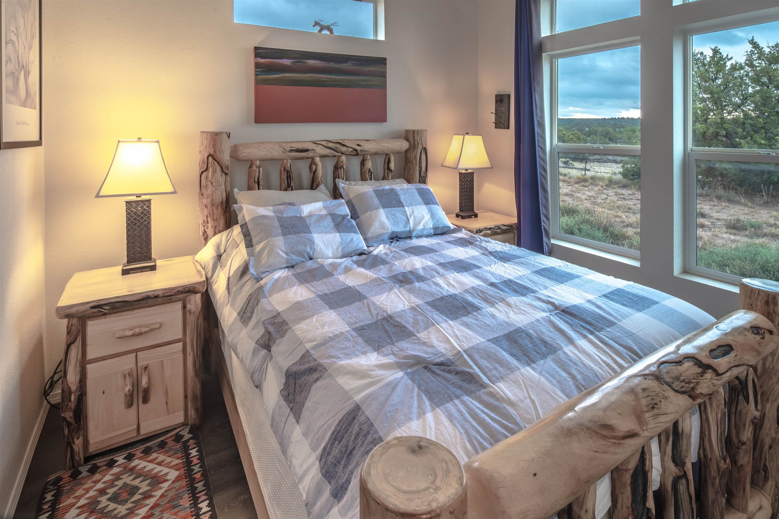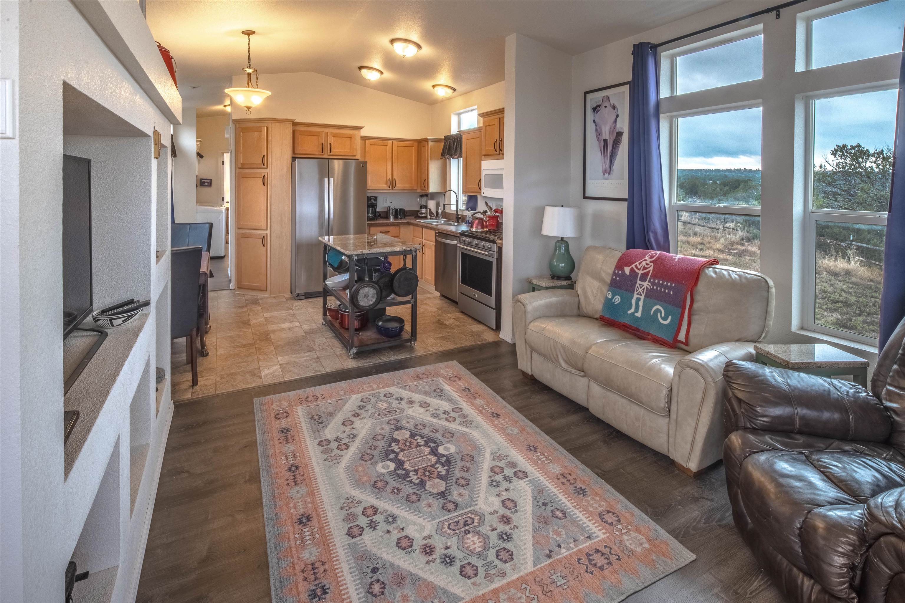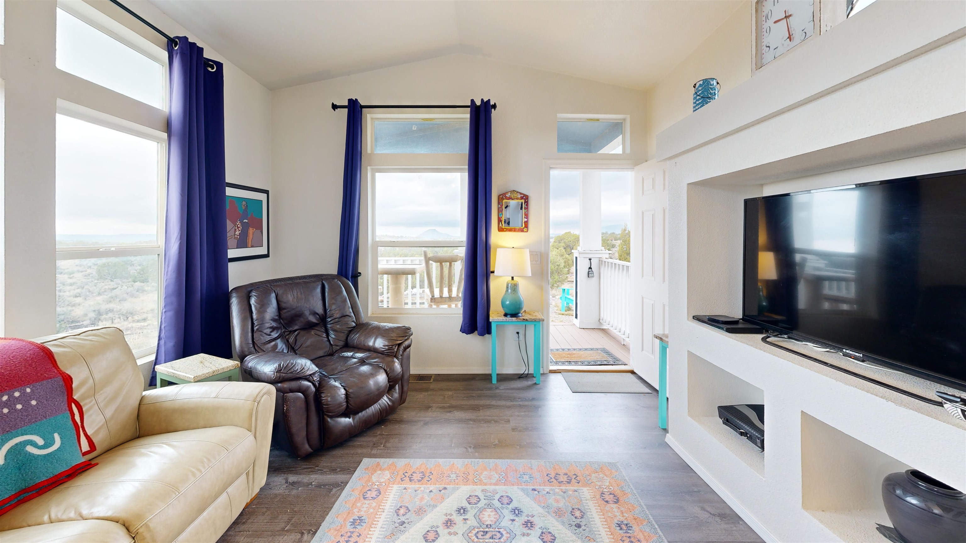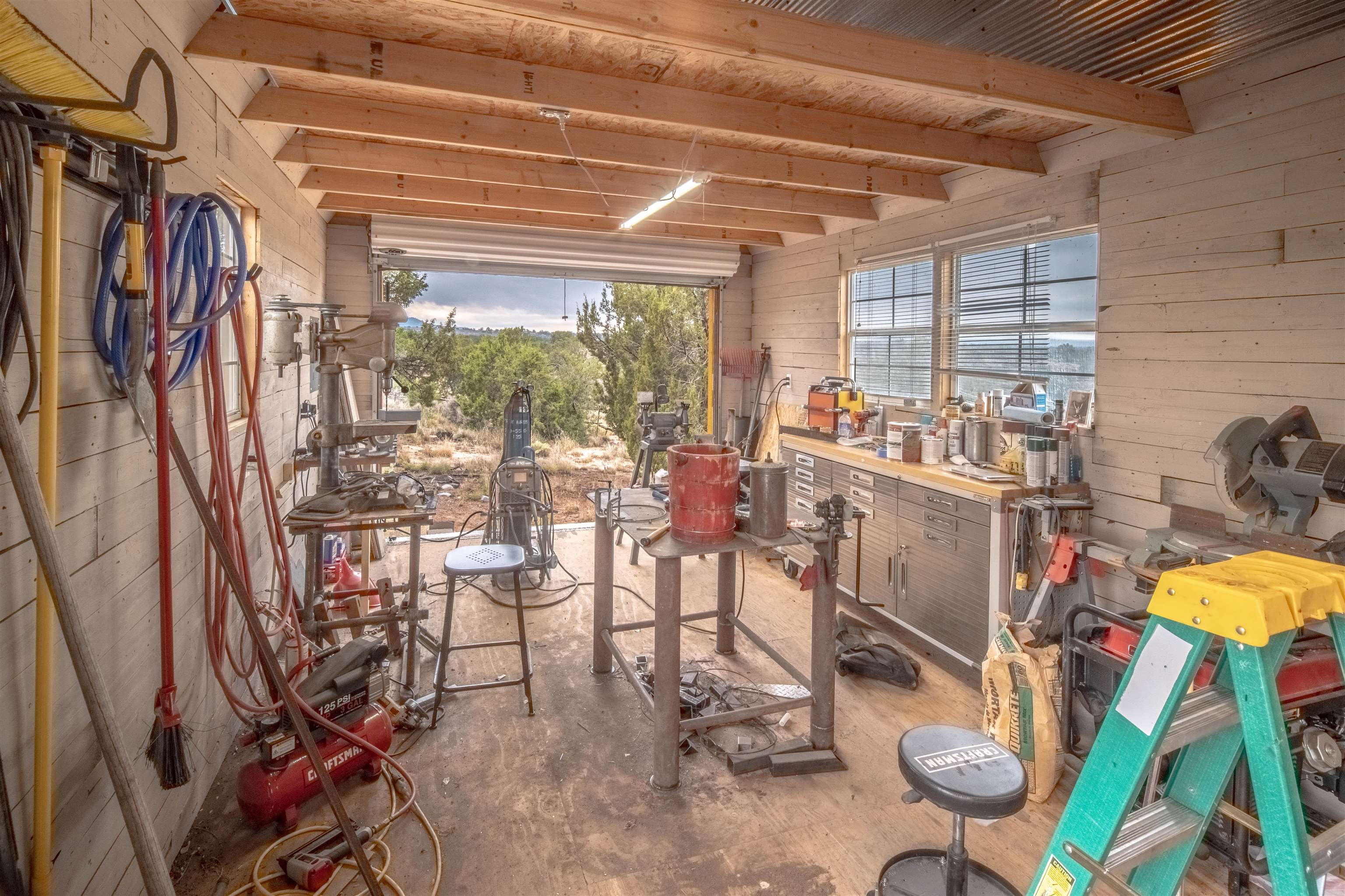 Welcome to this serene 28-acre property—ready for your horses, long walks with your dogs, and quiet mornings with coffee as you gaze at the Mesa Vibora, Cerro Azul, Black Mesa and iconic Pedernales. The property features a charming and cozy home of approximately 720 square feet with a welcoming front deck and thoughtful updates throughout. Interior enhancements include 2x6 construction, added insulation for climate efficiency, new laminate flooring, recently replaced appliances, and a beautiful new center island. With both forced air heat and cooling, you’ll enjoy comfort in every season. The home rests on a permanent foundation with a crawl space for easy access and peace of mind. Affectionately known as The Blue House, this successful Airbnb offers flexibility as a cozy primary residence, income property, or transitional home while you build your dream retreat on the surrounding acreage. The 28 acres have already been surveyed and thoughtfully divided into three plots: Plot 1: Includes the home and a 12x30 workshop with electricity (wired for a welder) and a large roll-up door—perfect for projects, storage, or creative work while taking in expansive mountain views. The workshop has been insulated and professionally wired. Plots 2 & 3: The first is 10 acres and the second consists of 8 acres, with electrical boxes. Check with Kit Carson for final electrical hook-up. Each parcel can accommodate two homes, offering the potential to create a small development, family compound, or multi-home retreat. Modular homes allowed with some protective covenants in place. Additional property features include three RV spaces—two with electricity and one with full hookups including water, sewer and wifi as well as 30 amp electricity—ideal for guests, rental opportunities, or future expansion. Water capacity is plentiful with two 1,600-gallon storage tanks, reducing the need for frequent water deliveries. Stay connected with Kit Carson high-speed fiber optic internet and enjoy reliable comfort year-round with a large propane tank serving the home. An established, recorded recreational easement ( hiking and horseback—no vehicles) through the adjacent 40-acre tract leads directly into the Carson National Forest, where you’ll find scenic trails perfect for horseback riding, hiking, and peaceful walks with your dogs. The setting is private yet ideally located—just minutes from Ojo Caliente Mineral Springs Resort & Spa for soaking, massages, and fine dining. Private electric gate makes access easy and split rail fenced to keep cows from the house, the property also has six acres fenced for a horse pasture and panels for easy penning. You’re also within easy reach of historic Taos, where you can explore the Taos Pueblo, Taos Plaza, and enjoy the area’s grocery stores, shops, and medical services—not to mention exceptional dining options for every taste and occasion. The backroad to El Rito and Abiquiu offers great views and recreational opportunities plus dining variety in El Rito and Abiquiu. Only one hour to board the historic Cumbres and Toltec train!
