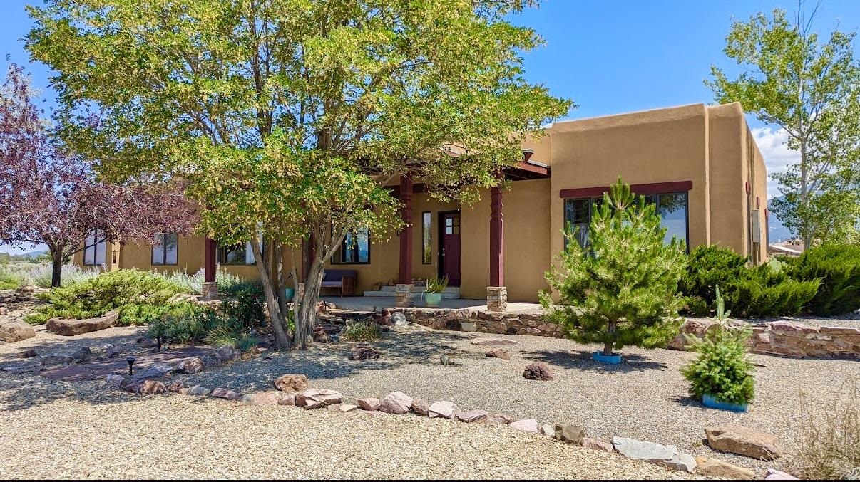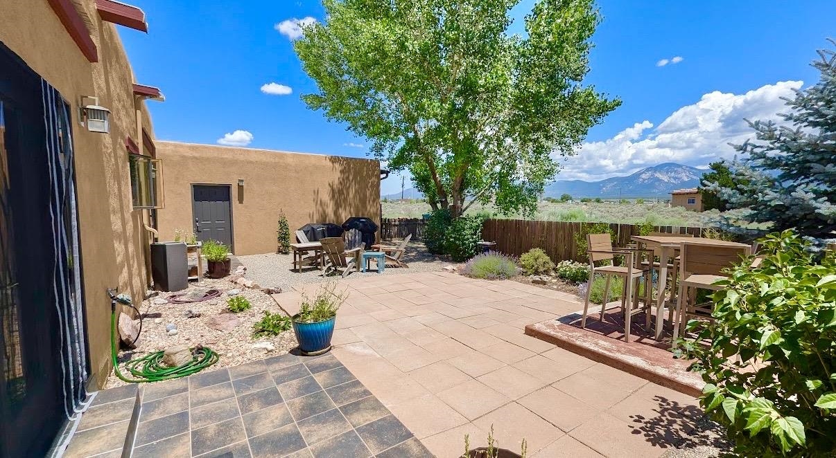 This beautifully maintained Pueblo-style home, constructed in 2006, offers breathtaking views, convenient access to Taos’s renowned amenities, and a short drive to their attractions. Schedule a viewing appointment today to experience this four-bedroom, two-bathroom sanctuary nestled in the heart of Northern New Mexico. Spanning 2,224 square feet, with a 2-car attached garage, this home sits on a one-acre landscaped property that boasts a meticulously designed interior with tile and pergo style flooring, granite countertops, stainless steel appliances, and elegant decor. The open floor plan is well designed and is perfect for day to day living or for entertaining. The master suite is spacious and features a walk-in closet and master bathroom with a jetted tub and walk-in shower. The spacious outdoor living area is further enhanced by mature trees, a patio, a covered porch, and panoramic views of the majestic Sangre de Cristo mountains. Strategically located, the home is approximately 10 minutes from the Town of Taos, 25 minutes from the Taos Ski Valley, 9 minutes from the Rio Grande Gorge Bridge, and 5 minutes from the Taos Regional Airport, this home provides unparalleled convenience for those seeking a Northern New Mexico lifestyle. Please reach out if you would like to see this home in person.