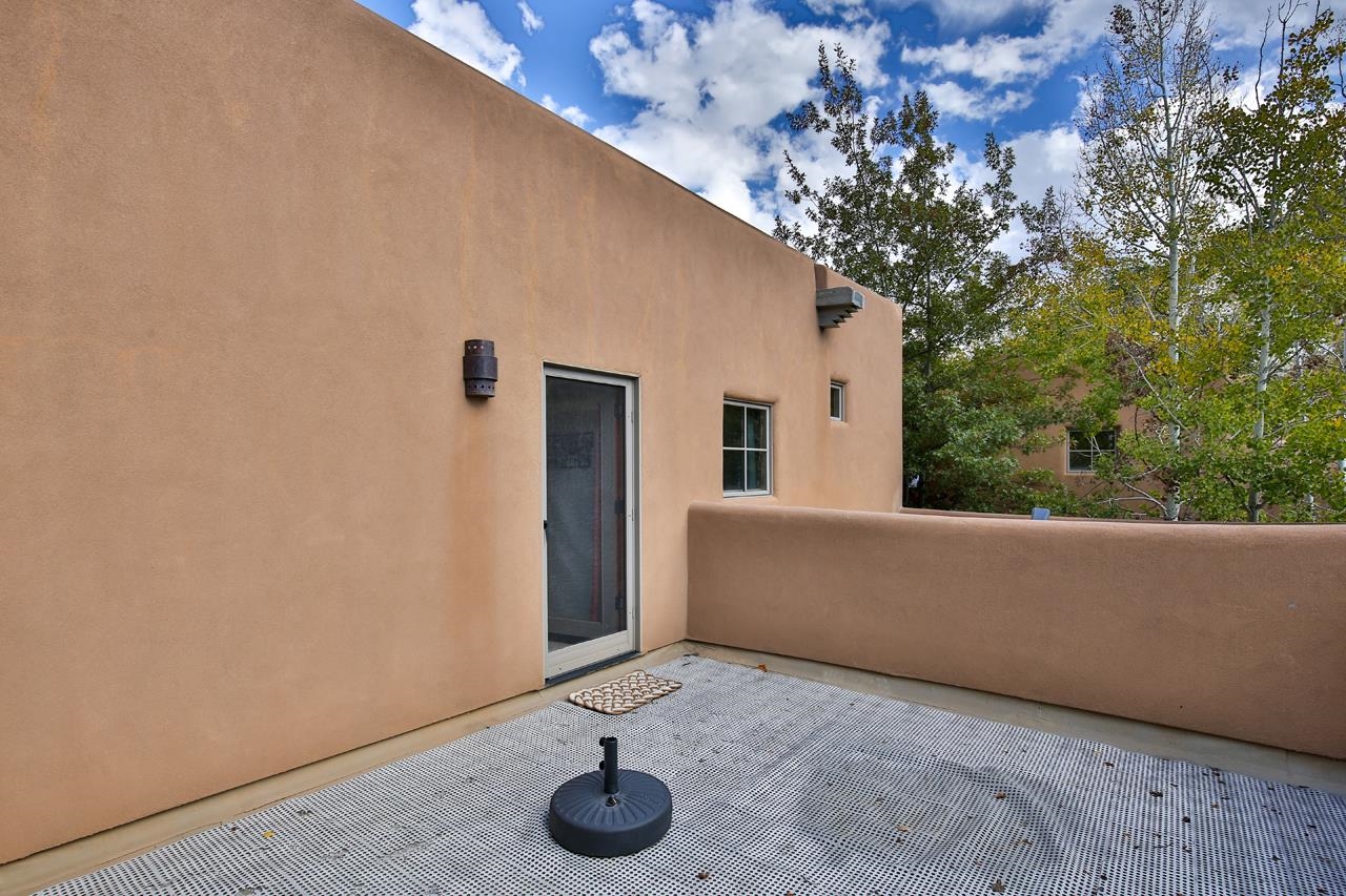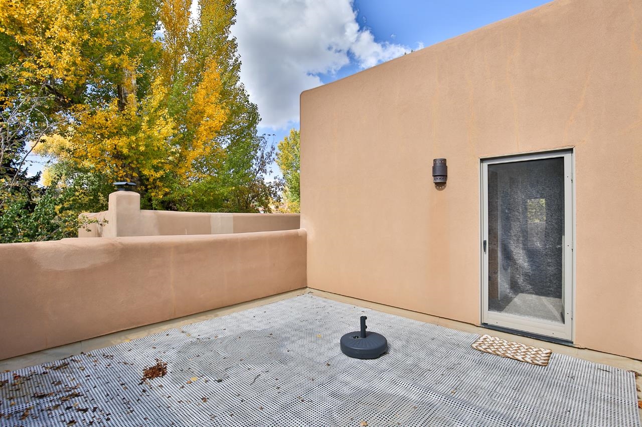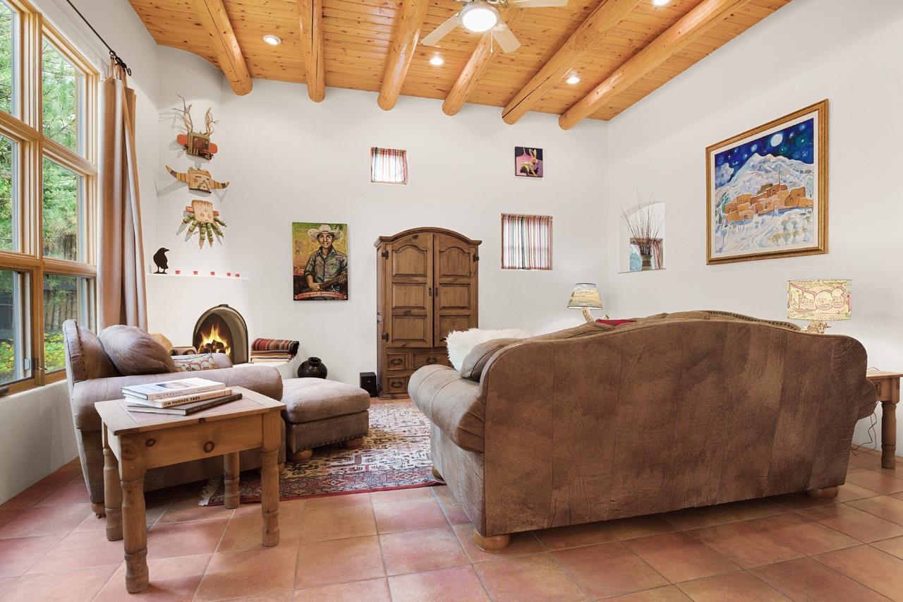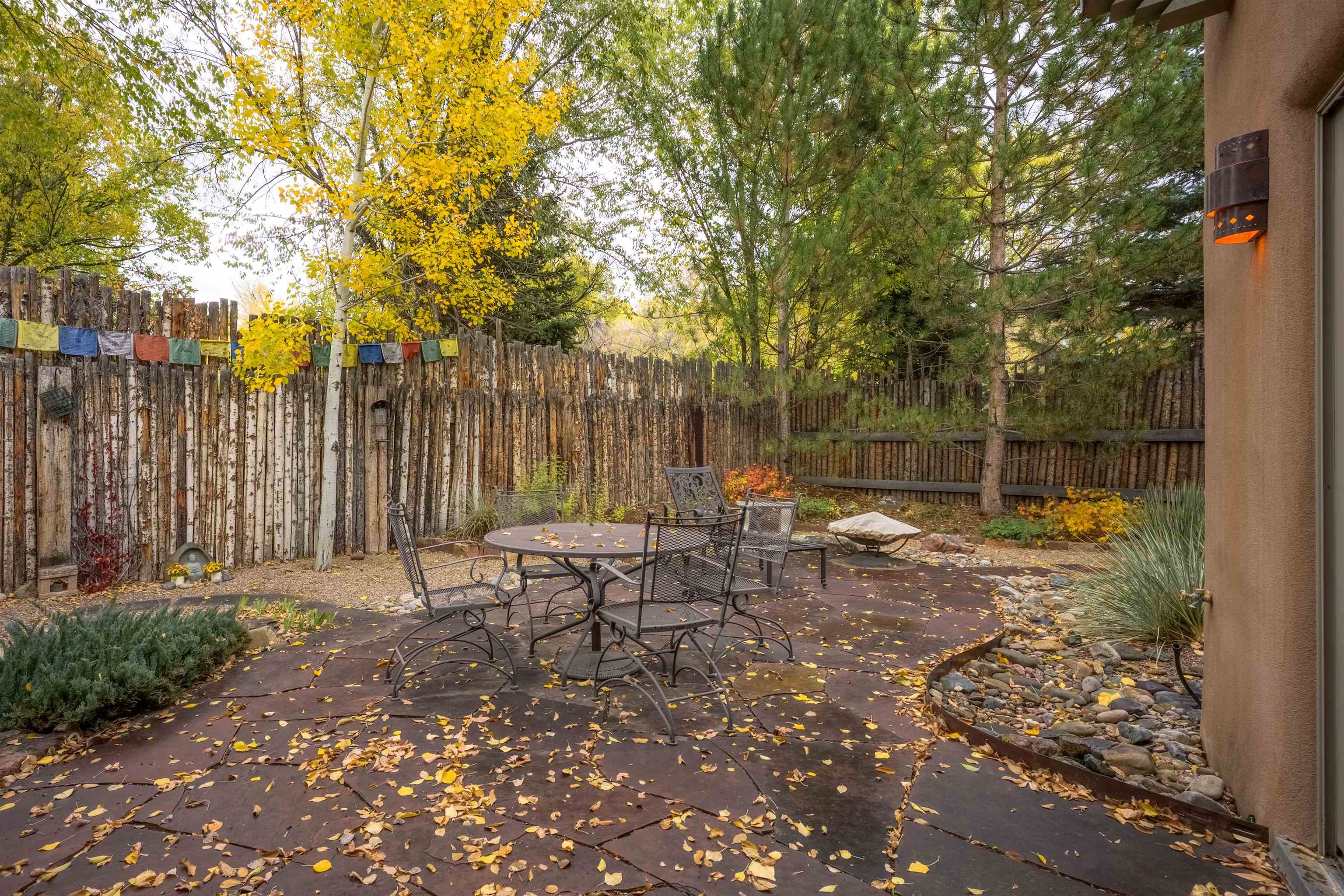 Turn-Key Condo! Fully Updated and Fully Furnished! Ready for Winter Holidays & Ski Season Joy Discover this beautifully maintained 2BR/2.5BA, 1,787 sq. ft. in-town condo, turn-key, fully furnished and ready to enjoy — the ideal stress-free home or vacation retreat. The spacious layout features Southwest touches like soaring vigas, a cozy corner fireplace, and tile floors that create a warm, inviting atmosphere. The wall of windows offers abundant natural light and mountain views, opening the space and enhancing the airy feel. The gourmet kitchen is a showstopper, with granite countertops, stainless steel appliances, and generous storage. Dine privately at the stylish island, entertain in the large dining area, or enjoy outdoor meals on the patio while gazing at the fire pit under the stars. A convenient powder room and laundry room add everyday practicality. The colorful downstairs bedroom includes an ensuite bath, walk-in closet, and a private patio—perfect for guests or a home office. The upstairs primary suite features a walk-in closet, spacious bath with a deep Japanese soaking tub, and an additional deck on each side for sunset viewing or morning coffees. The home was designed with space for an elevator, which is currently used for extra storage but offers future flexibility. Please note: Condo is being sold fully furnished excluding a few personal items and artwork. See exclusion list attached. Natural light floods the entire home via skylights and solar tubes, creating a cheerful sanctuary year-round. Subfloor heating and natural gas keep you toasty in winter, while overhead fans keep things cool in summer. Unlike many condos, enjoy a generous backyard with double coyote fencing, providing privacy and a cozy pet-friendly space. Nestled in a peaceful pocket off Kit Carson Road., the location offers easy walking access to historic Taos Plaza, shops, galleries, and the museum, with plenty of nearby restaurants. Outdoor adventures, such as skiing, hiking, biking, golfing, fishing, and rafting, are just a short drive away. This impeccably maintained condo is your opportunity to enjoy everything Taos has to offer — don’t miss out! Schedule a showing today and treat yourself to the perfect mountain lifestyle. PLEASE NOTE: The fire in the fireplace is virtually staged—per rental policy, as per Town of Taos guidelines. Domestic pets are allowed.