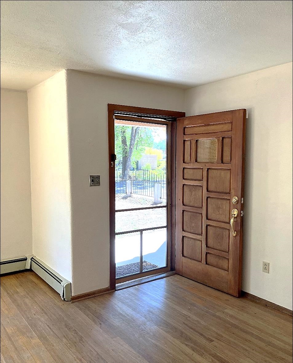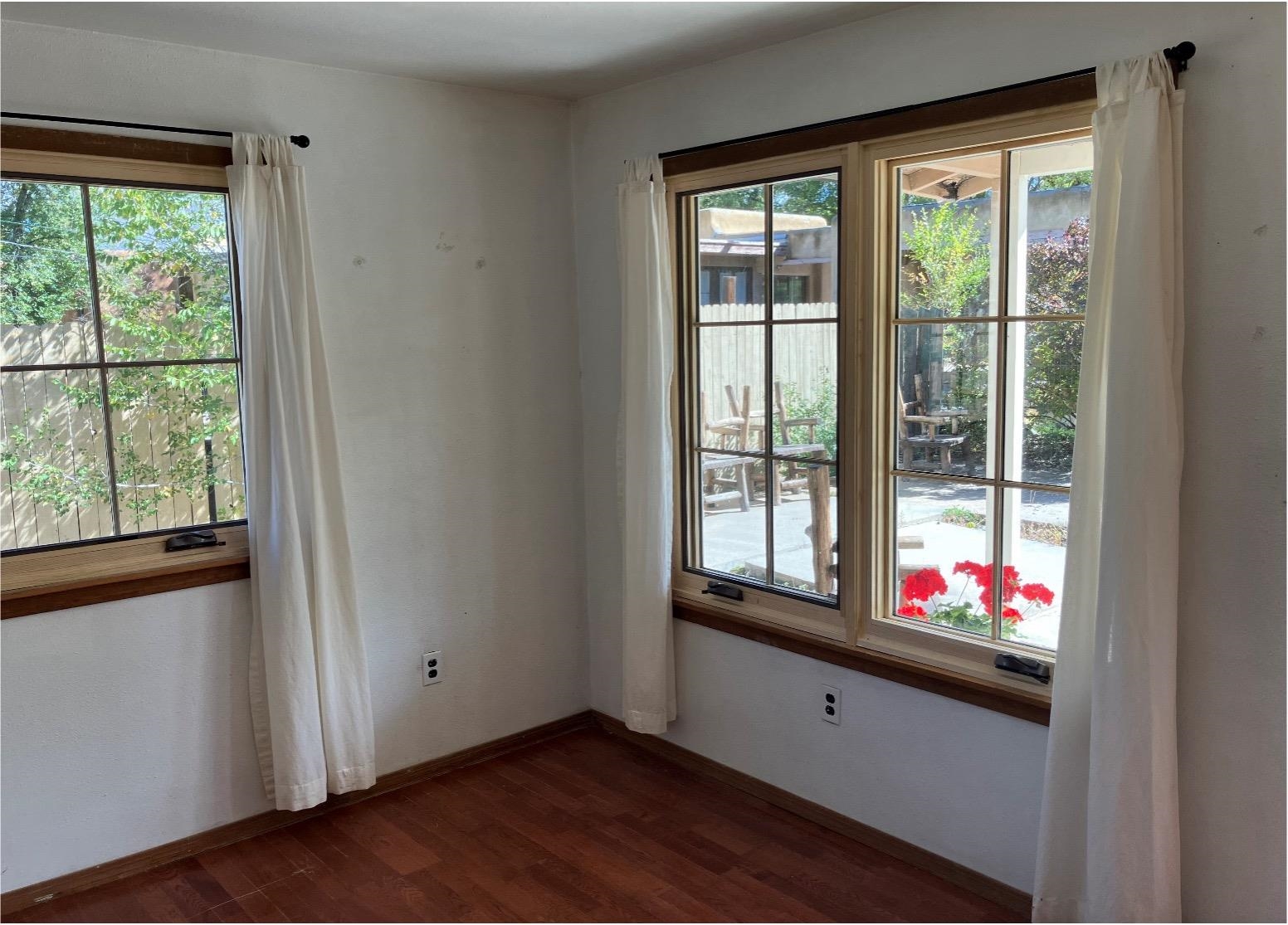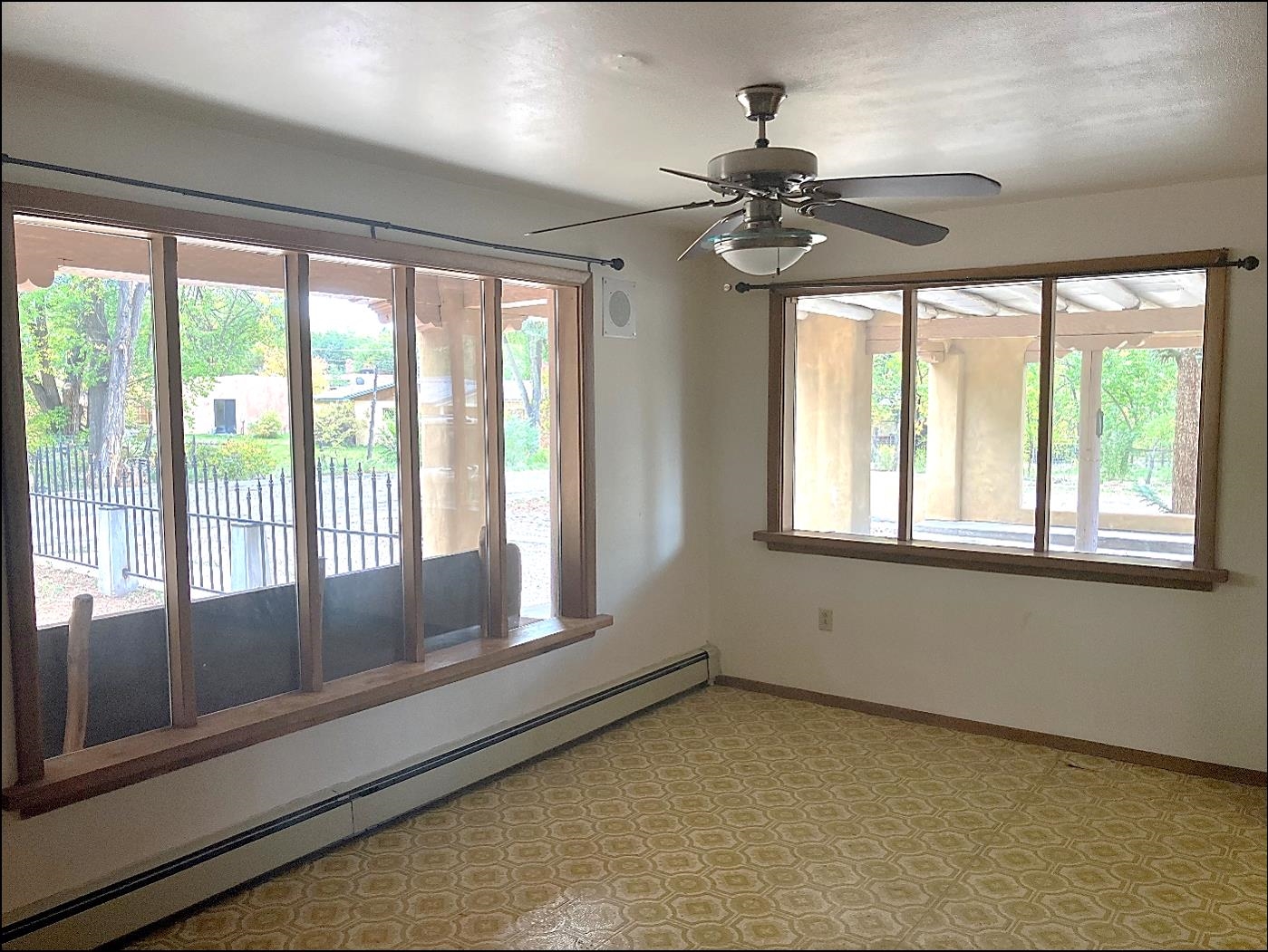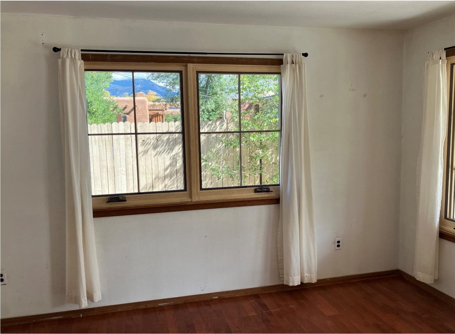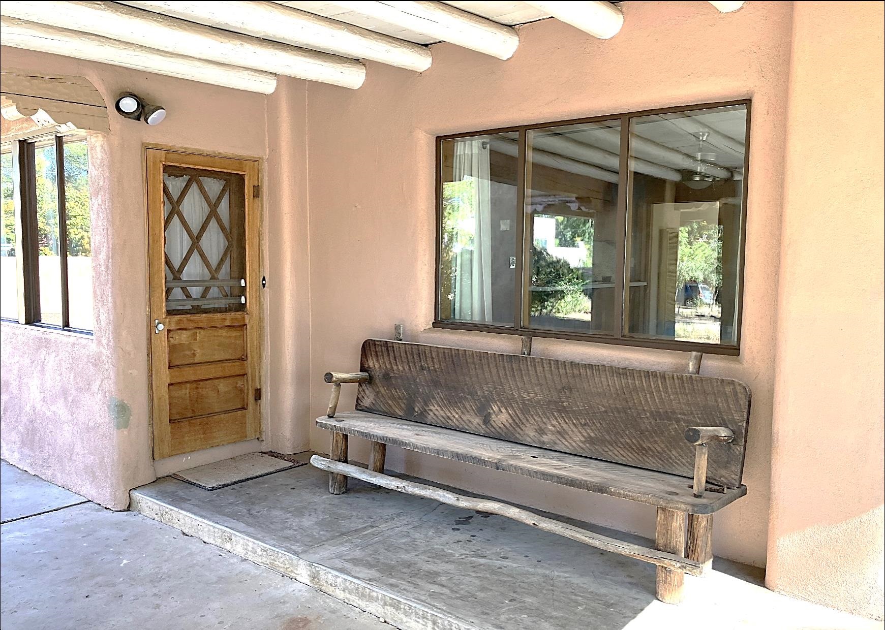 This traditional Taos property sits on two lots in the historic Lund subdivision of downtown Taos. The main house, in Pueblo/Southwestern style, has 3 bedrooms and two bathrooms, while the charming casita has one bedroom, one bath. Built in 1951, the 1,392 sq.ft. main house has a fireplace, galley kitchen, and separate laundry room. House has hot water baseboard heating with an additional wall heater in the livingroom. The generous front and back yards provide ample space for gardening and entertaining. The main house also has two attached carports. Original pecan wood paneling and built-ins throughout. Property features preserved authentic, retro design elements that are hard to find today. Update or restore this original and unique architectural home in the historic Taos district. The one-bedroom, 762 sqft casita was built in 1987 and has new Sierra Vista windows and metal roof, with wall heaters in the bedroom and living area. The casita has a large, private yard with several patios. Walk to everything in downtown Taos, including the historic Taos Plaza, the Taos Inn, the Harwood Museum, restaurants and shops. Fast, fiber-optic internet available in both houses.