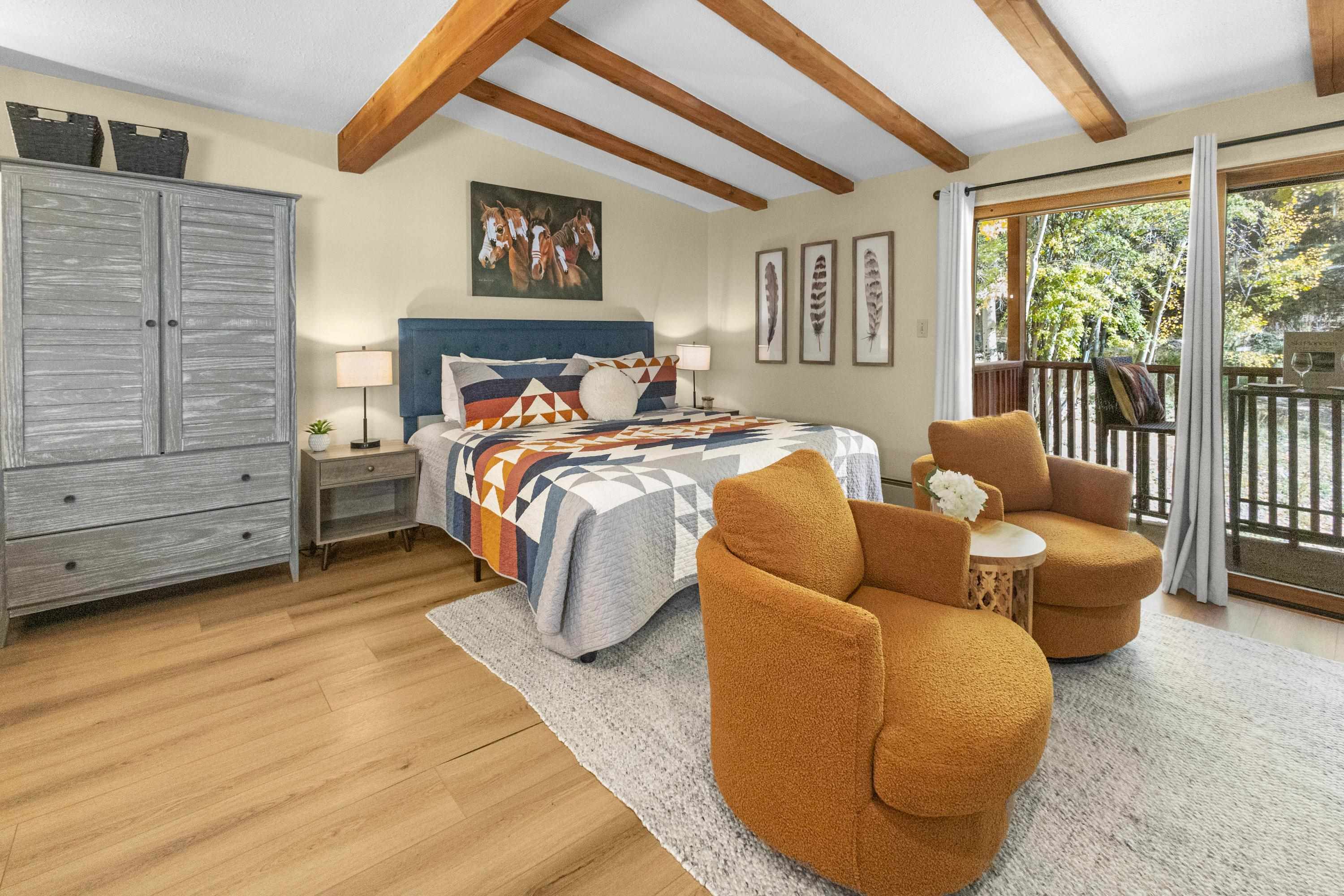 Introducing a distinctive condominium opportunity at Powderhorn Condominiums, situated in the heart of Taos Ski Valley. This inviting studio provides an ideal four-season retreat, conveniently located within walking distance of the lifts, base area, restaurants, and shops. Guests can conveniently park their vehicles and access all amenities on foot. This fully furnished and meticulously designed studio offers everything necessary for relaxation, culinary endeavors, and unwinding after a day of skiing or hiking. It features a cozy electric fireplace, ideal for sharing stories, and a complete bathroom equipped with a tub for soothing sore muscles. This condo is turnkey and ready for the season, boasting fresh paint, laminate flooring, a recently installed king-sized bed, an oversized armoire, plush chairs, and a cafe table on the private balcony. Home Owner's Association fees include virtually all services and expenses: trash collection, grounds and building maintenance, electric, natural gas, water, sewer, Dish Network satellite TV, high -speed fiber Wifi, building insurance, and snow removal. Additional amenities include a private deck for enjoying morning coffee or après-ski beverages and access to a spacious lobby area. The unit also includes a private owner’s locker, providing convenient storage for ski and equipment. A VIP parking area is provided for your convenience after unloading luggage and is within walking distance.