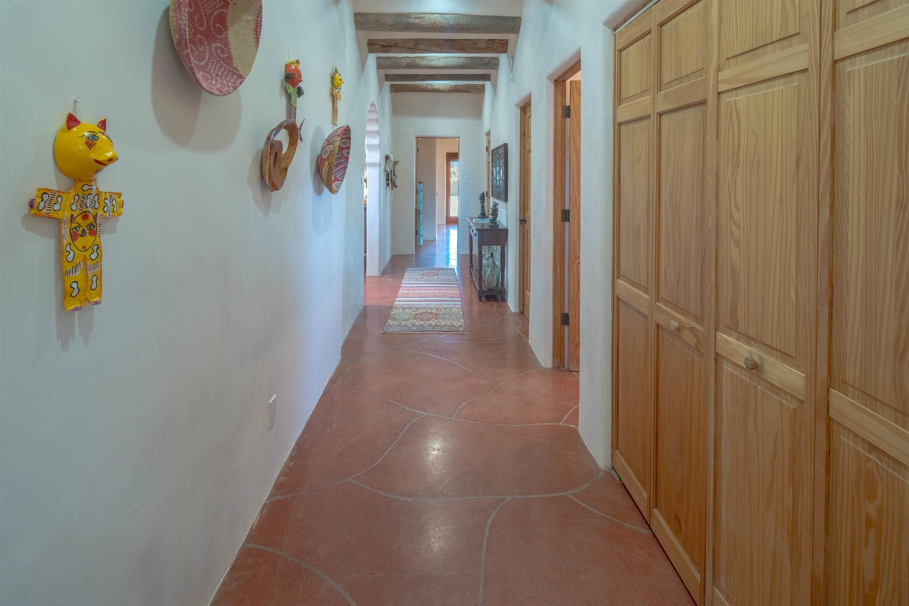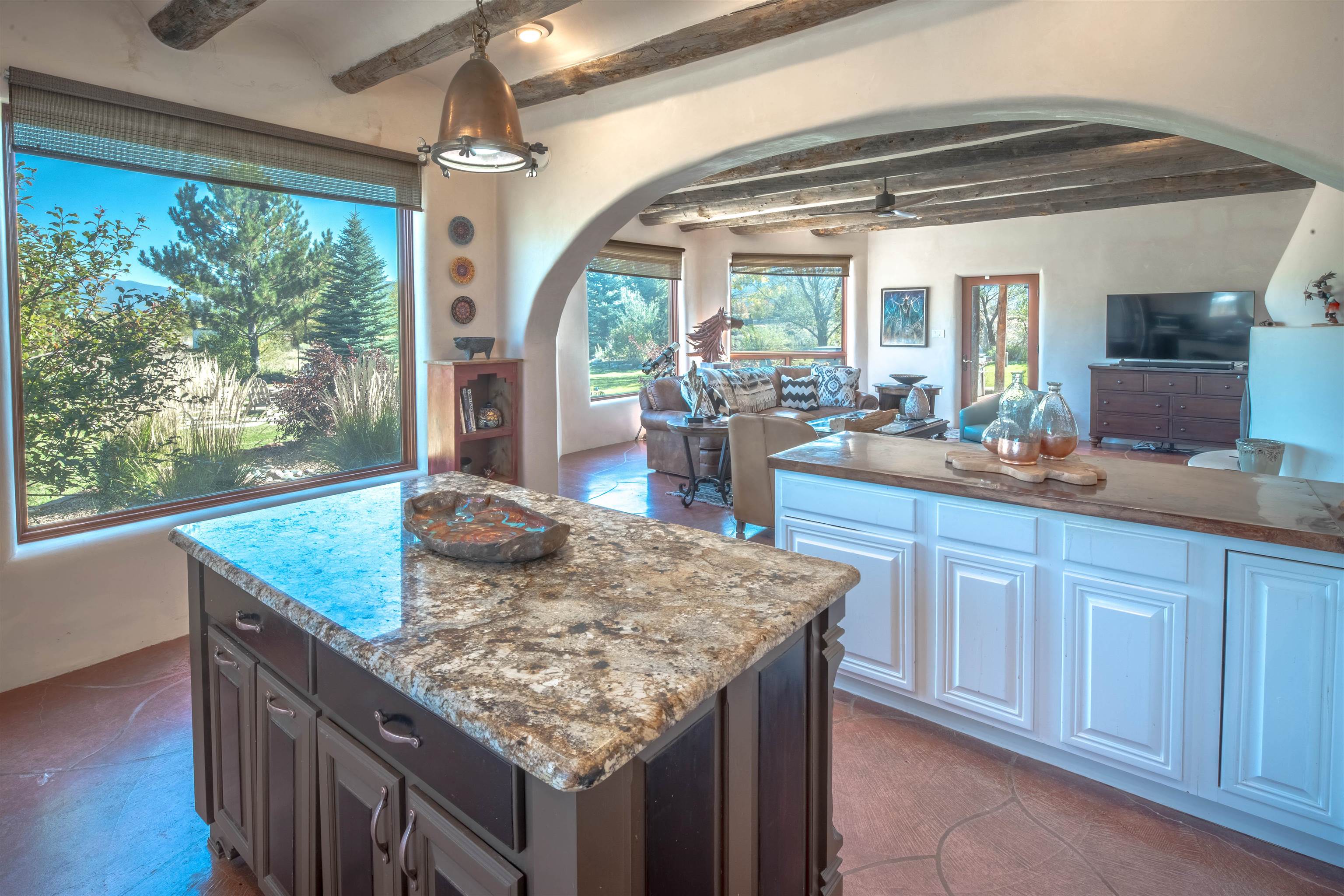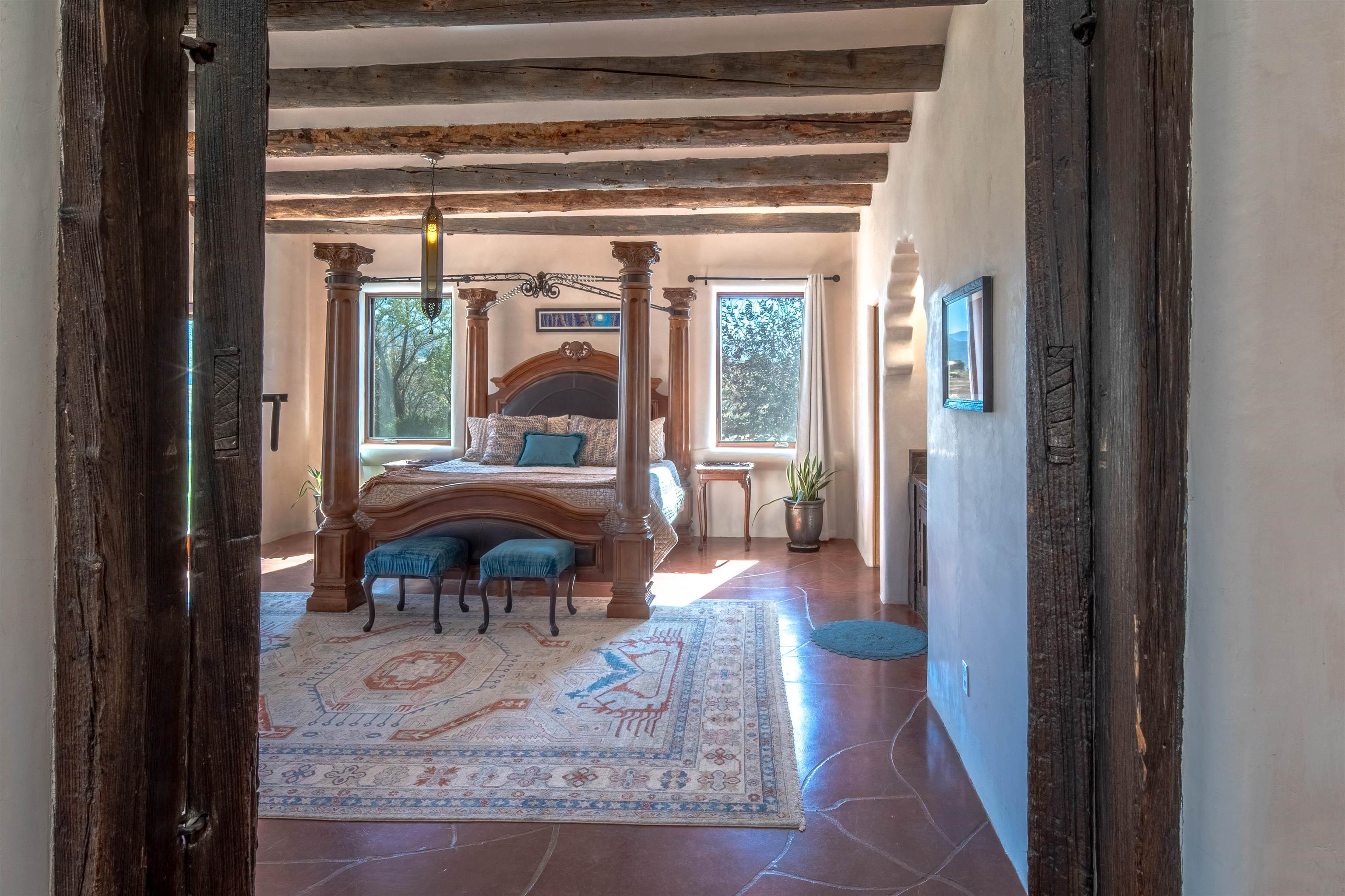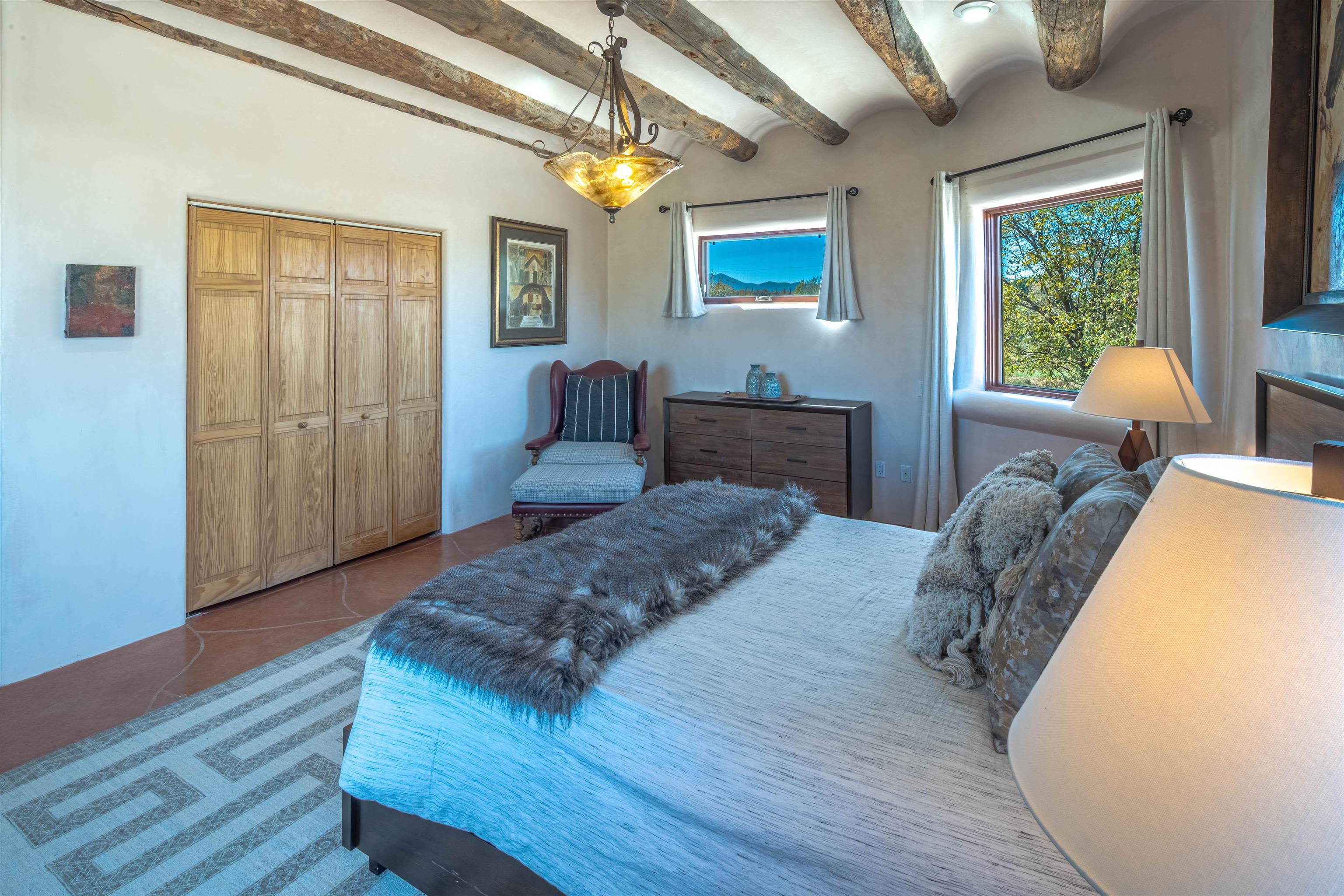 Welcome to Casa Vogue - timeless elegance and sophistication abound with this home designed by Nona Wesley, owner of Maya Designs Inc. of Taos, and built by Felipe Rodriguez, owner of 90 Degree Corners. This stunning three-bedroom, three-bathroom home with an additional office/study is being sold fully furnished with the absolute finest in elegance and comfort. You immediately enter through the hand carved double doors into an exquisite dining room with a stunning fireplace dividing the living room and dining room. There are very large picture windows with breathtaking views of Taos Mountain from the kitchen and living room areas, and admirable details in every room of the home. This home is perfect for entertaining with the open concept design, and with mountain views for starry nights, sunsets and ultimate privacy. This adobe constructed Pueblo-style home cannot be fabricated in today’s environment, and the artistic details throughout each of the rooms are unmatched. If that is not enough, there are also water rights from the acequia running along the property. Only ten minutes to the Town of Taos, one still feels like you are miles away from the hustle and bustle. This is a true treasure, and it is definitely one not to miss. Check out the exterior drone video, and the interior and exterior video tours on the listing and then schedule your private showing today. You definitely will not regret it.