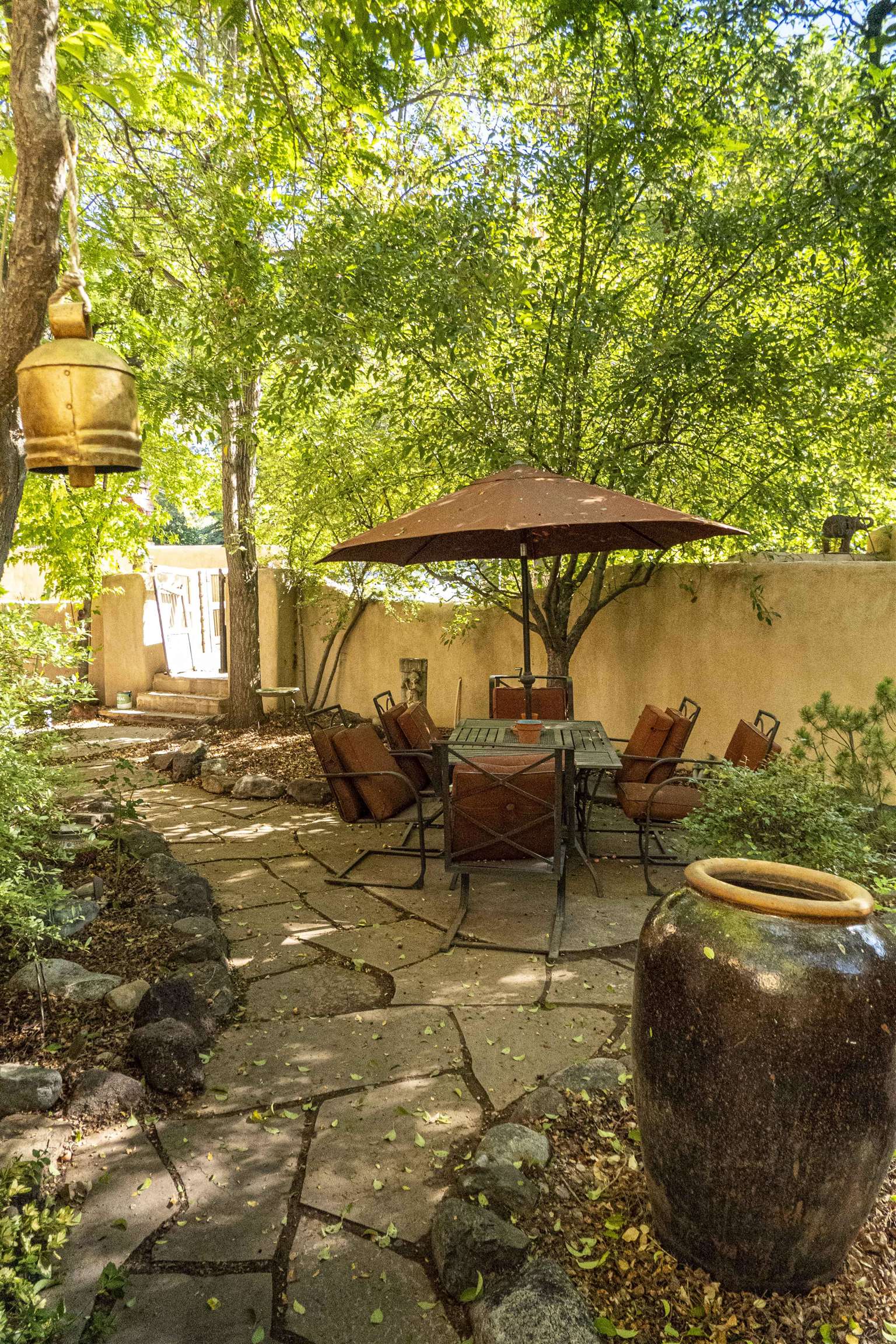 Los Rosales De Taos Condominiums are some of the most sought after residences in Taos. In Walking distance to Taos Plaza and right across the street from El Monte Sagrado Resort and Spa, this unique one story condominium features all the fine finishes of a true adobe home. it has a magnificent private courtyard, and portal for outdoor living. With radiant floor heat and a genuine Carmen Velarde fireplace you will be cozy and warm. This is the first time ever that the Unit has been placed on the market and is still owned by the original developer.