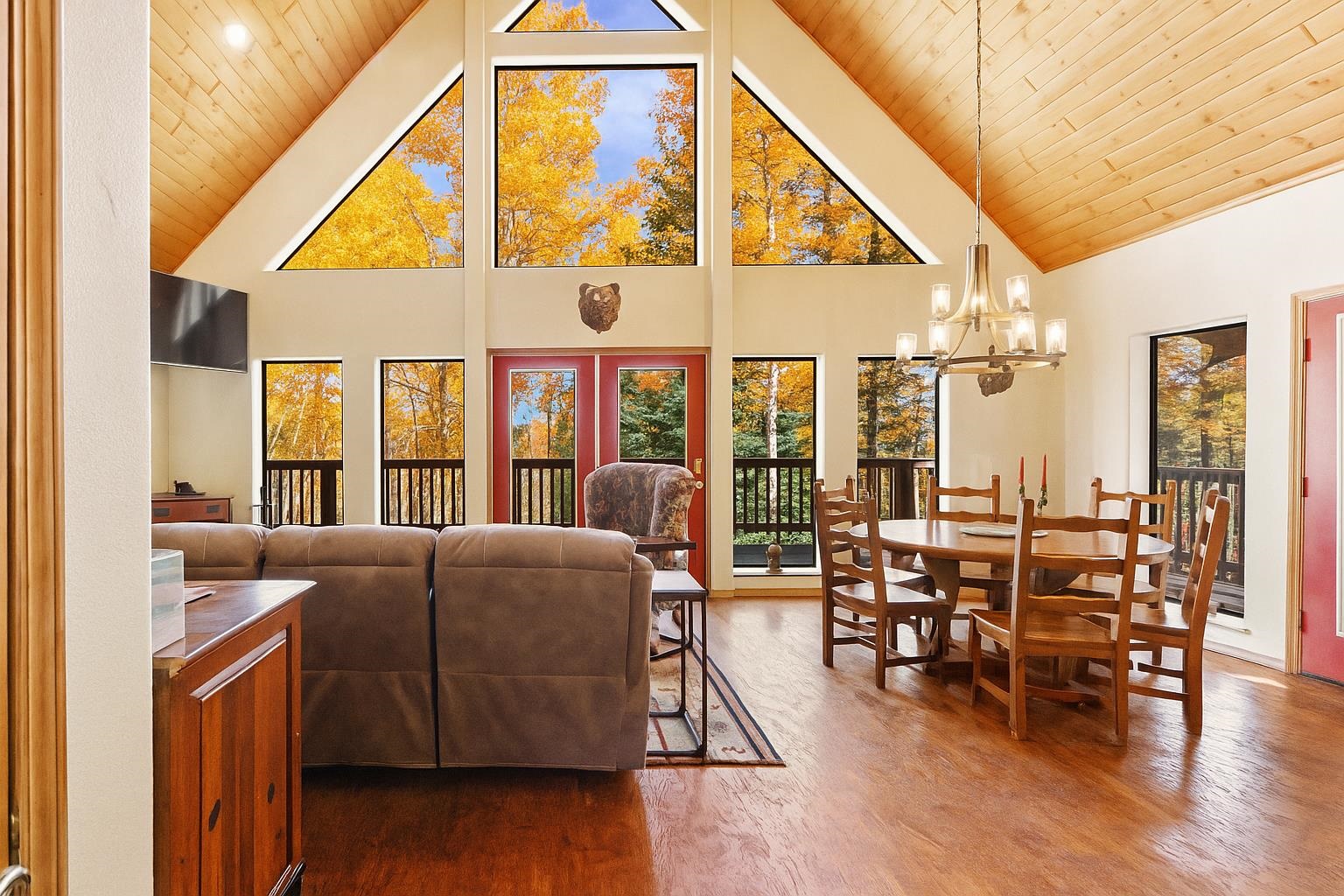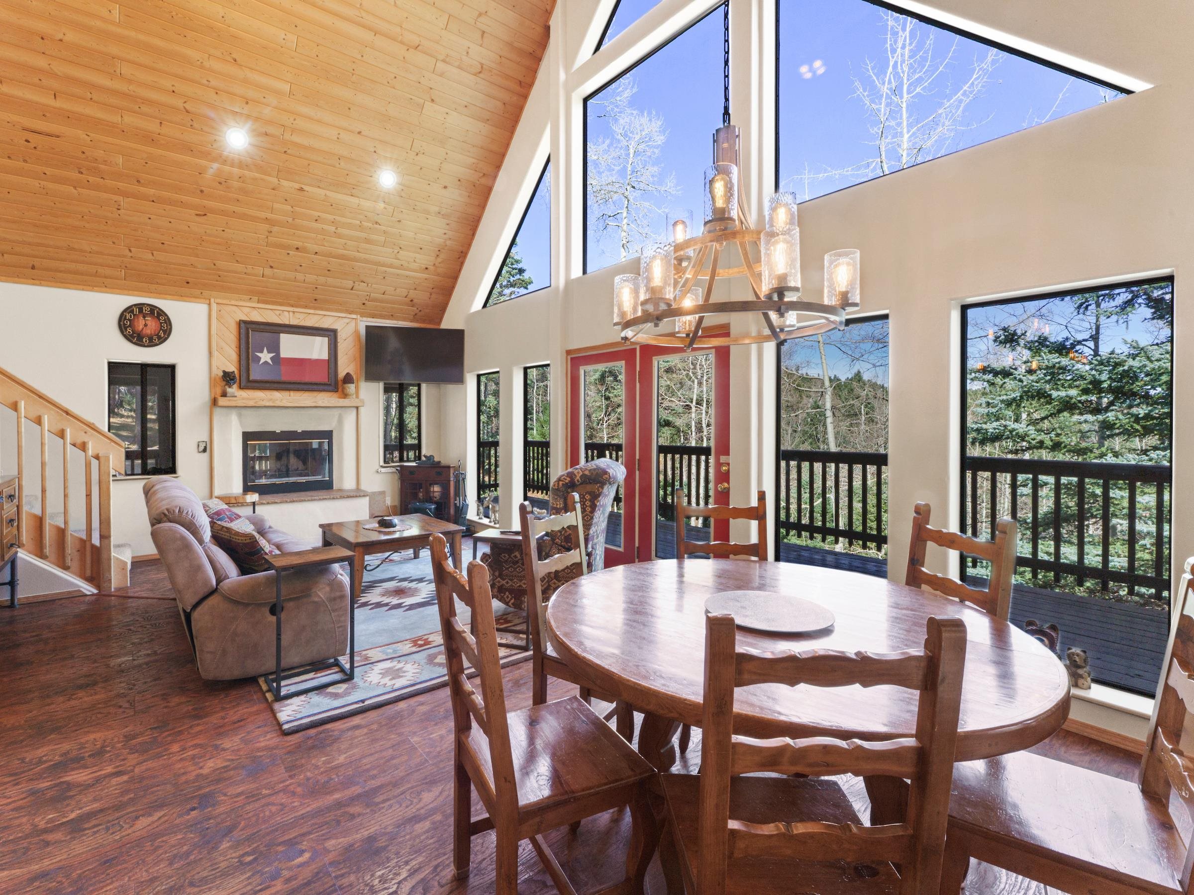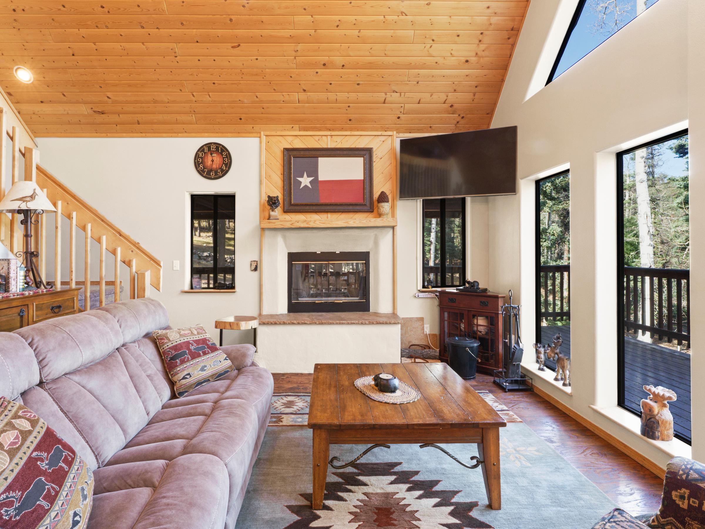 Come and discover this exceptional home near the Angel Fire golf course featuring 4 bedrooms and 3 bathrooms, a versatile loft, second living area, game area, bonus room, and a 2-car garage attached by a heated breezeway. The fourth bedroom is used as a sleeping area, but it is a noncompliant bedroom. Set on a spacious 1.85 acres, this property gives you the private mountain retreat you dream of while still being close to town and all the amenities and activities Angel Fire Resort has to offer. For ultimate convenience on snowy days, a heated walkway connects the garage to the house, ensuring easy and dry access. The circular driveway, lined with large rock work, provides a welcoming and easily navigable entrance for you and your guests. In addition to the incredible winter offerings like skiing, snowboarding, and snowshoeing, Angel Fire Resort is a year-round destination! You'll be minutes from a world-class downhill bike park, pickleball and tennis courts, and an exceptional PGA-rated 18-hole golf course. Having previously been in the rental pool, this home has great rental potential and could be the investment opportunity you've been looking for. Imagine waking up and having your coffee out on the the deck surrounded by the towering pines and walking in and warming up next to the wood burning fireplace. In the evenings, the dark Northern New Mexico sky is perfect for stargazing. Whether you seek a full-time residence, rental property, or a tranquil vacation home, this home is ready is ready to welcome you in. Call today to schedule a showing and start envisioning the memories to be made in the mountains!