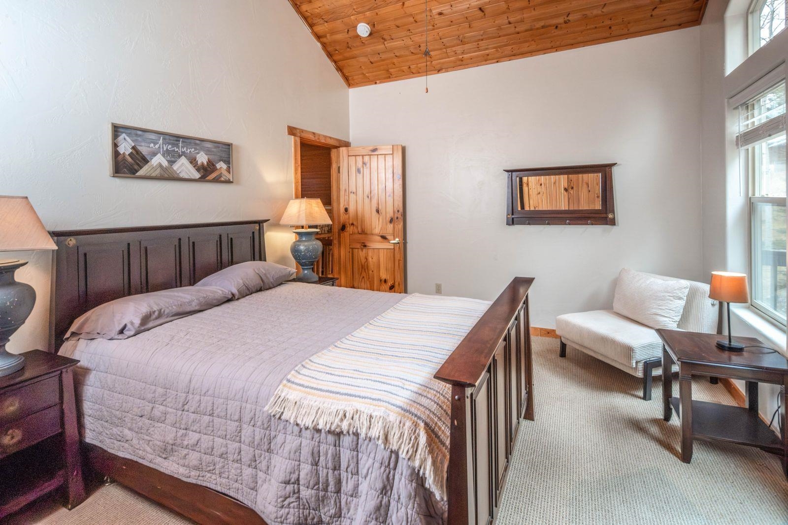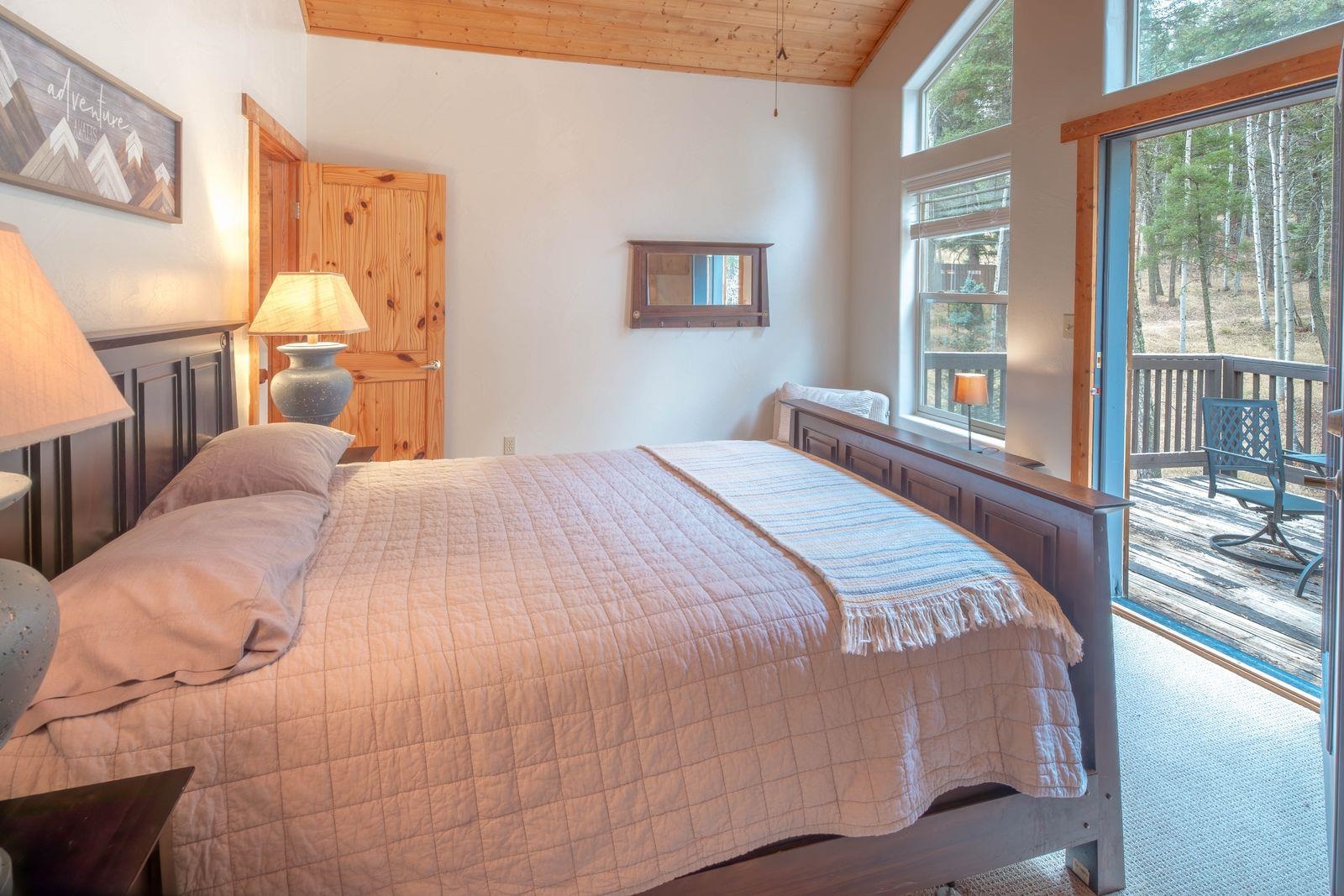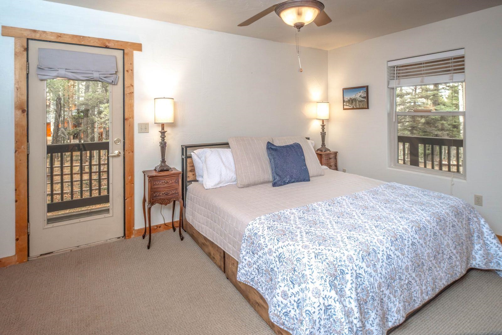 Charming Mountain Retreat with Privacy and Character. Nestled among mature pines and aspens, this beautiful mountain home offers the perfect blend of privacy, comfort, and mountain charm. The main living area features a stunning tongue-and-groove vaulted ceiling and large windows that fill the space with natural light. A striking stone fireplace anchors the open-concept living, dining, and kitchen areas, creating a cozy gathering space for family and friends. There is also a primary suite with ensuite bath on this main-level. Upstairs, the secondary suite boasts its own private balcony and ensuite bath. Also upstairs, a spacious loft offers extra sleeping and recreation space with twin beds, a game table, and a guest bath, while a third bedroom with vaulted ceilings completes the upper floor. A welcoming three-sided wraparound porch, invites you to relax and take in the scenery. The fenced yard is ideal for keeping pets and children safe while complementing the natural surroundings. Additional features include an attached single-car garage and an easily accessible driveway for convenient year-round access. Sold fully furnished and ready to move in! Experience mountain living at its best in this inviting and well-designed home.