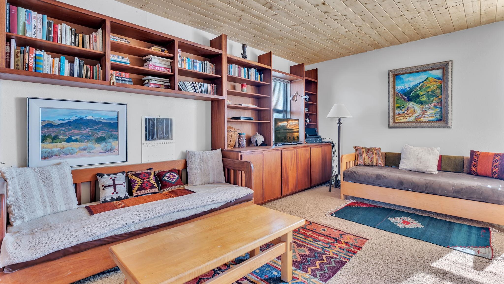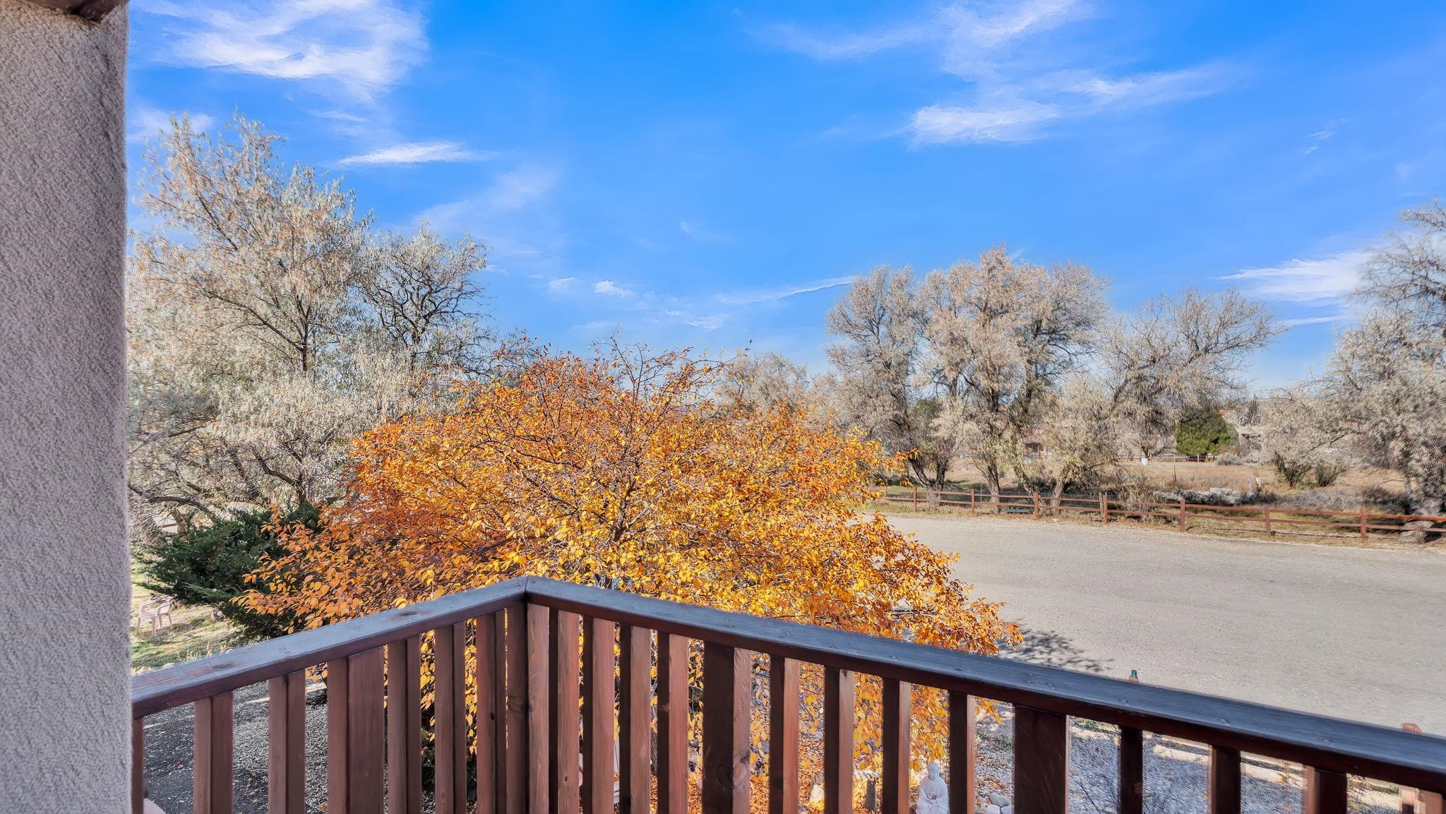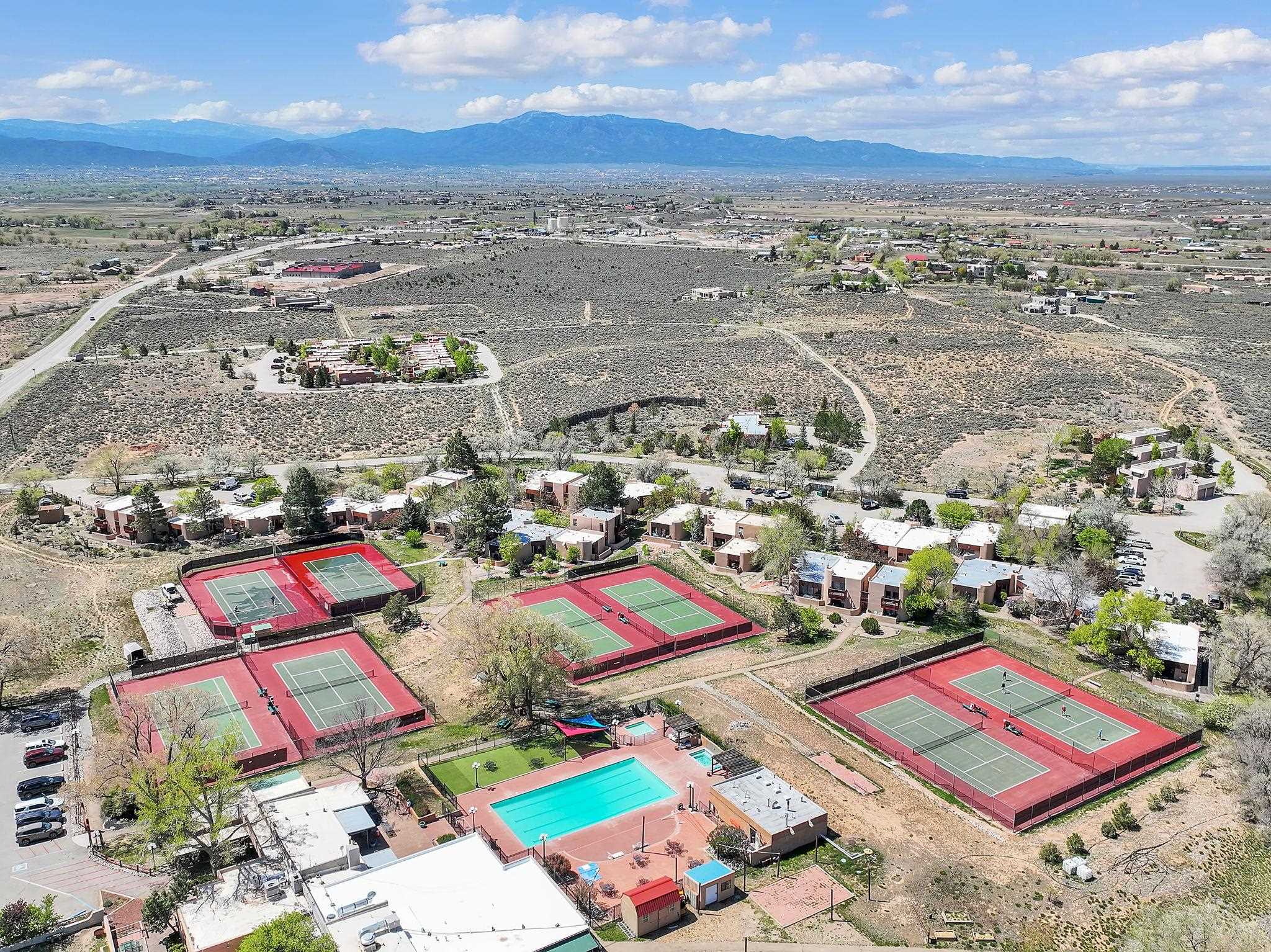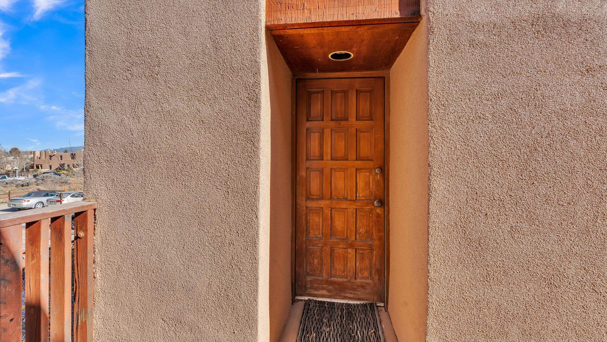 SPECIAL things come in small packages ~ This impeccably cared for 526 square foot studio condo is a unique find in the Taos Condo market. A full time residence or your private retreat with investment potential on the North side of town, there are a few different ways you could enjoy this property. The wide open floor plan is filled with very rare and incredibly special hand-carved [built-in] cabinetry by renowned local artist Max Killinger, which is complimented by the newly installed vibrant tongue and groove ceiling. The unit is equipped with a kitchen, a comfortable living space that possesses a traditional burning fireplace, and a spectacular balcony ideal for small gatherings or your personal rituals any time of day. From sunrise to sunset, this is a natural light filled retreat you won't want to leave. The Taos Tennis Ranch is a sweet spot for swimming, hot tubbing, tennis and pickleball which are all included in the HOA fees. Additionally, there are shuttles for Taos Ski Valley that leave from the parking lot of the Quail Ridge Inn, and a wonderful restaurant that serves beyond the lunch hour daily. Conveniently located a short drive to Taos Plaza, the ski hill, the Rio Grande river for all your water activities, Don't let this SPECIAL package get away, come have a view and make this your Taos escape.