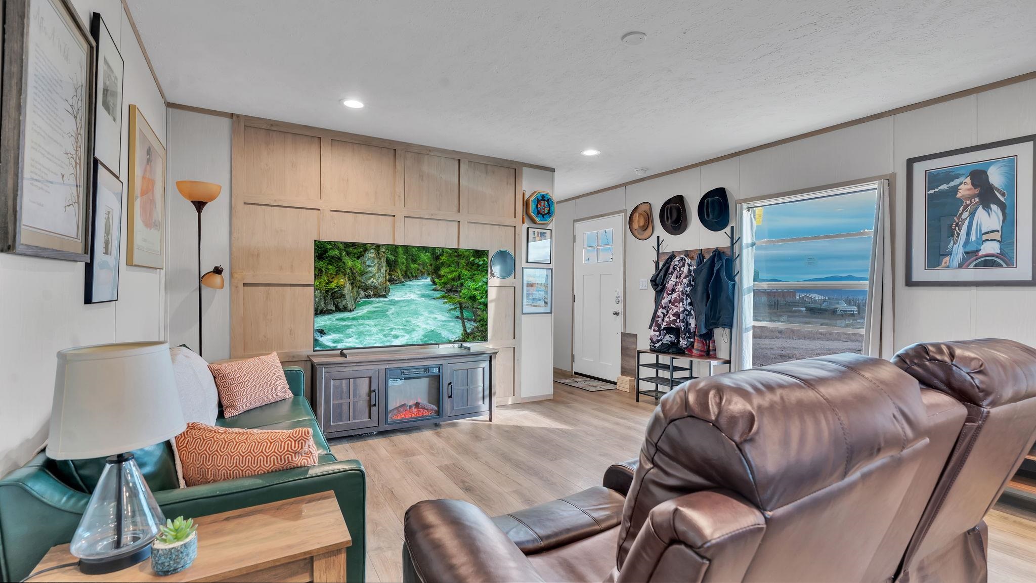 The Perfect Place to Call HOME in El Prado, New Mexico ~ This immaculate, peaceful and quiet high-desert sanctuary with panoramic views is the absolute perfect place to make your very own. The essentially brand new 2023 mobile home on 2 full acres of land offers excellent accessibility near Highway 64 West. The residence itself features 3 spacious bedrooms, 2 bathrooms, and is perfectly positioned on the parcel providing endless potential for gardening, animals, children play space, and future expansion. The property is incredibly well-taken care of and includes a private well share, a secure fully fenced backyard with two gates, and a gravel driveway with ample parking. As the sun sets and rises, you are guaranteed get lost in some of the most stunning skies on this planet. The interior showcases a bright, open layout with recessed lighting, an inviting kitchen boasting tons of storage, and a dedicated south-facing coffee nook. This is an Eco-Smart home, with plenty of natural sunlight, featuring energy-efficient windows and the ability to wirelessly control thermostats. Outdoor amenities include a shed with generous storage, a fire pit, and newly planted fruit trees (plum/apricot) and ornamentals. Recent upgrades to ensure modern convenience include TICO power and high-speed fiber optic, and solar security motion-activated lights surrounding the entire home. Down the road from Taos Ski Valley, John Dunn Bridge at the Rio Grande for all the river fun, and minutes from Taos Plaza, restaurants and shopping. Complete packages like this home are a rare find, don't let the perfect place to call home slip away.