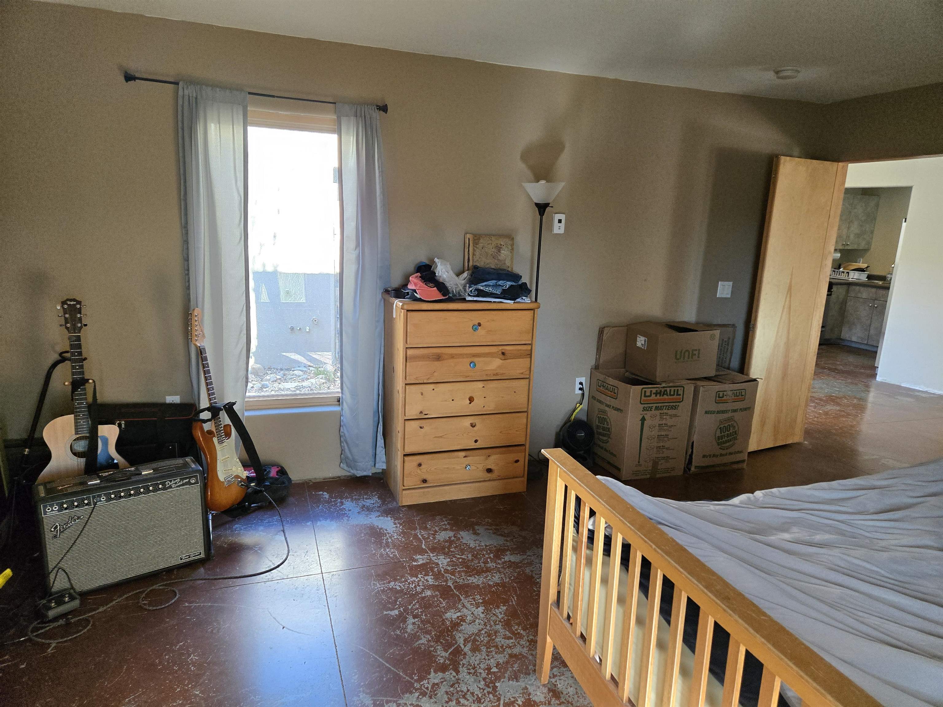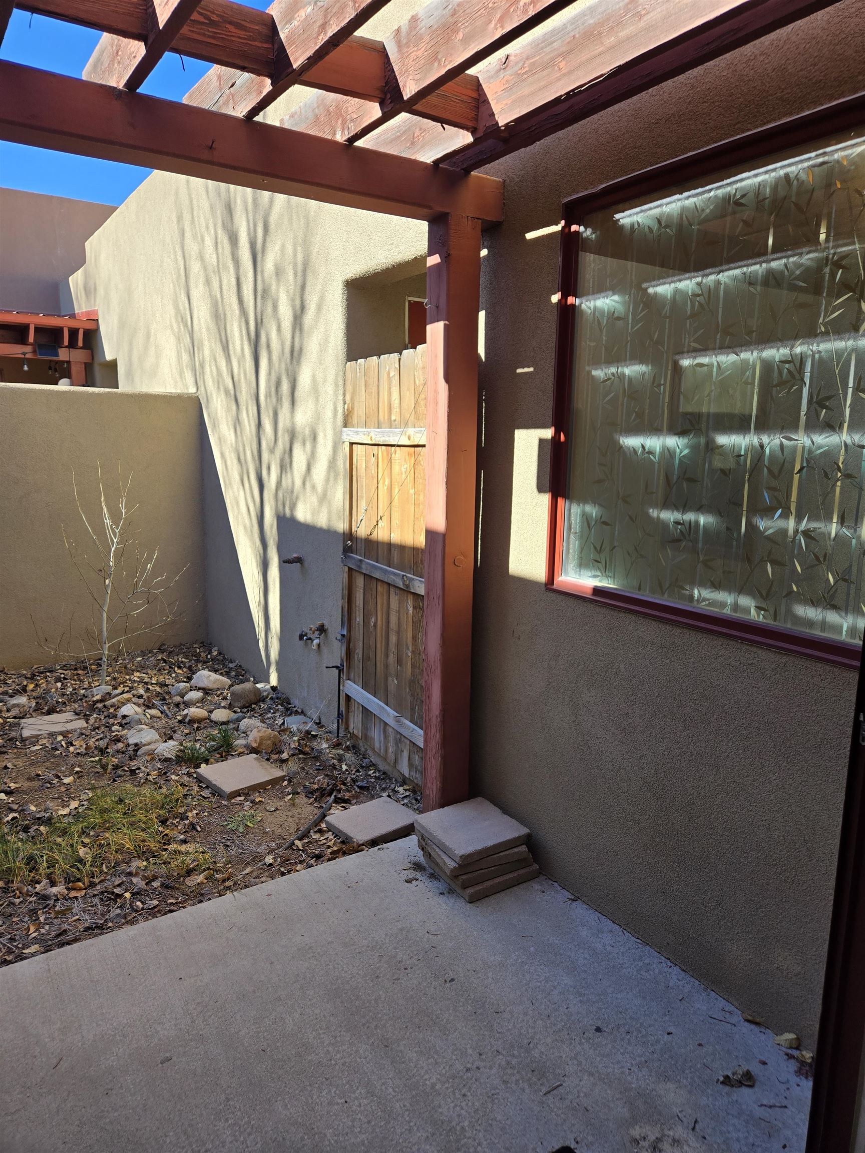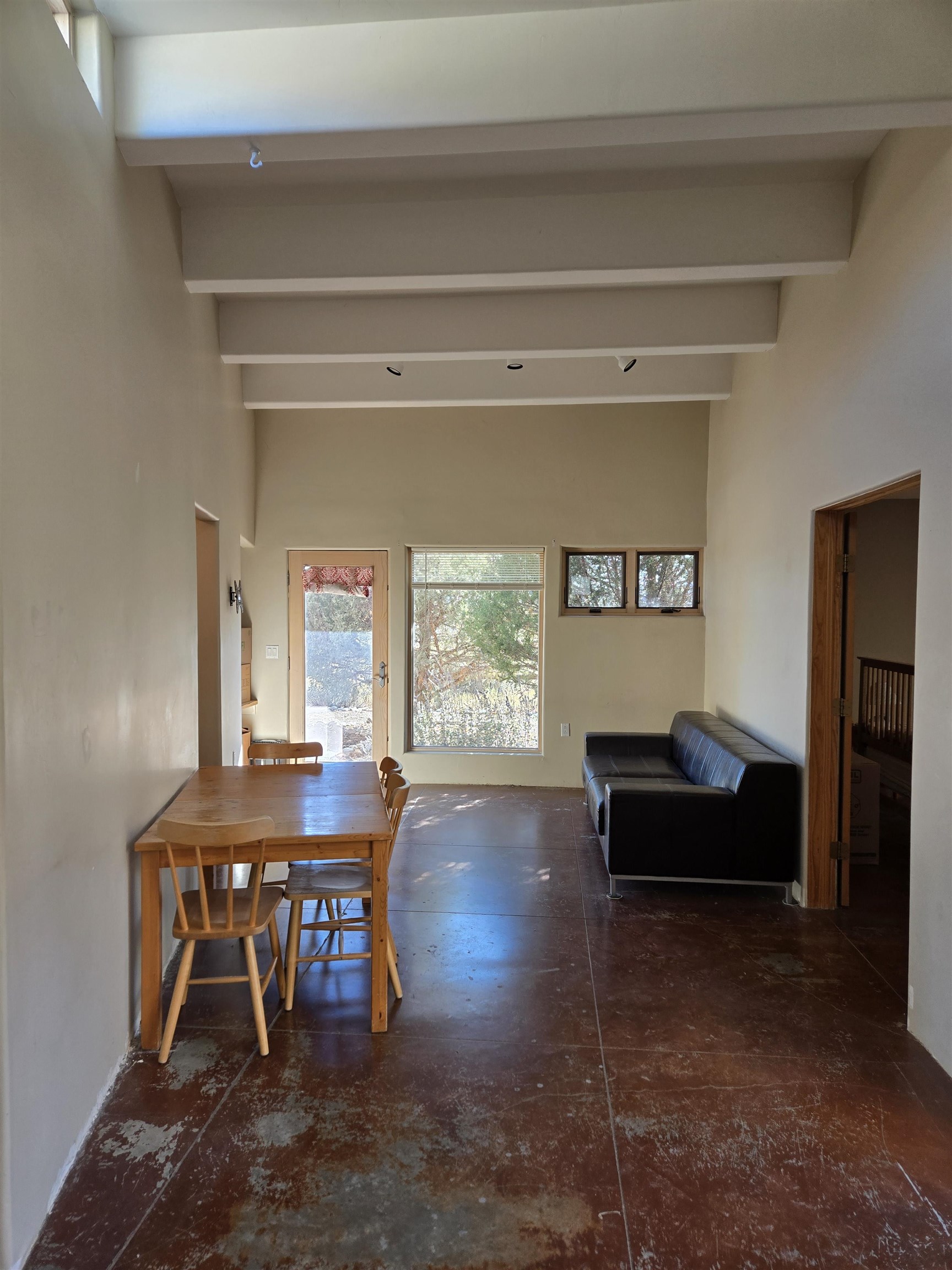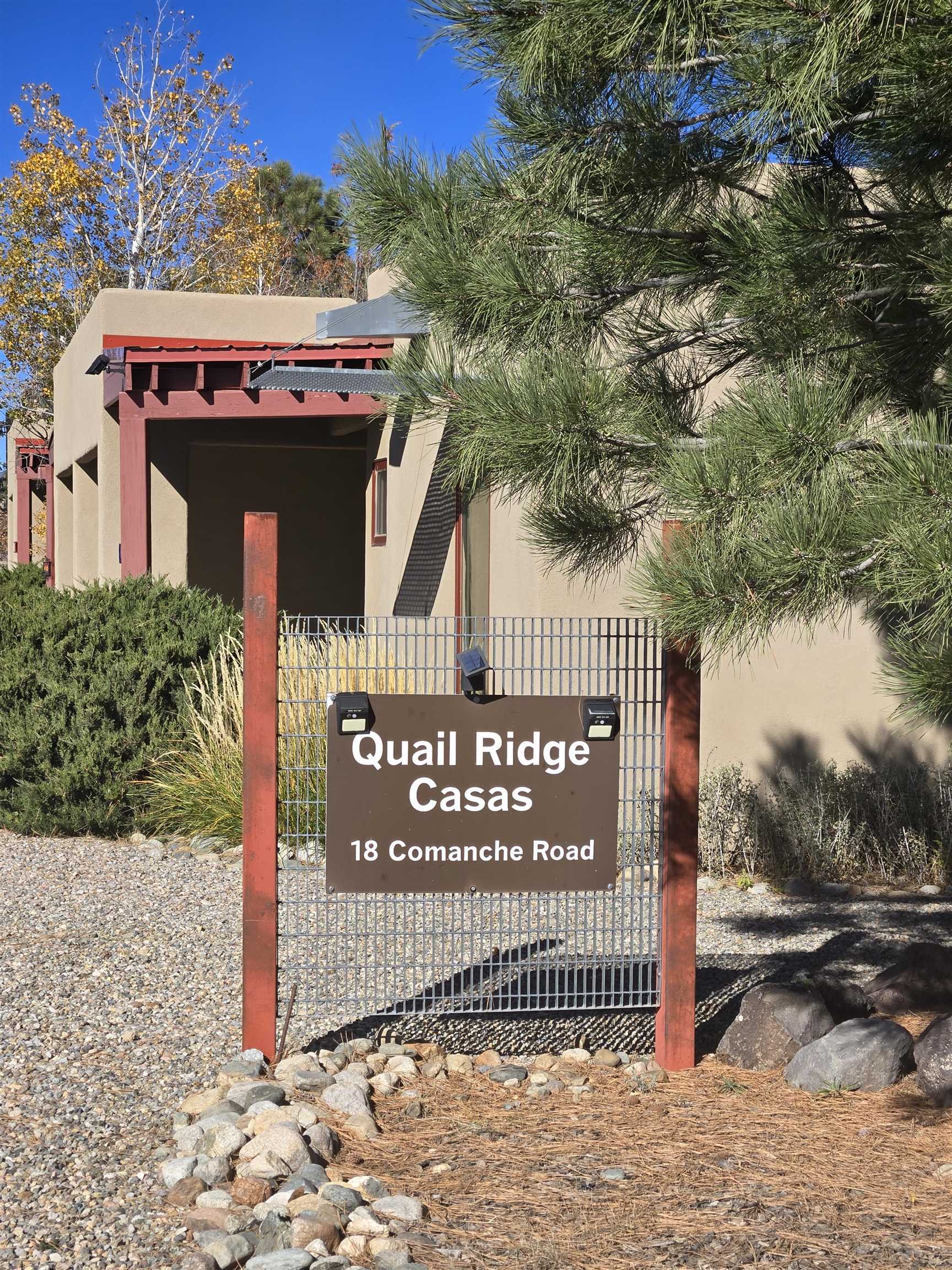 Two bedroom condo located in Upper Las Colonias, convenient to Hwy 150 on the North side of Taos. Quail Ridge Casas are in a tidy complex with mature landscaping and sunny units. Built in about 2005, they have a contemporary feel with high clerestory windows, and Unit 6 has 2 enclosed courtyards accessed by sliding glass doors to bring the fresh air in. There are sunny south facing windows, with large trees to screen for privacy. The unit has it's own carport. The efficient kitchen has a fridge, stove and dishwasher. There is a large southwest style fireplace. The unit has it's own stacking washer and dryer. There are several restaurants nearby and it is convenient to a gas station.