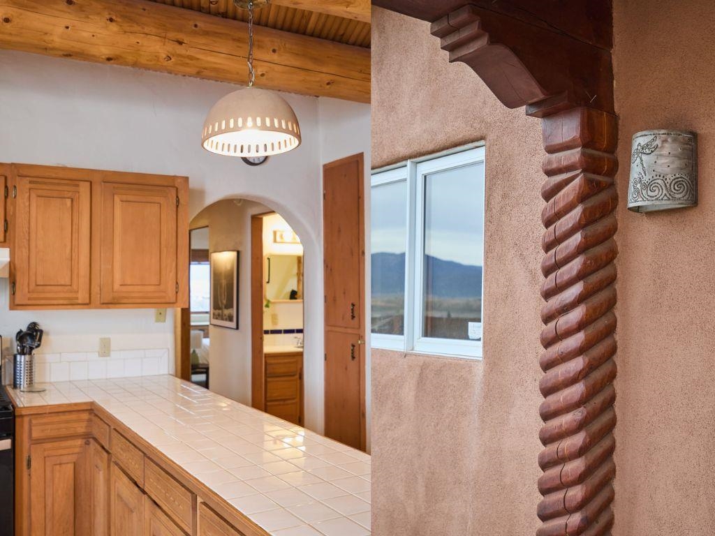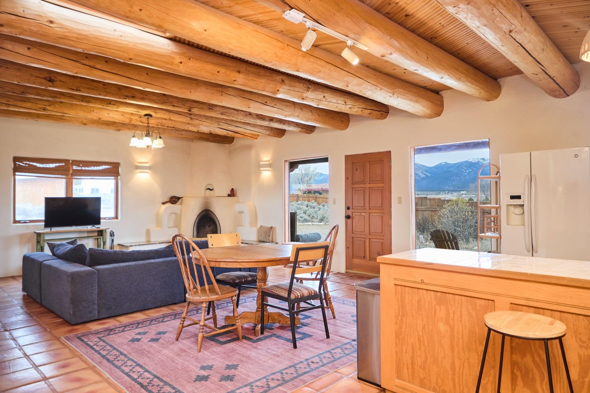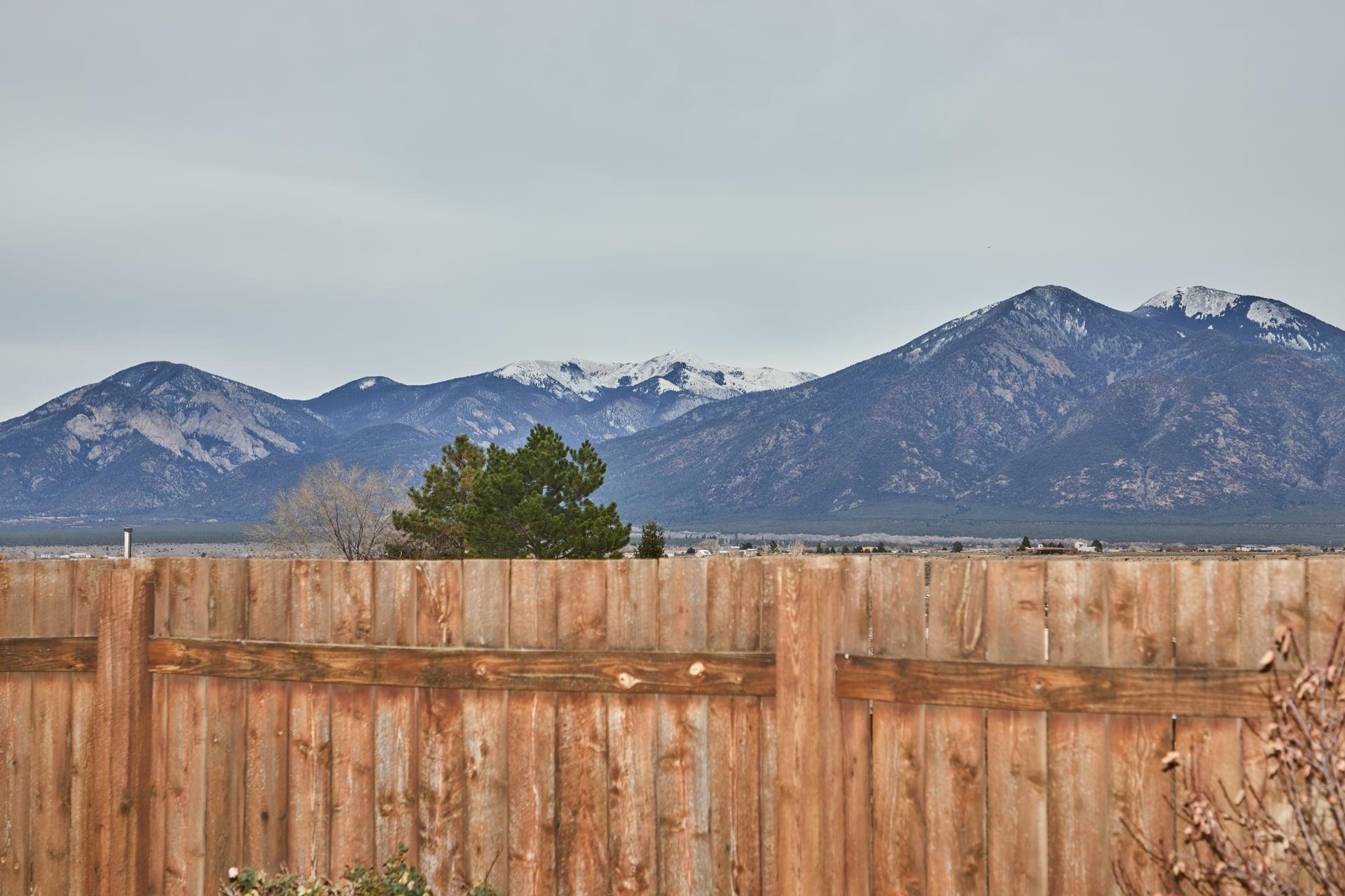 Perched at the top of Luz Del Monte, where the high desert opens its arms and the mountains rise in every direction, this perfectly laid-out 2-bed, 2-bath home invites you into a space that feels effortless, warm, and beautifully composed. An additional flex room, a third bedroom or a cute office if you work from home. Sunlight pours through the living room and kitchen windows, framing Pueblo Peak in soft morning light and painting the evenings in that unmistakable New Mexico glow. Inside, the home is draped in soothing neutrals and natural wood, an immaculate blank canvas ready for your style, your art, and your rhythm of life. A classic Southwestern kiva-style fireplace anchors the generous living area, adding a touch of soul and tradition to the open-concept layout. The kitchen flows with intention: custom natural-wood cabinetry, an efficient breakfast bar, and subtle, sophisticated lighting that infuses the space. Every inch of the square footage is used with precision. The two bedrooms are bright, neutral, and serene. Each with thoughtful access to well-designed bathrooms accented with a whisper of New Mexico tile and a refined, modern palette. An additional flex room offers the gift of options: a private office, a creative studio, or a third bedroom or nursery whatever your life calls forward next. An efficient laundry room also offers a nice living flow in this home. Step outside to the covered front porch and breathe in those sweeping, unobstructed views of the mountains and desert in all directions. Privacy fencing on both sides of the home and a gated driveway create a quiet sense of retreat, while ample parking and easy turnaround space make living here both elegant and practical. Whether you’re searching for a primary residence, a clean and efficient landing place in Taos, or a smart long-term/short term rental opportunity, this home offers exceptional value wrapped in timeless New Mexico charm. A neutral sanctuary. A mountain-view perch. A high-desert invitation to live, create, and settle right in. ALL furnishing convey with this property, a real perk.