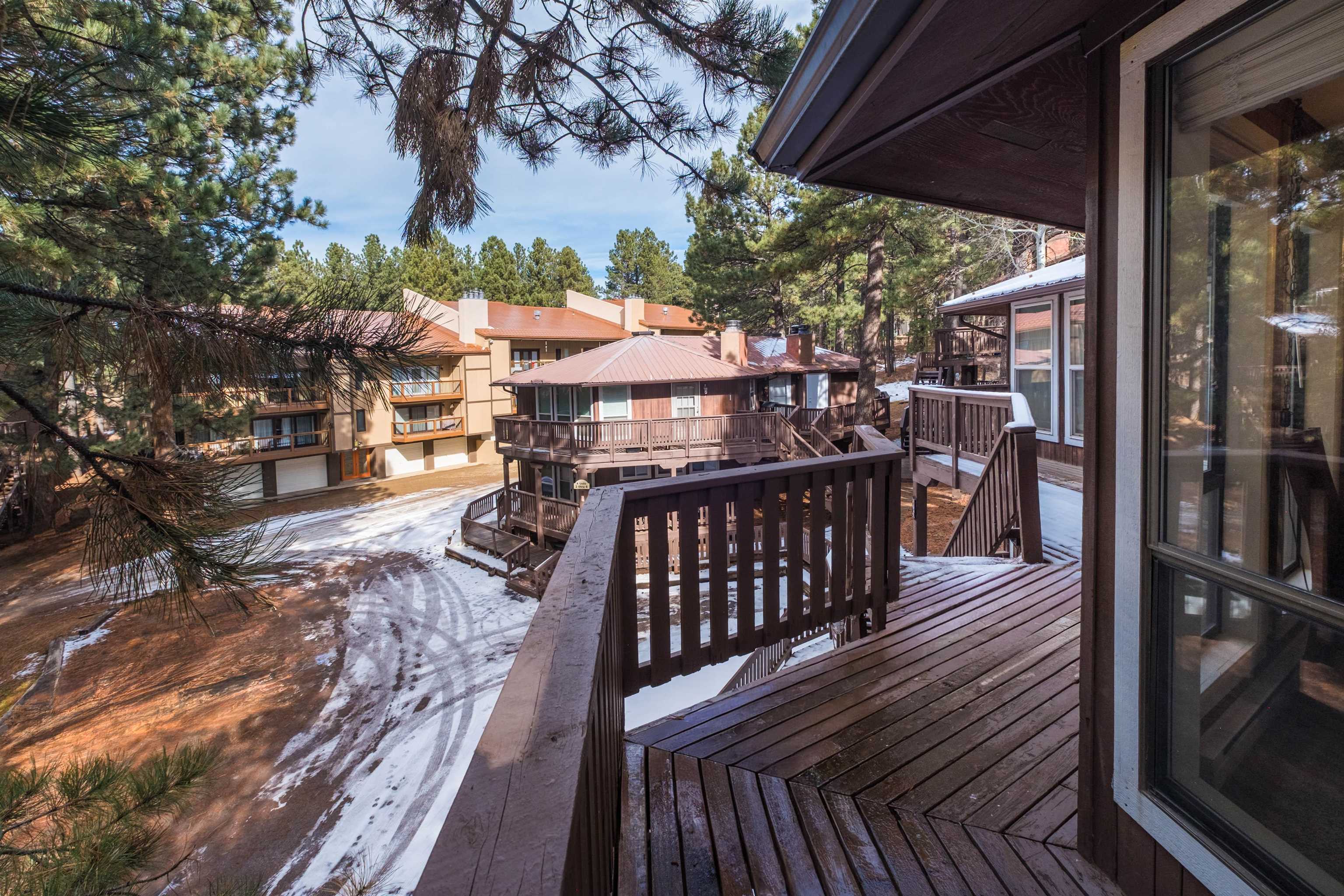 This warm and welcoming 2-bedroom, 1-bath condo at 20 Jackson Hole Rd offers a true mountain escape from its upper-level perch, surrounded by tall pines. The setting feels like a private treehouse. A generous deck opens to sunset views and crystal-clear night skies. Inside, the condo comes fully furnished and well-appointed, anchored by a beautiful stone fireplace that creates a cozy gathering space. Recent improvements include new windows in the primary bedroom, a new water heater, a vented gas heater, and a Bosch dishwasher. A convenient ski locker provides easy storage for all your gear. Getting to the slopes is simple—take the shuttle to the lift or enjoy a short five-minute walk in your boots. This unit blends comfort, smart upgrades, and the quiet charm of Angel Fire. It’s ideal as a personal retreat or a rental-ready investment in a highly desirable location!