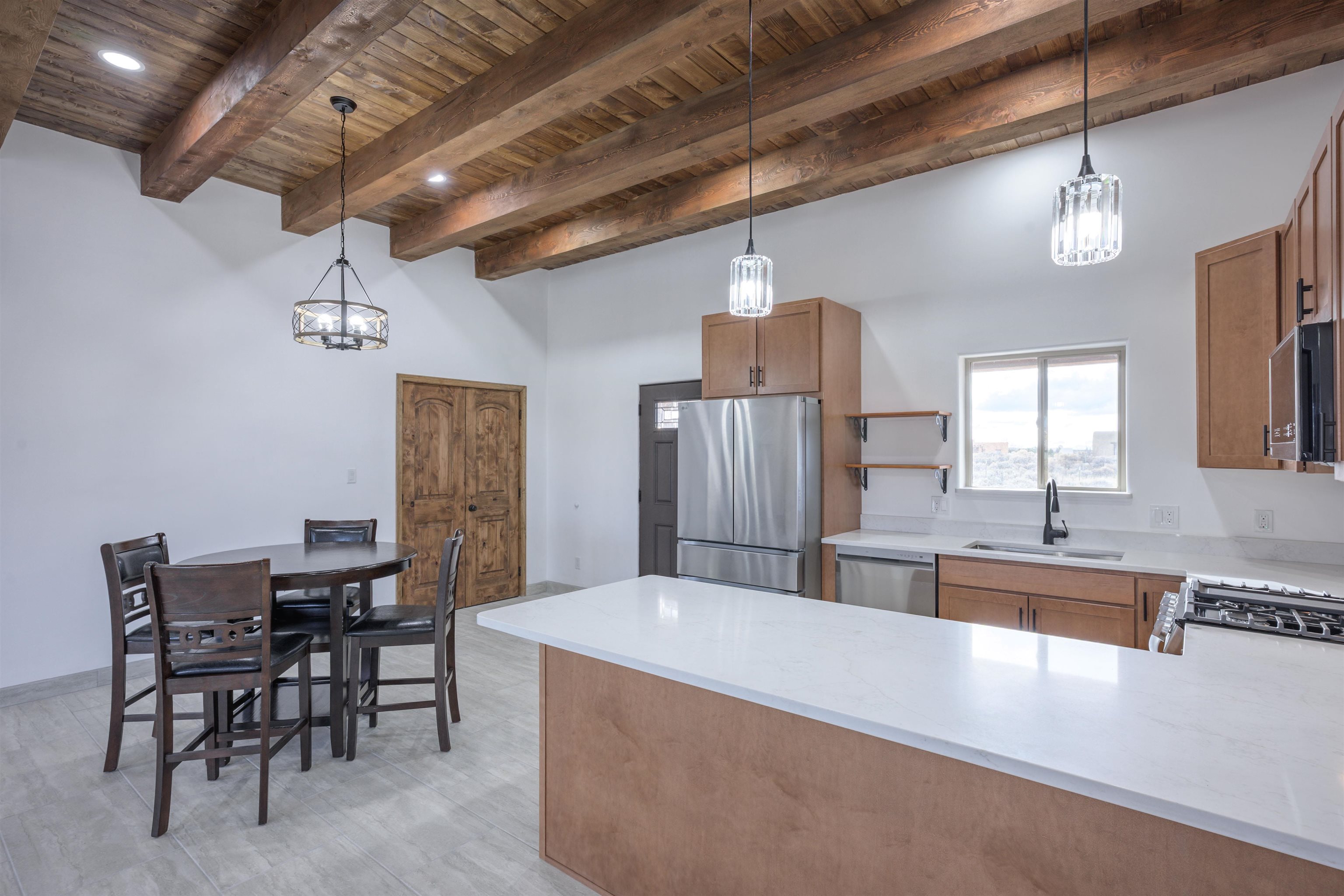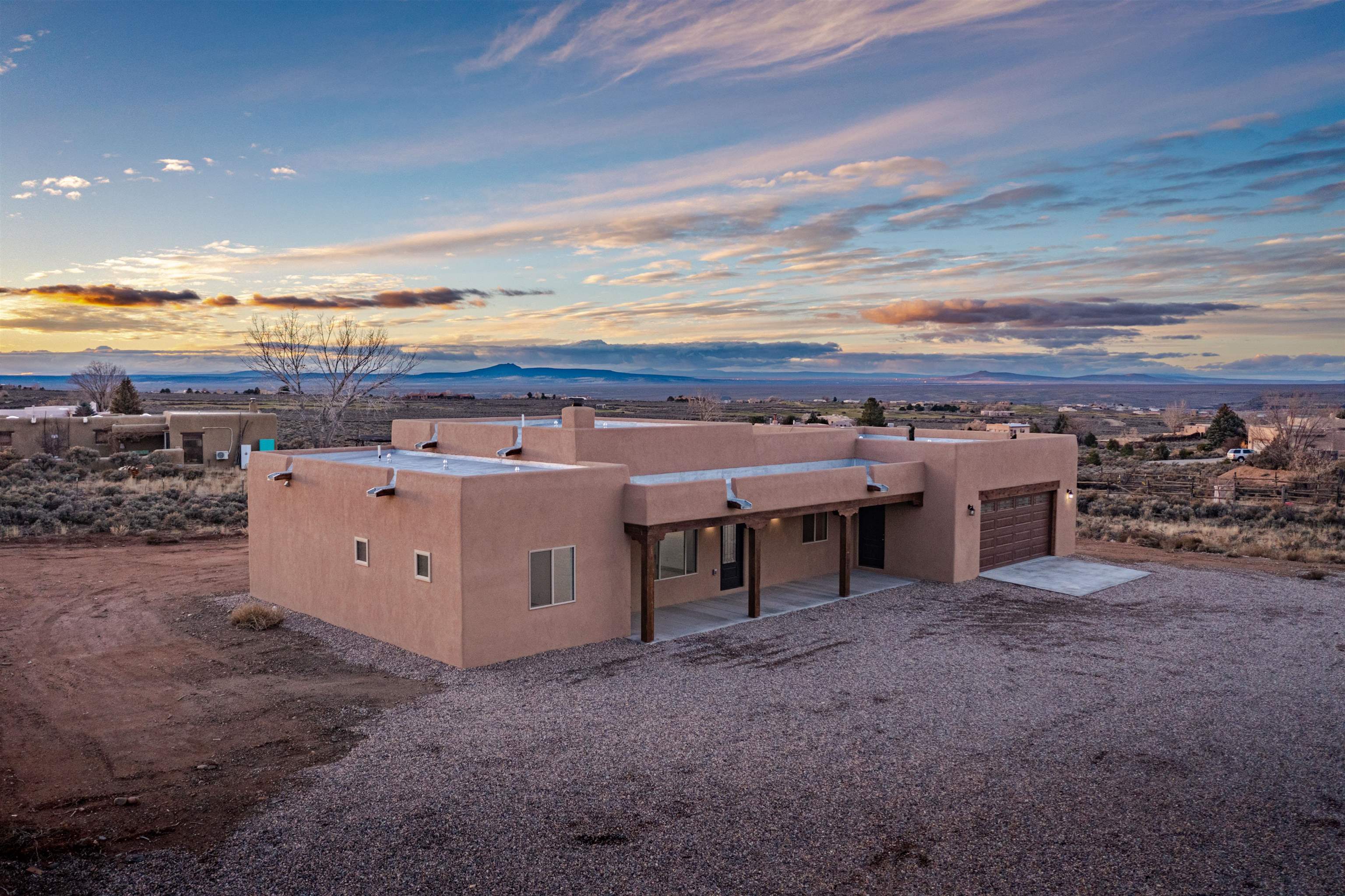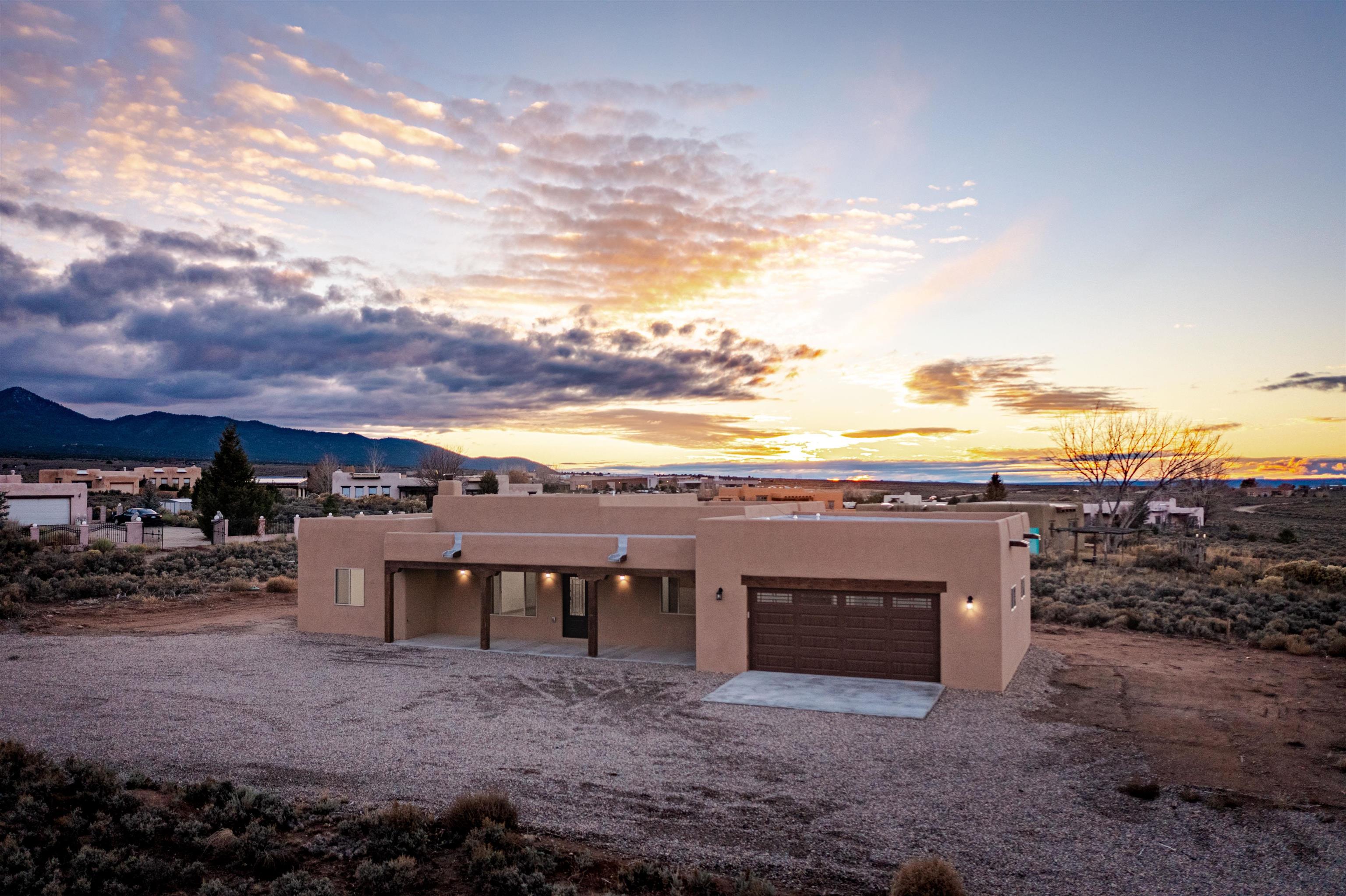 Stunning New Construction Home with Breathtaking Views! Welcome to your dream home, perfectly situated to offer amazing views and an enviable lifestyle. This exceptional new construction home is just moments away from the Taos Country Club, hiking trails, and a host of outdoor activities, as well as convenient shopping and dining options. The open-concept floorplan is designed for both family time and entertaining friends, creating a warm and inviting atmosphere. The cozy wood-burning fireplace adds charm and ambience, making chilly winter nights feel extra special. This home features three spacious bedrooms and two well-appointed baths, equipped with top-of-the-line appliances throughout. An attached heated two-car garage adds further convenience and value to this remarkable property. Set on 1.24 acres, there’s plenty of space to enhance the property with additional fencing, gardening, and landscaping, allowing you to truly make it your own. Don’t miss the opportunity to own this beautiful home, where breathtaking views and a vibrant lifestyle await!